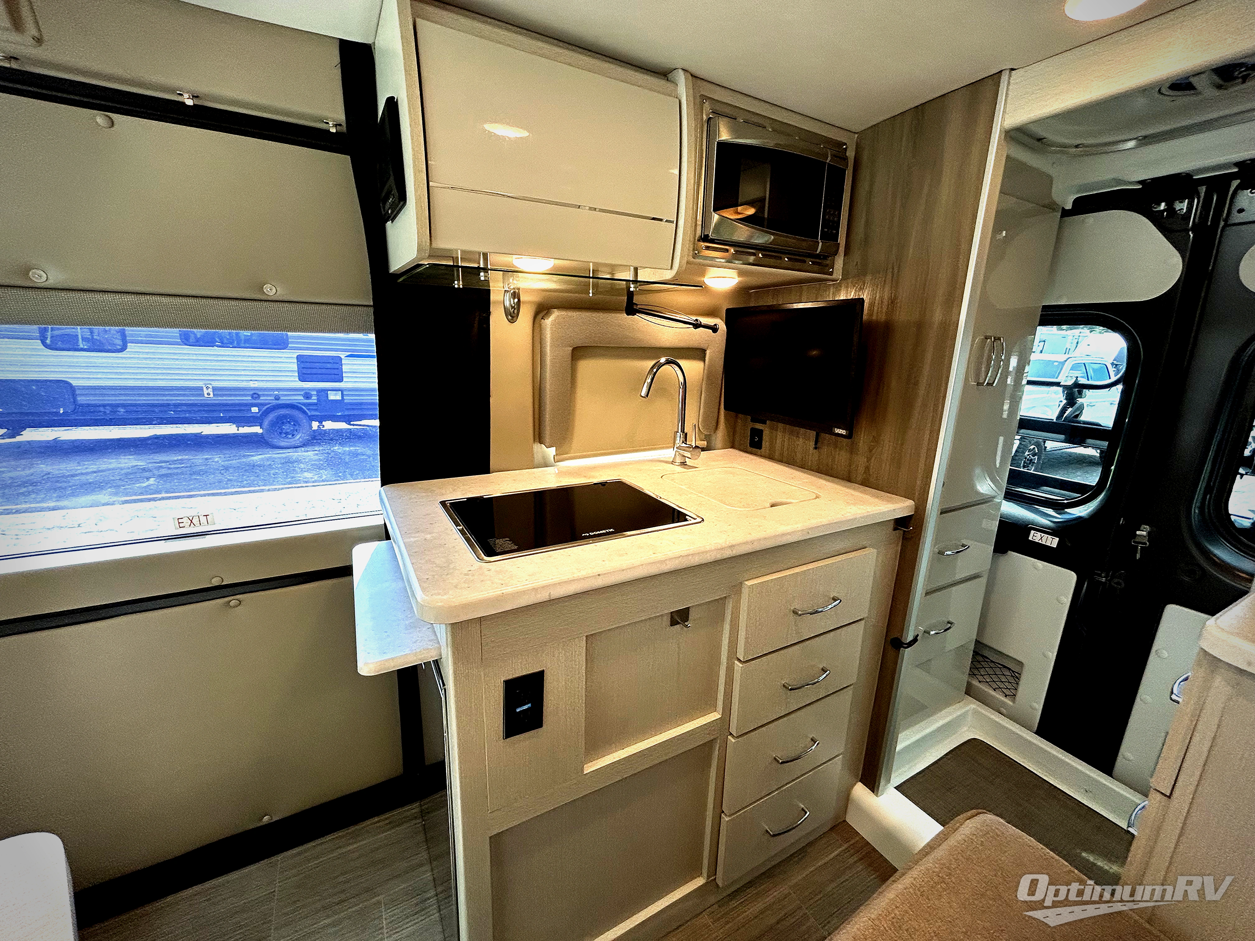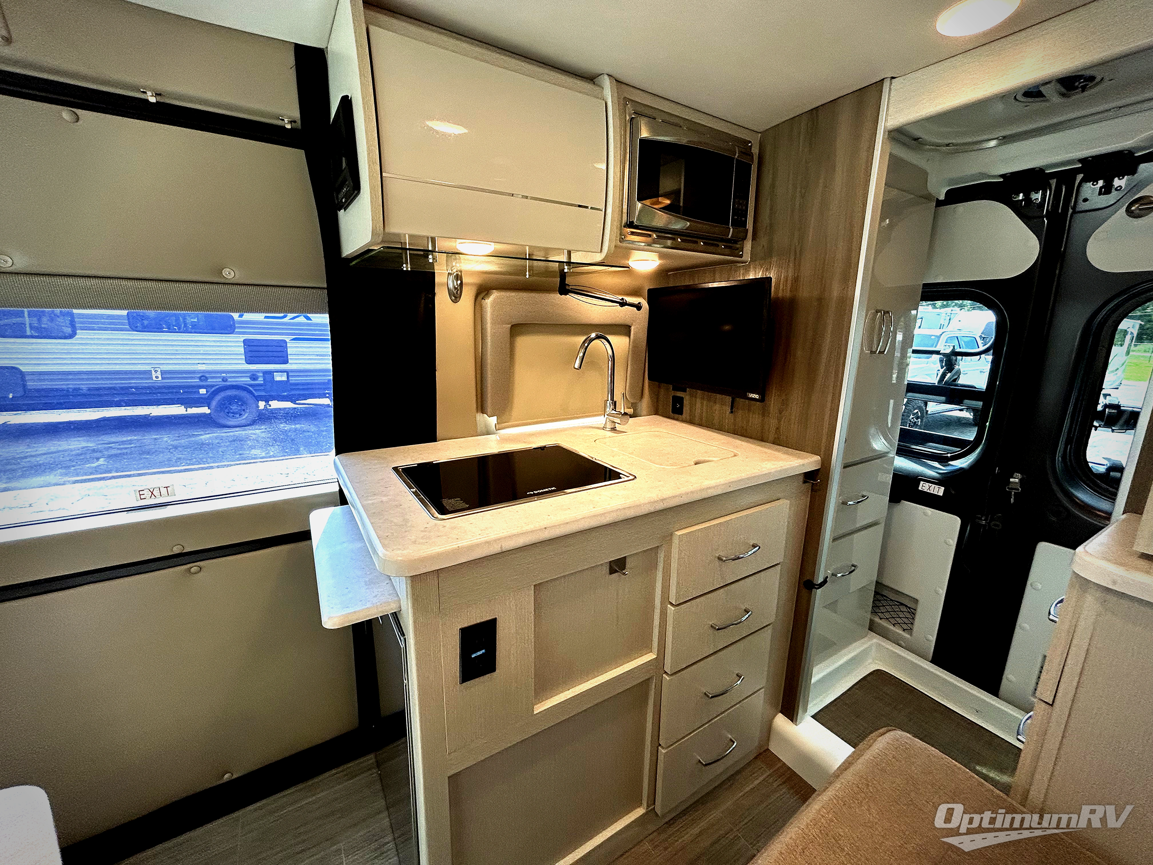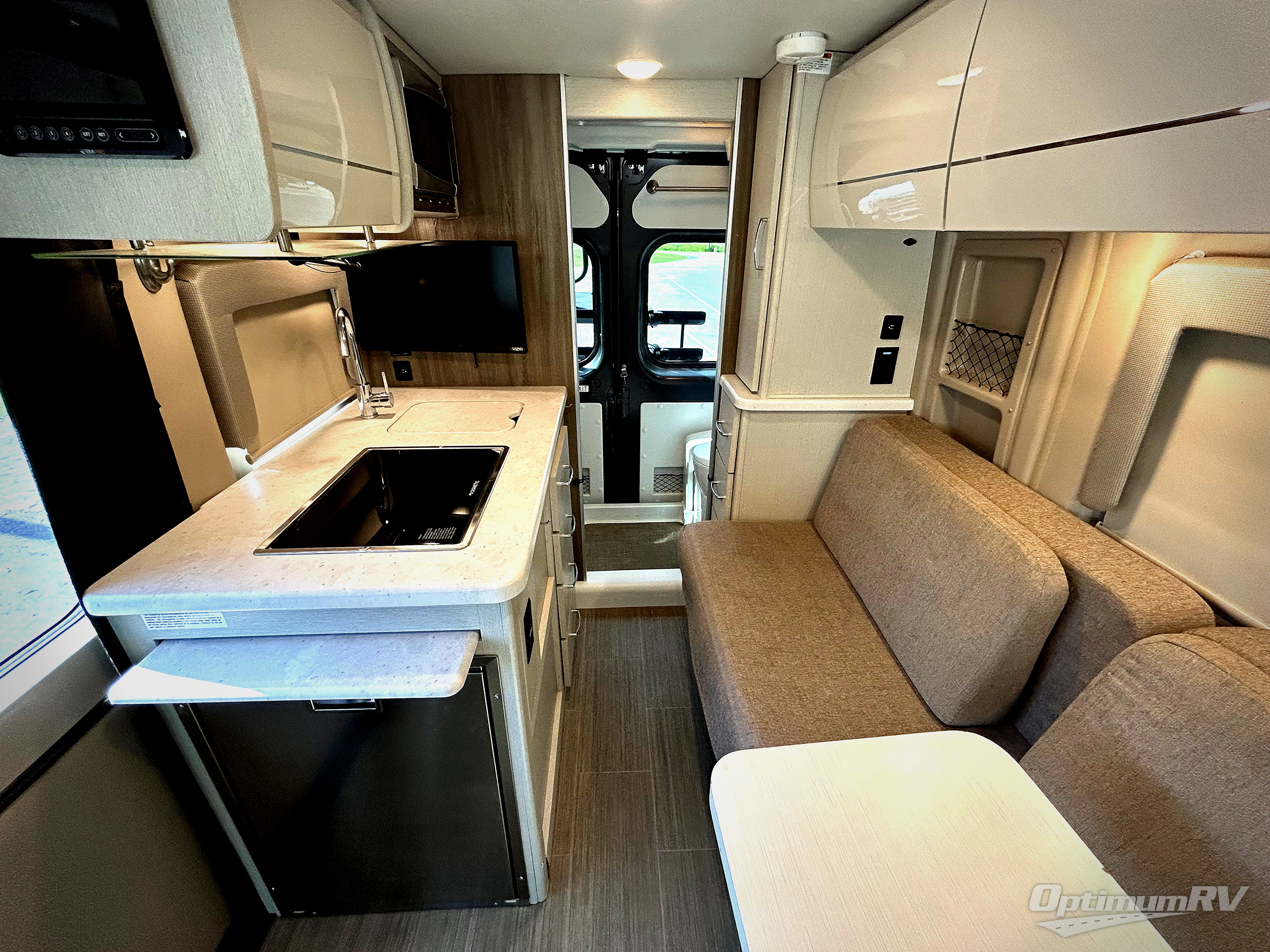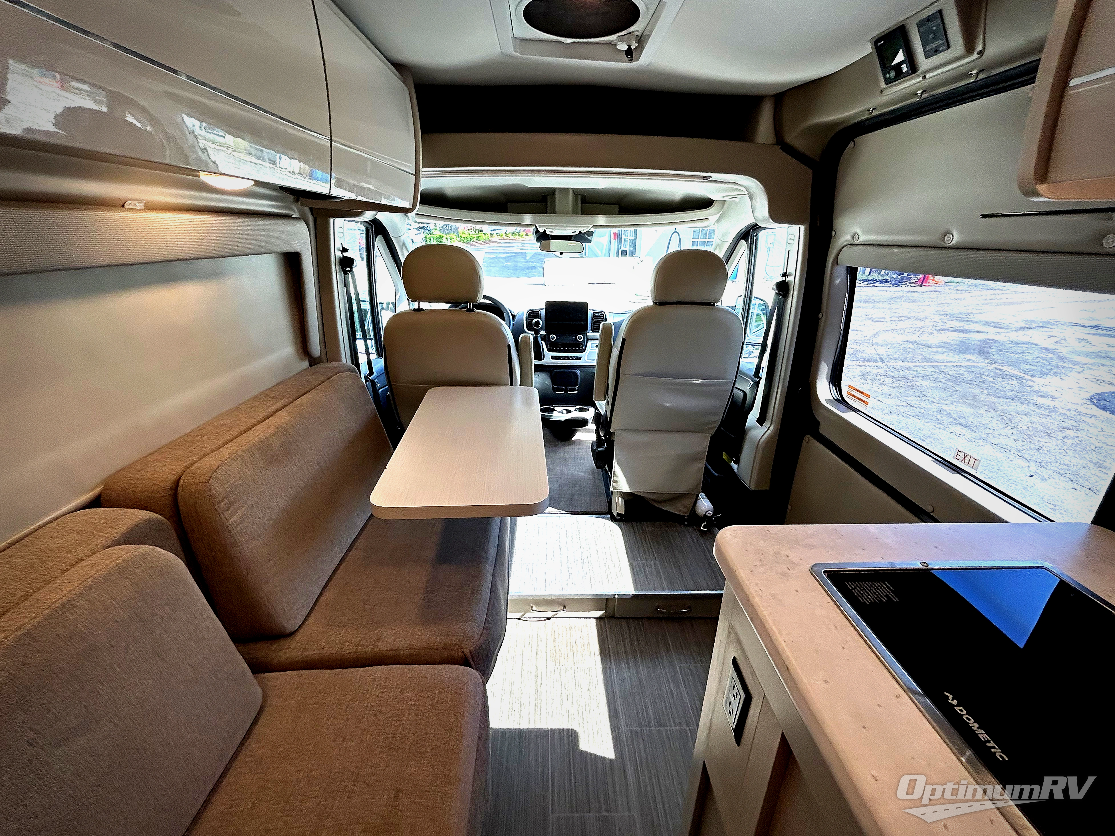 This coach is the perfect home on wheels for all your adventures. You will have everything you need, including a wet bath with a cassette toilet and pocket doors to save space. The Winegard ConnecT 2.0 4G/Wi-Fi/Digital TV antenna allows you to stay connected to the outside world. Once you have prepared breakfast on the two-burner gas cooktop, you can dine on the sofa with a removable table. This area can then be your sleeping space at night since the sofa converts into a 72" x 47" pull-out bed. Whether you're enjoying the fresh air let in by the large opening side windows, or you're sipping on a cold drink under the electric awning, you will love everything about this coach!