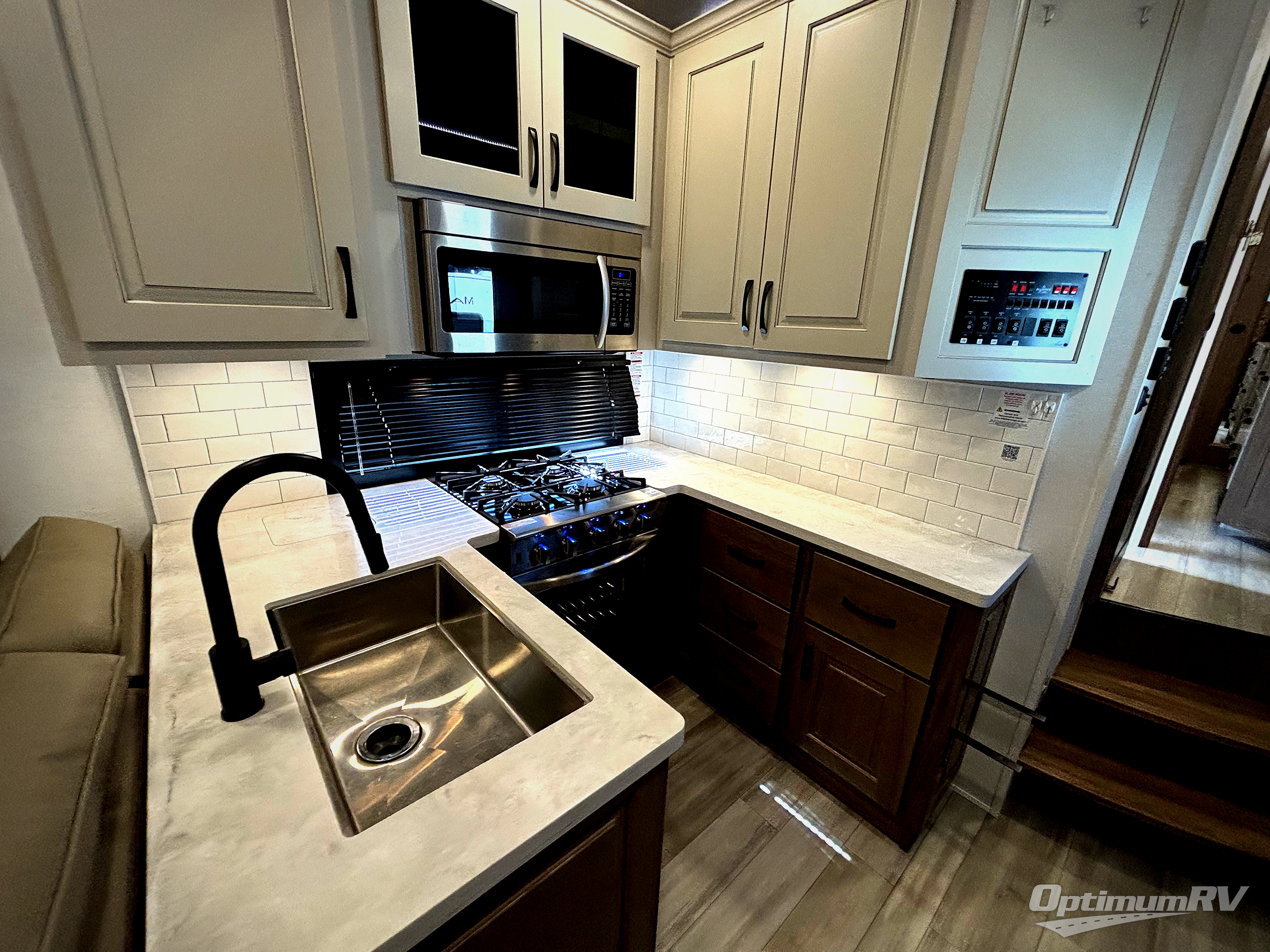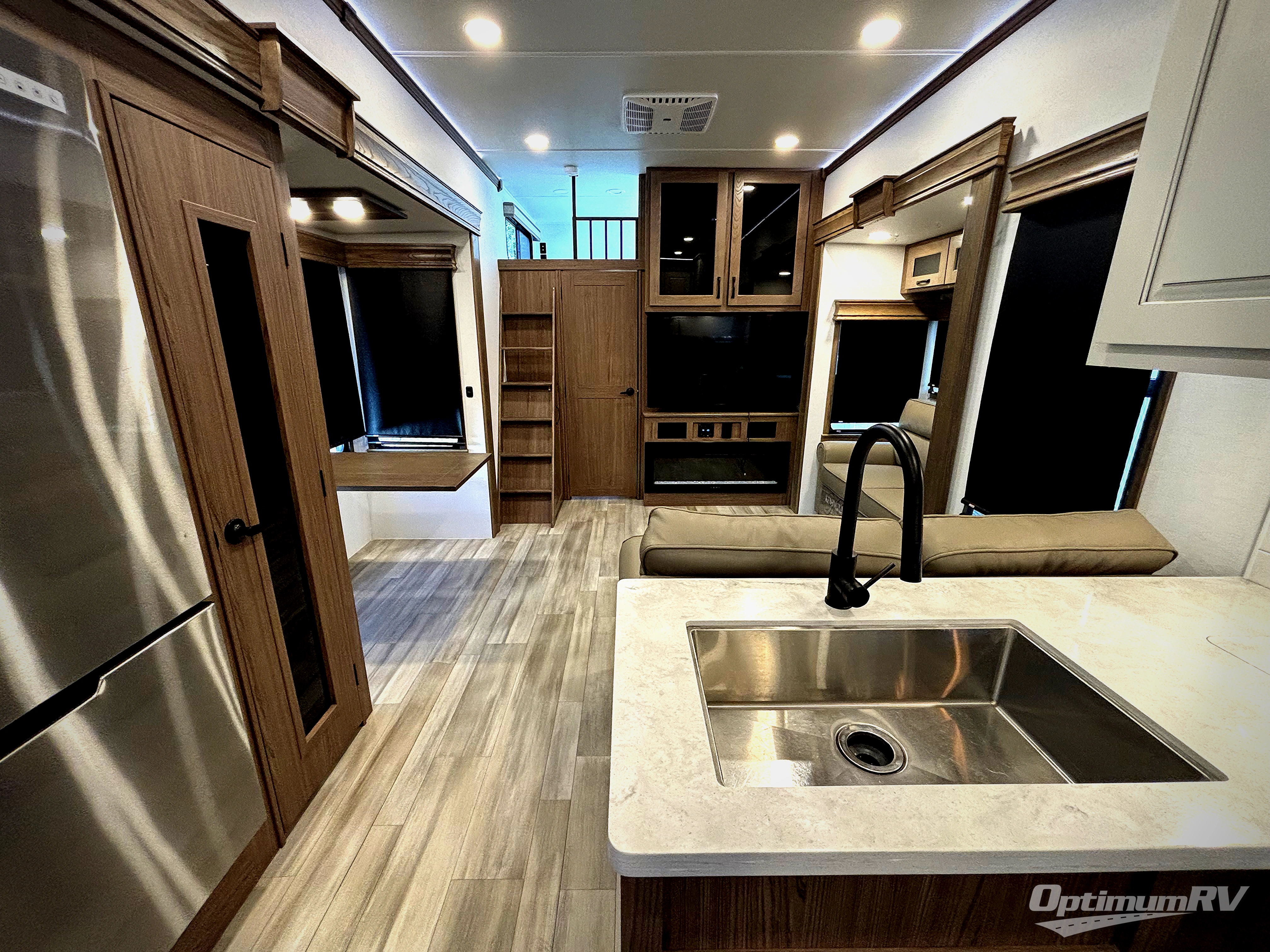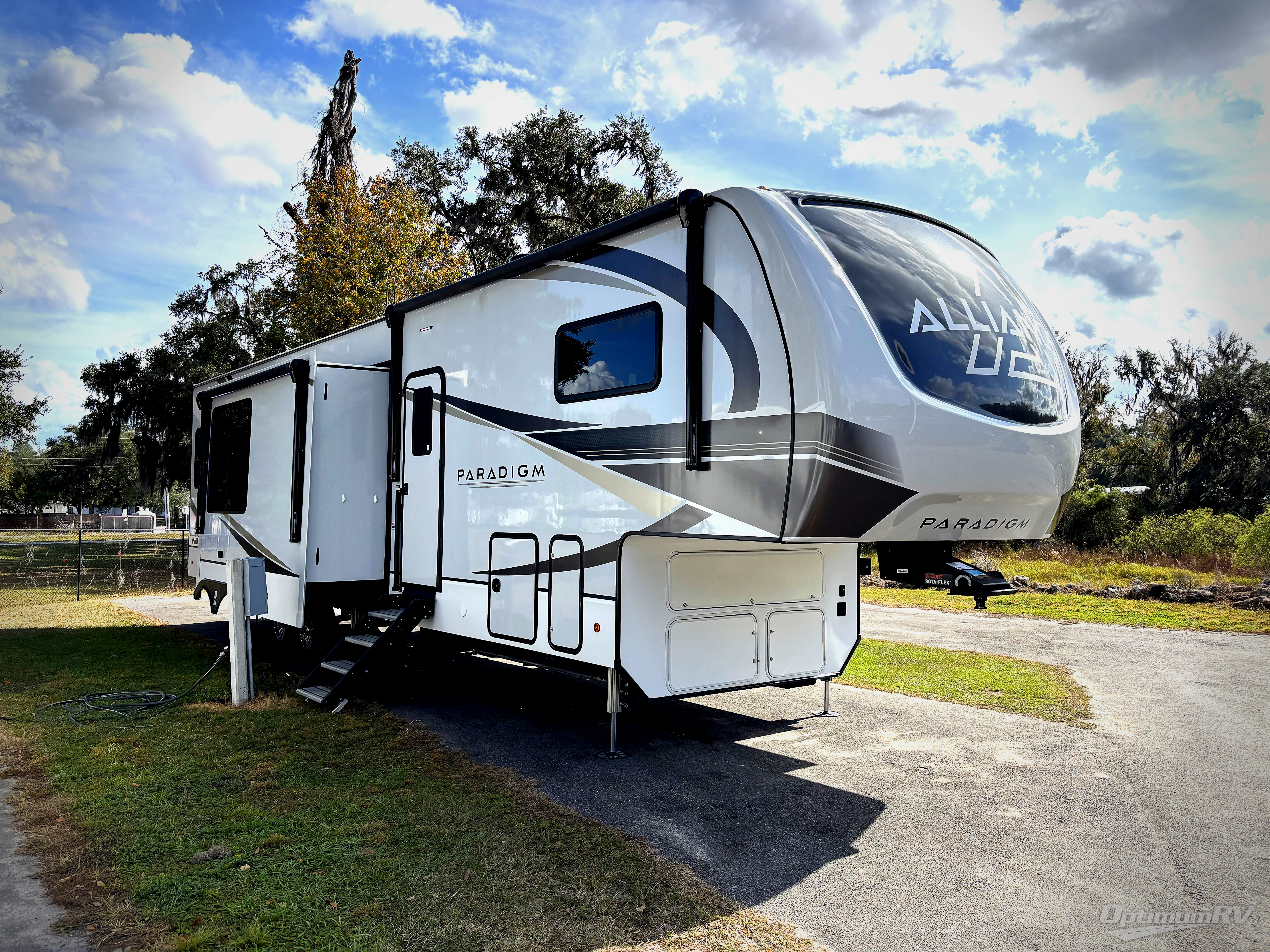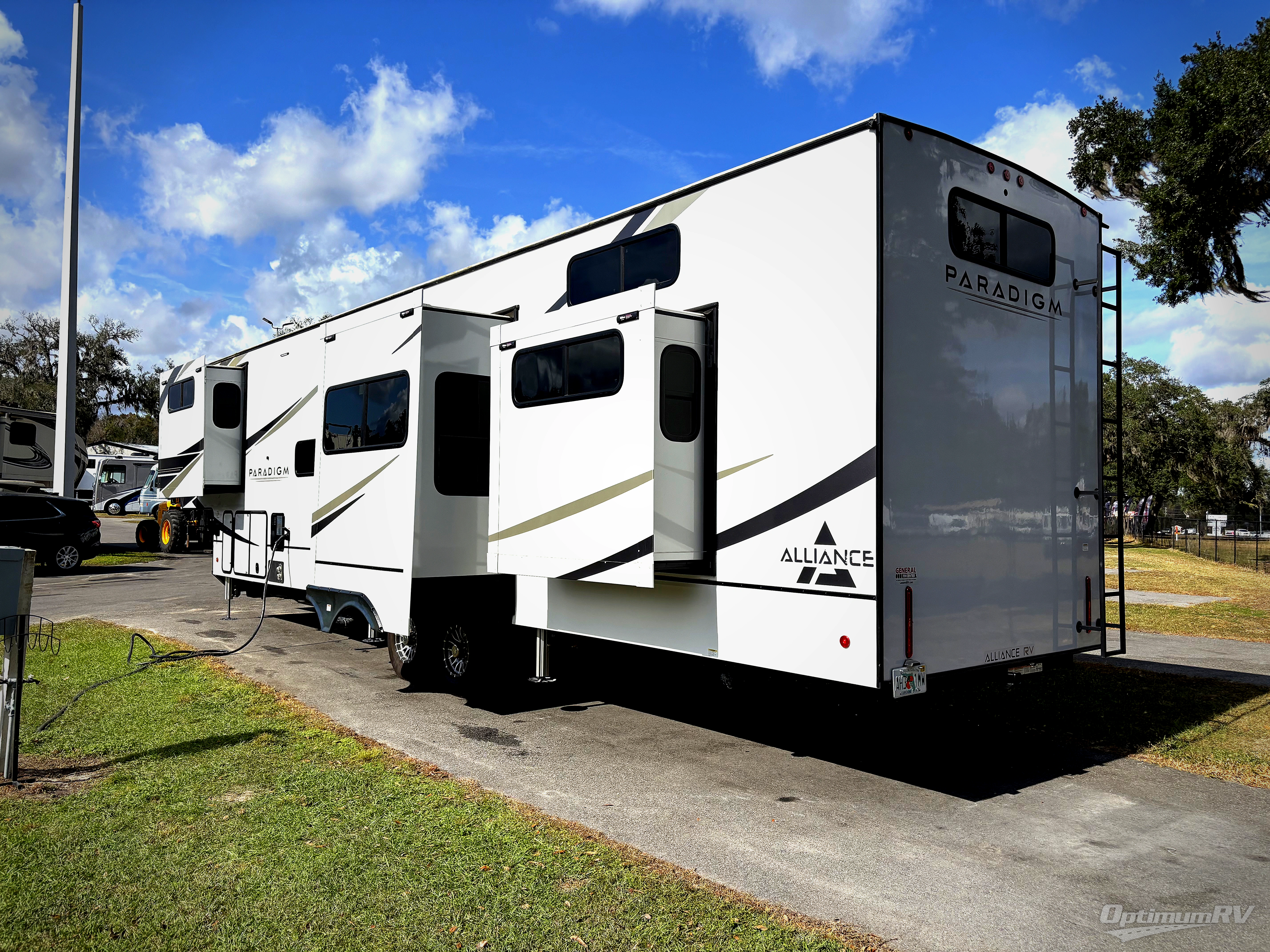The Paradigm fifth wheels by Alliance RV are functional, high-quality, and luxurious for an unforgettable camping experience. There are three A/C units and a 40K BTU furnace to keep you comfortable year around, and you'll appreciate additional convenient amenities, like the all-in-one enclosed/heated utility center and the color coded and numbered wiring. A Rota-Flex pin box comes standard for hassle-free towing, along with Super-G 4,400 lb. rated tires and Dexter 7,000 lb. axles. You'll love the kitchen with its LG solid surface countertops and Insignia range, plus there is LED motion lighting in the pantry and a Maxx fan with a rain sensor to keep everything fresh when making dinner. Each model also includes an HD Smart TV in the living room and bedroom, plus a Winegard Air 360 antenna to keep you connected to the outside world. And of course there are a variety of options you can choose from to further customize your fifth wheel; dual pane windows, Super Solar Plus, slide out awning toppers, and generator prep or a generator to name a few!
