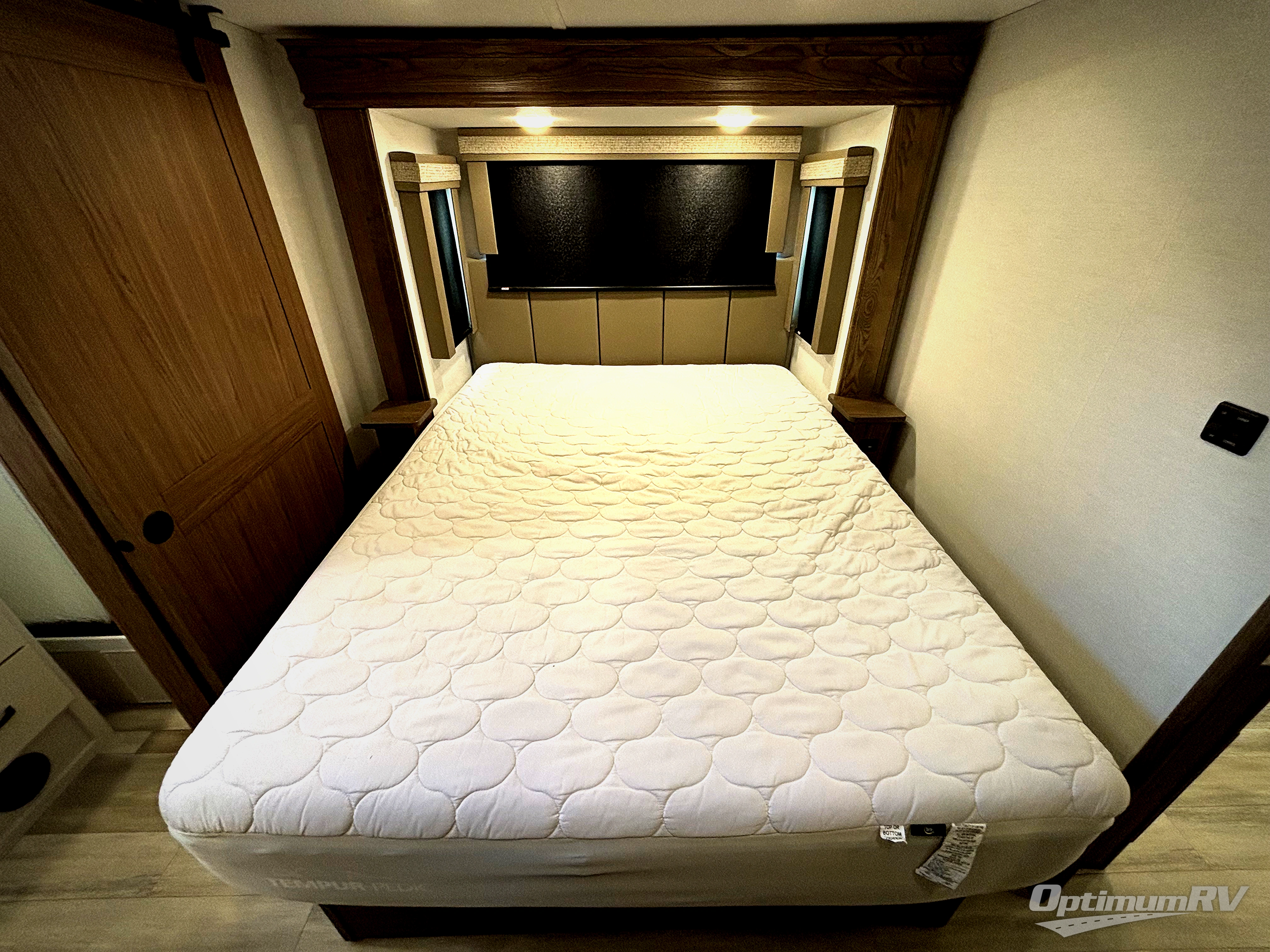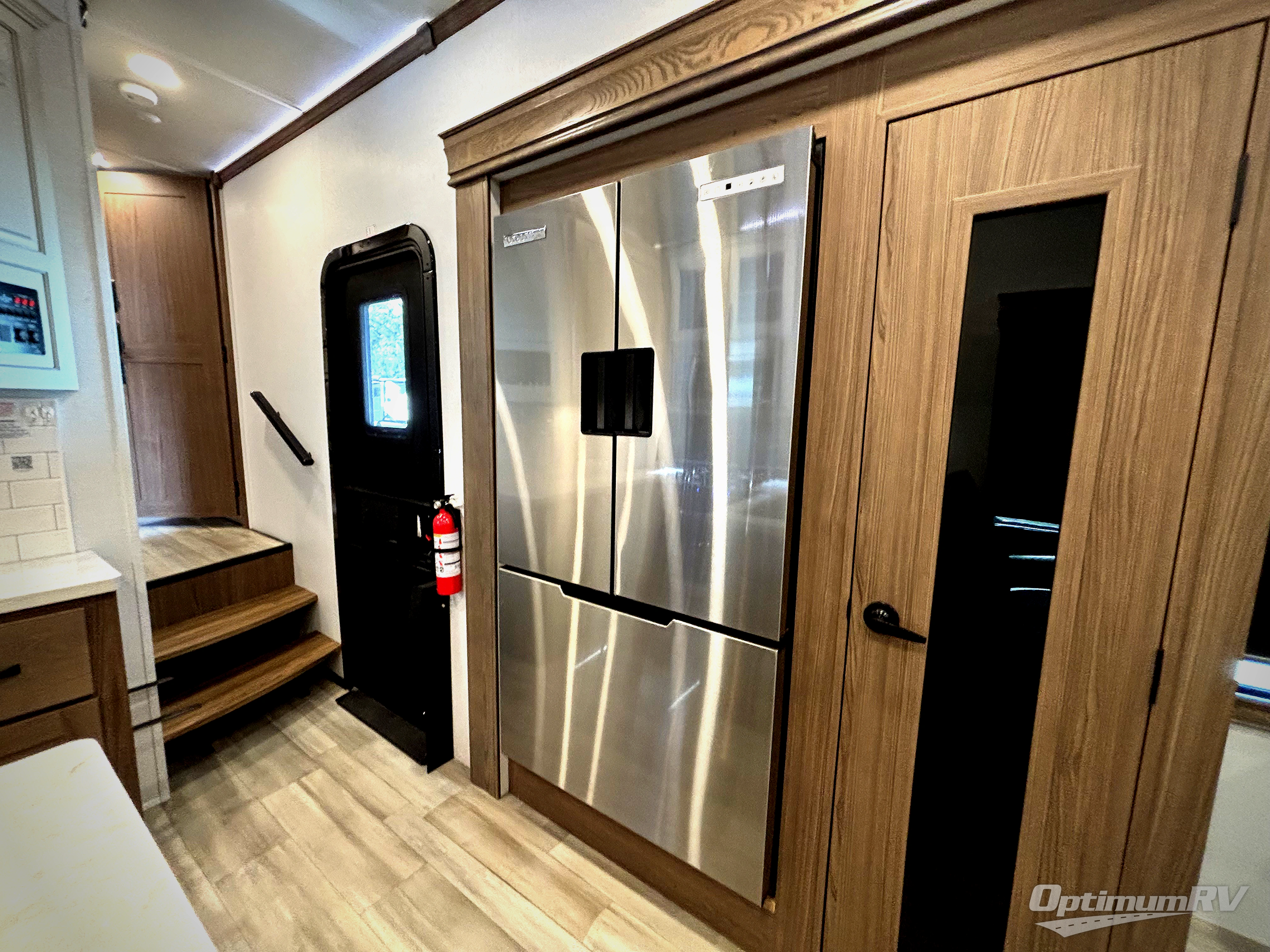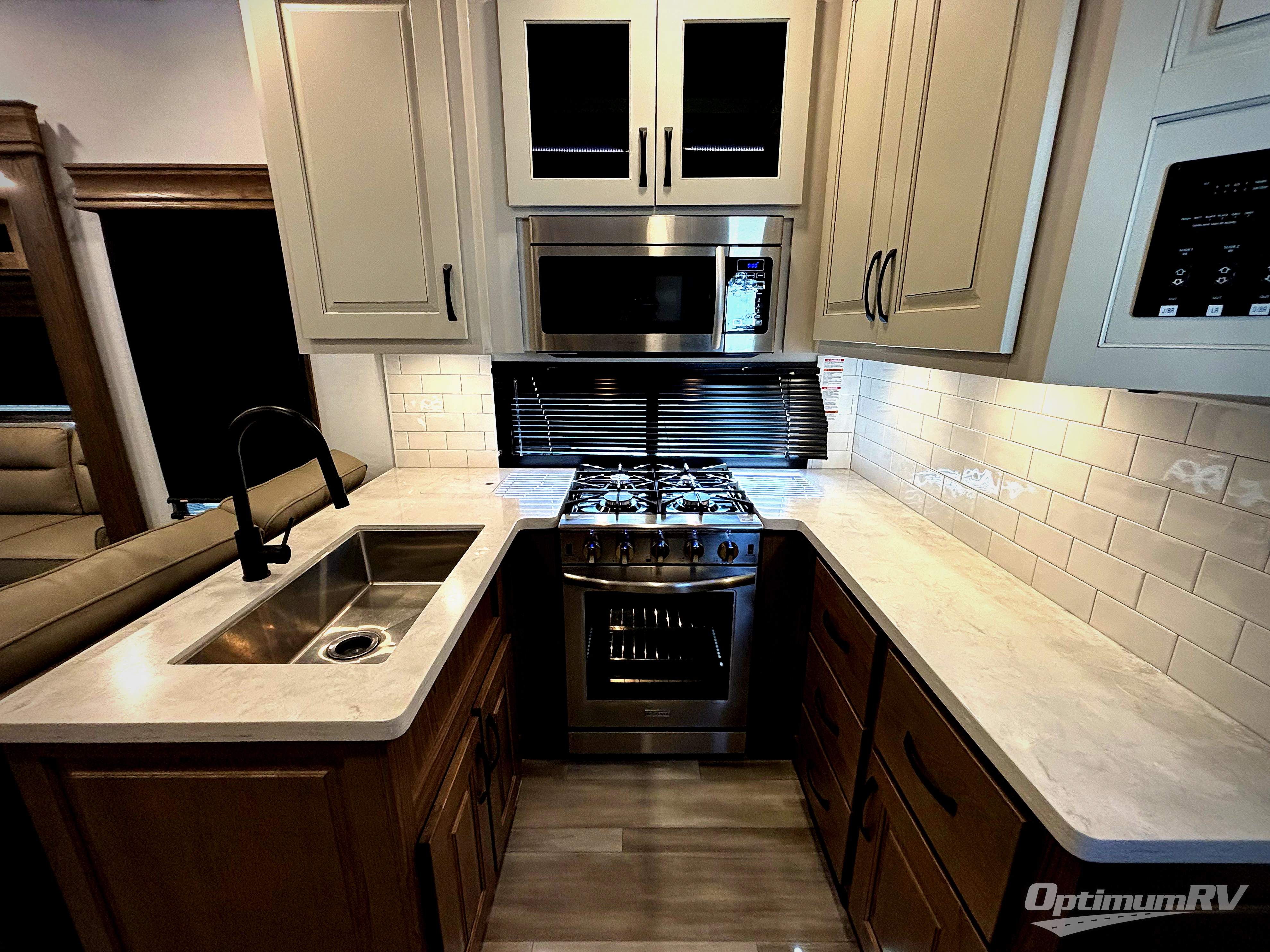 The Paradigm fifth wheels by Alliance RV are functional, high-quality, and luxurious for an unforgettable camping experience. There are three A/C units and a 40K BTU furnace to keep you comfortable year around, and you'll appreciate additional convenient amenities, like the all-in-one enclosed/heated utility center and the color coded and numbered wiring. A Rota-Flex pin box comes standard for hassle-free towing, along with Super-G 4,400 lb. rated tires and Dexter 7,000 lb. axles. You'll love the kitchen with its LG solid surface countertops and Insignia range, plus there is LED motion lighting in the pantry and a Maxx fan with a rain sensor to keep everything fresh when making dinner. Each model also includes an HD Smart TV in the living room and bedroom, plus a Winegard Air 360 antenna to keep you connected to the outside world. And of course there are a variety of options you can choose from to further customize your fifth wheel; dual pane windows, Super Solar Plus, slide out awning toppers, and generator prep or a generator to name a few!