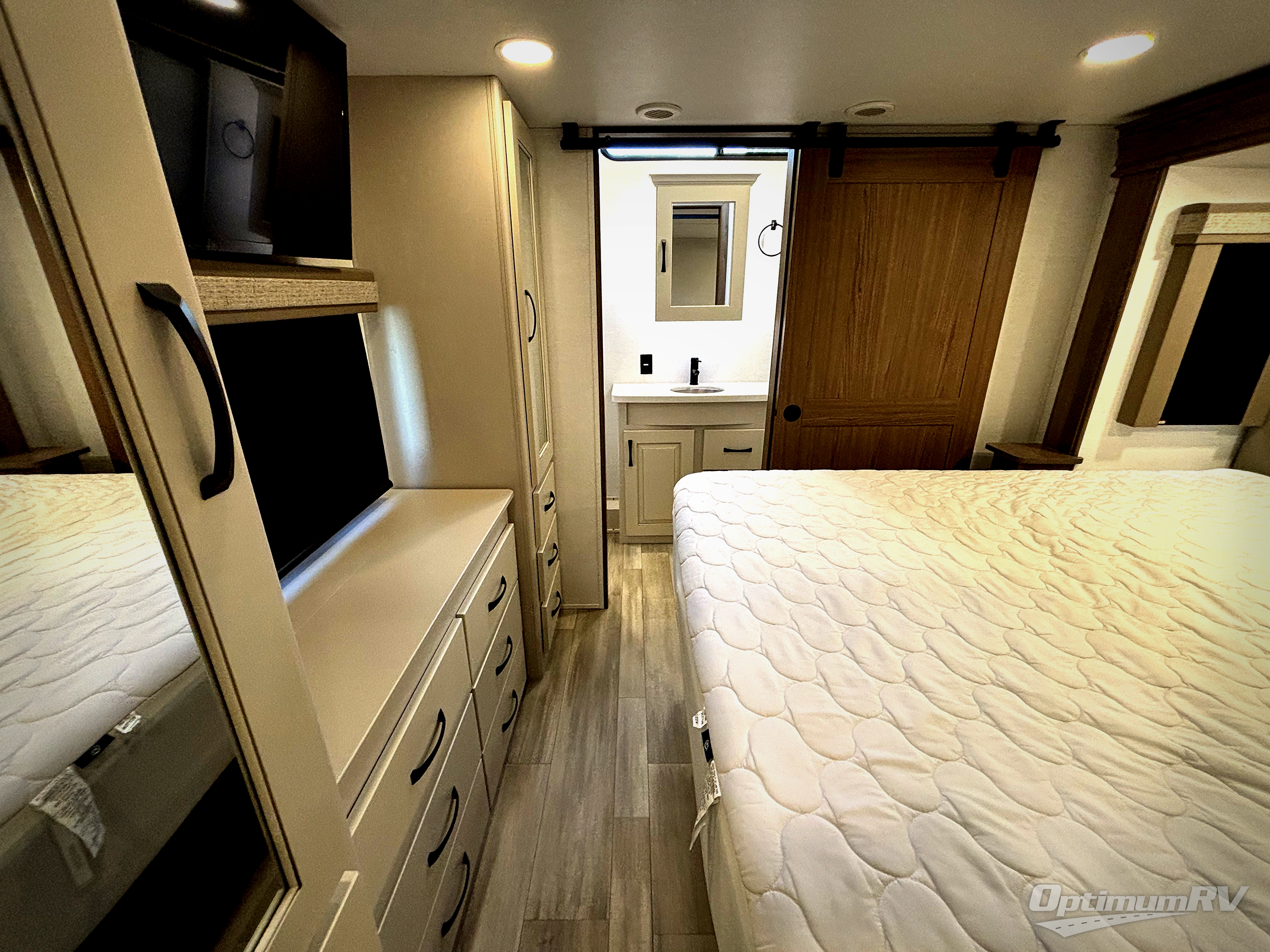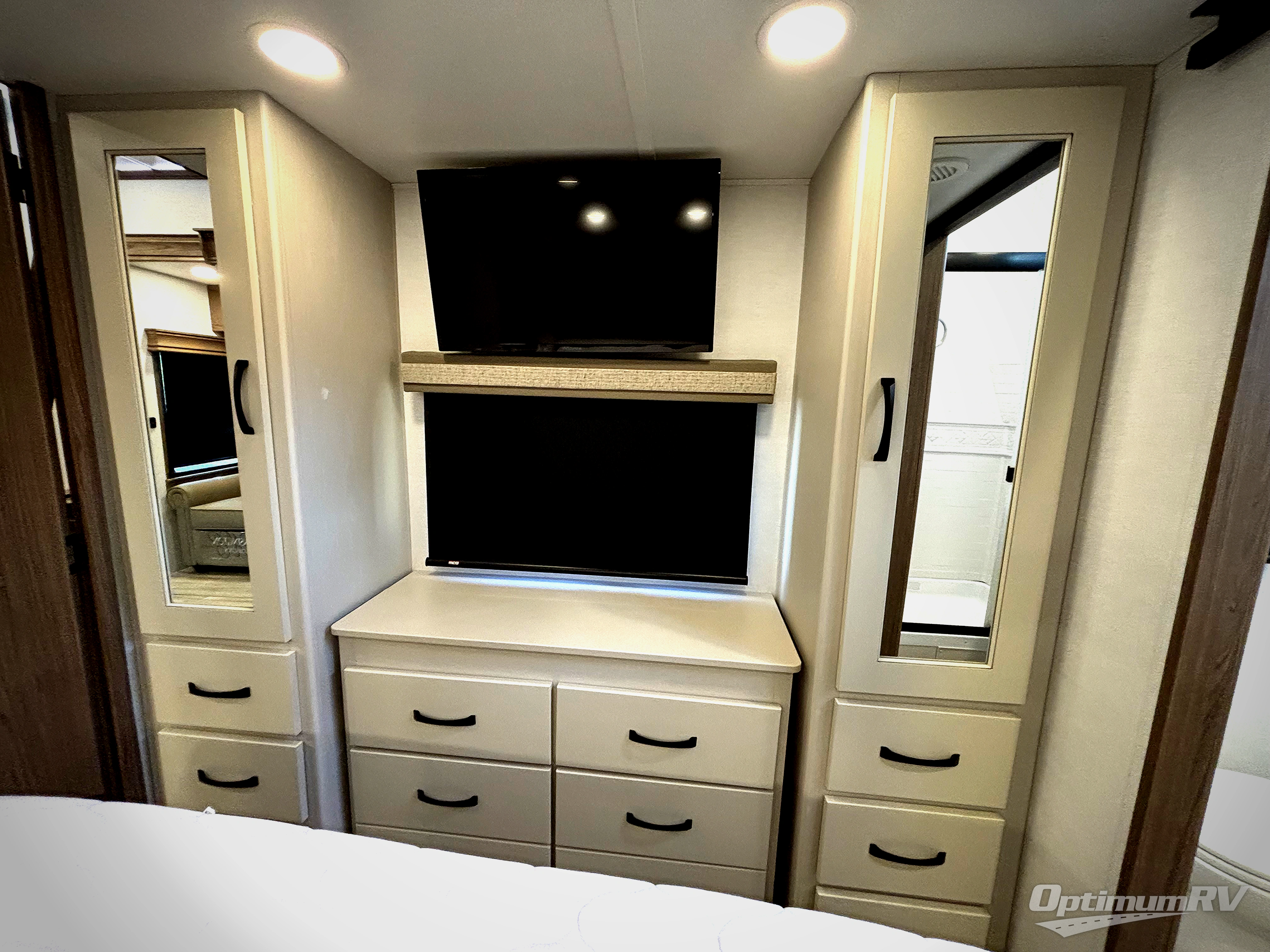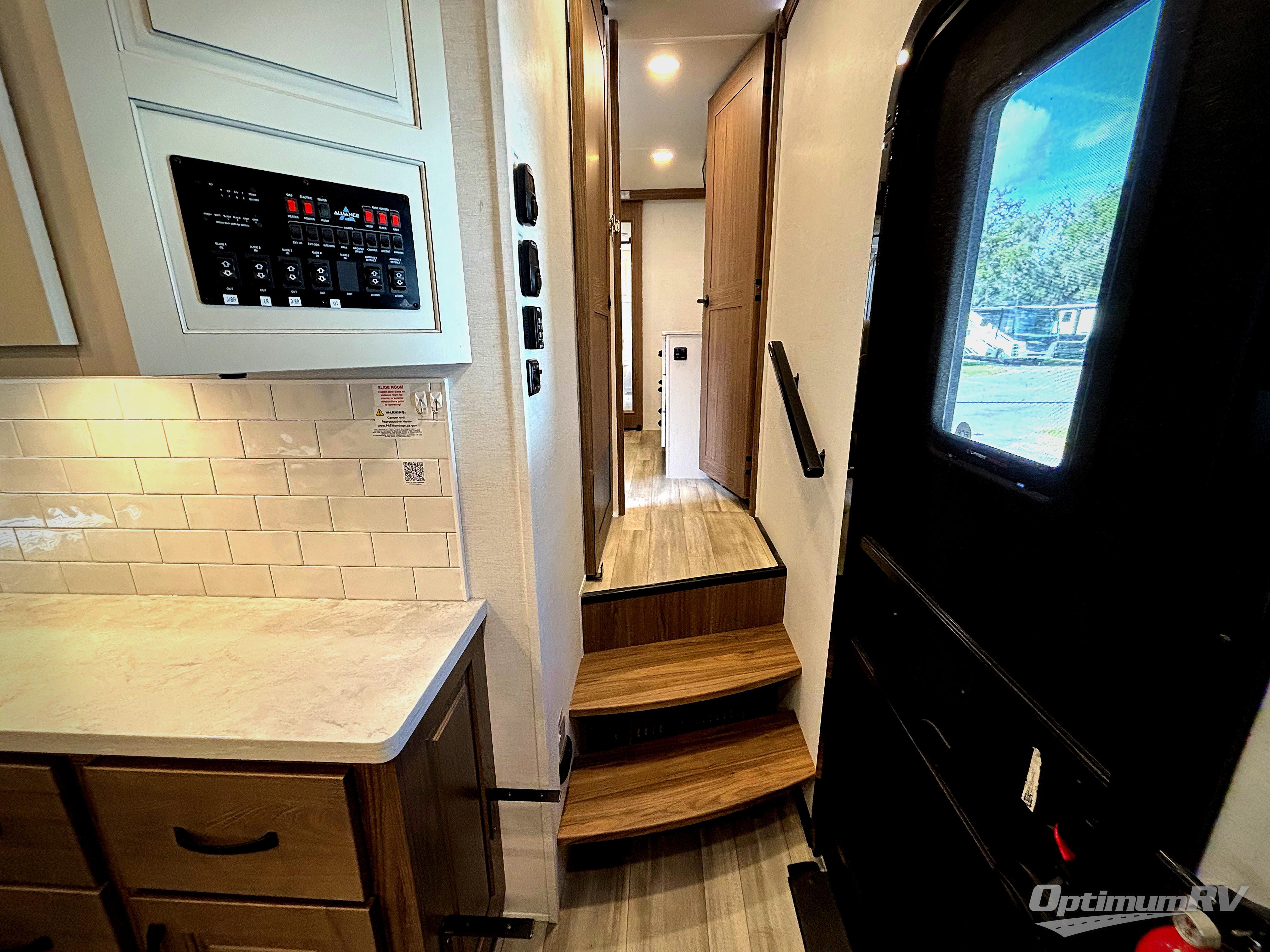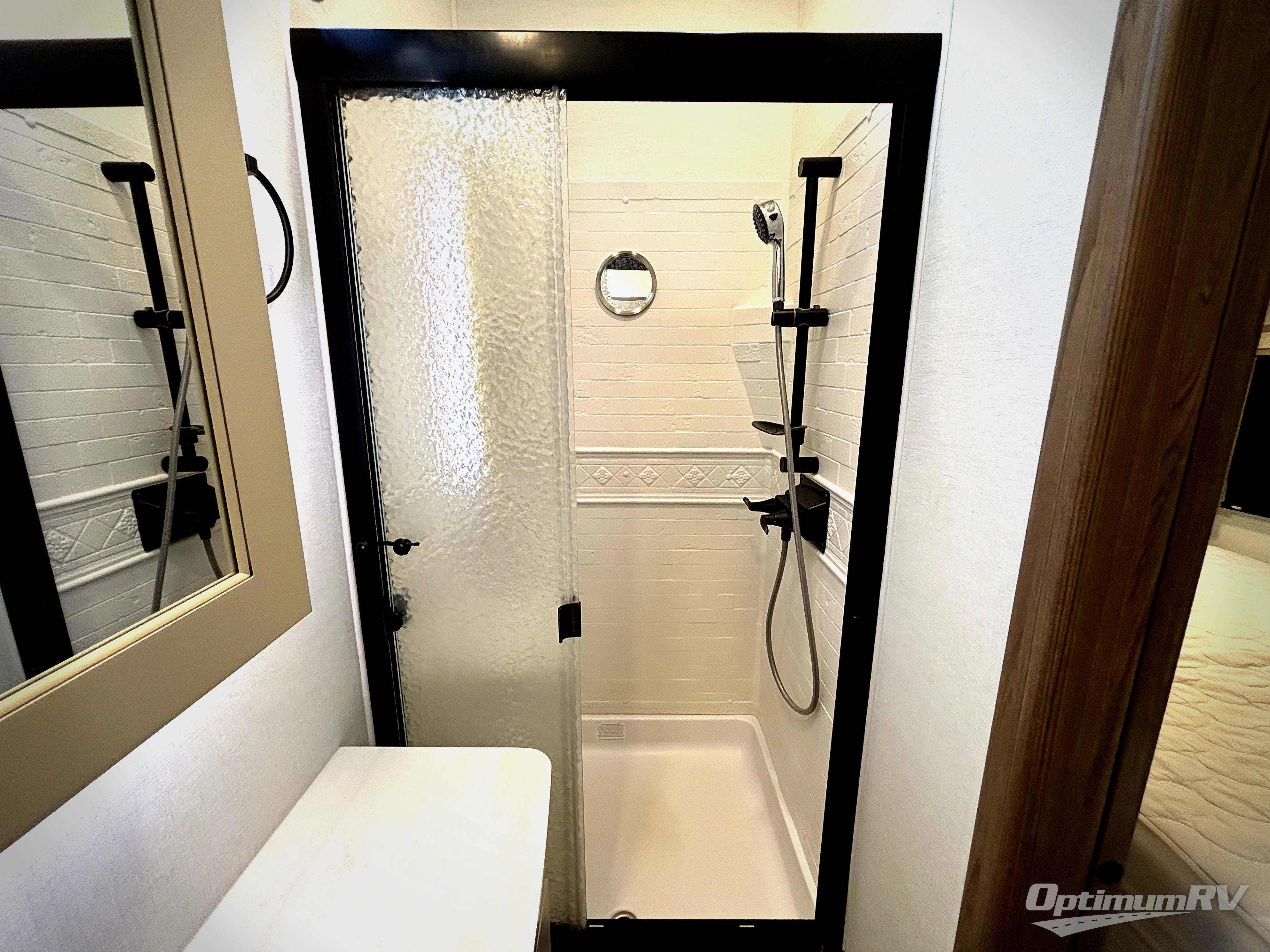 The Paradigm fifth wheels by Alliance RV are functional, high-quality, and luxurious for an unforgettable camping experience. There are three A/C units and a 40K BTU furnace to keep you comfortable year around, and you'll appreciate additional convenient amenities, like the all-in-one enclosed/heated utility center and the color coded and numbered wiring. A Rota-Flex pin box comes standard for hassle-free towing, along with Super-G 4,400 lb. rated tires and Dexter 7,000 lb. axles. You'll love the kitchen with its LG solid surface countertops and Insignia range, plus there is LED motion lighting in the pantry and a Maxx fan with a rain sensor to keep everything fresh when making dinner. Each model also includes an HD Smart TV in the living room and bedroom, plus a Winegard Air 360 antenna to keep you connected to the outside world. And of course there are a variety of options you can choose from to further customize your fifth wheel; dual pane windows, Super Solar Plus, slide out awning toppers, and generator prep or a generator to name a few!