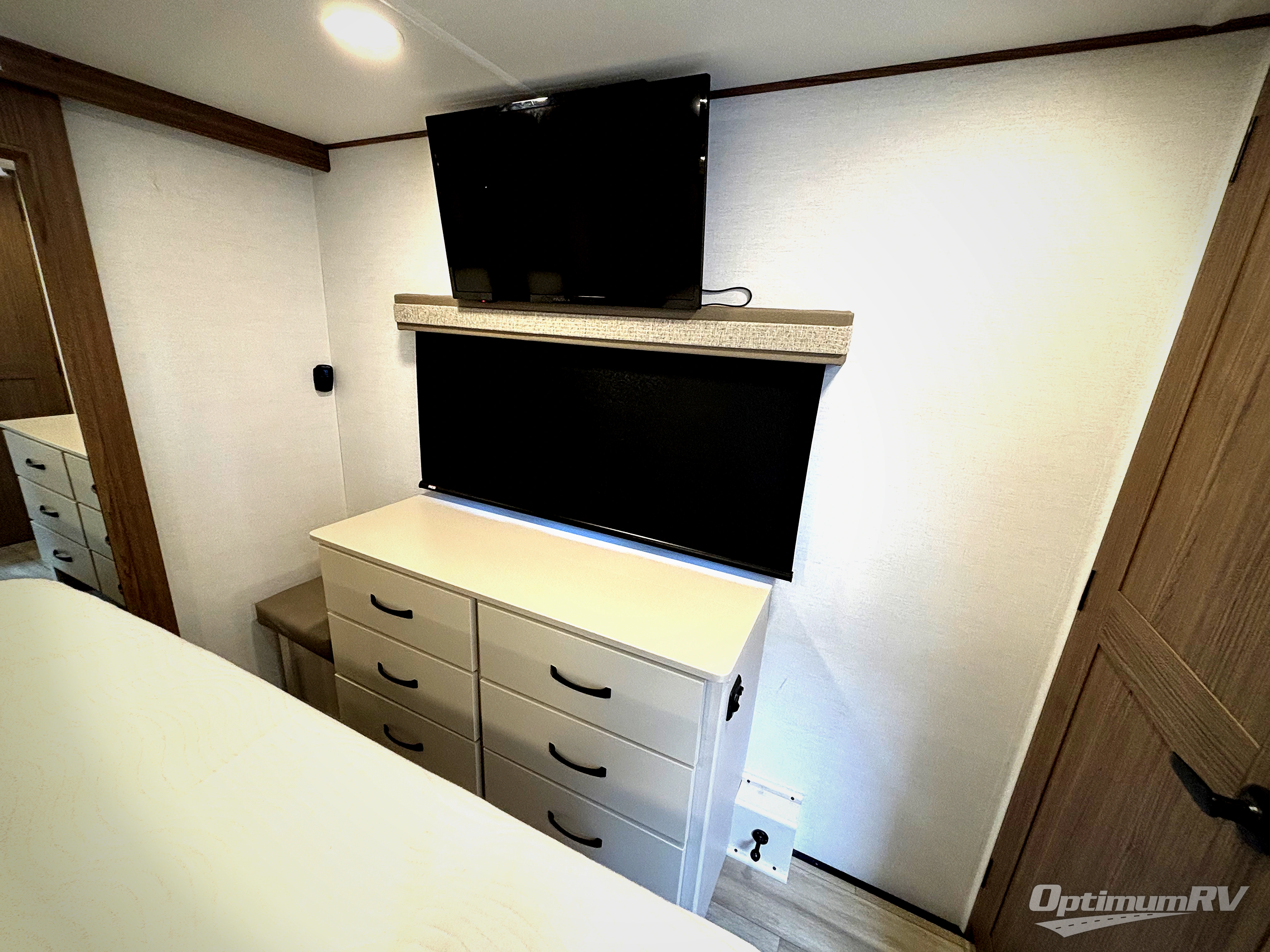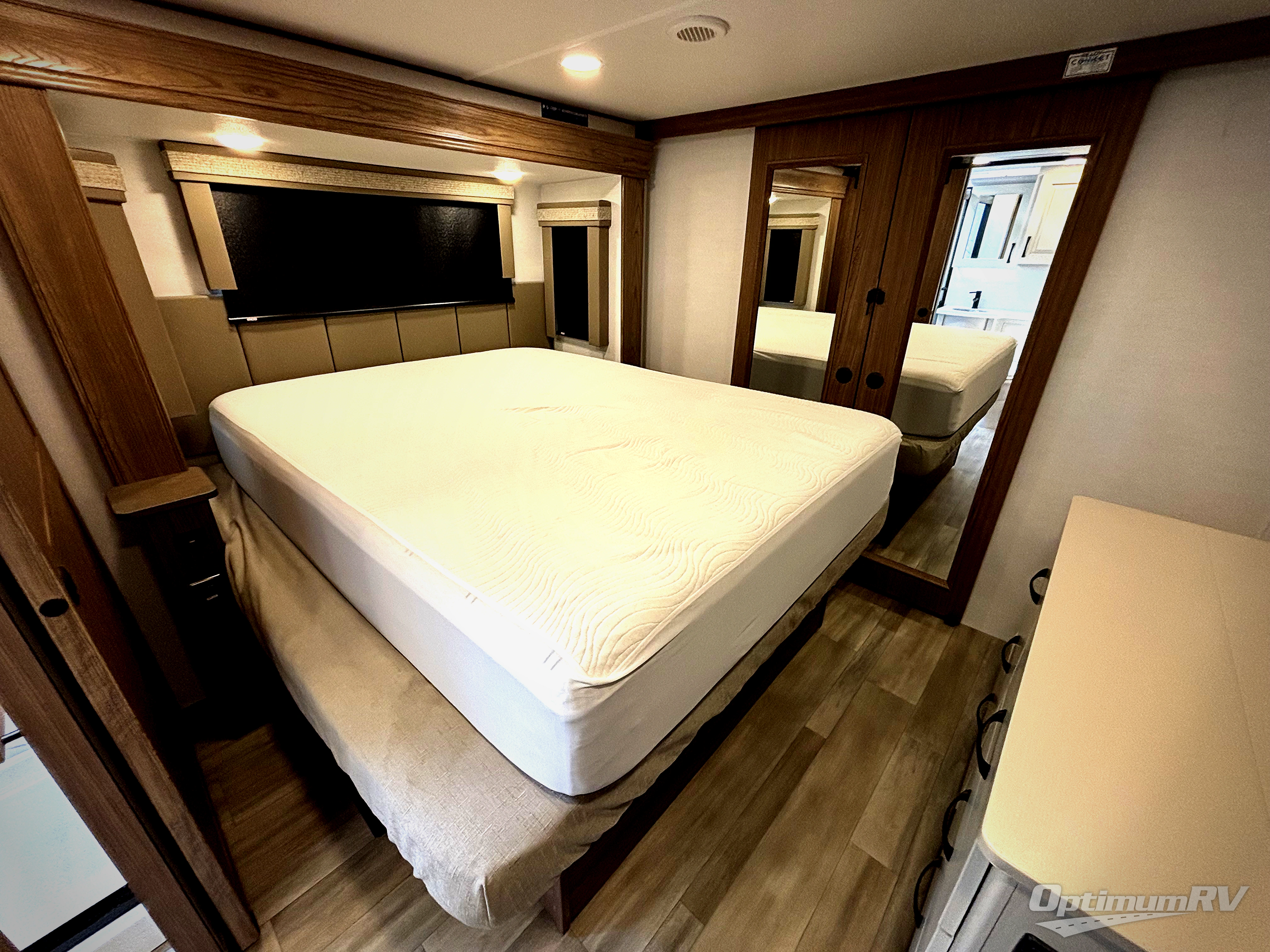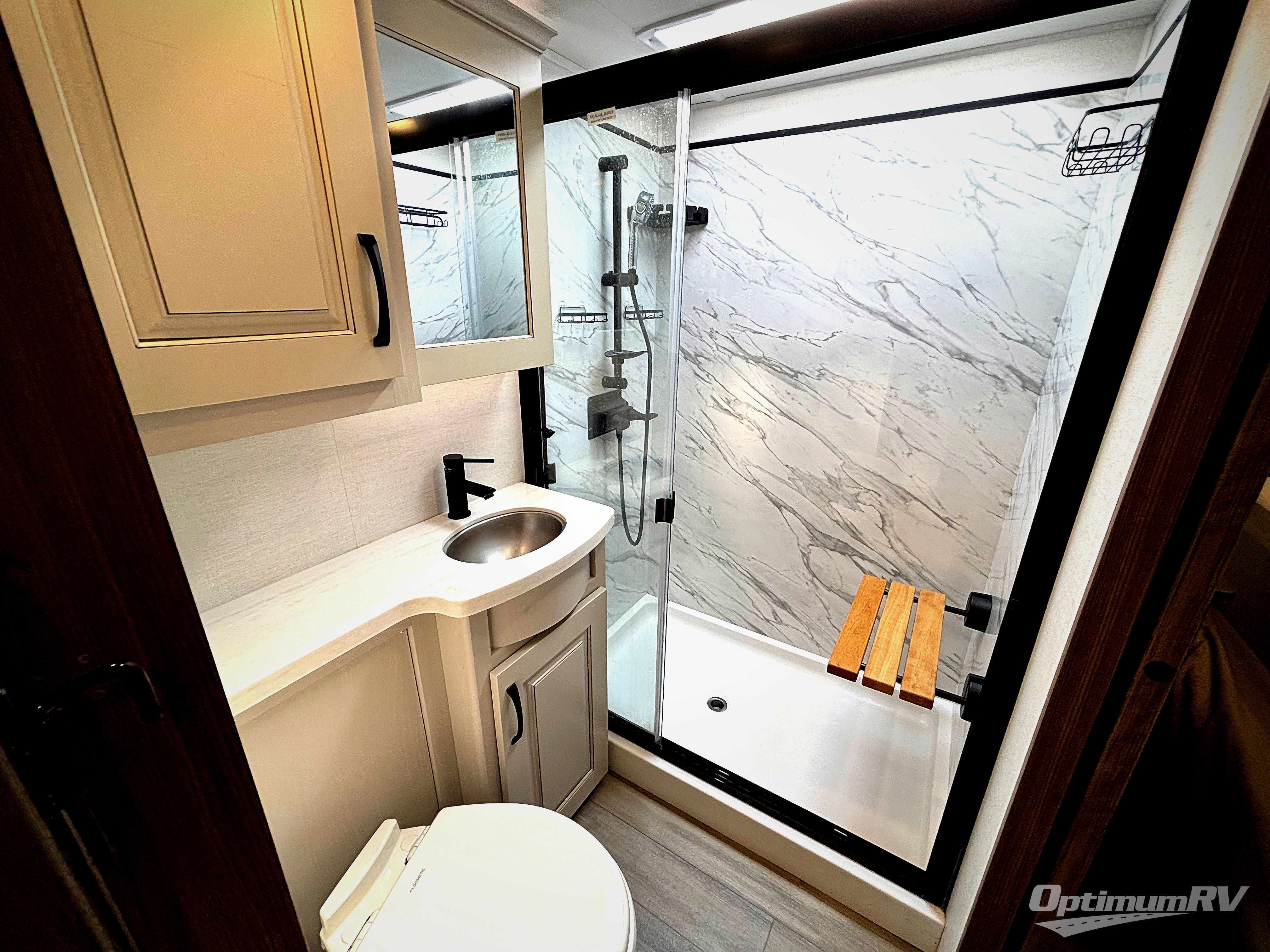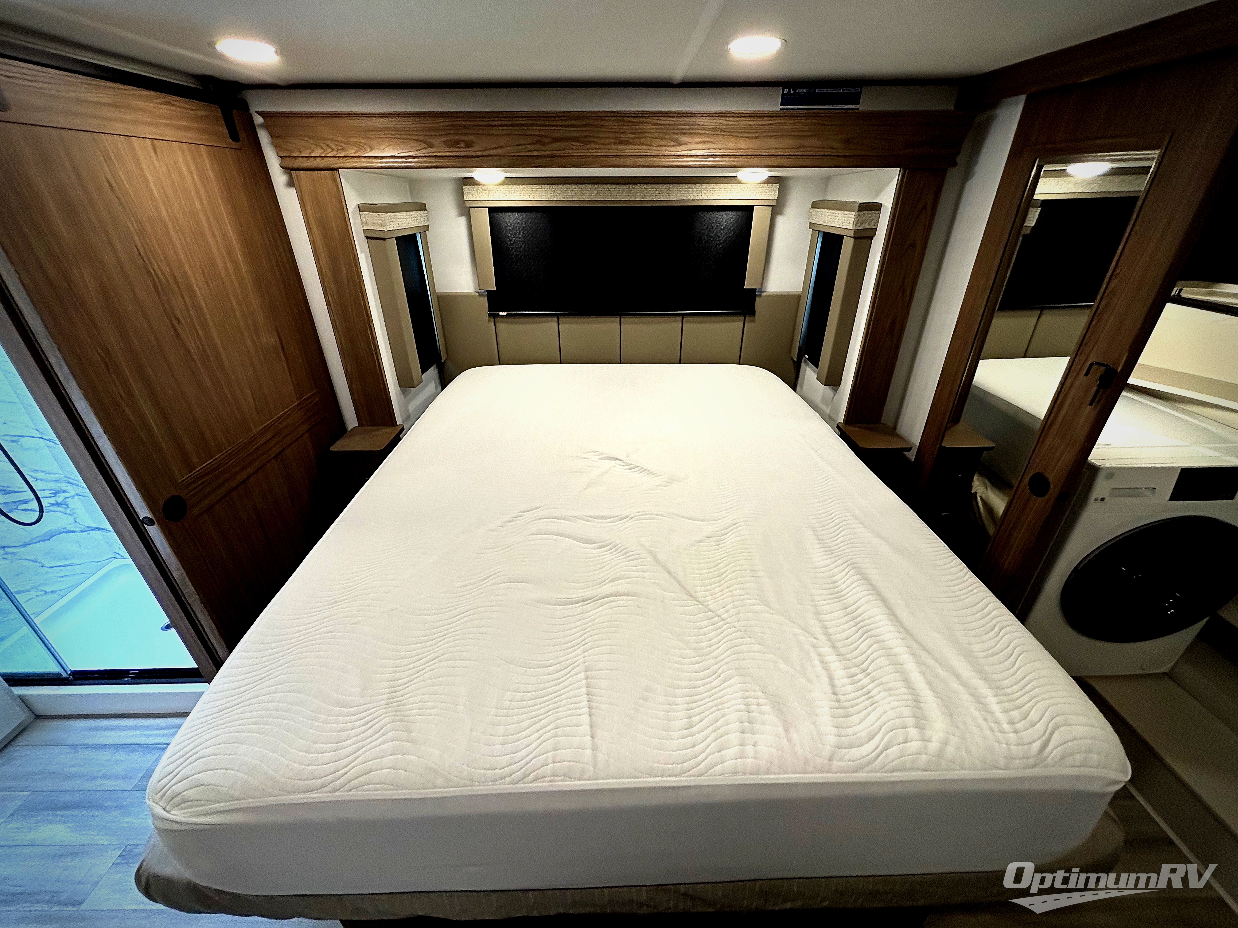 A spacious unit with sleeping for eight with plenty of choices to suit everyone! There is a front private bedroom with a king size bed that offers a large full front closet that has also been prepped for a washer and dryer if you choose that option. The front bath features a 40" x 30" shower and dual entry. Head down to the kitchen and living space at the bottom of the stairs to find a curbside slide that houses the 19 cu. ft. residential refrigerator, a pantry, and a dinette with four chairs. As you continue on toward the rear of this coach, you will find a spacious living area along the roadside with a 50" Smart TV and a fireplace, a sofa sleeper slide, and a dual reclining loveseat. This makes a great gathering place for television watching, game playing, and even added sleeping space if needed at night. The rear private bedroom with its own private bath features a queen bed, two closets, and a Smart TV as well. The multipurpose loft area above can be accessed just before this rear bedroom entry by a ladder, and it is perfect for extra storage, or it can be used for added sleeping that the kiddos are sure to love.