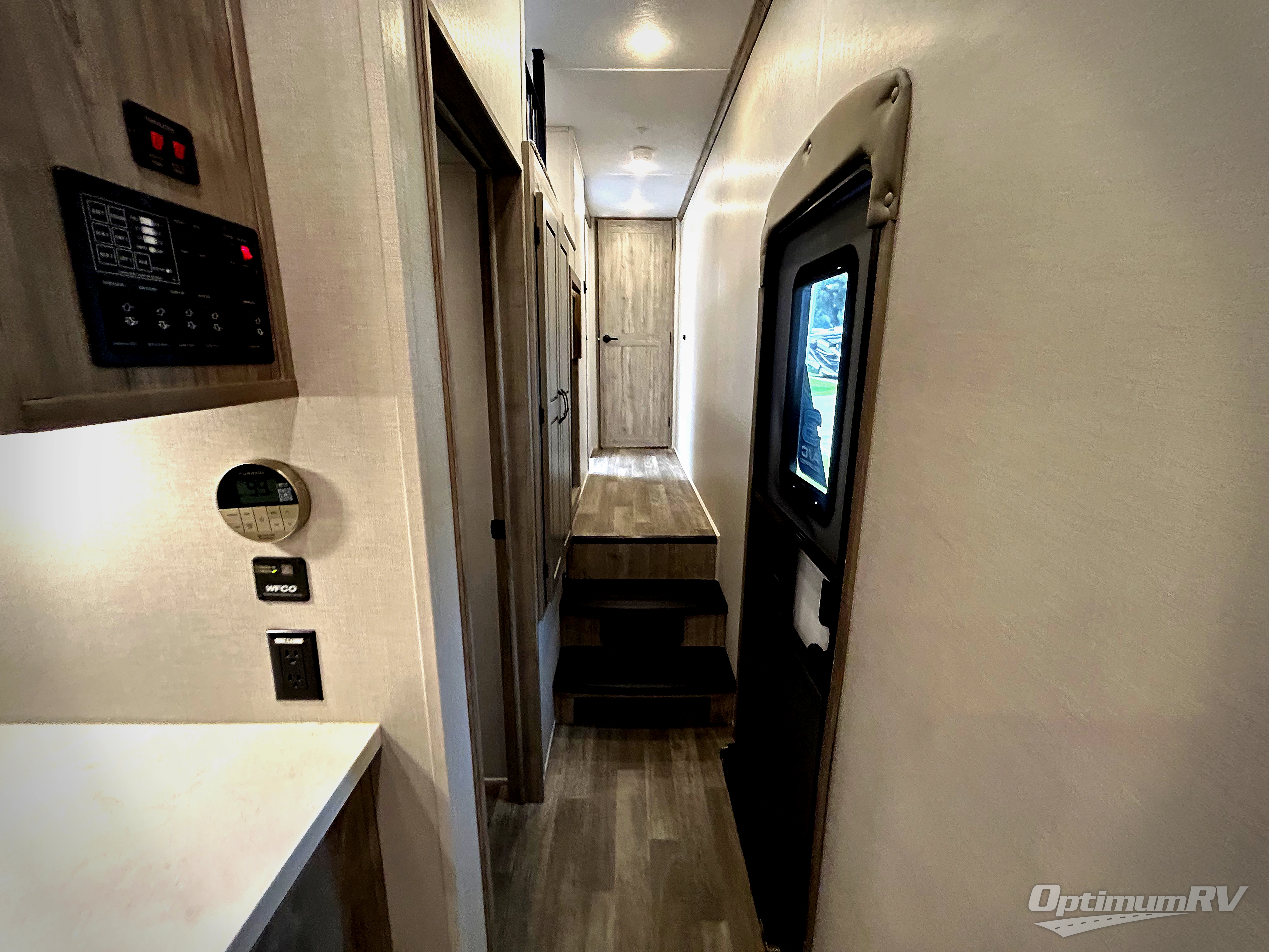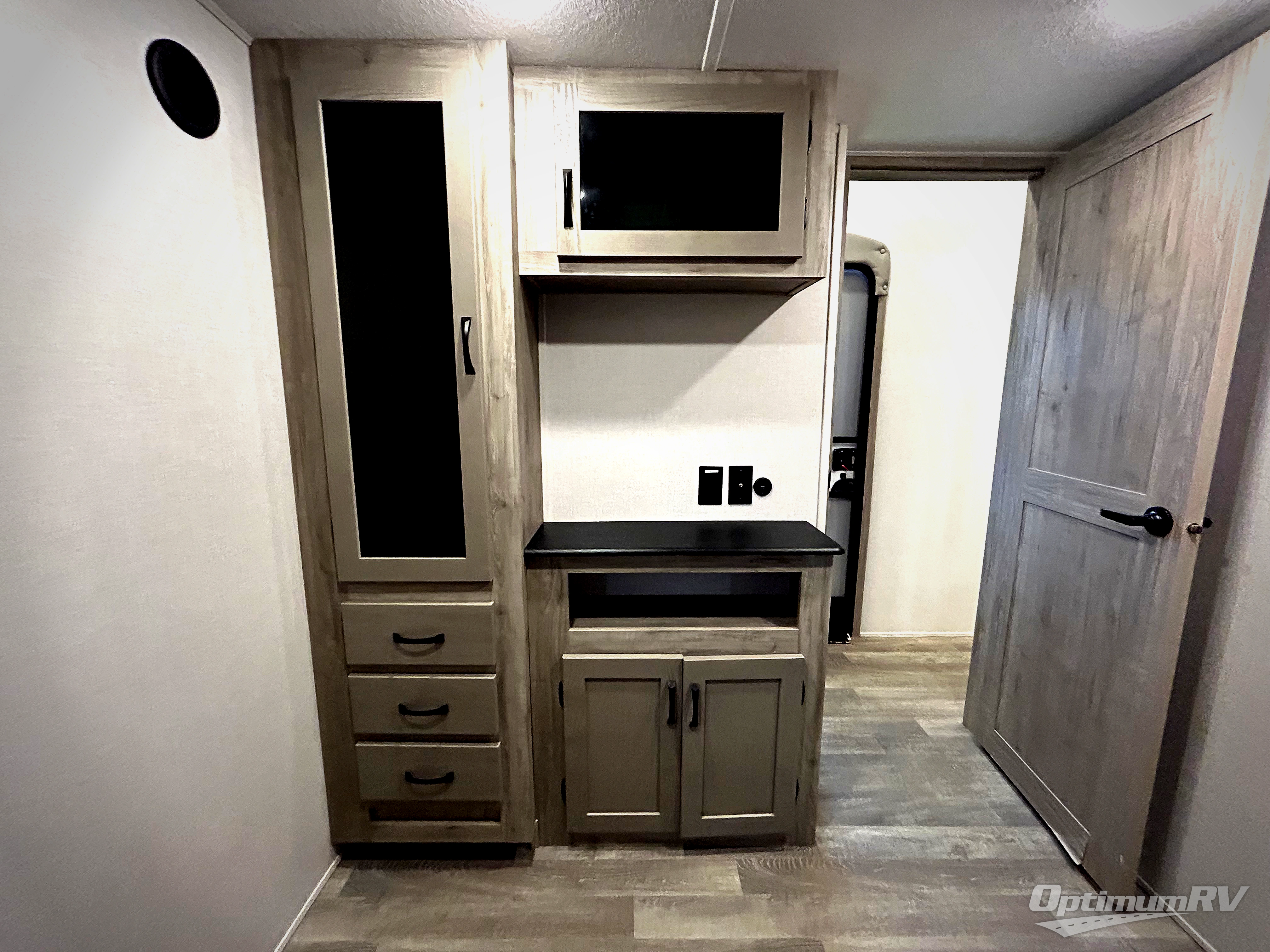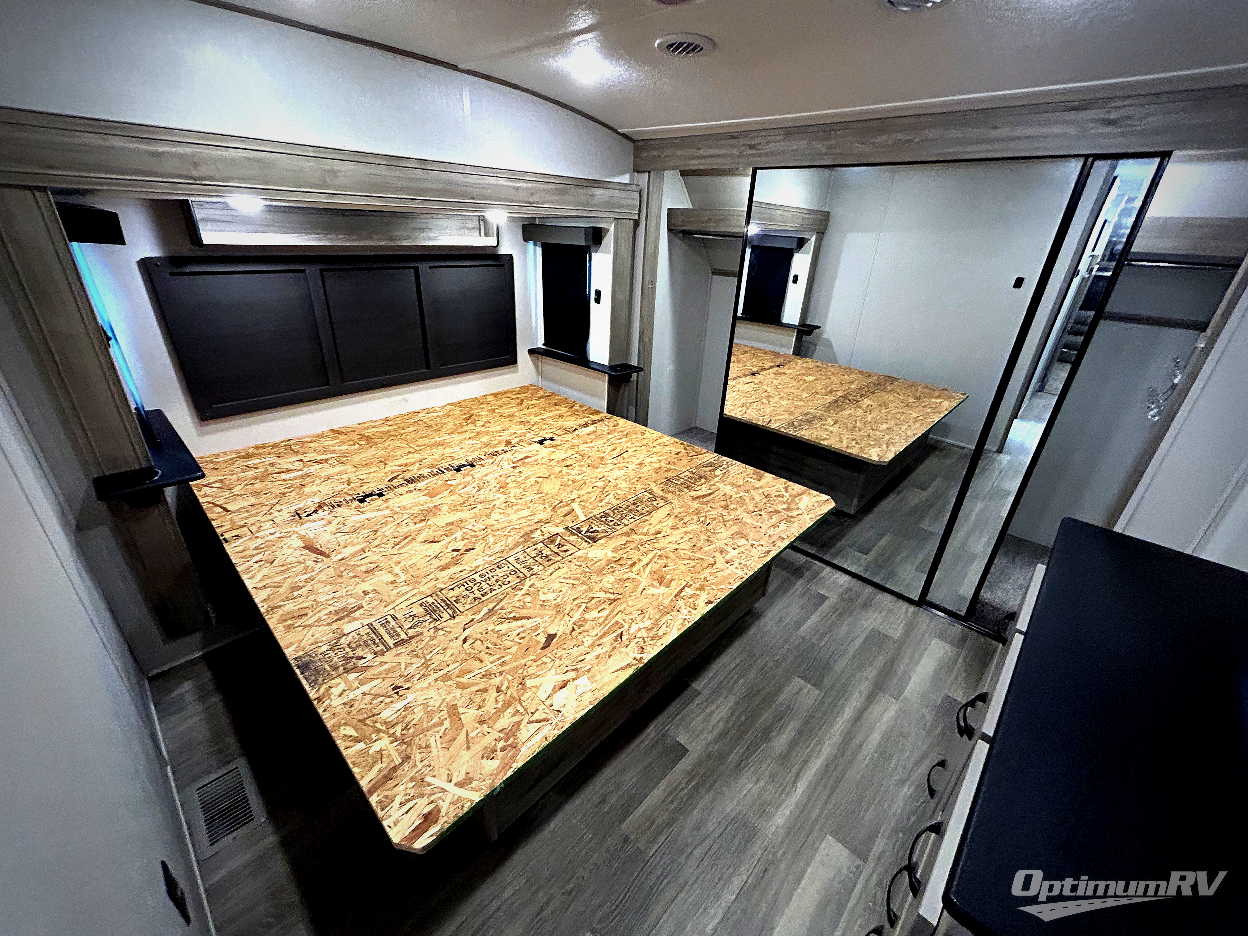 Each Chaparral mid-profile fifth wheel by Coachmen is designed with residential features, loads of storage space, and roomy bedroom suites to make you feel right at home. The durable construction means you can enjoy your RV for years to come. There's 6X double Azdel aluminum cage sidewall system, Weather Shield+ technology, and Tri-Tex powder coated frame technology that will allow you to camp year around. Each model includes a Winegard Air 360 HDTV/radio dome antenna and an AM/FM stereo with Bluetooth and USB ports to keep you entertained, plus roller night shades and a modern electric fireplace to make your space cozy. There is also a large transom window in the kitchen, a modern high-rise faucet, LED motion sensor lights in the bathroom, plus a full-size shower with glass doors and a seat. Now that's what I call luxury! Choose a Chaparral fifth wheel today!