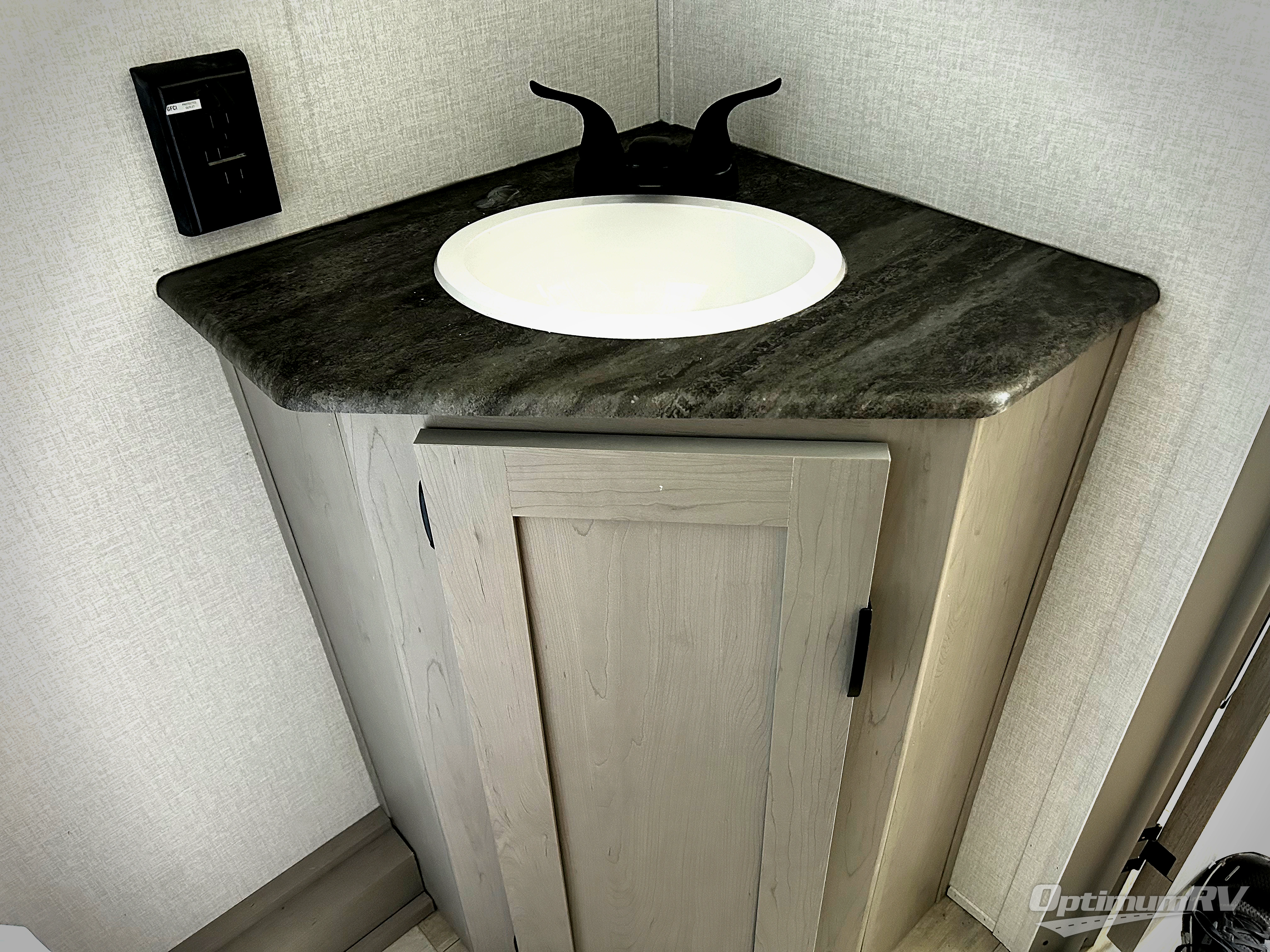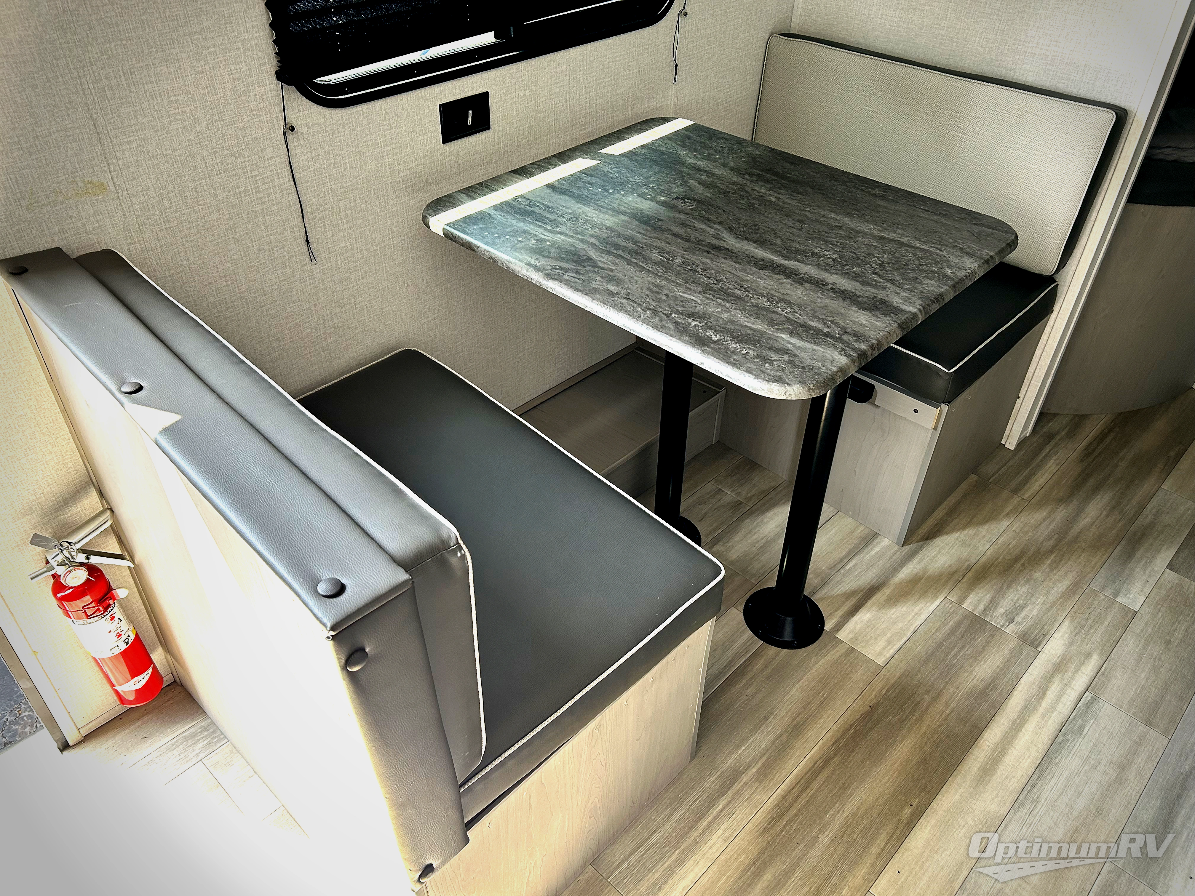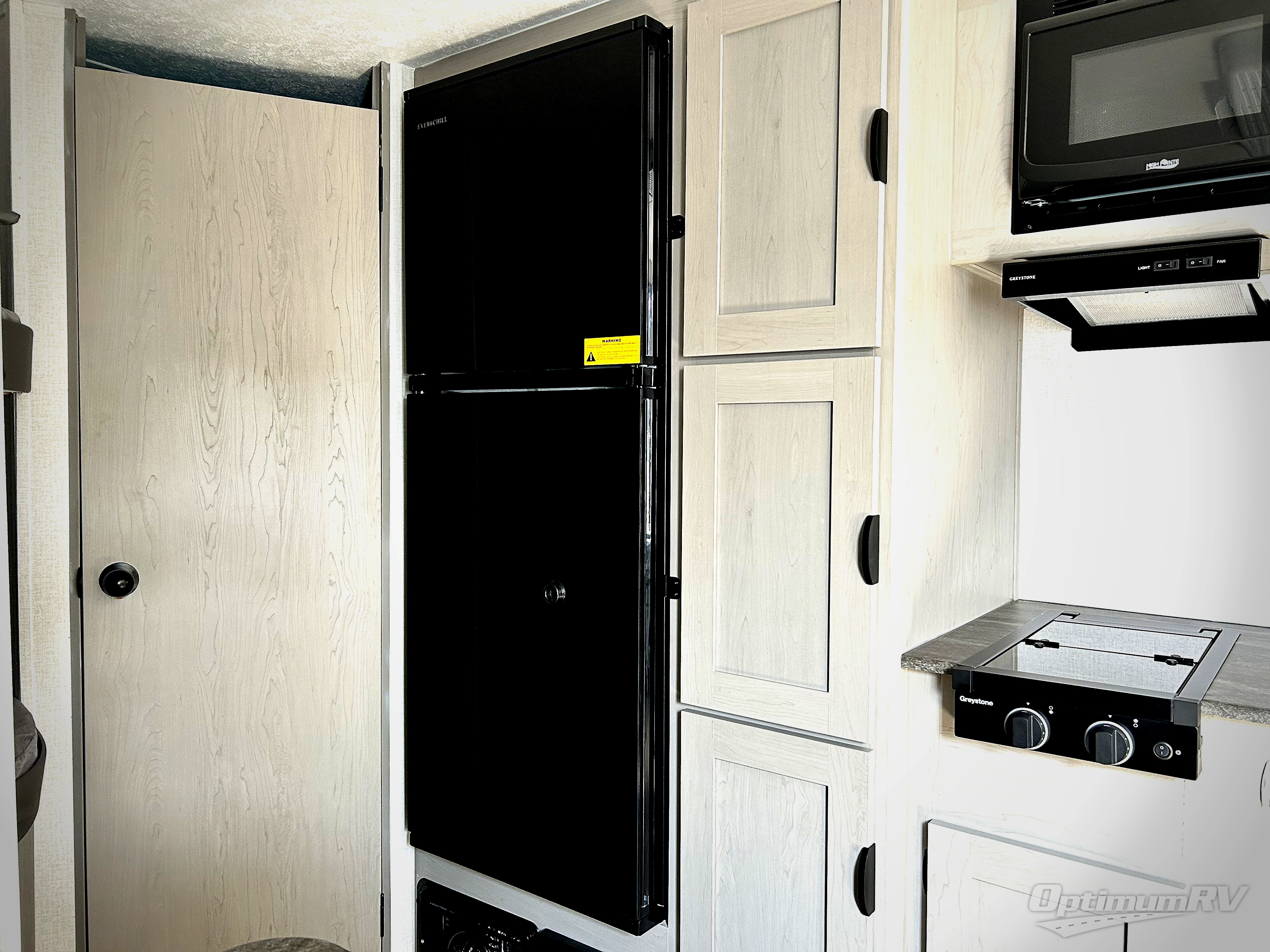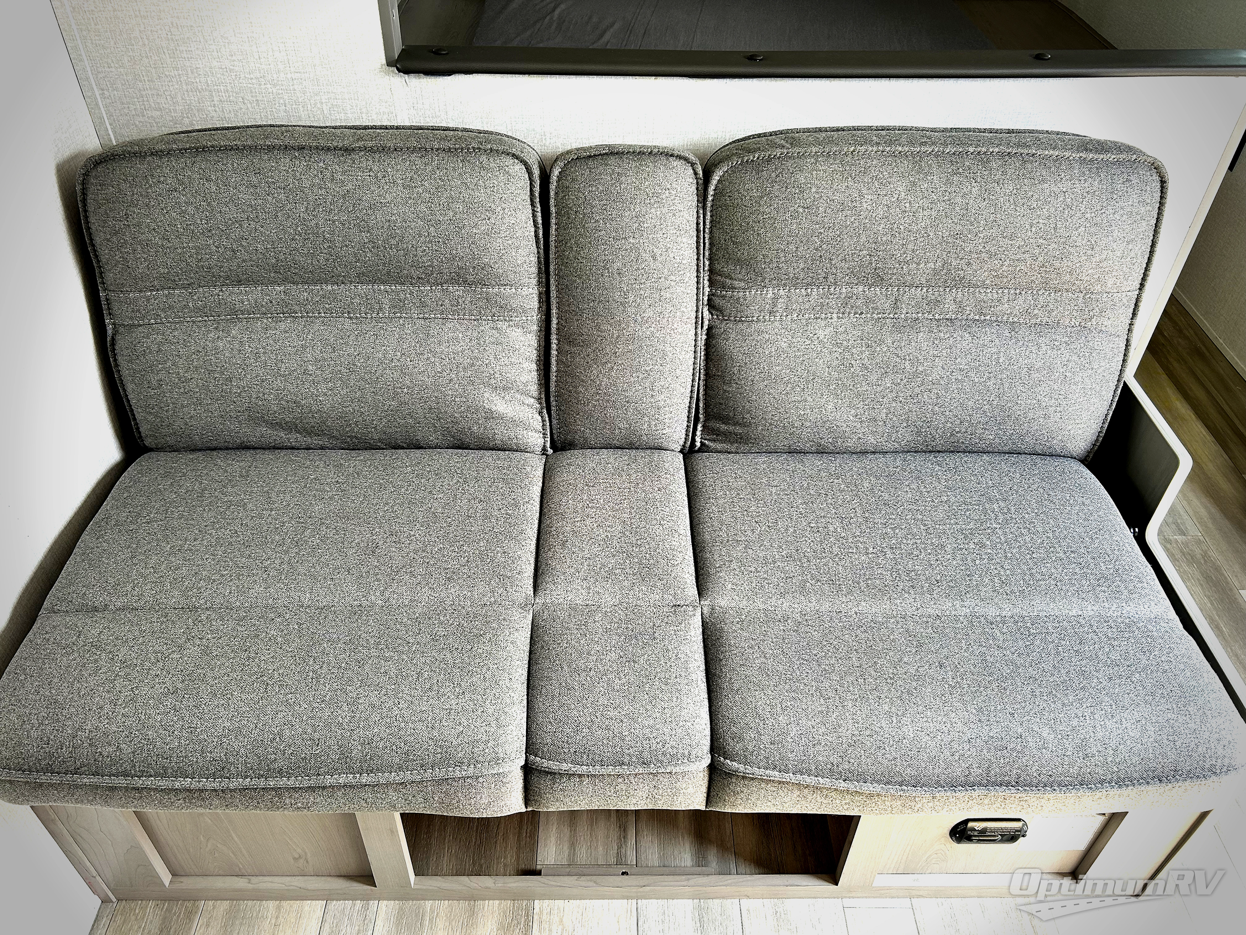 Bring the whole family with you in this travel trailer! The kiddos can sleep on the rear corner set of double bed bunks. The opposite rear corner features a full bath including a 24" x 36" shower, linen cabinet, toilet, and vanity with medicine cabinet overhead. In the main living space you will find plenty of seating with a booth dinette and jackknife sofa which can also transform into an extra sleeping space if needed. Everyone's bellies will stay full with the two burner cooktop, 11 cu. ft. 12-volt refrigerator, and microwave which you can use to pop a bag of popcorn for movie night. You will enjoy the front bedroom for a bit of privacy including a queen bed and large overhead cabinet for your things. On the outside, a large front pass-through for lawn chairs and camp gear. There is more storage beneath the double bed bunks in back and a nice 10' awning to provide protection from the elements when outdoors.