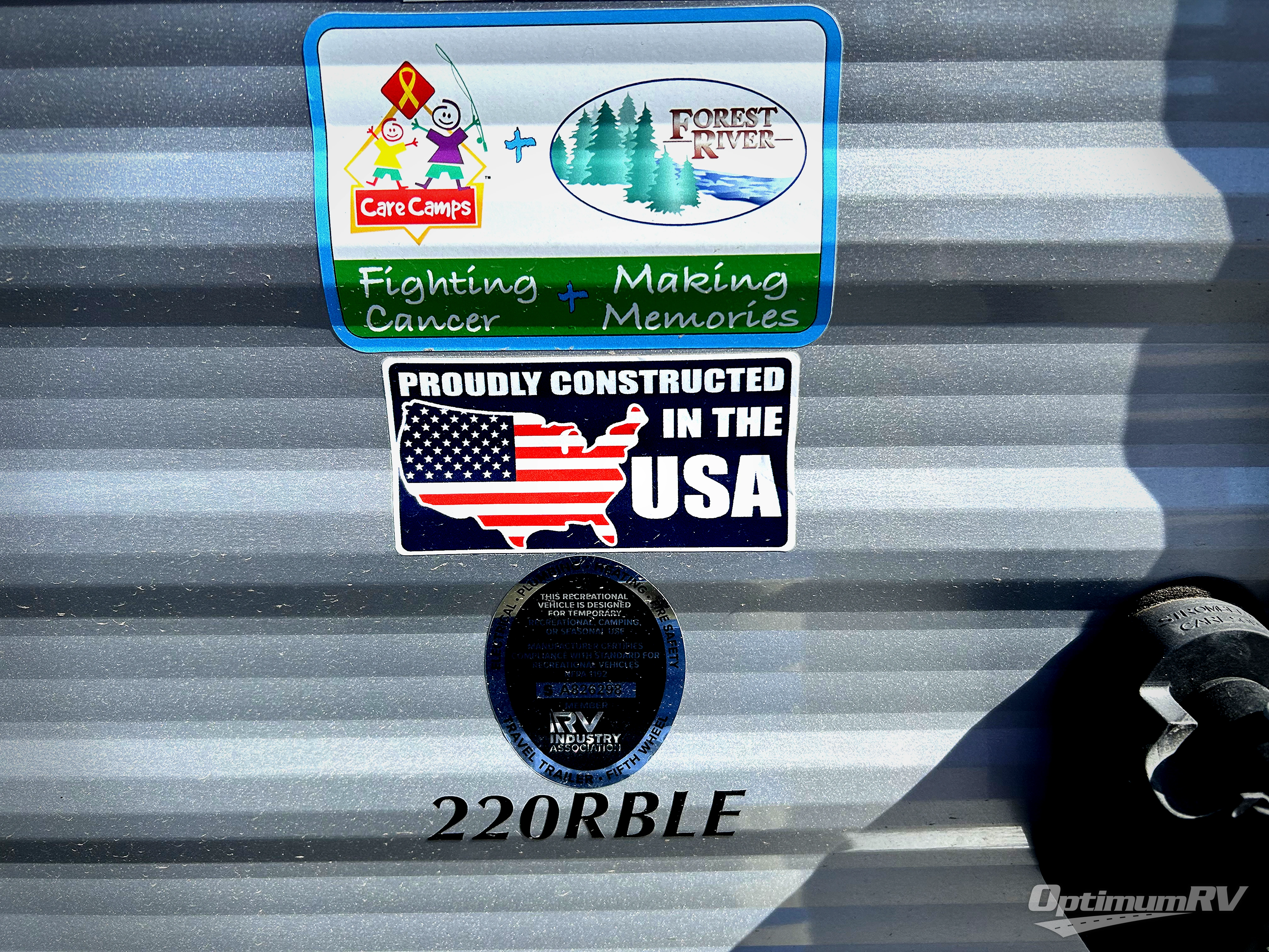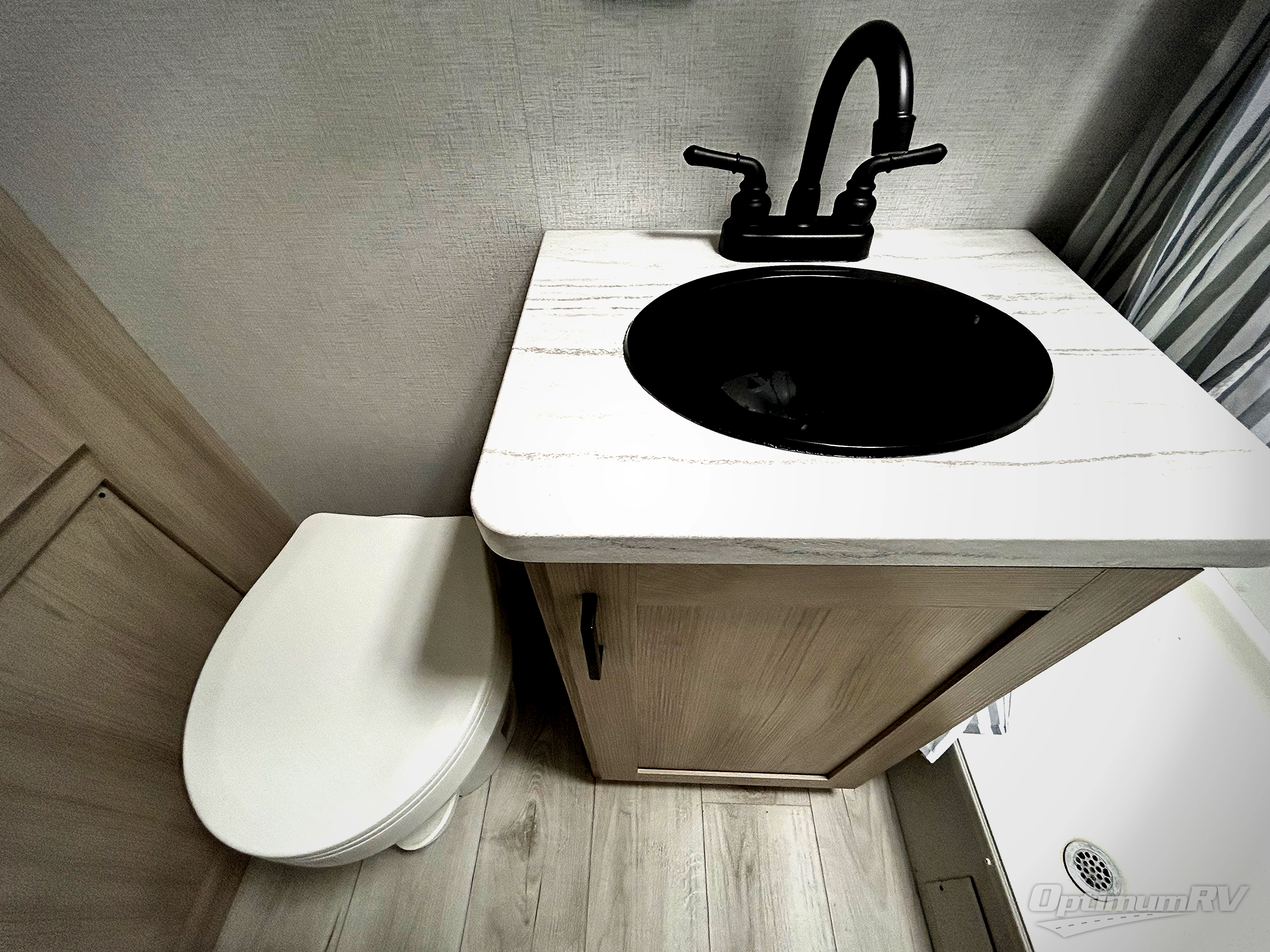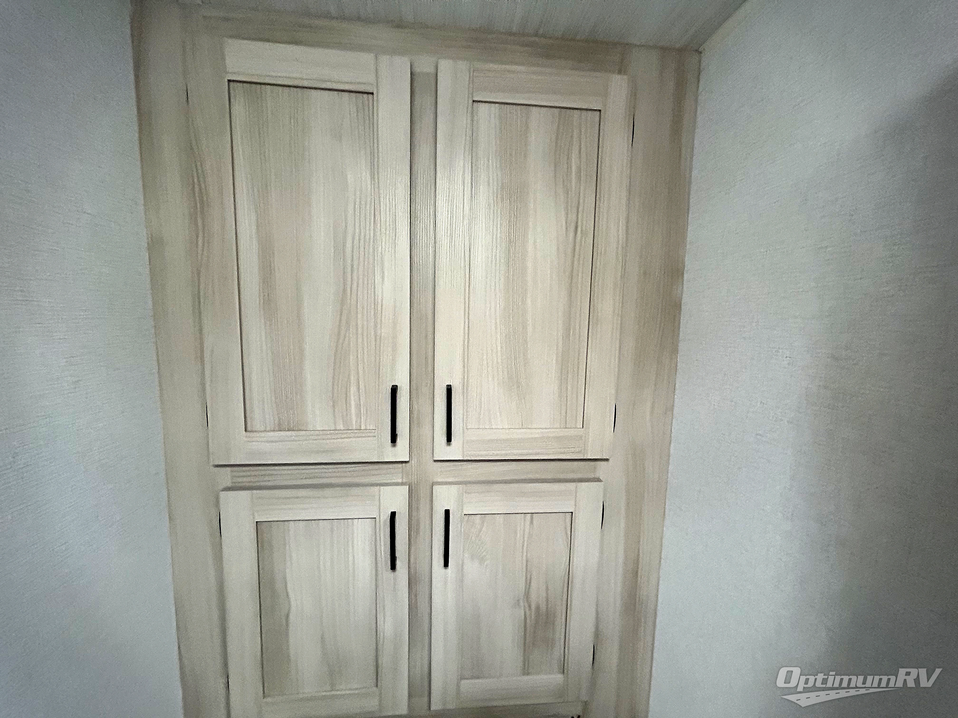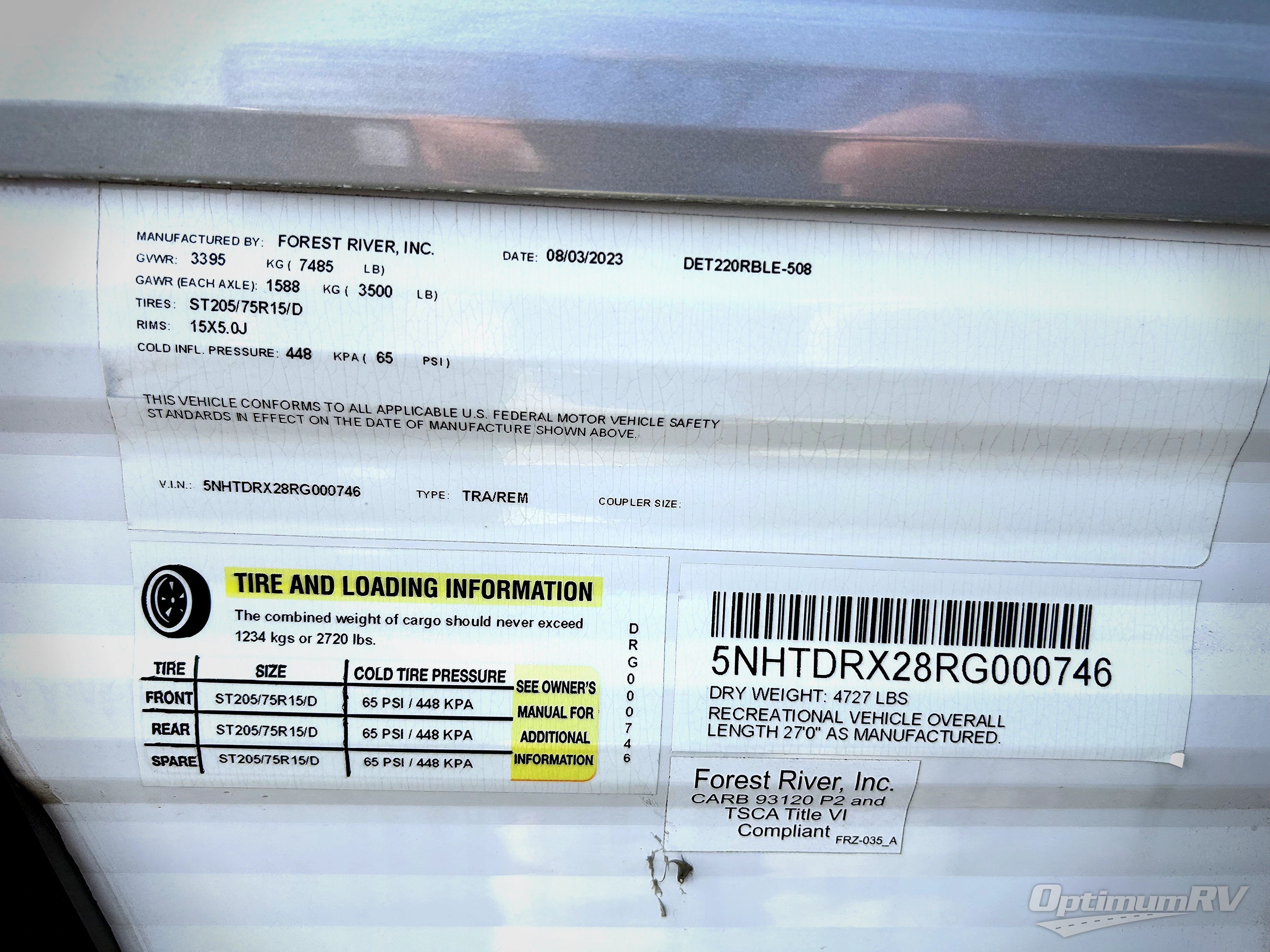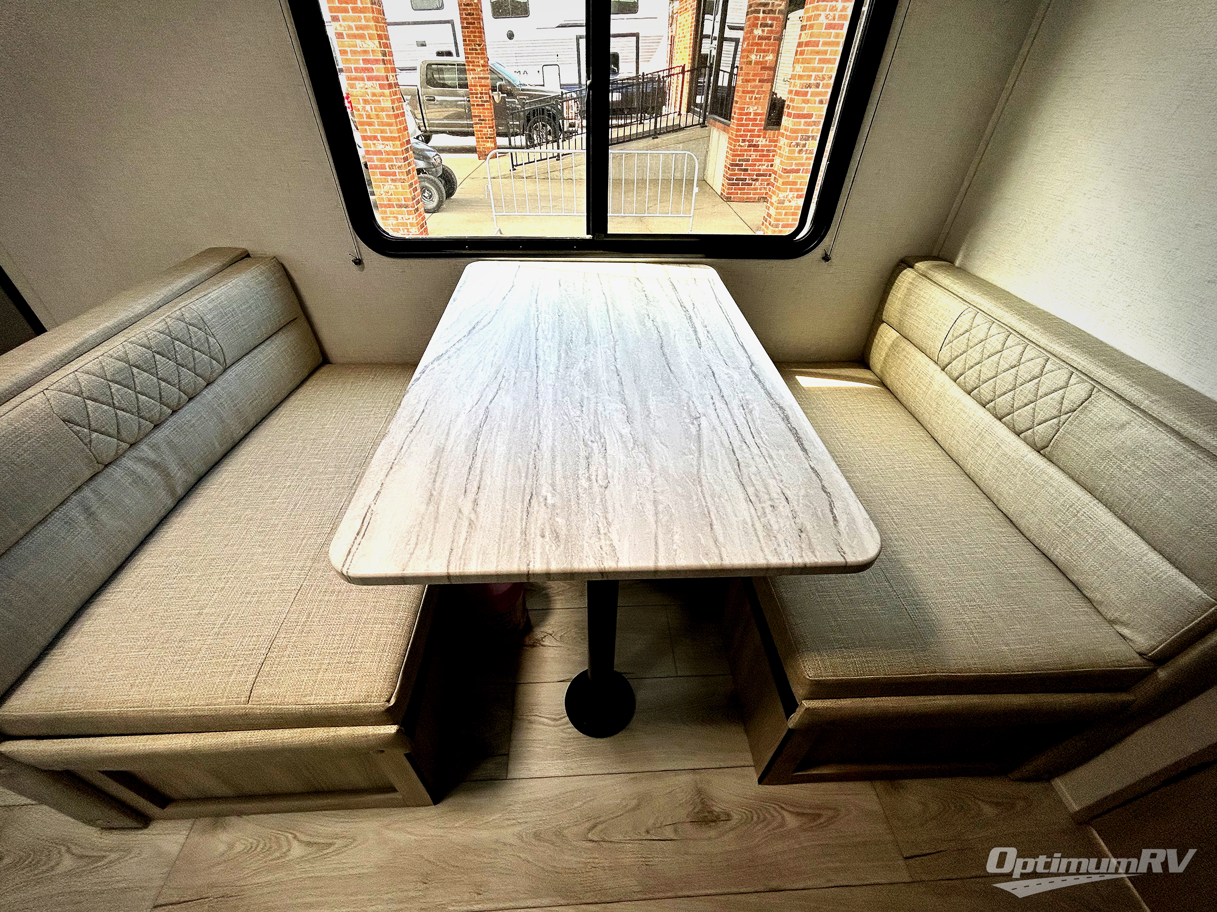 Head to your favorite camping spot in this travel trailer for four to five campers! You will love waking up each morning on the 72" x 80" king bed that includes storage underneath plus dual wardrobes to keep your clothes wrinkle-free. The full rear bath with a 24" x 40" walk-in shower will let you freshen up, and the linen closet here is convenient for towels and toiletries. Head to the kitchen where you can make breakfast on the two burner cooktop or make instant oatmeal in the microwave oven. There is a booth dinette and jack knife sofa for seating space, or you might just want to sit outdoors under the 15' power awning!