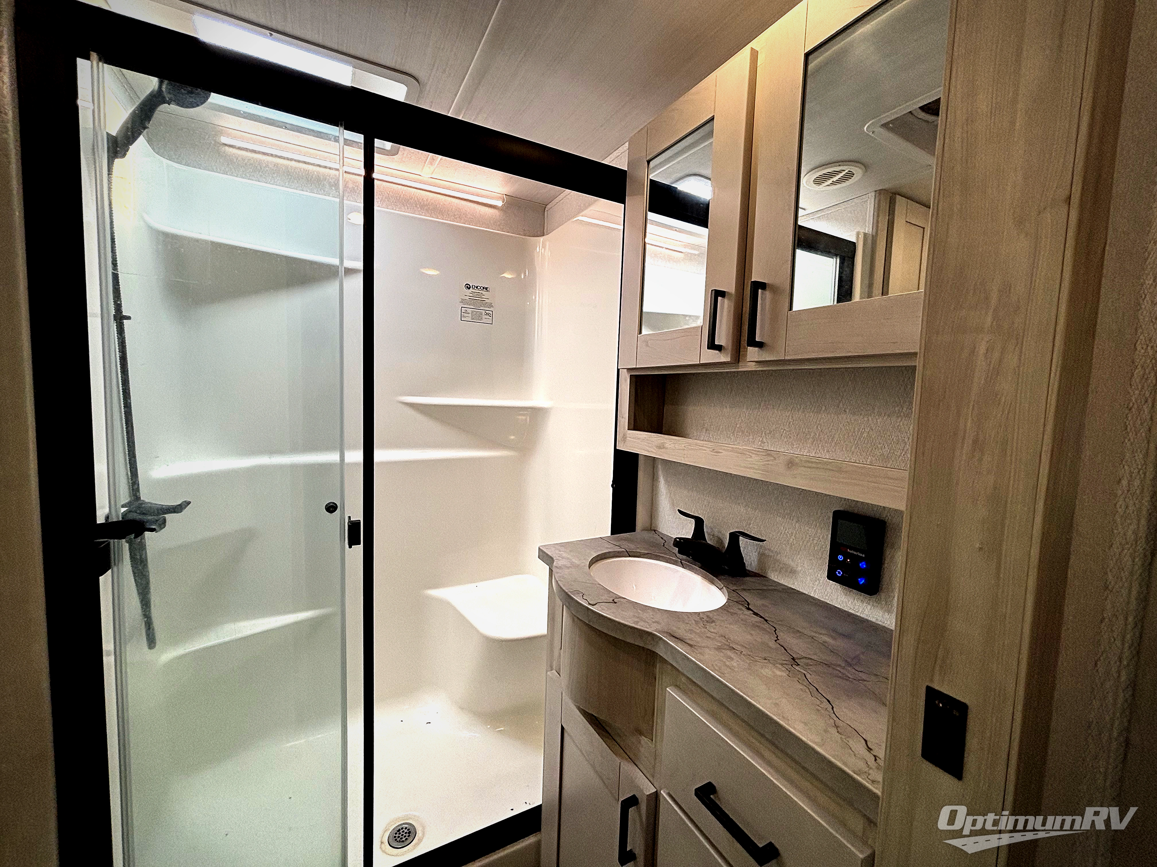 At any point you want to get away to your favorite secluded spot, you can grab your EAST TO WEST Tandara fifth wheel and head out because it has a 4 Seasons Package that will keep you protected during all seasons! There is a MORryde CRE 3000® suspension that will make traveling smooth, and the MORryde StepAbove entry steps provide a stable entrance into the unit. The Tandara has been prepped for a rearview camera, and the interior is very stylish with its artisan maple décor. Some of the luxury features you'll find are the shaker style cabinet doors, deep-seated stainless steel farmhouse sink, plus dimmable LED lights in the living area, kitchen, and bedroom!