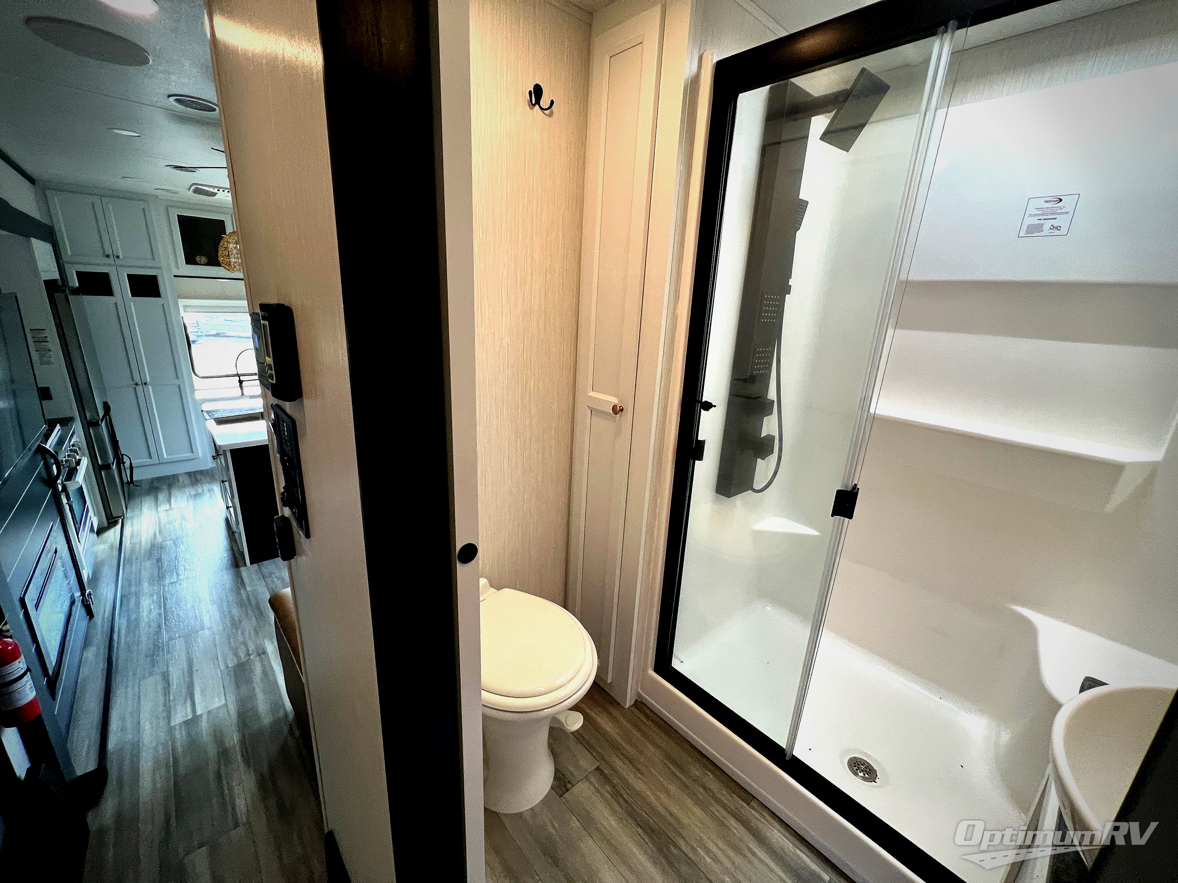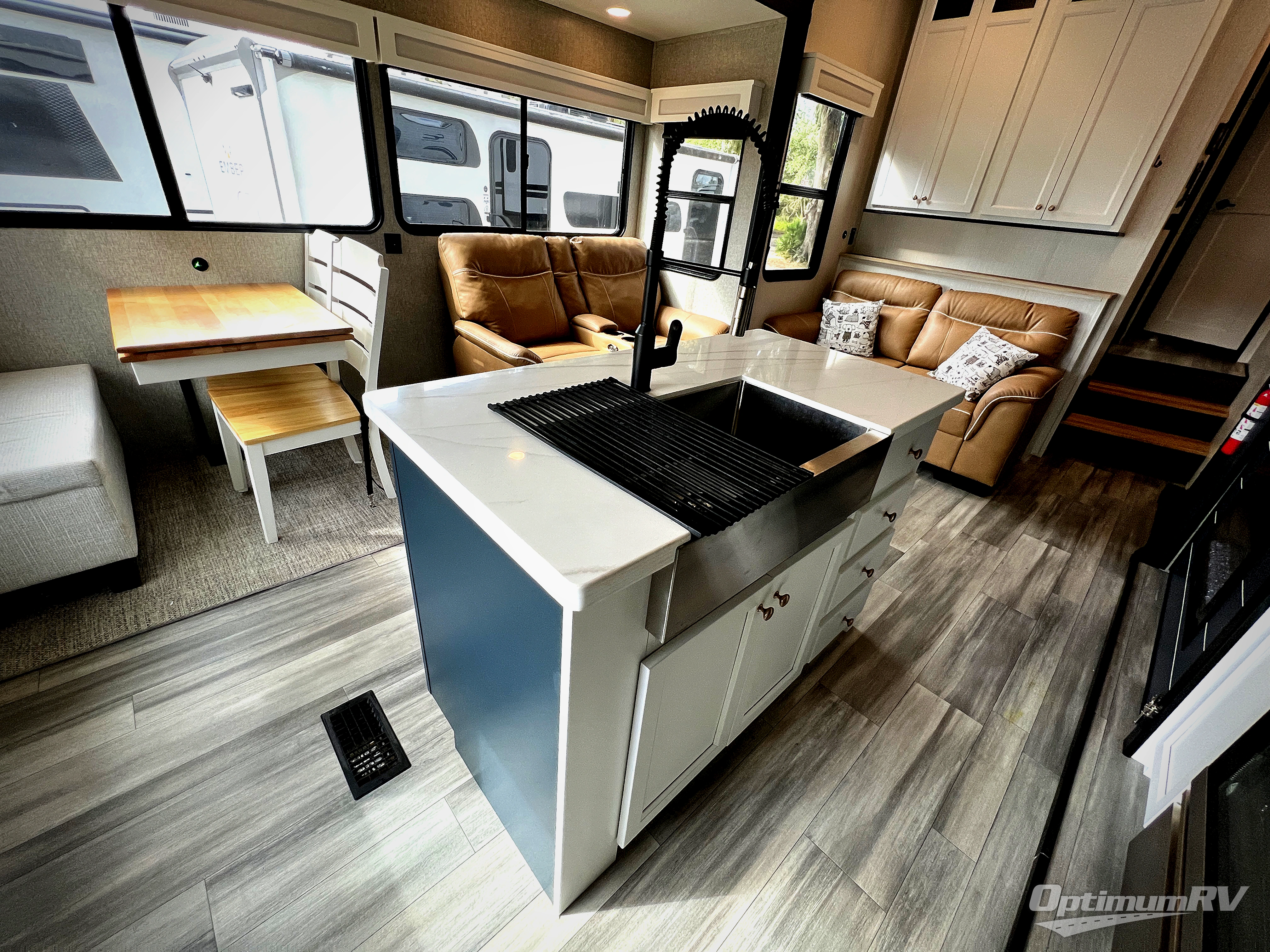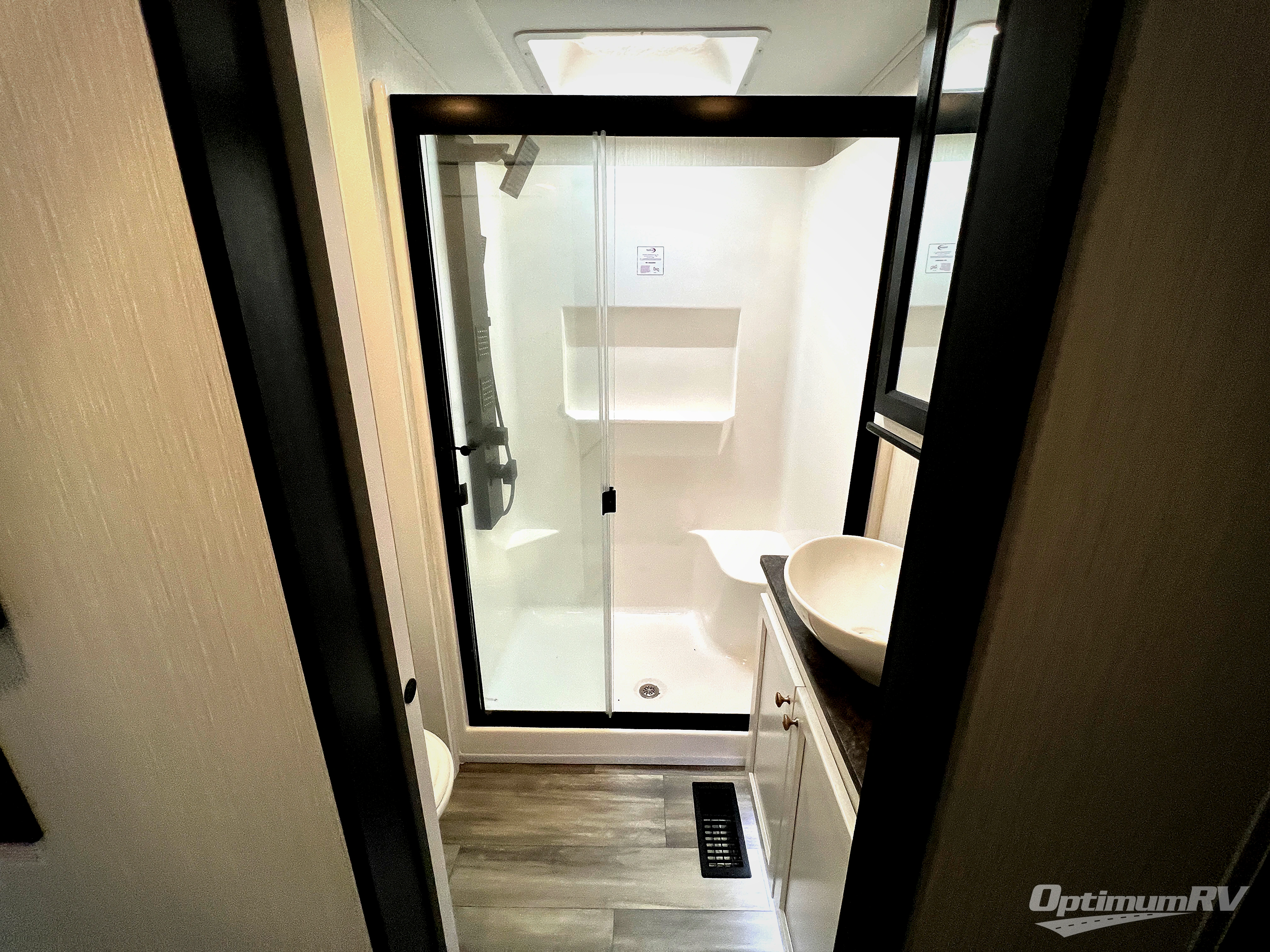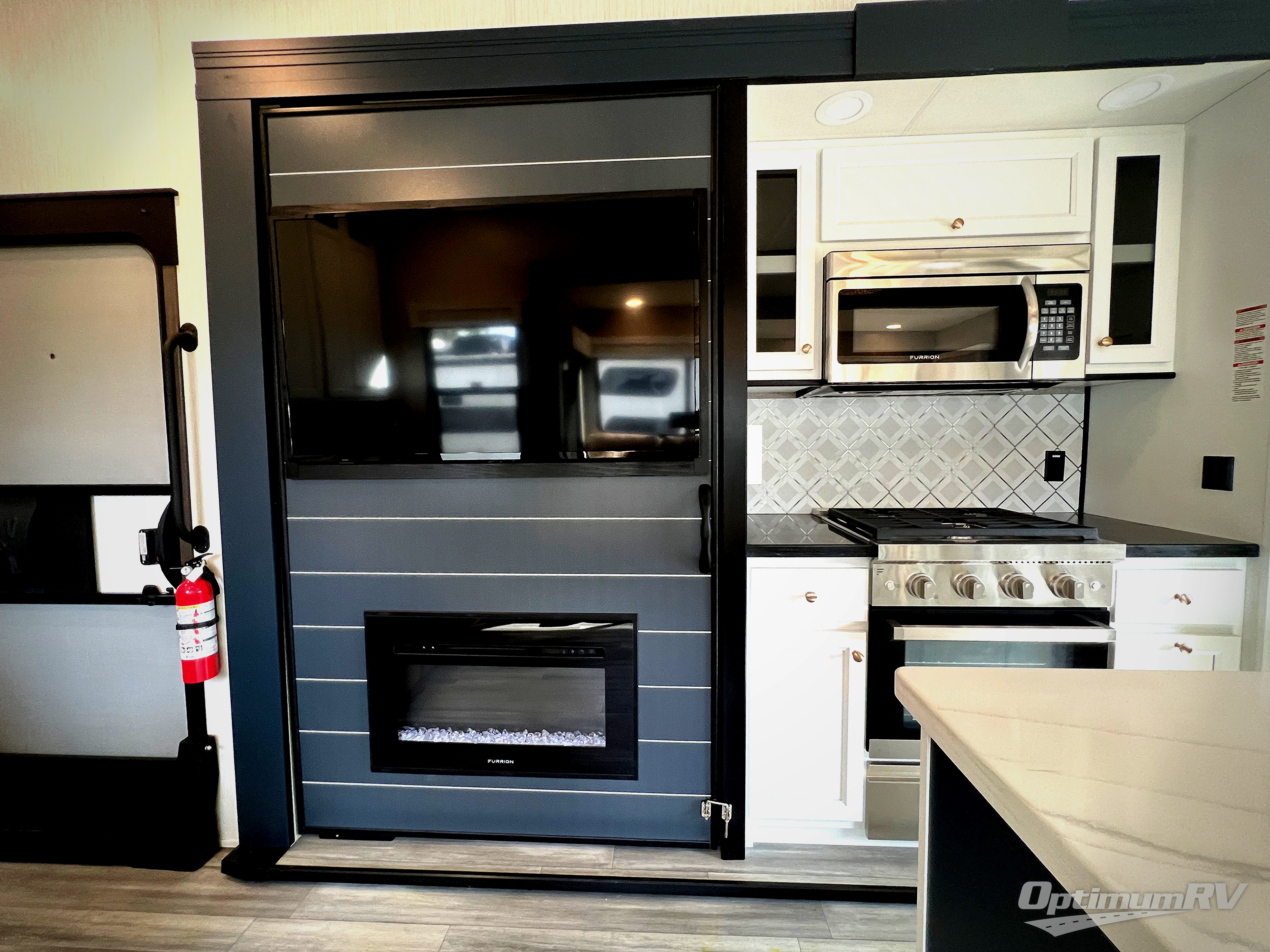With any Cedar Creek Experience fifth wheel by Forest River, you will bet met with luxury features both inside and out! The True Gelcoat exterior is the best of the best in exteriors and the 3M bonded sidewalls will hold up over years of use. Each model includes Lippert 7,000 lb. axles with ABS brakes, Road Warrior suspension, plus TST tire pressure monitoring system to make towing that much easier. You will also find a 200 watt solar panel outside, along with a heated front storage compartment, a Nautilus P4 multi-function panel with an outside shower, black tank flush, and 12V battery disconnect, plus many more exterior conveniences. The interior will have you feeling like you haven't left home with vinyl floor coverings, Ashley furniture power theater seating, a cozy fireplace, a large bath counter, and the list of comforts goes on! Each model is also pre-wired for satellite to the roof, and you're sure to never go bored with a Smart TV in the living room and an added bedroom TV!