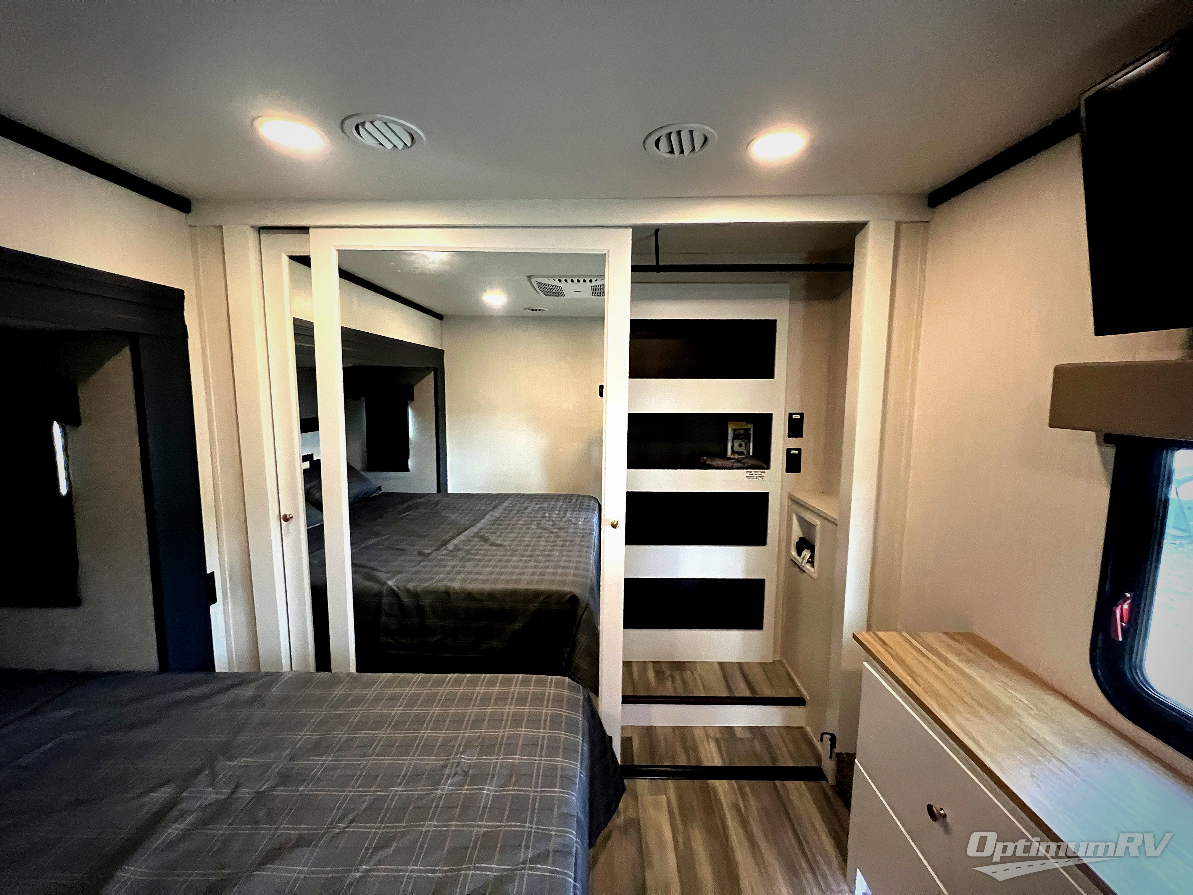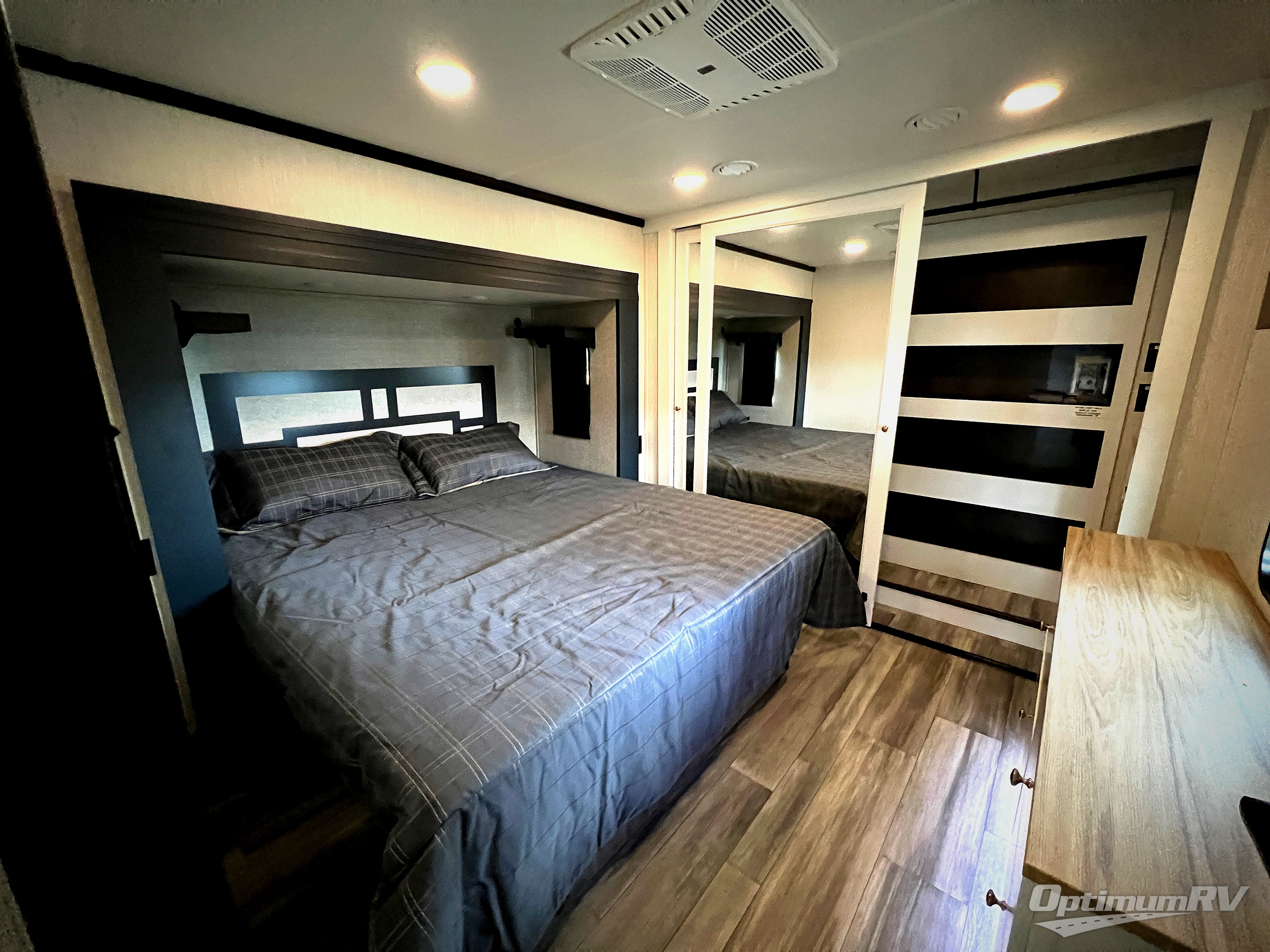 Get ready to work and play in this Cedar Creek Experience fifth wheel! The living area features a desk area with overhead storage so you can set up a dedicated work space and get things done while you're away. Of course you'll spend most of your time relaxing and having fun. The 15' power awning will allow you to set up an exterior space as well, to relax or set up some outdoor yard games. Inside you will love the front bedroom with king bed, the well-equipped kitchen, and the living area with both power theater seats and a hide-a-bed sofa for lounging. Three slide outs give you lots of floor space and a roomy feel for everything you might want to do, like watch a movie on the Smart TV or relax by the fireplace!