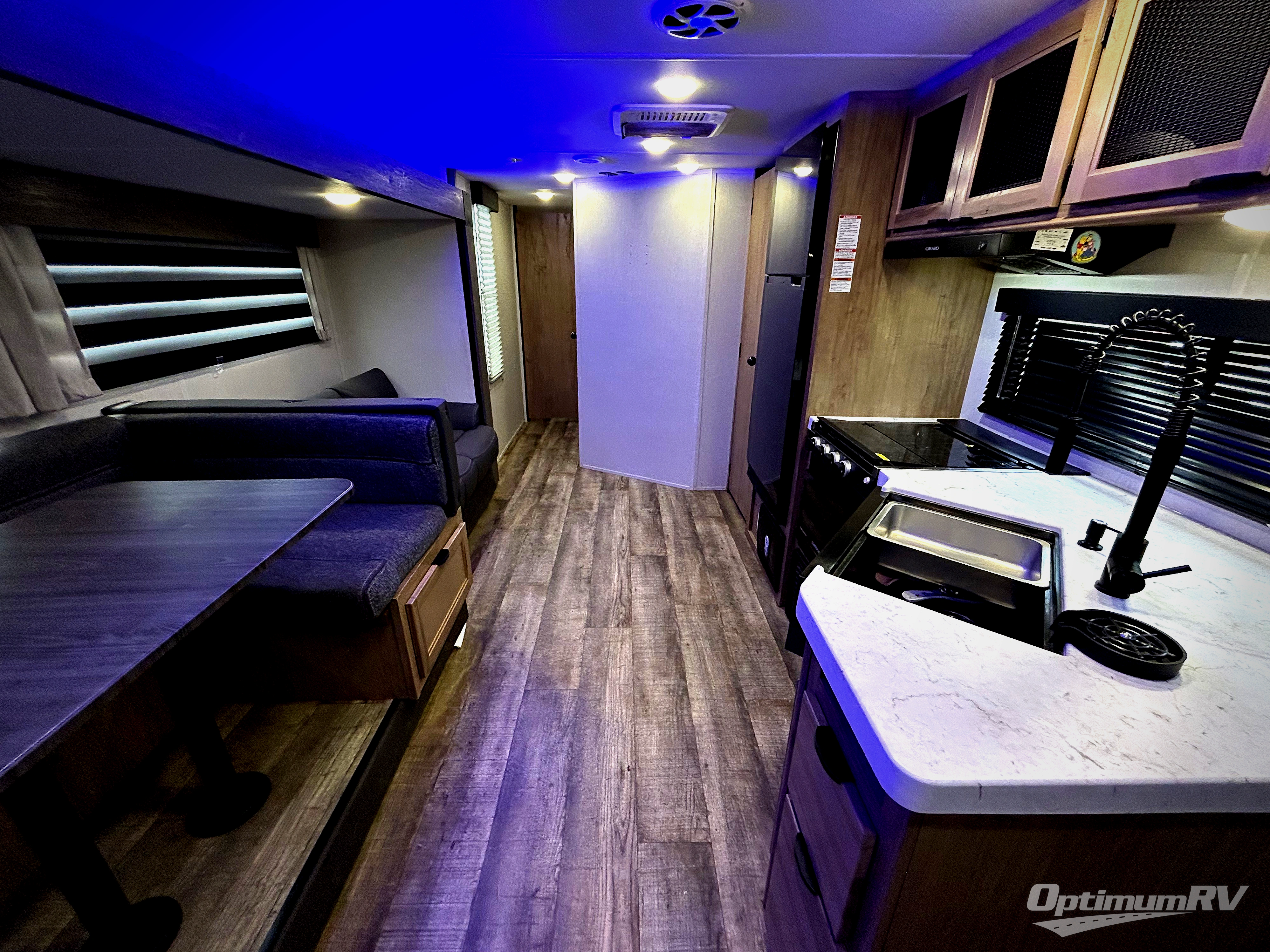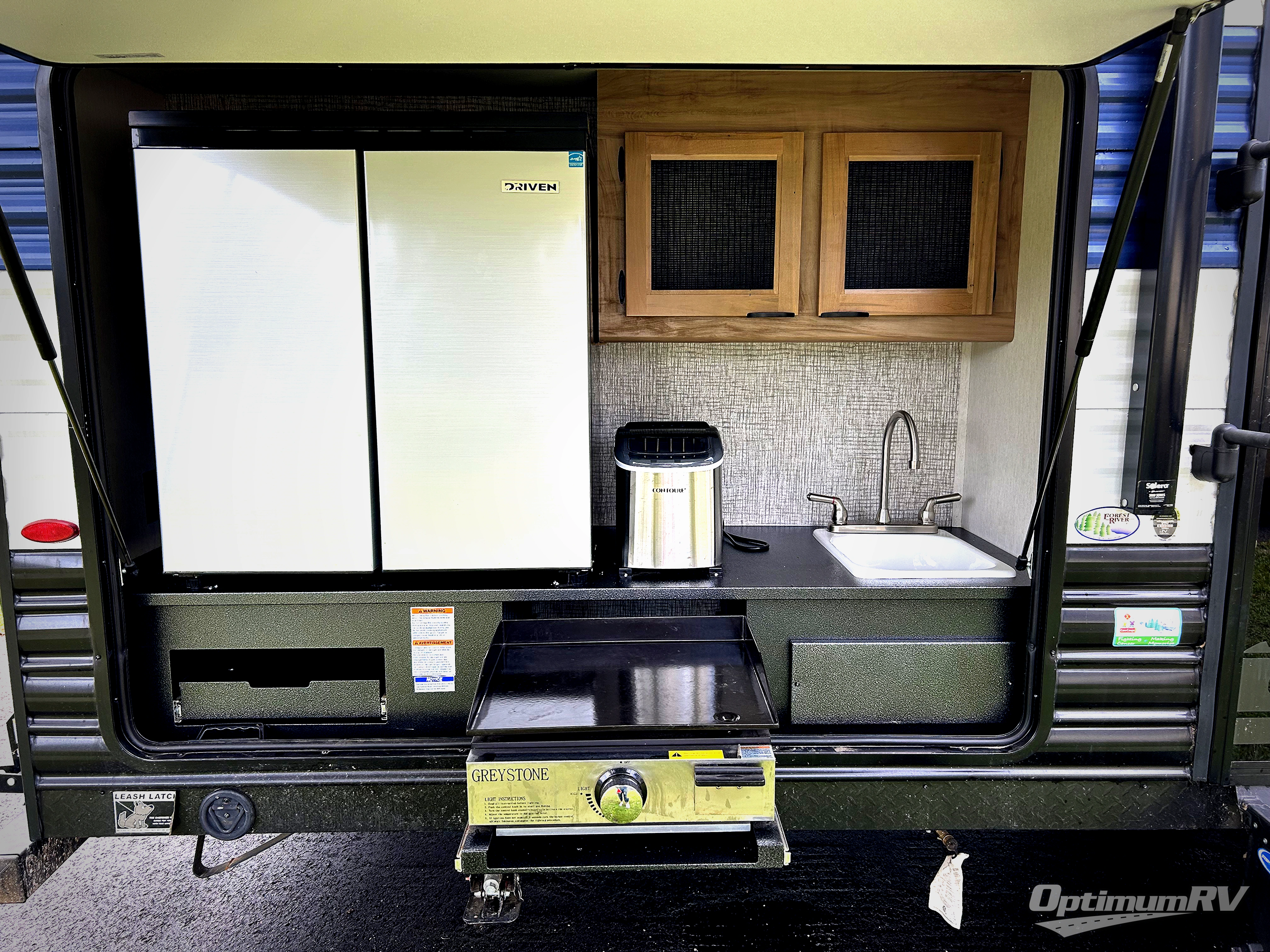 Your larger family will love spending weekends away with this Cherokee Grey Wolf travel trailer as their home away from home. This model offers lots of sleeping space with three bunk beds in the rear private bunkhouse. In the front, there is a master suite with wardrobes and nightstands on either side of the queen bed, and it even has private access to the dual-entry bath. The two entry doors will make accessing the trailer easy for everyone, and you will appreciate the abundant storage throughout this unit including large overhead cabinets, a spacious pantry, and numerous outside storage compartments for all of your outdoor gear. You also even have an outside bar & grill!