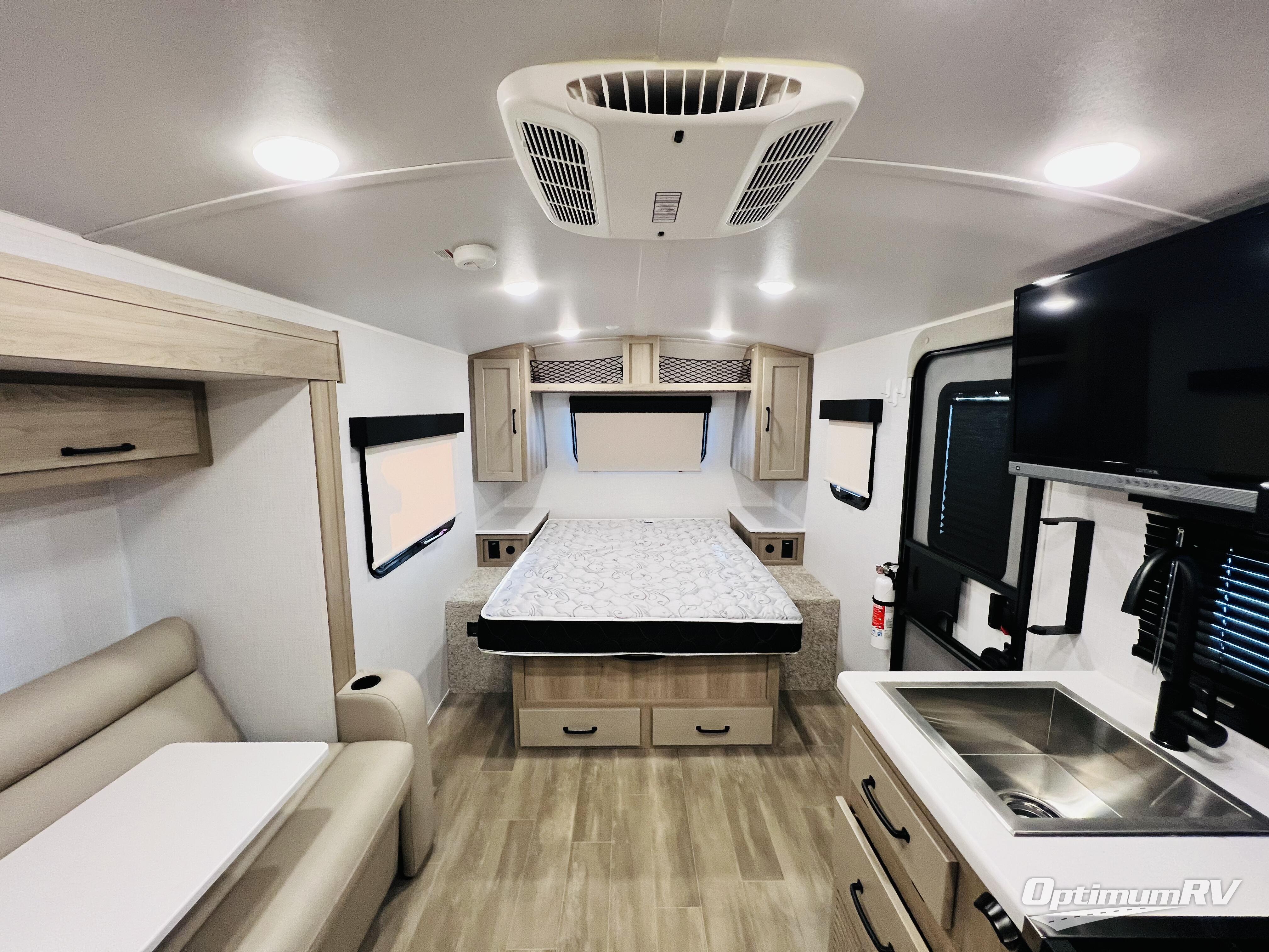 With any Rockwood GEO Pro travel trailer by Forest River you will enjoy easy towing, durable construction, and off-road capabilities with larger 15" tires and a lift kit! Package A includes a 200W solar panel and an 1800W inverter to go off-grid when you want, a tire pressure monitoring system and Key Alike door and compartment locks, plus a power awning to relax outdoors. Each model is constructed with complete composite wall construction for added strength and durability, and the torsion axle, Rubber-Ryde suspension will make towing easier than ever. Inside, you'll find sleek roller shades and hidden hinge cabinet doors, a 12V refrigerator and a microwave, plus a 20,000 BTU furnace to keep you warm during the colder camping months.