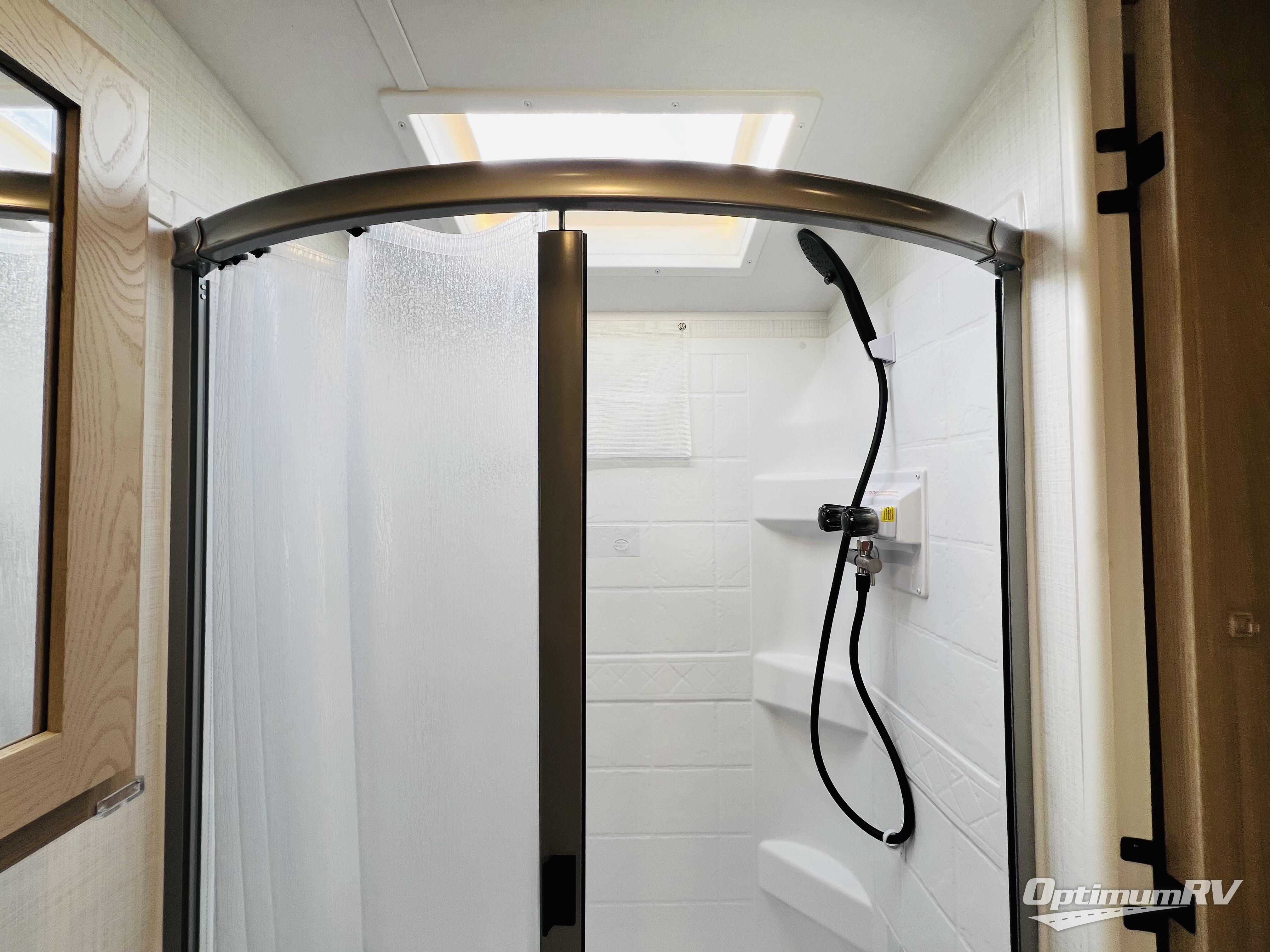 This travel trailer will feel more like home with its front bedroom and walk-around full-size bed. You'll enjoy the 32" 12V TV as you relax on the 72" sofa with a table and cupholders. The full rear bath includes a spacious shower to clean up in each day and there is a linen closet for clean towels. When you're ready to prepare dinner you'll have a three burner cooktop and microwave oven indoors, and a griddle outdoors! And don't forget the exterior storage allows you to bring along beach toys and tackle boxes. The optional Power Package available on this model includes three 200W solar panels, a 30 Amp solar charge controller, two Mastervolt smart remotes, and more off-grid features!