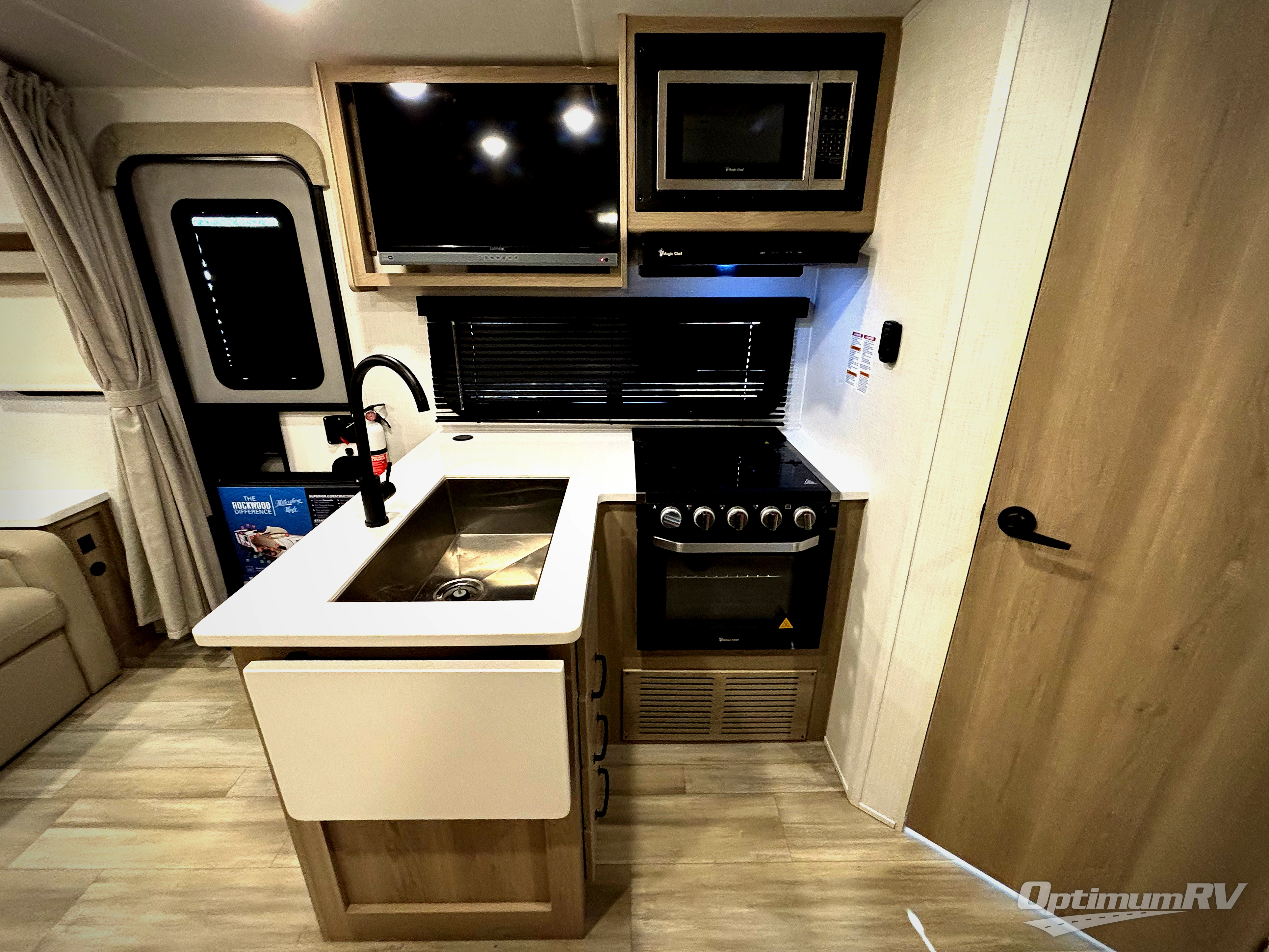 Each Rockwood Mini Lite travel trailer by Forest River is constructed with a fully laminated one-piece walkable roof, sleek frameless windows, and a six-sided full aluminum frame for strength and durability. The 12V thermostatically controlled heated tanks, plus radiant foil in the underbelly, front caps, and slide out floors will allow you to camp well into the colder months, and the 200W roof solar panel will be perfect for a little off-gridding. Each model includes solid surface kitchen countertops, solid wood cabinet doors, night roller shades, plus many more interior features. Having an Air 360+ omnidirectional antenna with wifi prep on board will allow you to get some work done if it's needed, and the power tongue jack provides hassle-free set up, so you can enjoy more time relaxing!