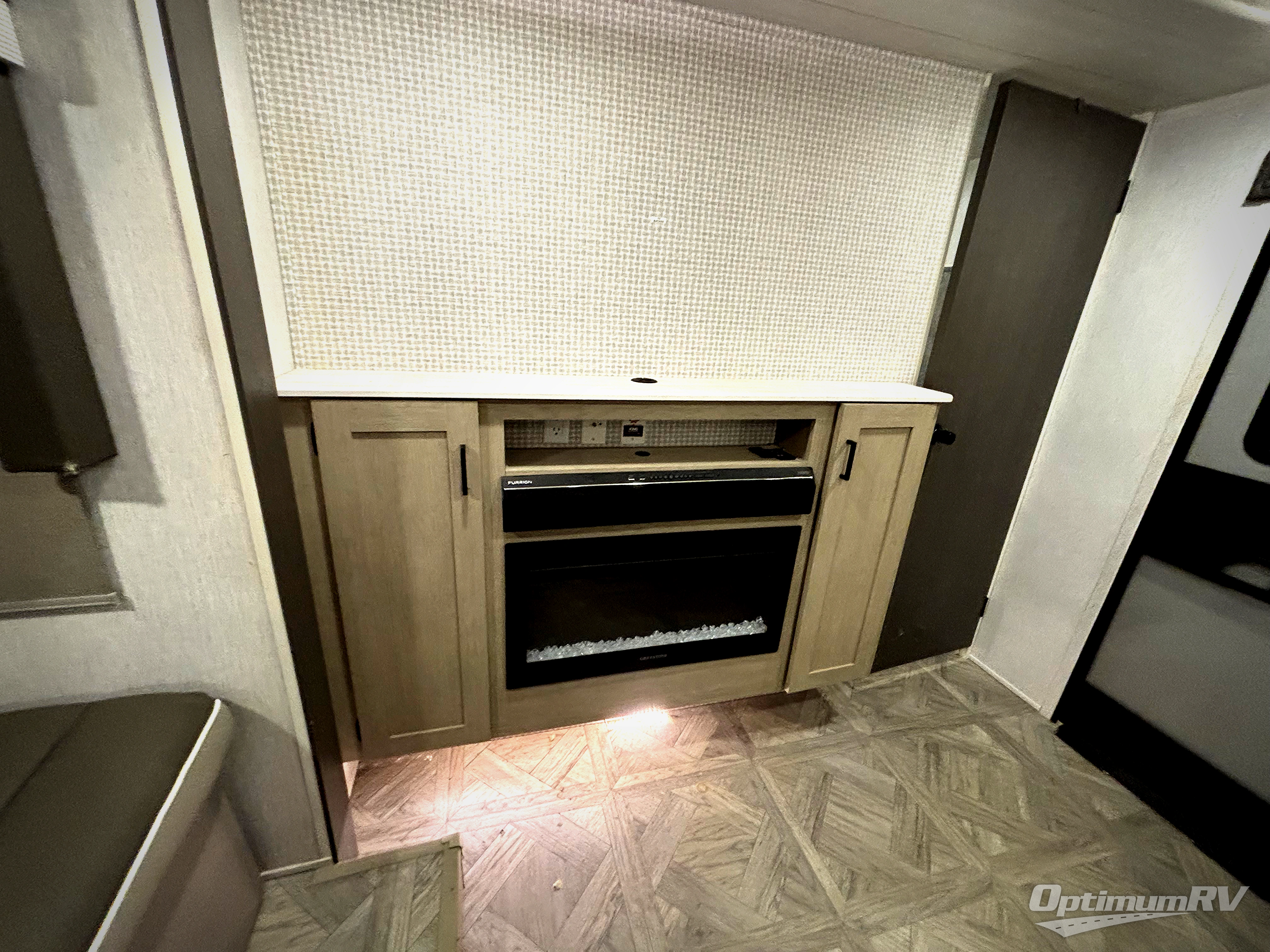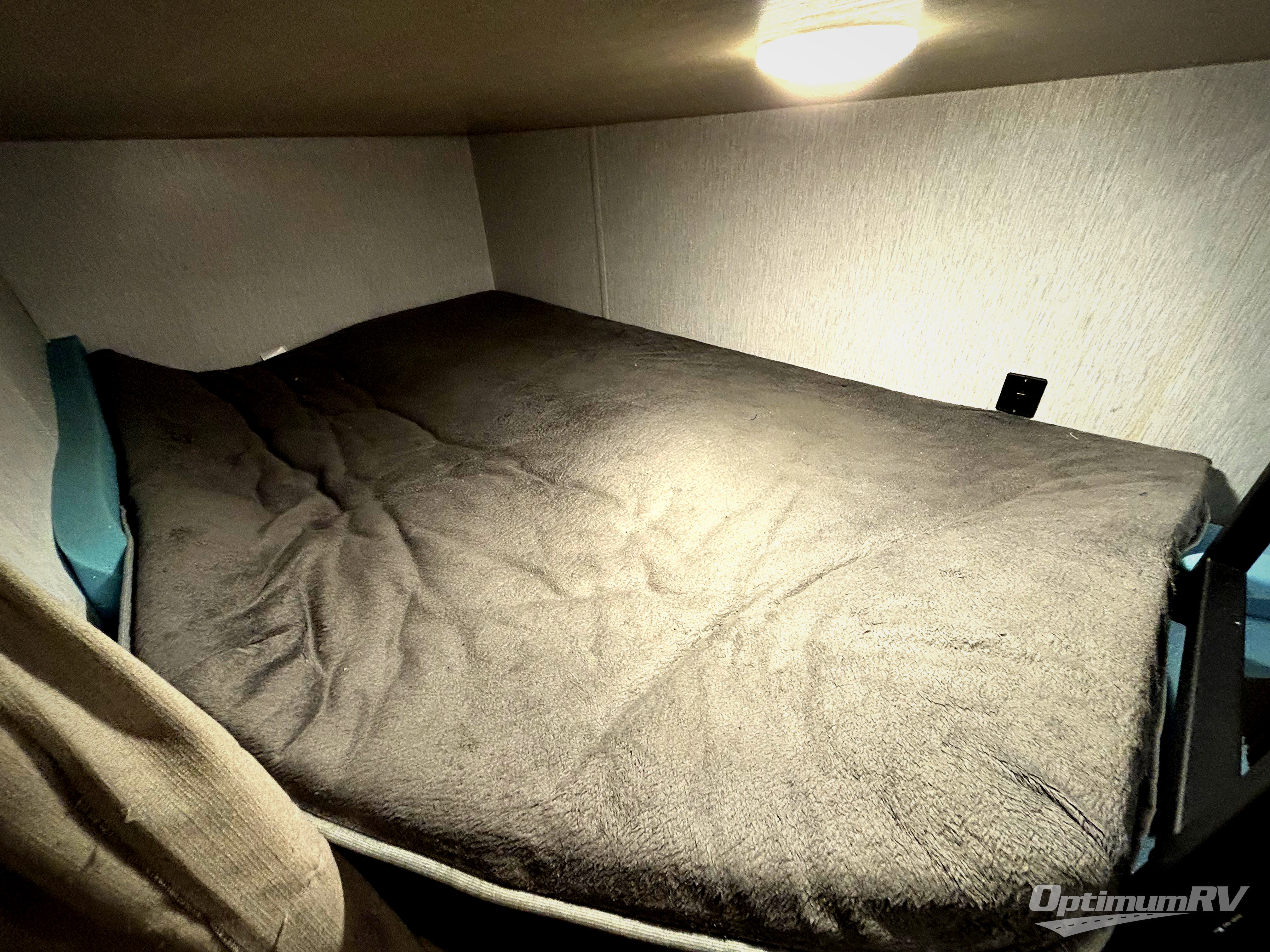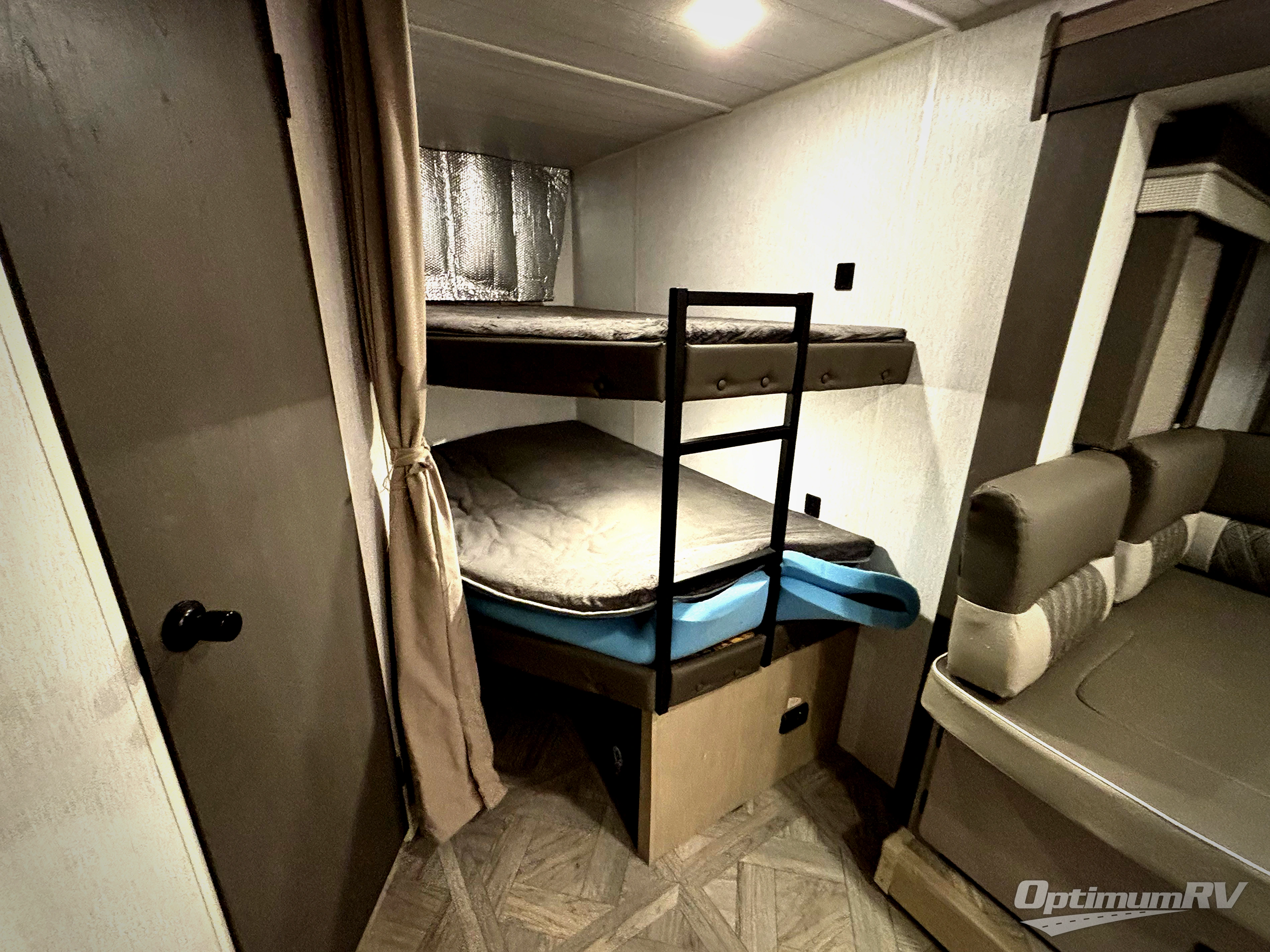 Load up this light weight travel trailer with double-size bunks and head to your favorite campsite! There is plenty of seating and sleeping spaces between the rear bunks, the custom king bed with Versa Tilt, the booth dinette, and the sofa. The front bed has closets on either side of it and a privacy curtain to draw at night. The oversized 11 cu. ft. 12V refrigerator will keep your perishables fresh and the three burner cooktop is just waiting for you to prepare a delicious home cooked meal. And you might want to add the optional outside kitchen for a sunrise breakfast!