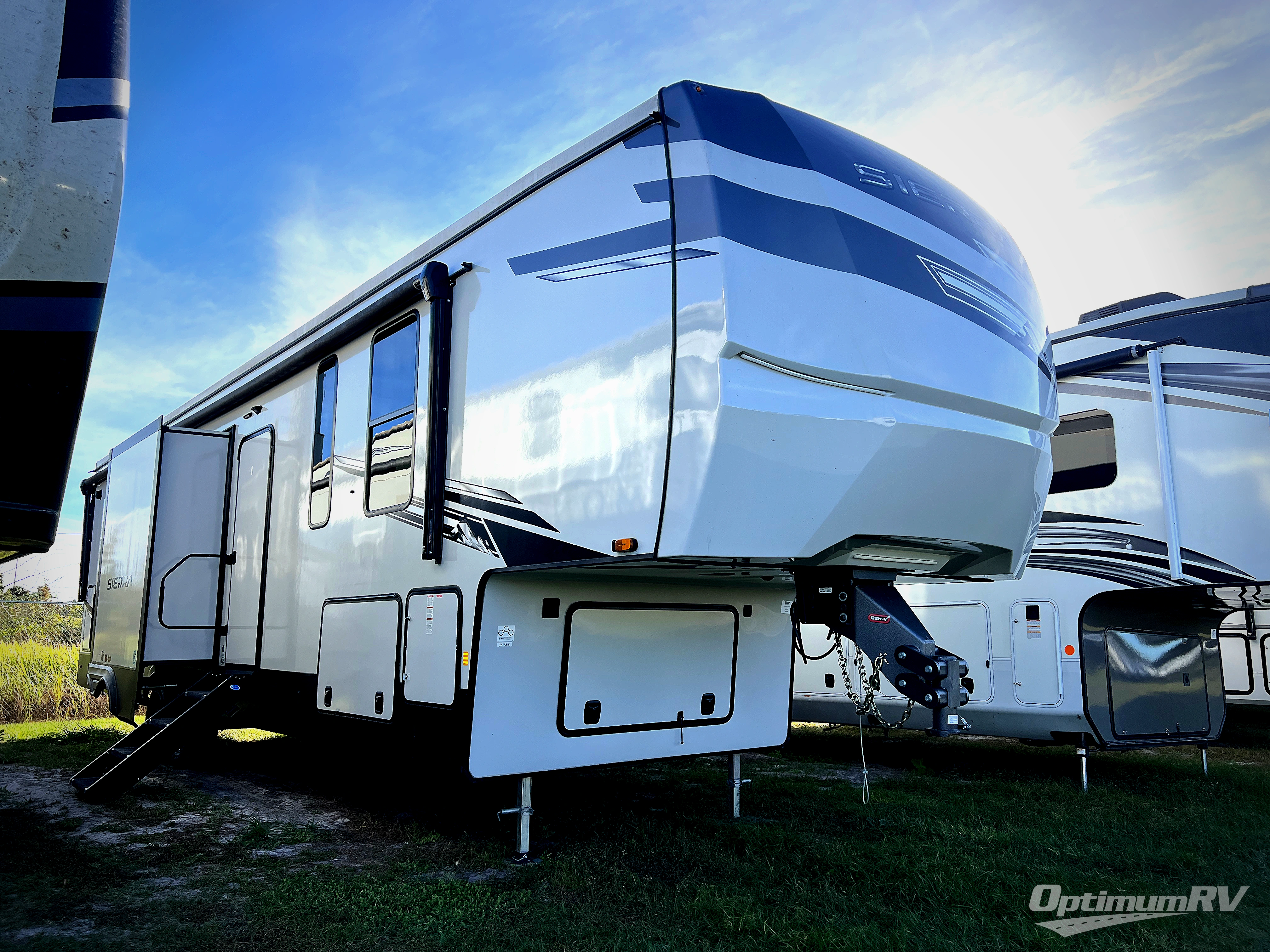 Each one of these Forest River Sierra fifth wheels are equipped with everything you need to make the most of each adventure! The underbelly armor will protect your unit's vitals from road debris and the painted two tone aerodynamic fiberglass front cap has an improved turning radius to make them easier to navigate. With an electric leveling system, you can set your unit up quick and easy then get to having fun faster than ever. The welded aluminum framed, vacuum bonded laminated superstructure will hold up through every adventure and the cambered powder coated frame comes with rust prohibitor to last longer. Each model also includes the Summit Package that comes with a king Wi-Fi extender system and Olympus antenna, a full coach water filter system, Goodyear tires with 7,000 lb. axles, and the list goes on. The interior is just as impressive with rustic wood plank linoleum, recessed residential lighting, a memory foam mattress, and mocha accent crown molding over the kitchen cabinets!