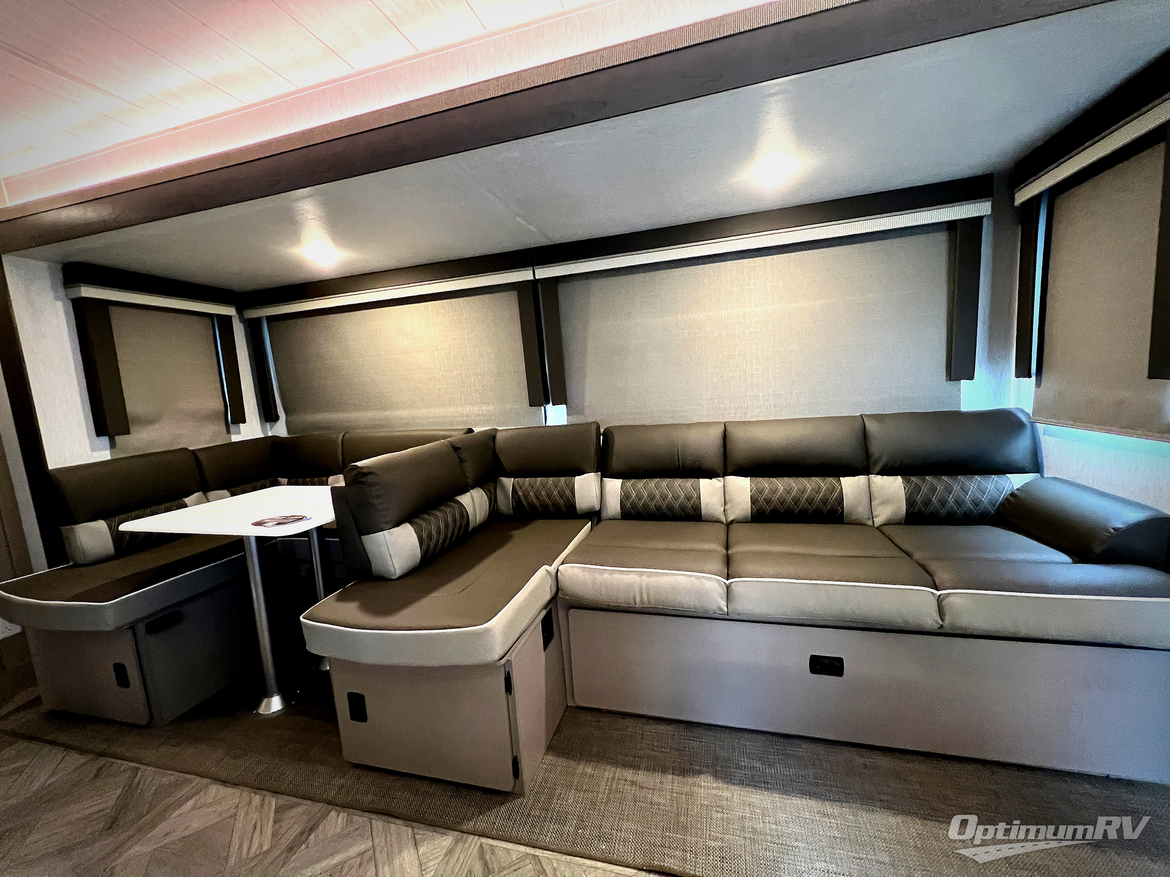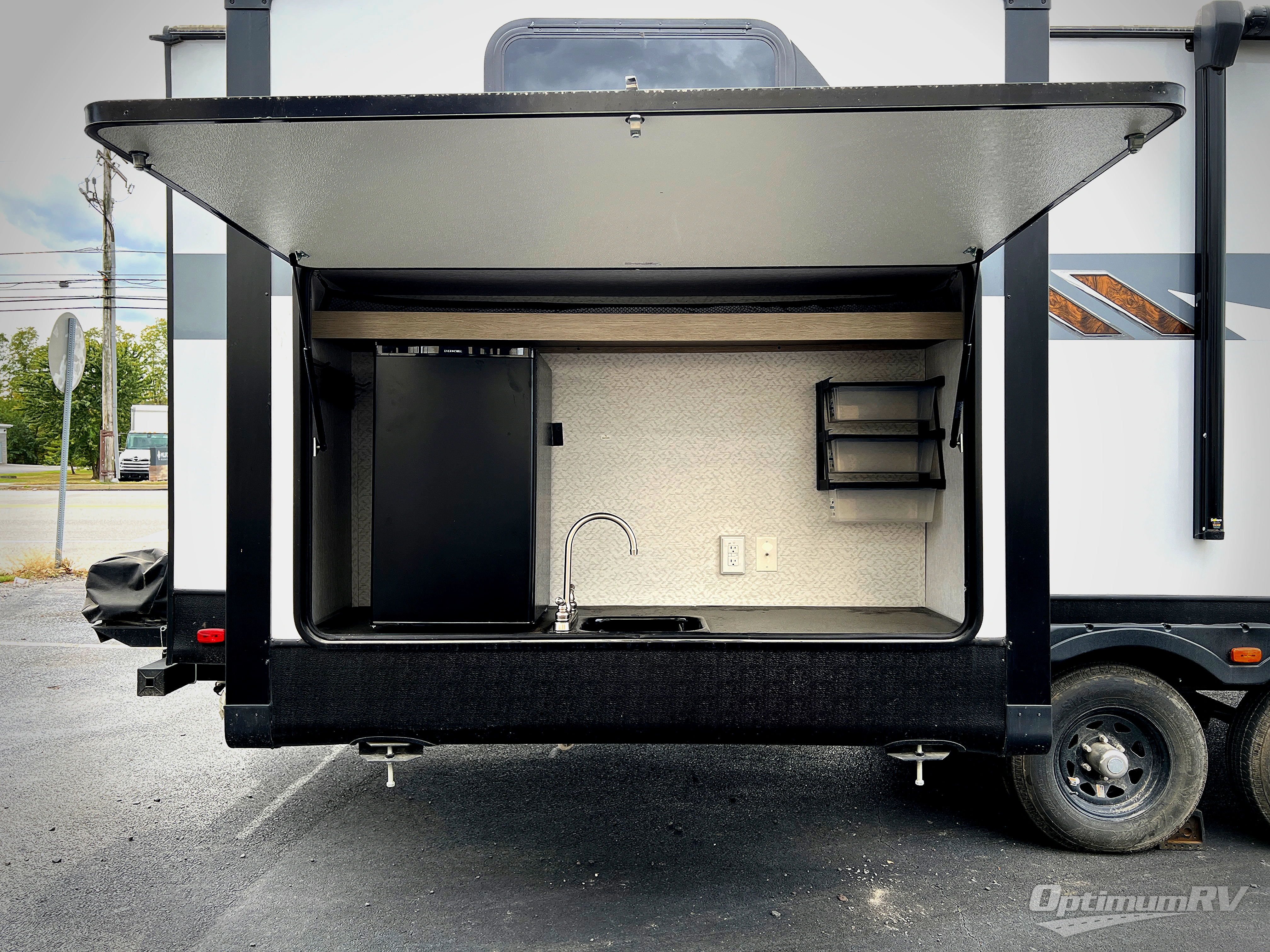 With this triple-slide Wildwood Platinum travel trailer, everyone can have their own space! The private bunkhouse features dual opposing slides that provide tons of space for the kids to play. The large slide in the living area opens up the whole space, and here you'll find a Versa Lounge with a U-shaped dinette and sofa which is perfect for meal times and relaxing. You'll love the front private bedroom with a custom king bed with Versa Tilt, and everyone will appreciate the full bath with walk-in shower. The chef of the family can cook a meal on the three-burner range, or you can prepare hamburgers at the outside kitchen that you are sure to love!
