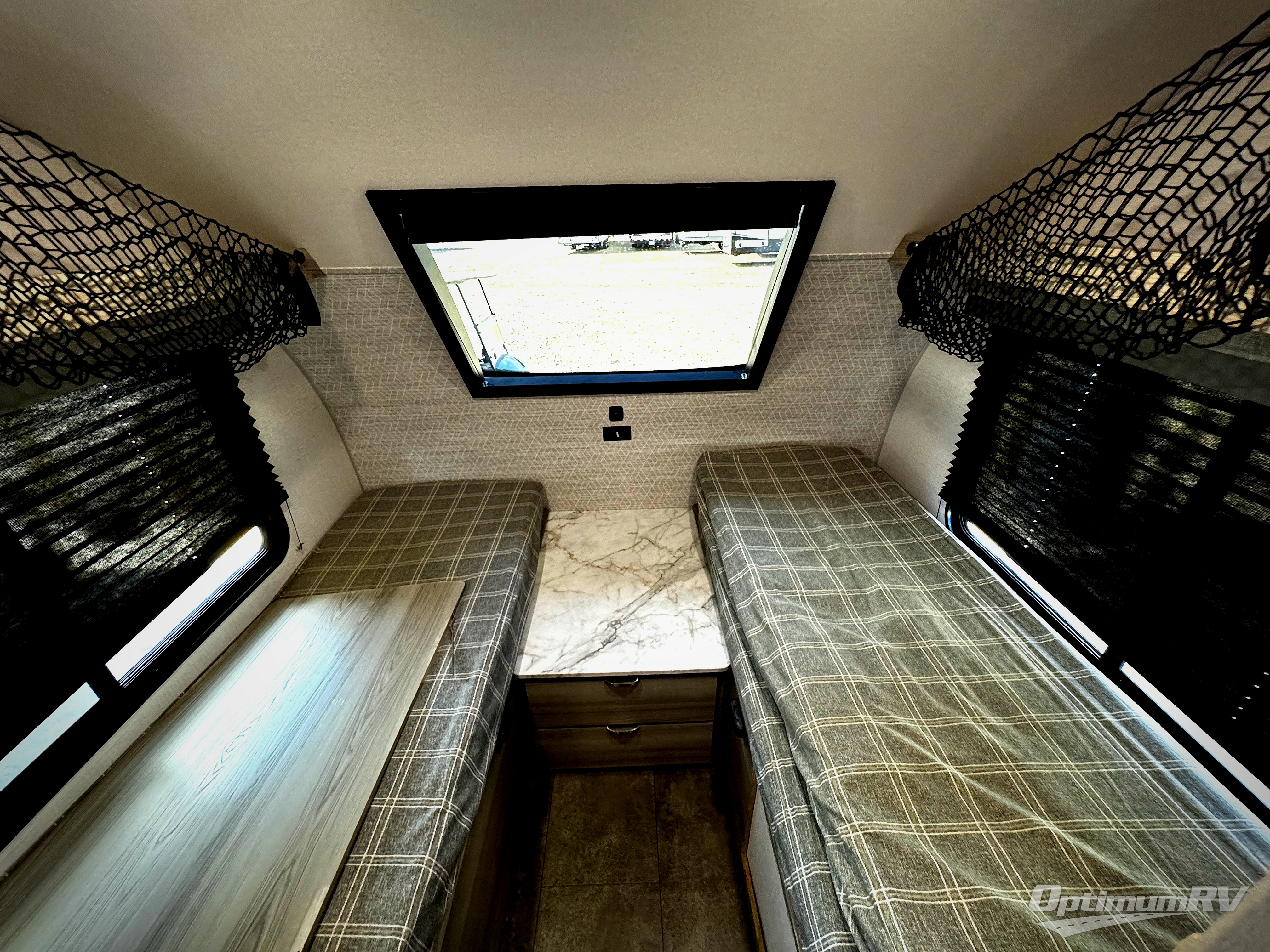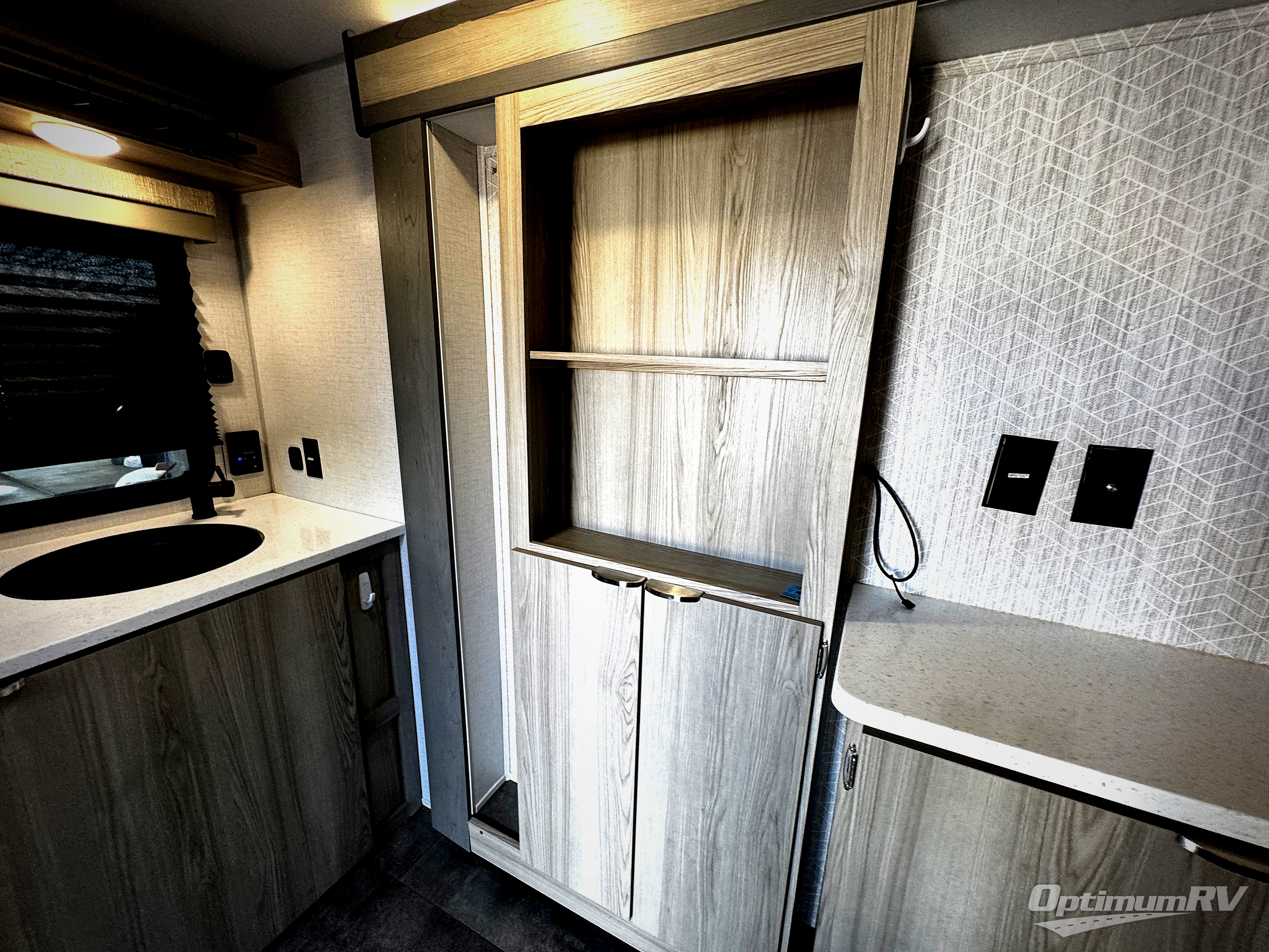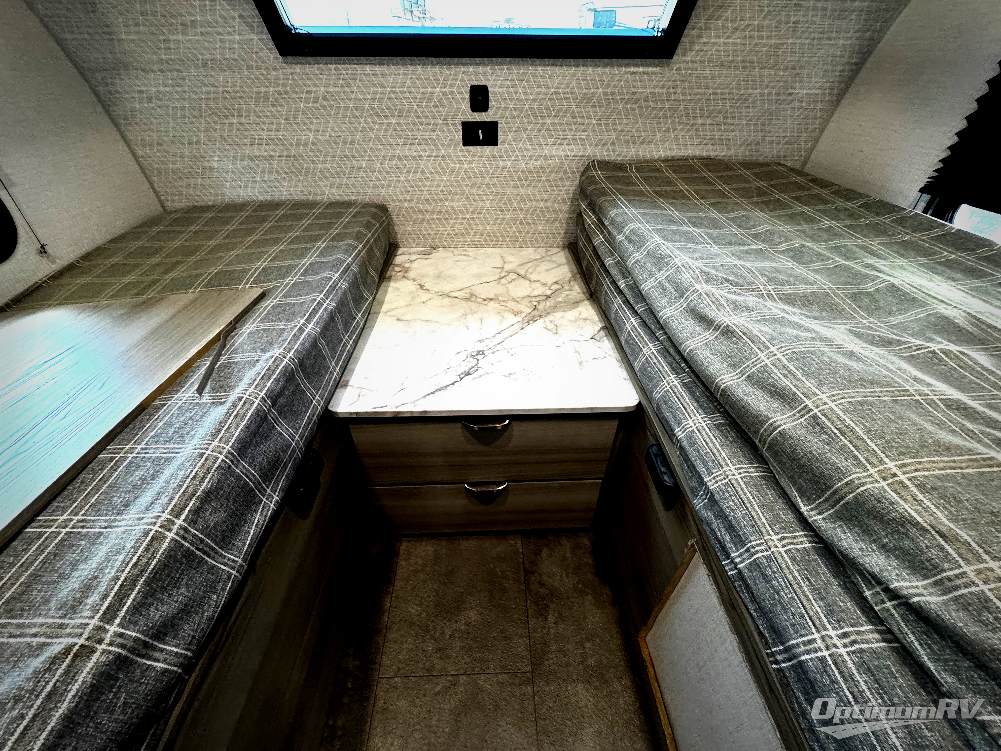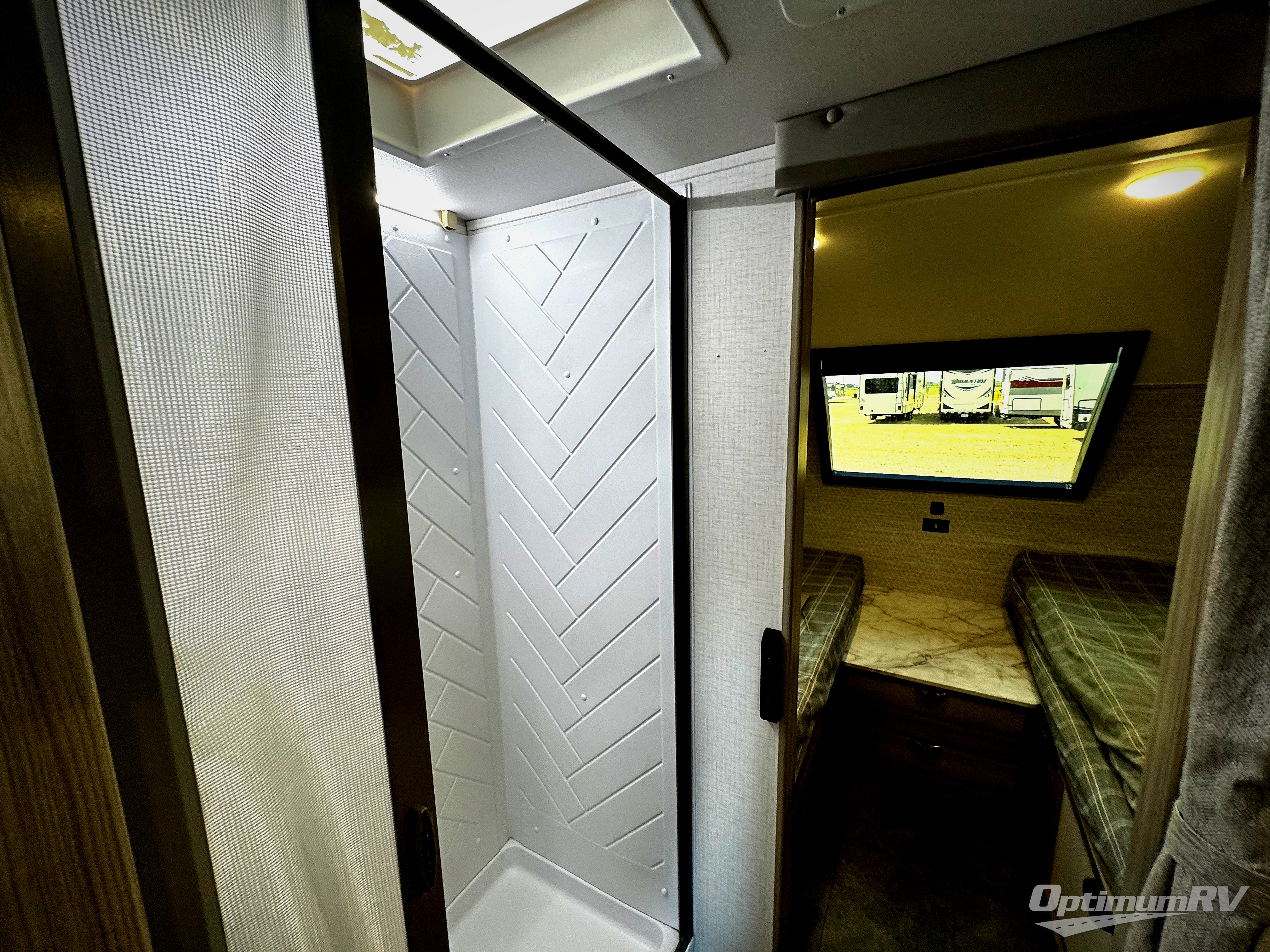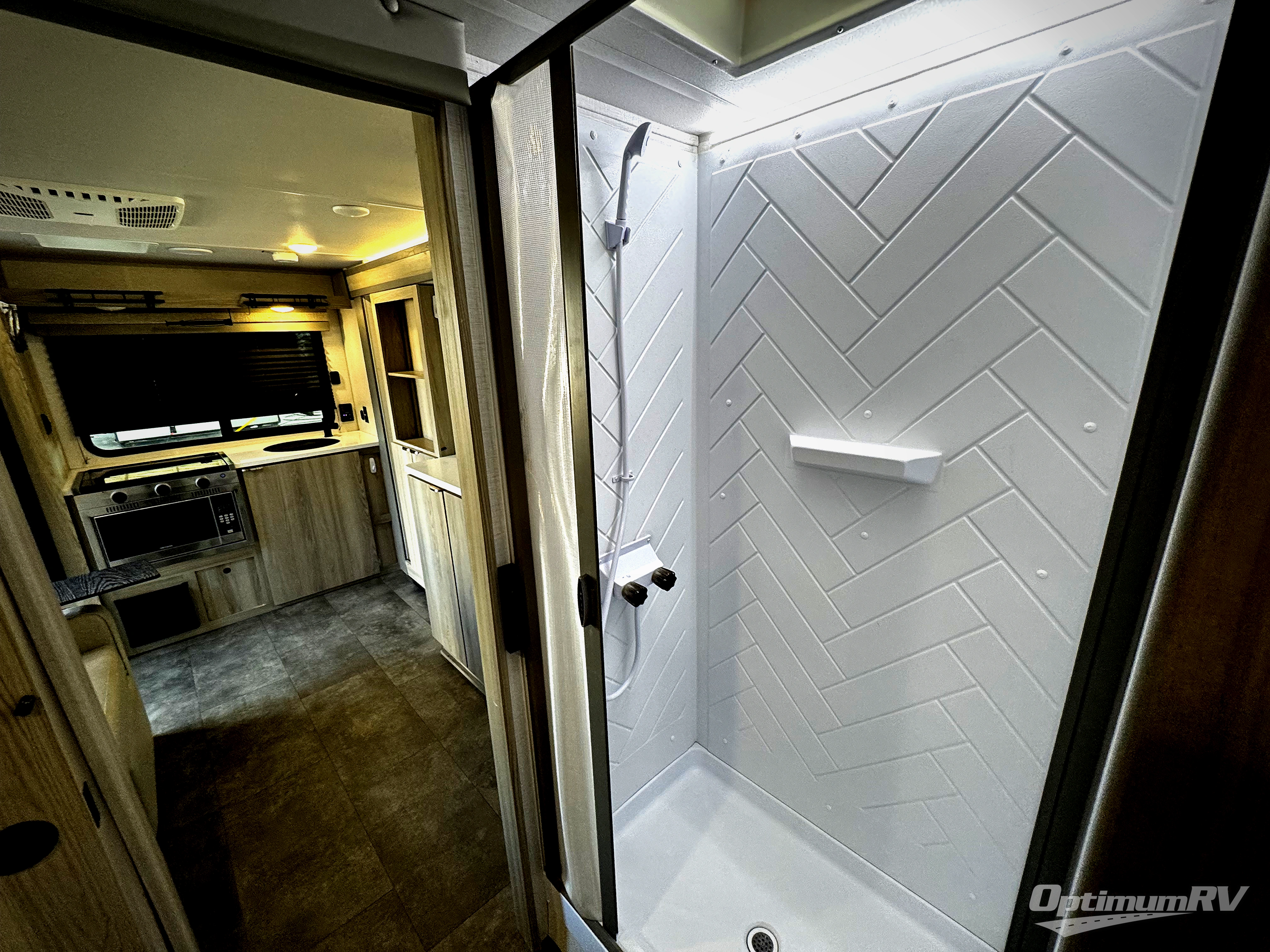 Versatility is found throughout this travel trailer! The front two twin beds can convert into a king bed for comfortable sleeping at night, plus there is a split bunk bed slide for an additional sleeping space. The bunk bed is located behind the spice rack door and TV for your entertainment and cooking needs. Speaking of cooking, you can prepare your best home cooked meals with the cooktop and store any leftovers in the dual swinging 12V refrigerator. Relax each night in the theater seating and freshen up in the walk-through bathroom each morning. If you wish to go off grid then you can add the optional solar extended 200W power package!