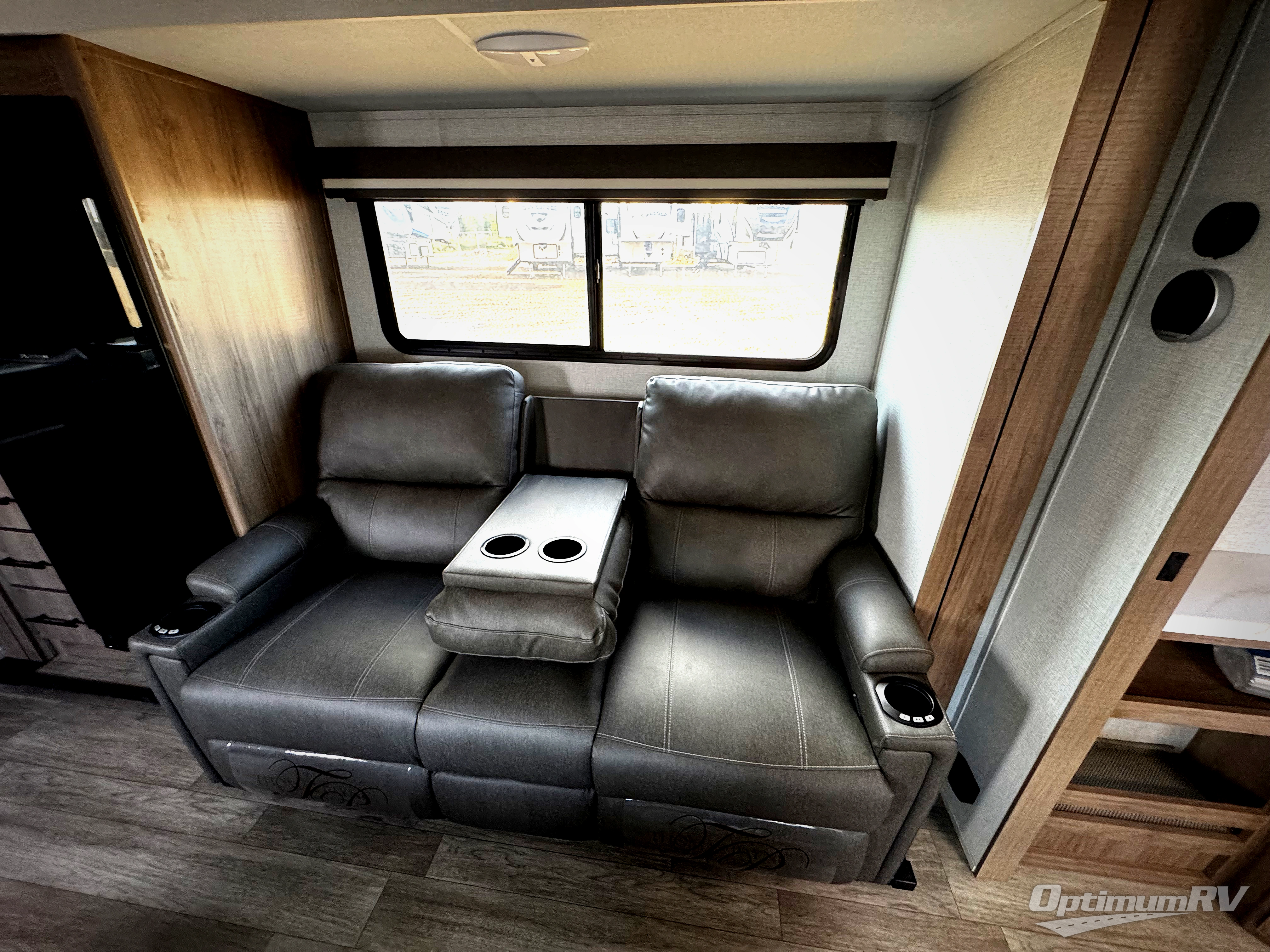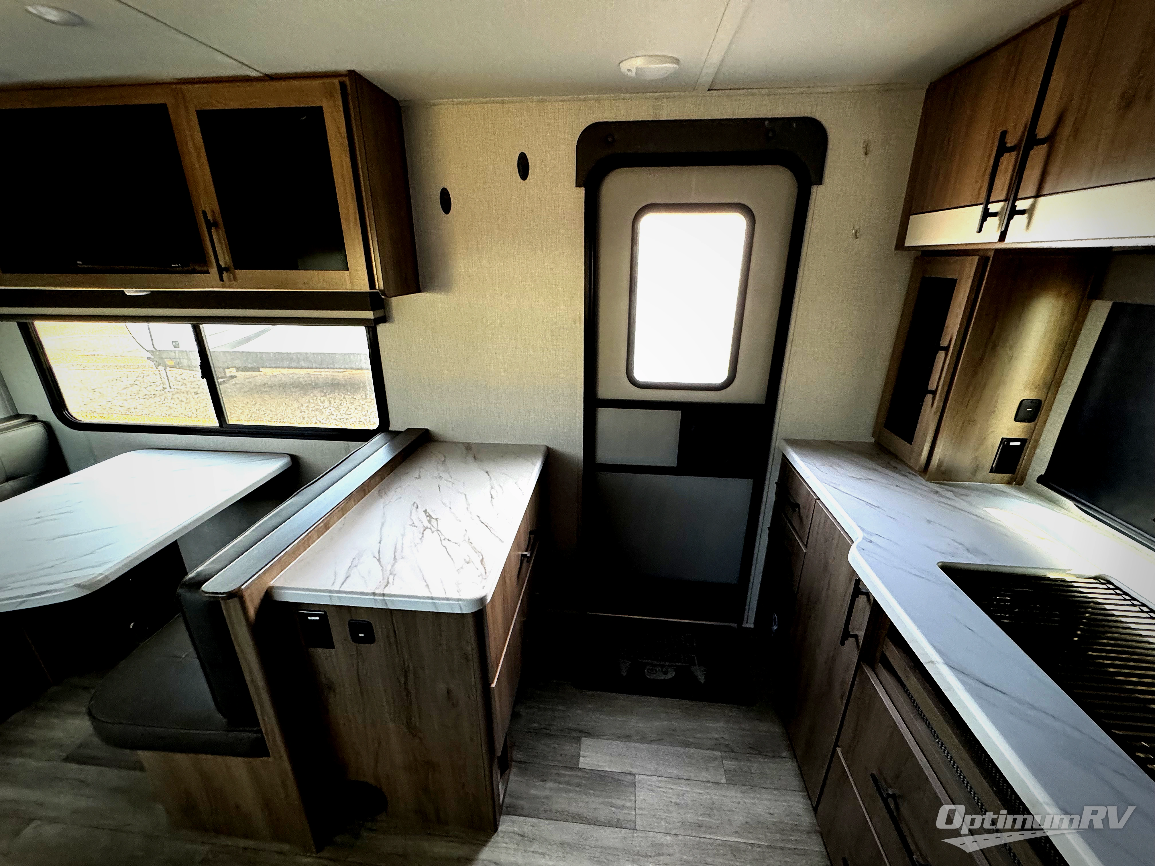 Treat yourself to a weekend of fun in this Imagine XLS travel trailer! Whether it's just you and your spouse, or you've chosen to bring along a group of friends, this trailer will meet the need. The front bedroom can sleep two people on the walk-around queen-size bed. The bedroom is quite functional because it not only contains the second exterior entry door, but it also has a private entrance into the walk-through bathroom since it is located on the other side of the bathroom. The booth dinette is functional too because it can transform from a dining location into a sleeping location, and the theater seating is directly across from the LED TV for easy viewing.