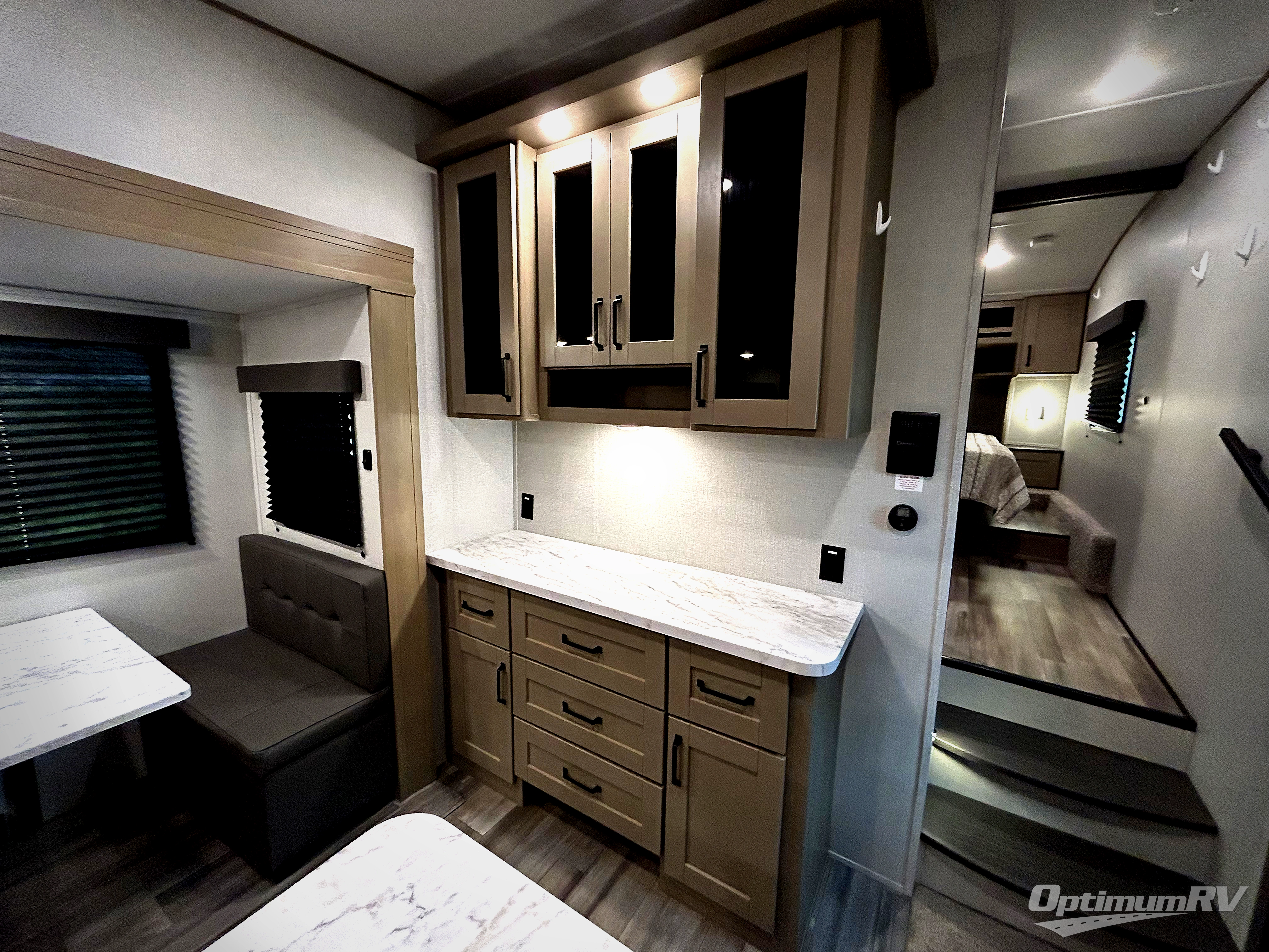 Each Reflection 100 Series fifth wheel by Grand Design is affordable and packed with luxury for unforgettable camping memories! The MorRyde CRE3000 suspension system and Goodyear Endurance tires will provide smooth towing from home to campground. And the solar package with a 180W solar panel, 60 Amp charge controller and 12V refrigerator will allow you to camp for longer periods of time and in more locations! A heated and enclosed underbelly with circulating heat is included in the Arctic 4-Seasons Protection Package, along with a double insulated roof and front cap, and thermofoil insulation under the holding tanks so you can camp all year long if you choose. You will appreciate having an on-demand water heater for hot showers after exploring, and the universal all-in-one docking station will let you monitor your RVs tanks levels and functions with ease. These models also include many luxurious interior features, such as premium Congoleum flooring, pleated shades, residential cabinetry, and matte black fixtures and hardware. Don't let the Reflection 100 Series fifth wheels pass you by!
