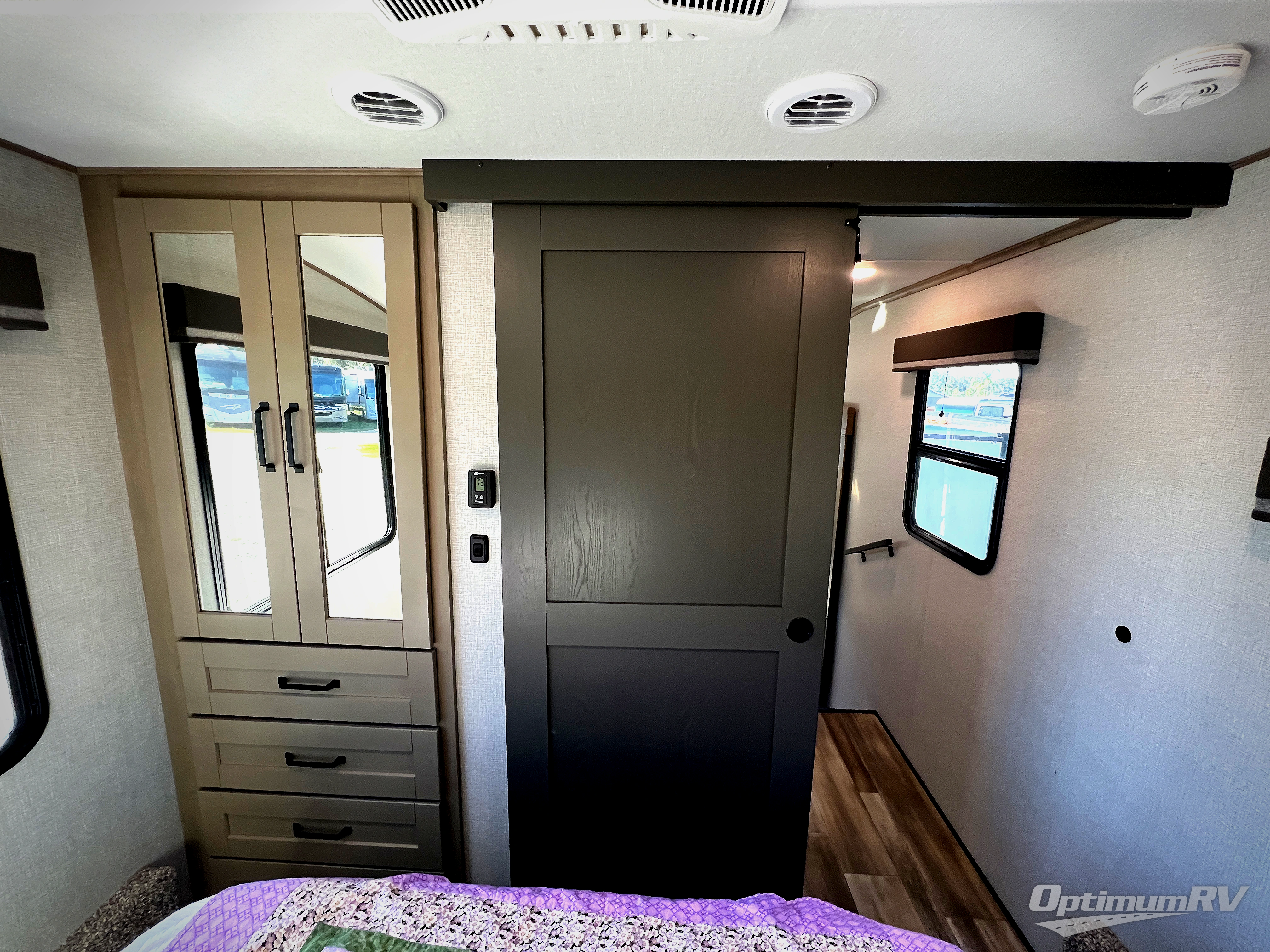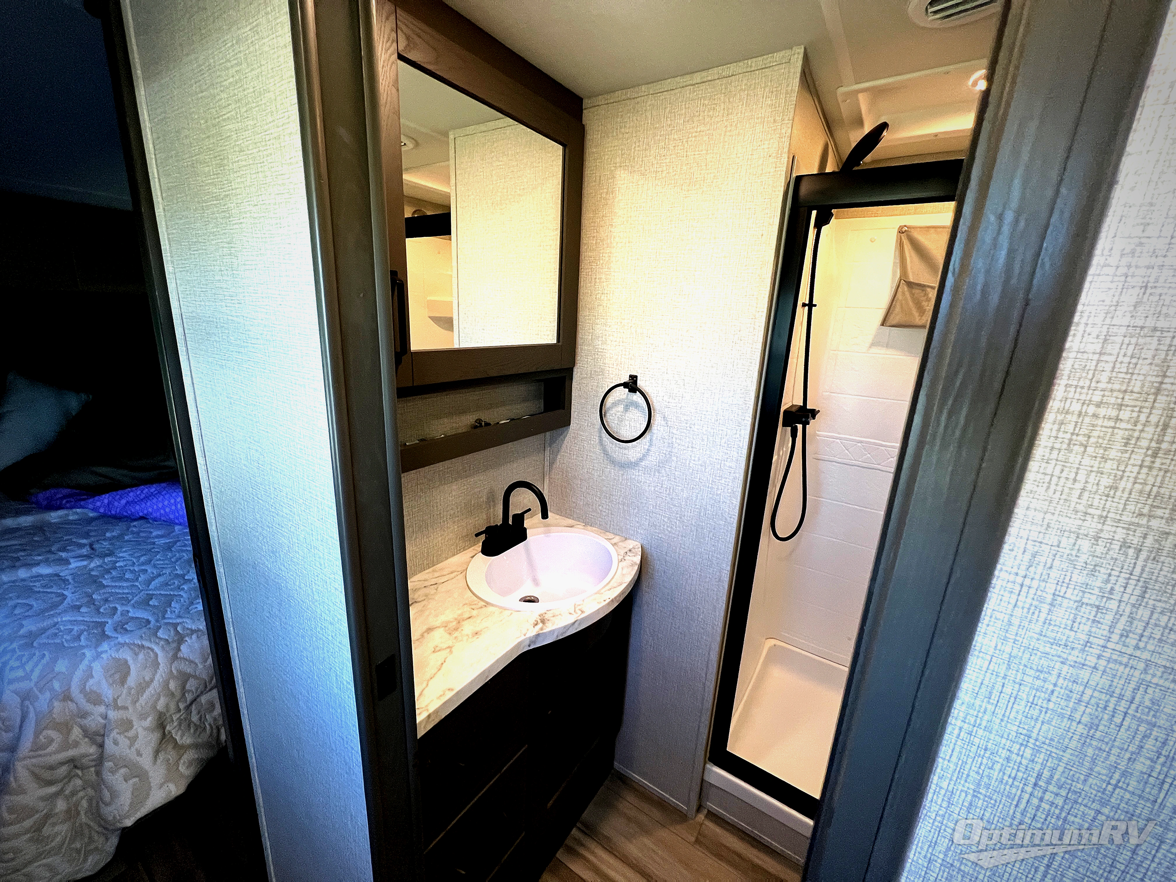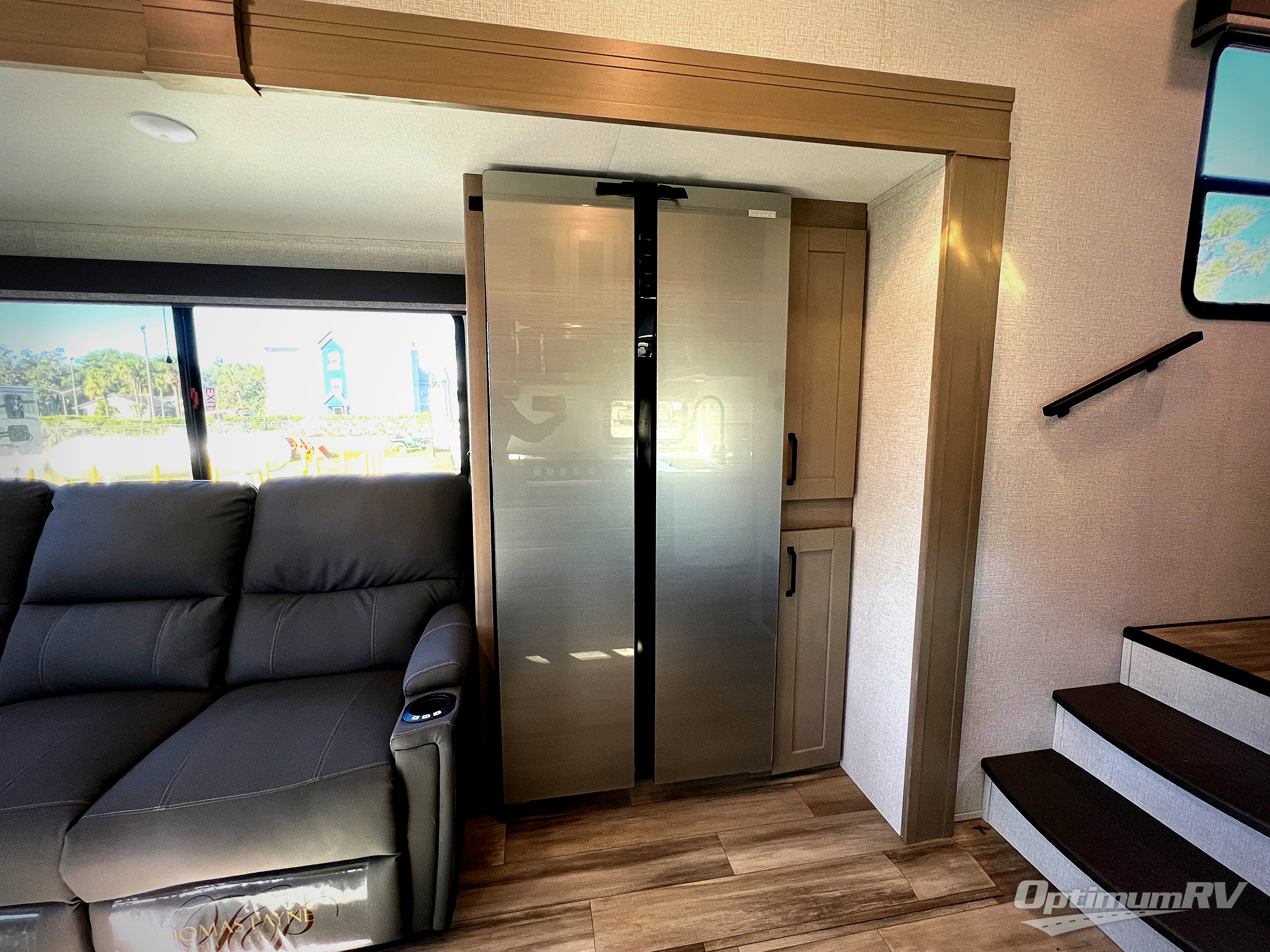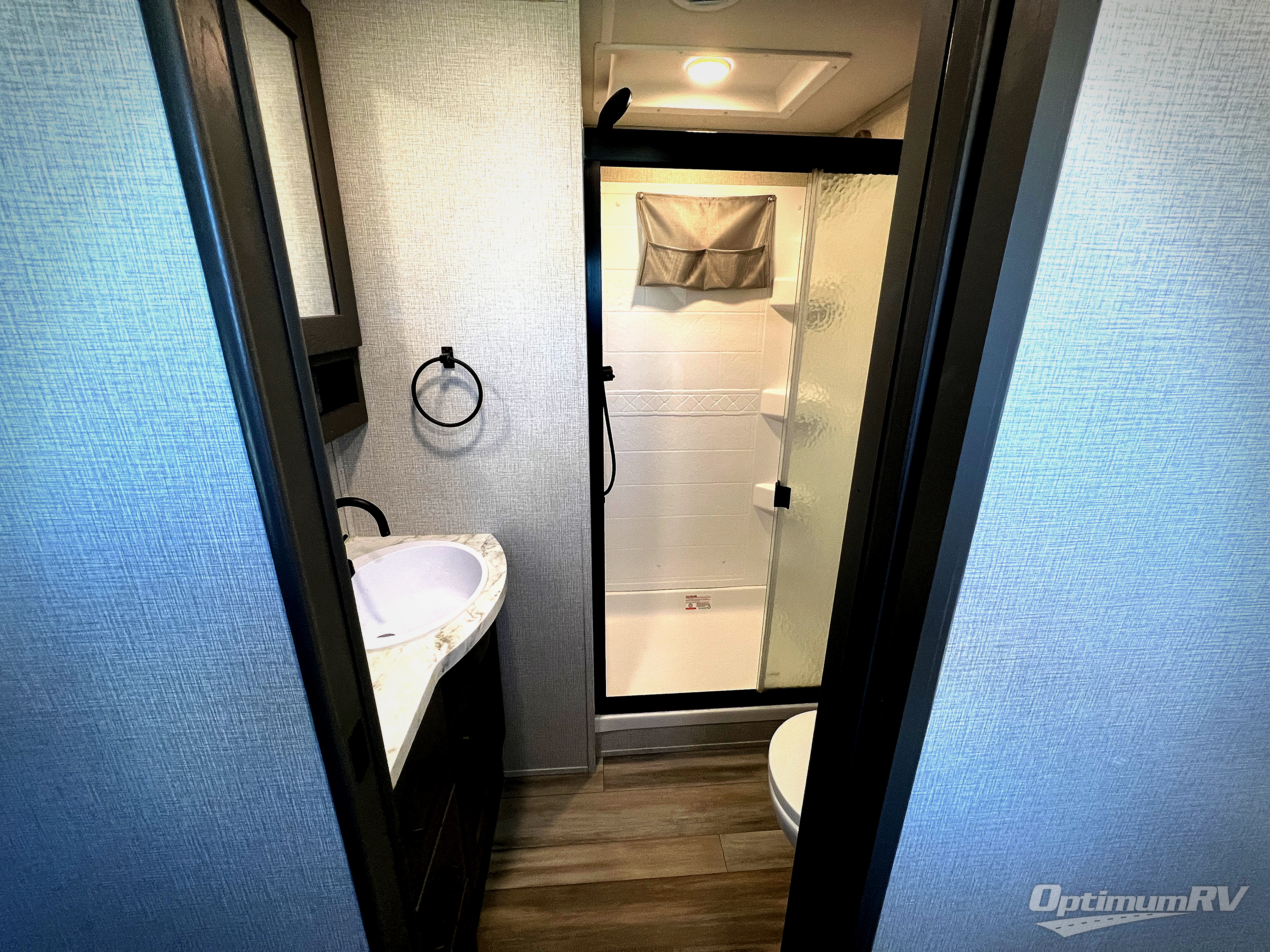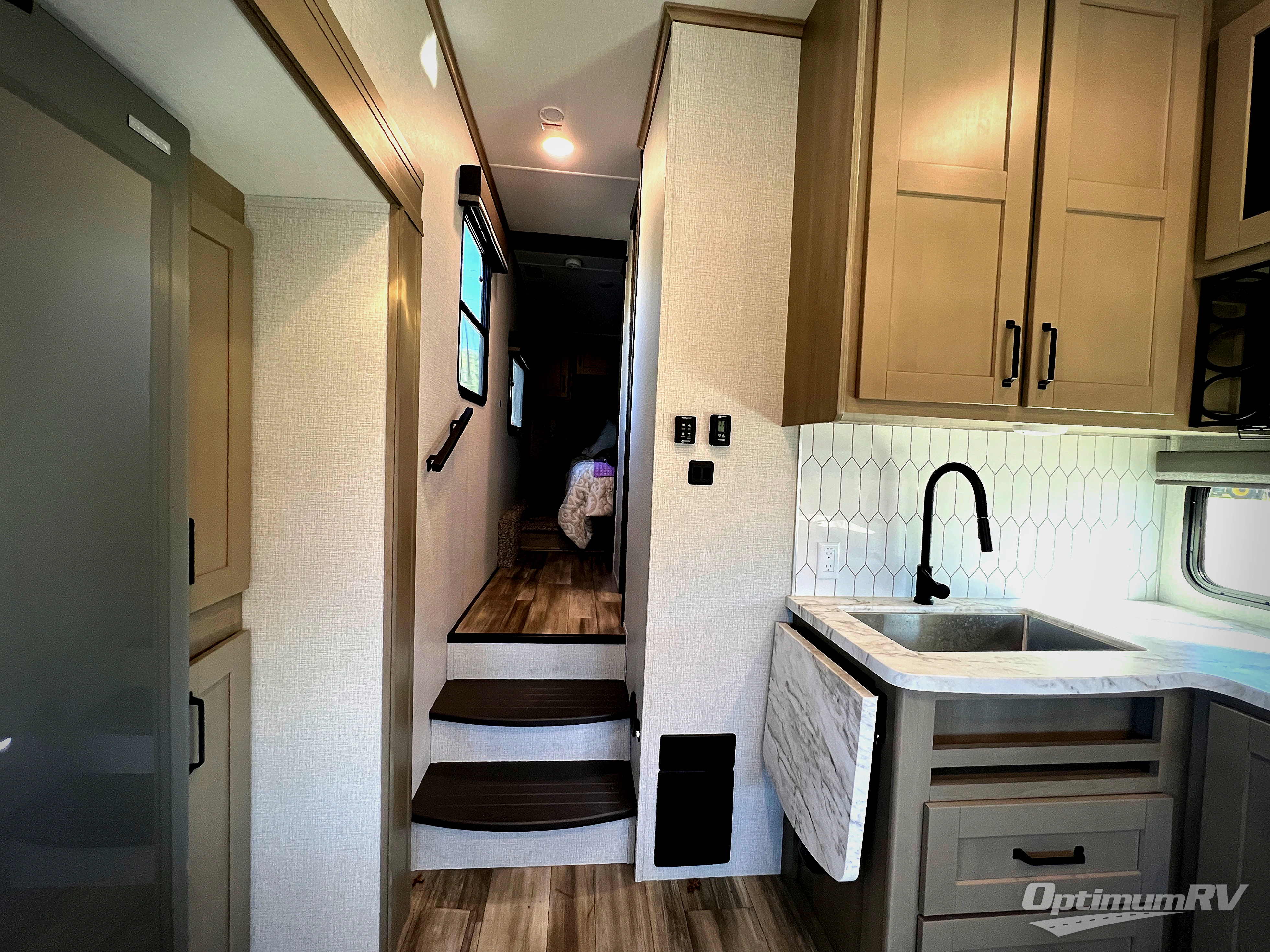 With any Reflection 150 Series fifth wheel by Grand Design, there is more available payload capacity and a broader range of half-ton trucks capable of towing this fifth wheel, and no slider hitch is needed thanks to the 90-degree turning radius which makes them short bed friendly and easier to tow. The mandatory Ultimate Power package provides a "One-Touch" automatic leveling system and a detachable power cord with LED light for easy setup, plus motion sensor pass-through lighting and entry lighting, and the Tire Linc TPMS will help you stay safe on the road. The interior offers residential luxury from the cabinetry and premium congoleum flooring, plus the booth dinette to the residential-style window treatment. Make your refined decision today!