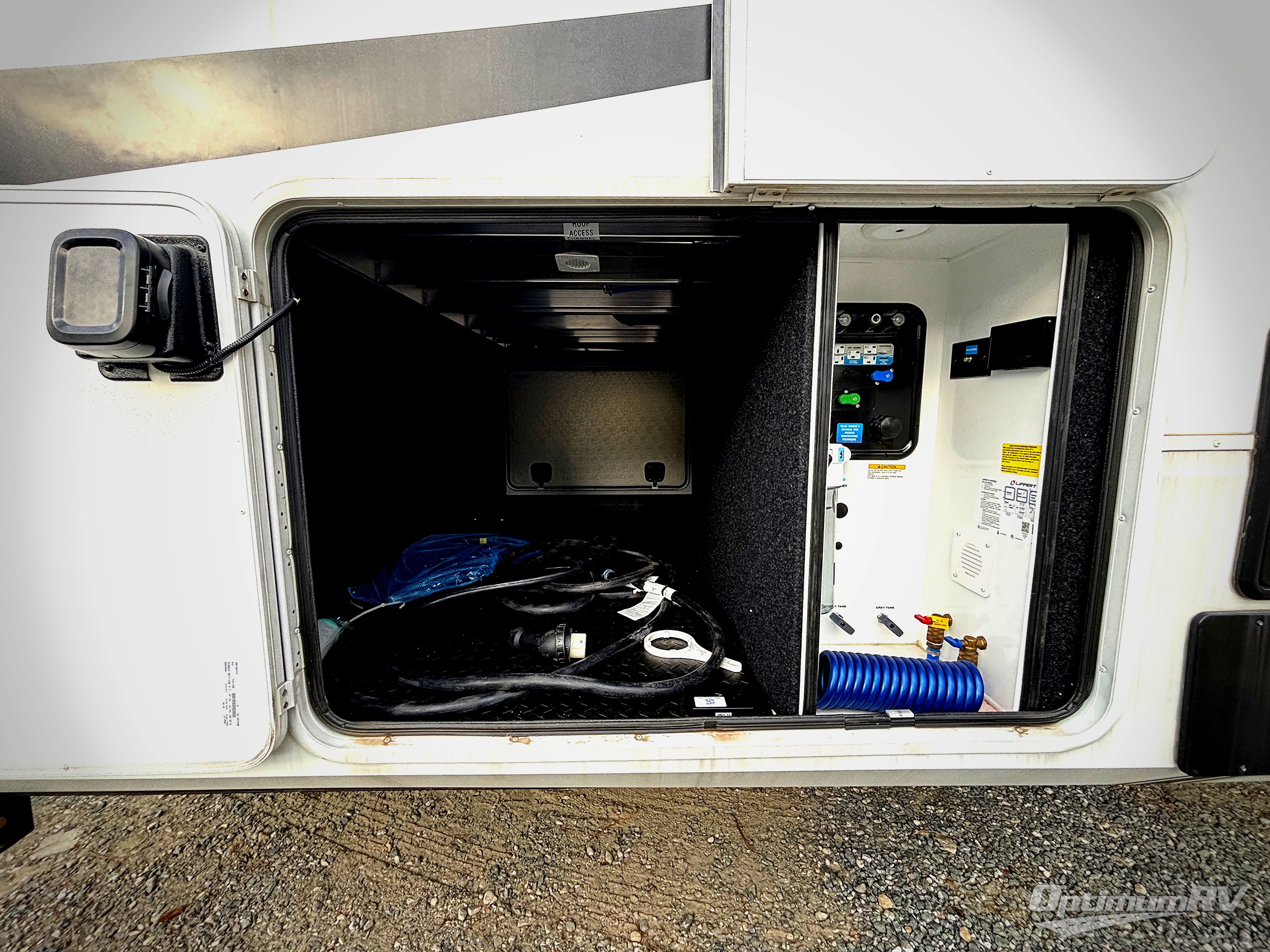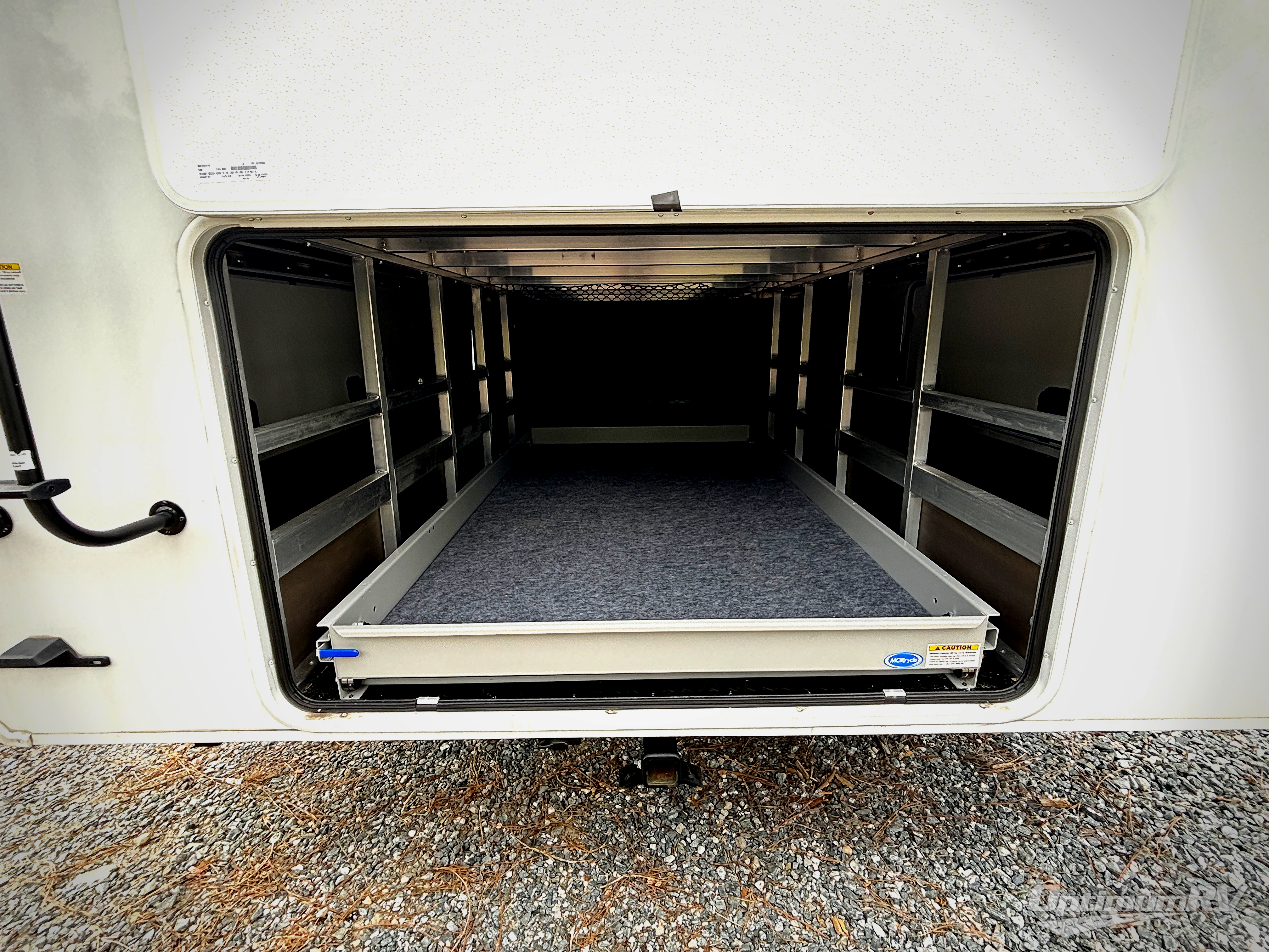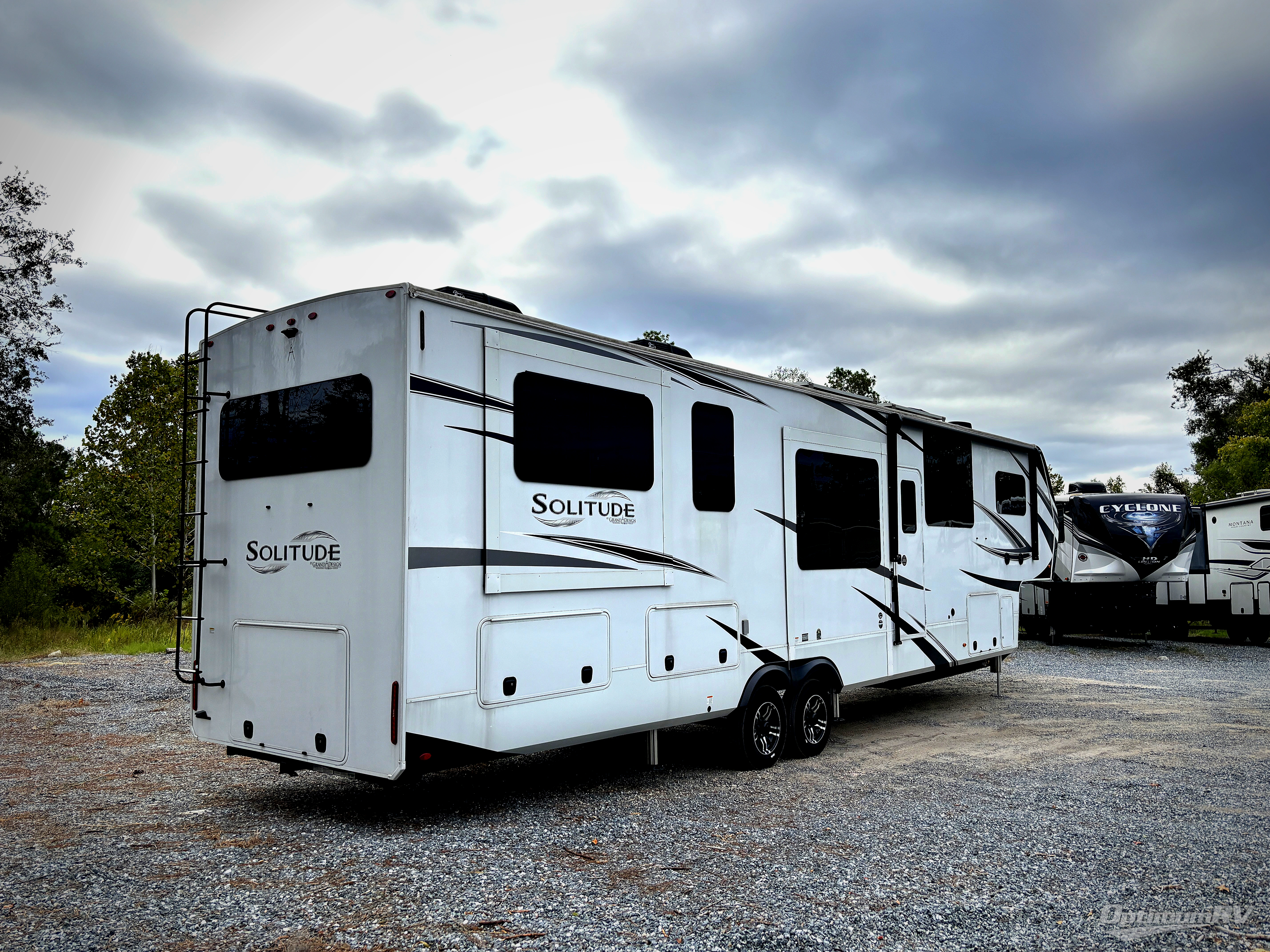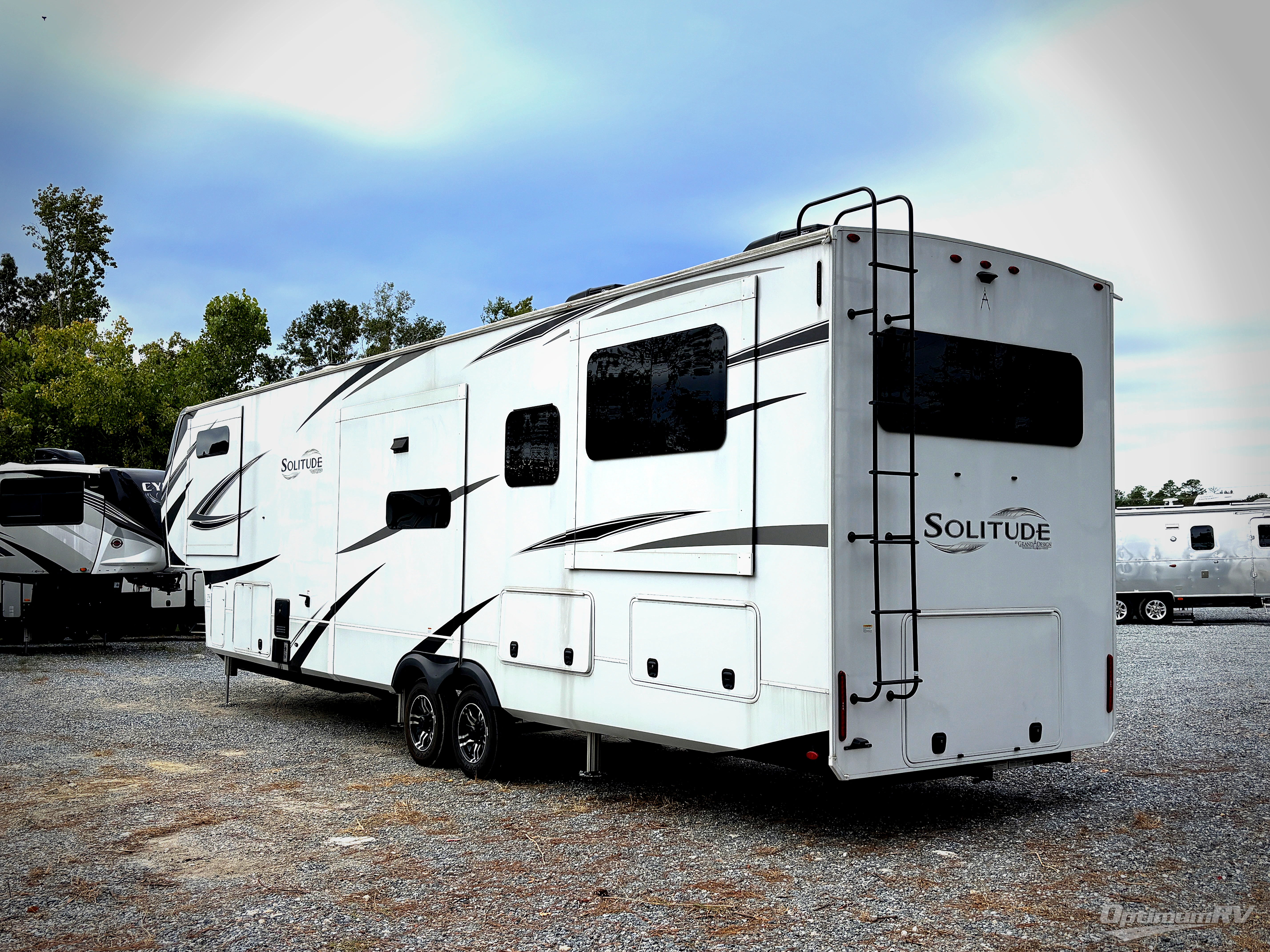 Each Solitude fifth wheel by Grand Design features a 101" wide-body construction, heavy duty 7,000 lb. axles, frameless tinted windows, and high-gloss gel coat sidewalls. You can camp year around thanks to the Weather-Tek Package that includes a 35K BTU high-capacity furnace, an all-in-one enclosed and heated utility center, and a fully enclosed underbelly with heated tanks and storage. Inside, you'll love the premium roller shades, hardwood cabinet doors, solid surface countertops and sinks, plus residential finishes throughout to make you truly feel at home. Each model also includes a MORryde CRE3000 suspension system, self adjusting brakes, and a MORryde pin box that will provide smooth towing from home to campground. Affordable luxury is possible with the Solitude fifth wheels; choose yours today!