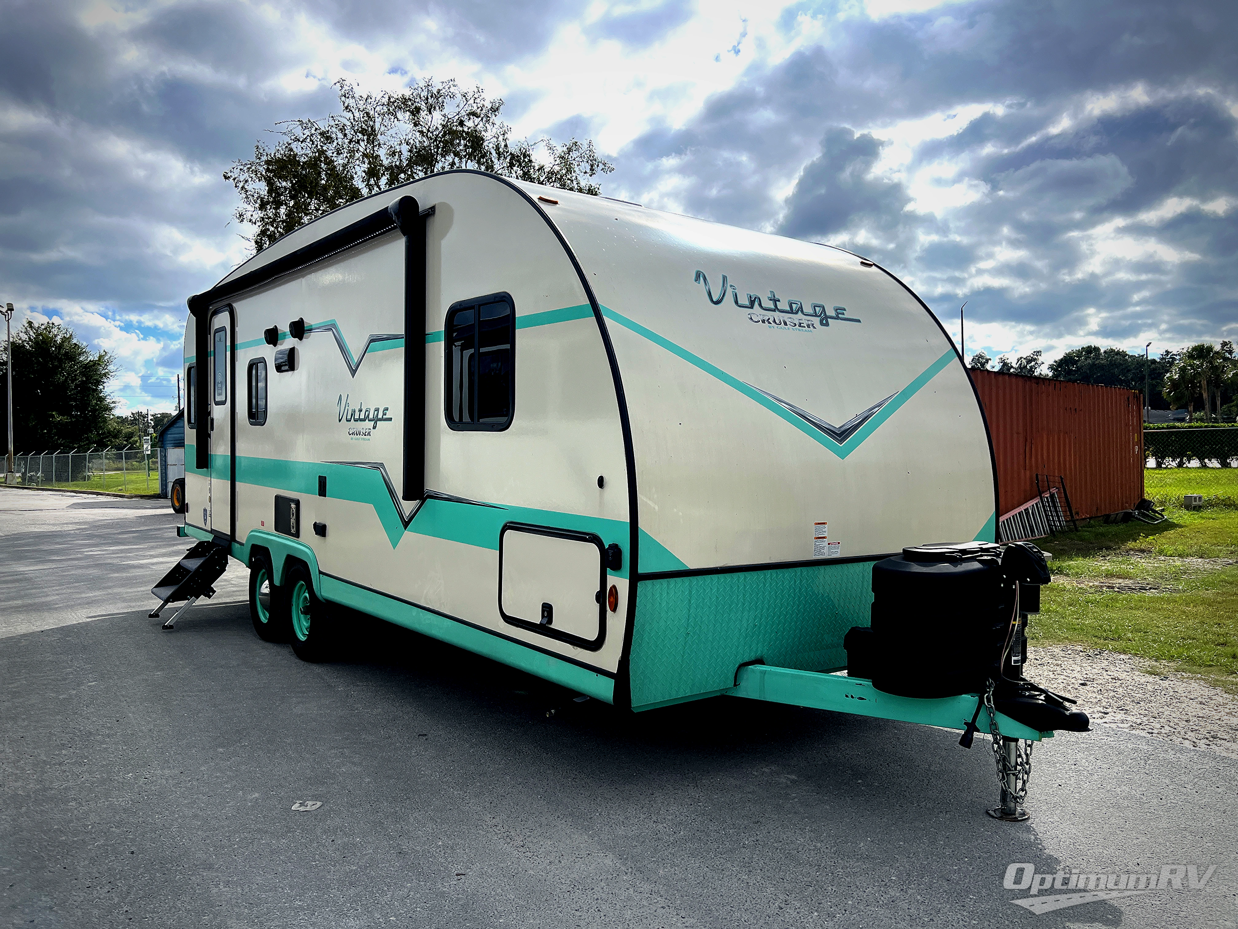 With any Vintage Cruiser by Gulf Stream you will be taken back to the fun of the 50's with vintage exterior graphics and classic interiors. Each model is constructed with a six-sided welded aluminum frame, vacuum bonded sidewalls with Azdel, and a vintage painted bumper you are sure to love. The Vintage Cruiser travel trailers include high-performance vinyl flooring, LED interior ceiling lights, a seamless tub/shower surround, and vintage flat cabinet doors to name a few comforts you'll find throughout. Some of the stand-out features found within the Vintage Package include a tankless water heater, a 100W roof-mounted solar panel with a controller, Goodyear Endurance tires, and more!