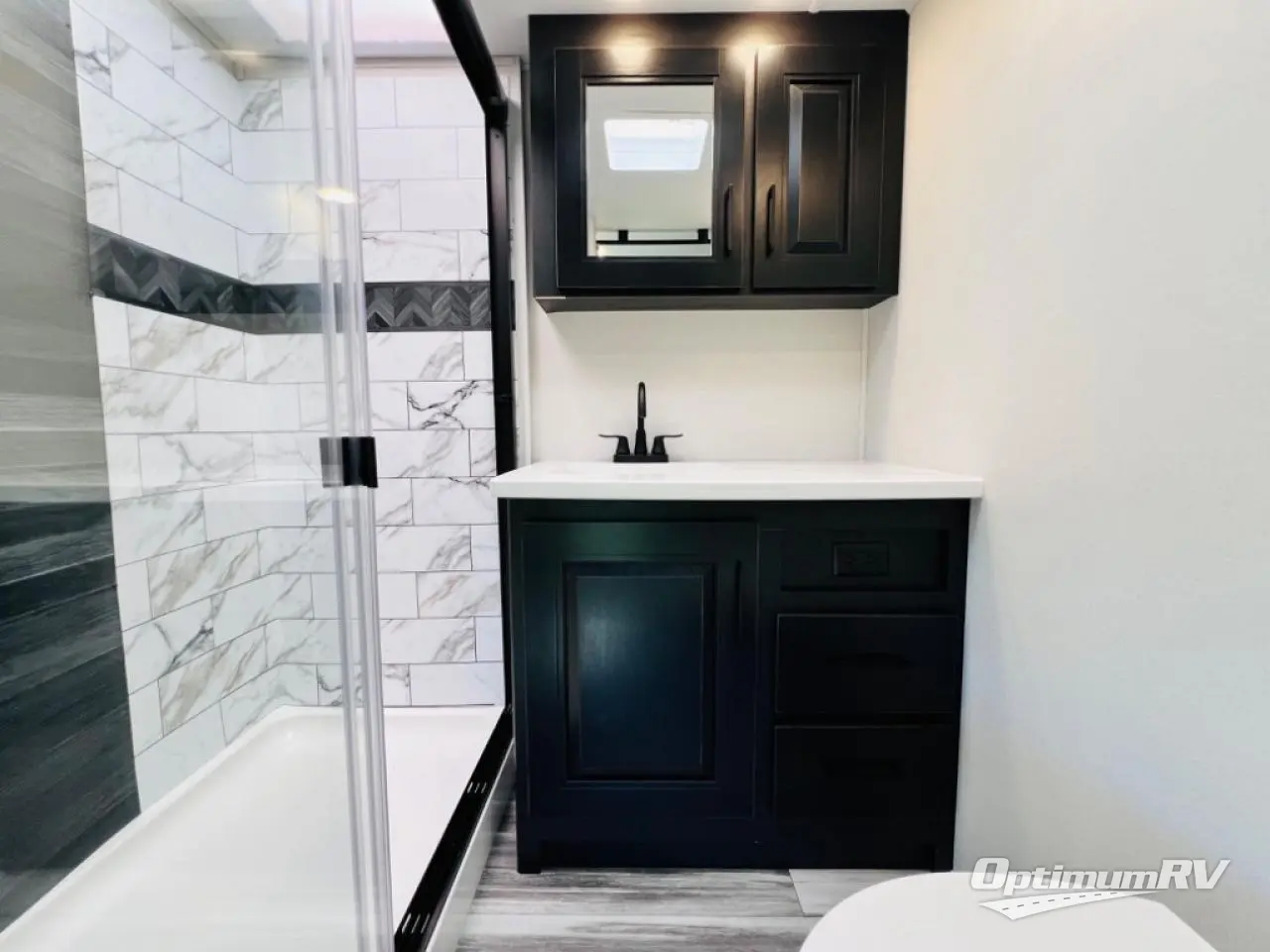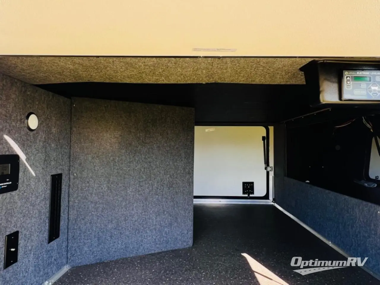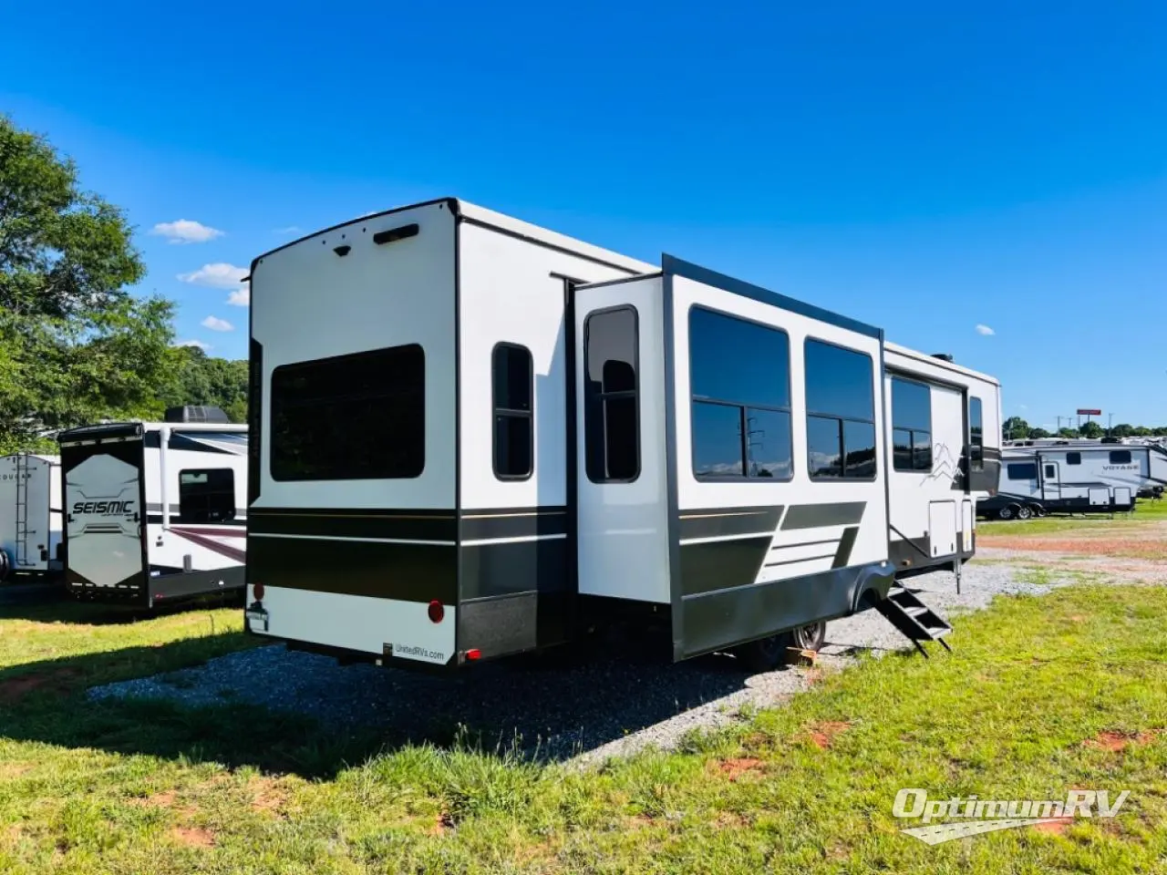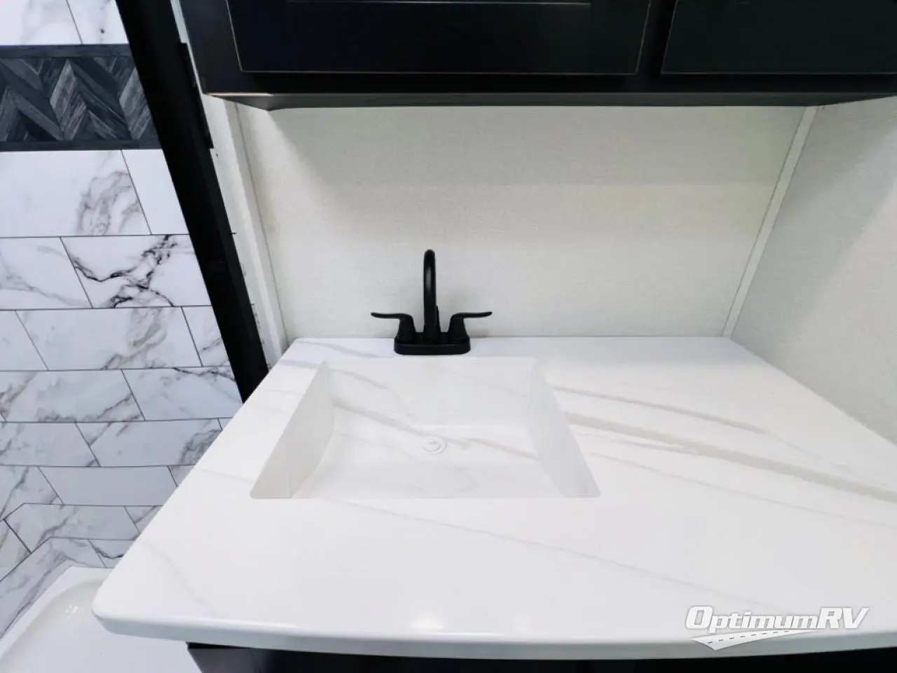 This fifth wheel is big enough for the whole family to join in on the fun at the campground! There is not only a front private bedroom with a king bed slide and a closet prepped to add an optional washer and dryer, but also a second bedroom with a loft above a sofa, a desk, and a wardrobe. Meal prepping is made easy with a kitchen island with dishwasher prep, and a four burner cooktop so you can cook more food at one time. There is a floating dinette table with four chairs to enjoy your meals at or play a game of cards, and the dual recliner love seat is directly across from the 55" smart TV and fireplace with hidden storage. And if you have any more guests sleep over, they can crash on the rear tri-fold sofa!