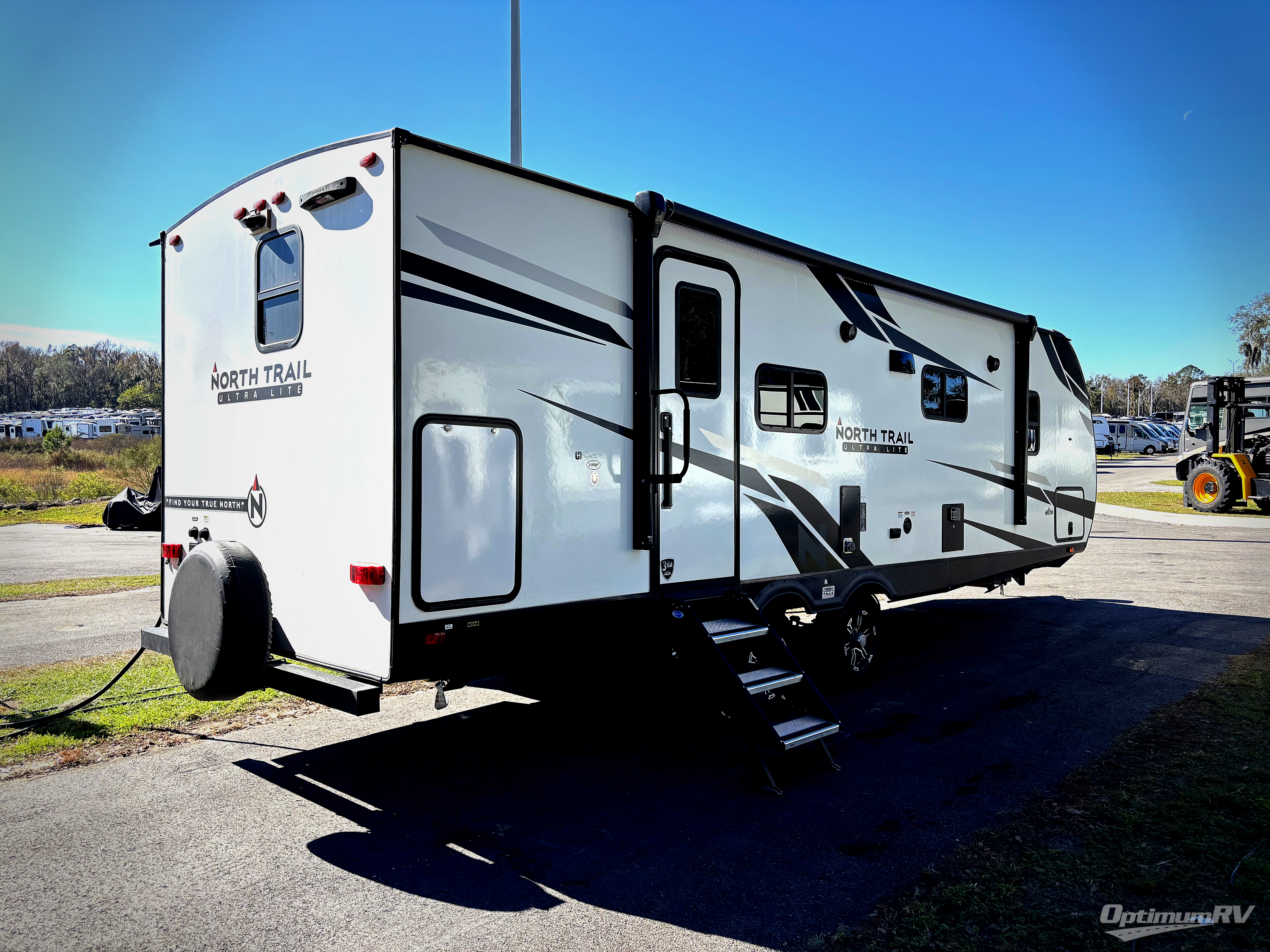 When you choose a North Trail Ultra-Lite travel trailer by Heartland you are choosing comfort, convenience, and quality craftsmanship at its best. The block foam brick insulation, enclosed and heated underbelly, plus Weather Guard thermal protection mean you can camp all year around. Each model features a Wide Trax suspension for a smooth ride, and the backup camera prep and solar prep make camping that much easier if you choose those options. Some of the other exterior features you will appreciate are the outside shower, the power stabilizer jacks and power tongue jack, and the outside speakers to keep the party going. Head inside to find stainless steel appliances, oversized windows, and premium flooring that is tear, slip, mold, mildew and cold crack resistant! You can't beat a North Trail travel trailer. Choose your favorite floorplan today!