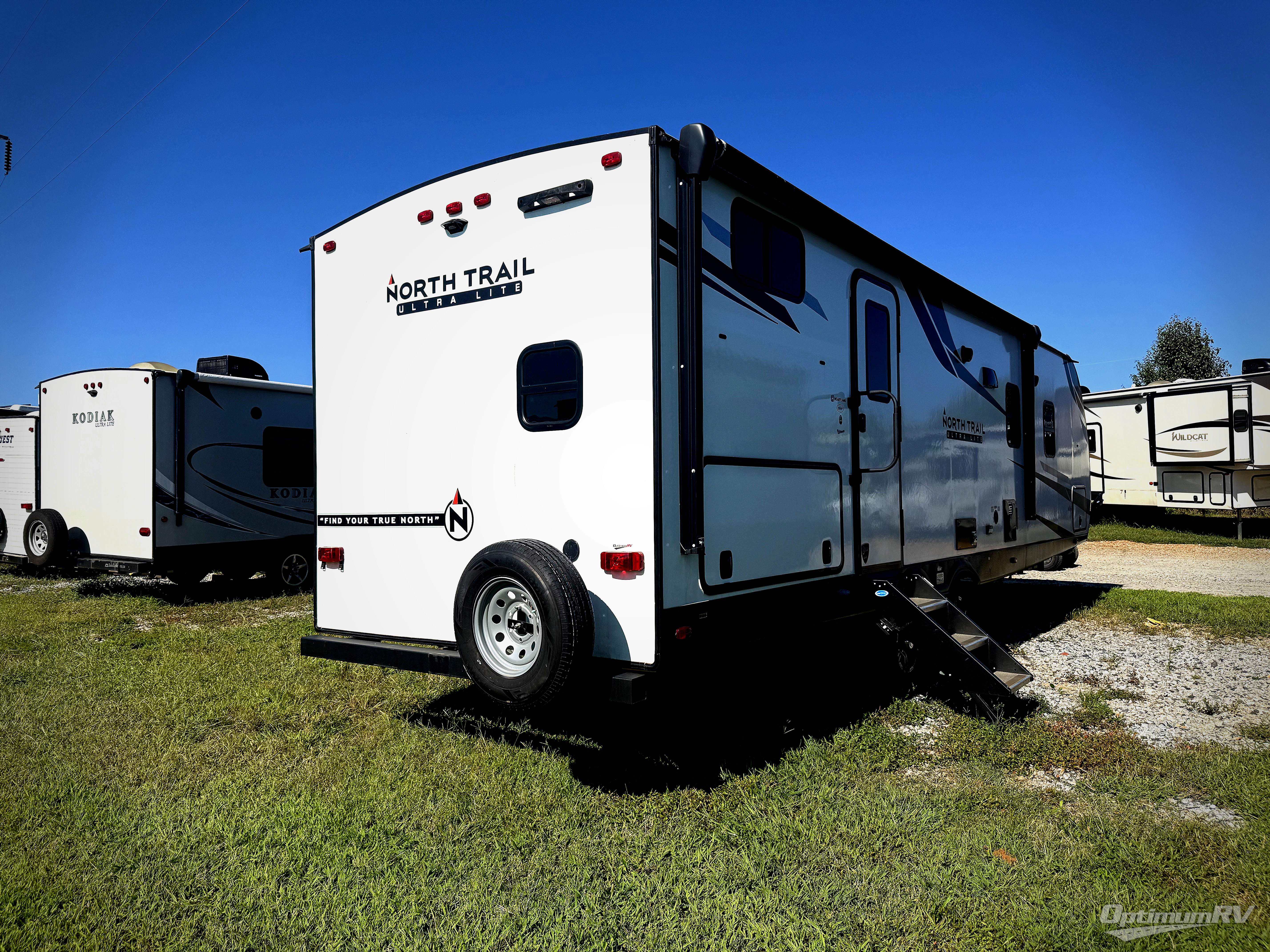 When you choose a North Trail Ultra-Lite travel trailer by Heartland you are choosing comfort, convenience, and quality craftsmanship at its best. The block foam brick insulation, enclosed and heated underbelly, plus Weather Guard thermal protection mean you can camp all year around. Each model features a Wide Trax suspension for a smooth ride, and the backup camera prep and solar prep make camping that much easier if you choose those options. Some of the other exterior features you will appreciate are the outside shower, the power stabilizer jacks and power tongue jack, and the outside speakers to keep the party going. Head inside to find stainless steel appliances, oversized windows, and premium flooring that is tear, slip, mold, mildew and cold crack resistant! You can't beat a North Trail travel trailer. Choose your favorite floorplan today!