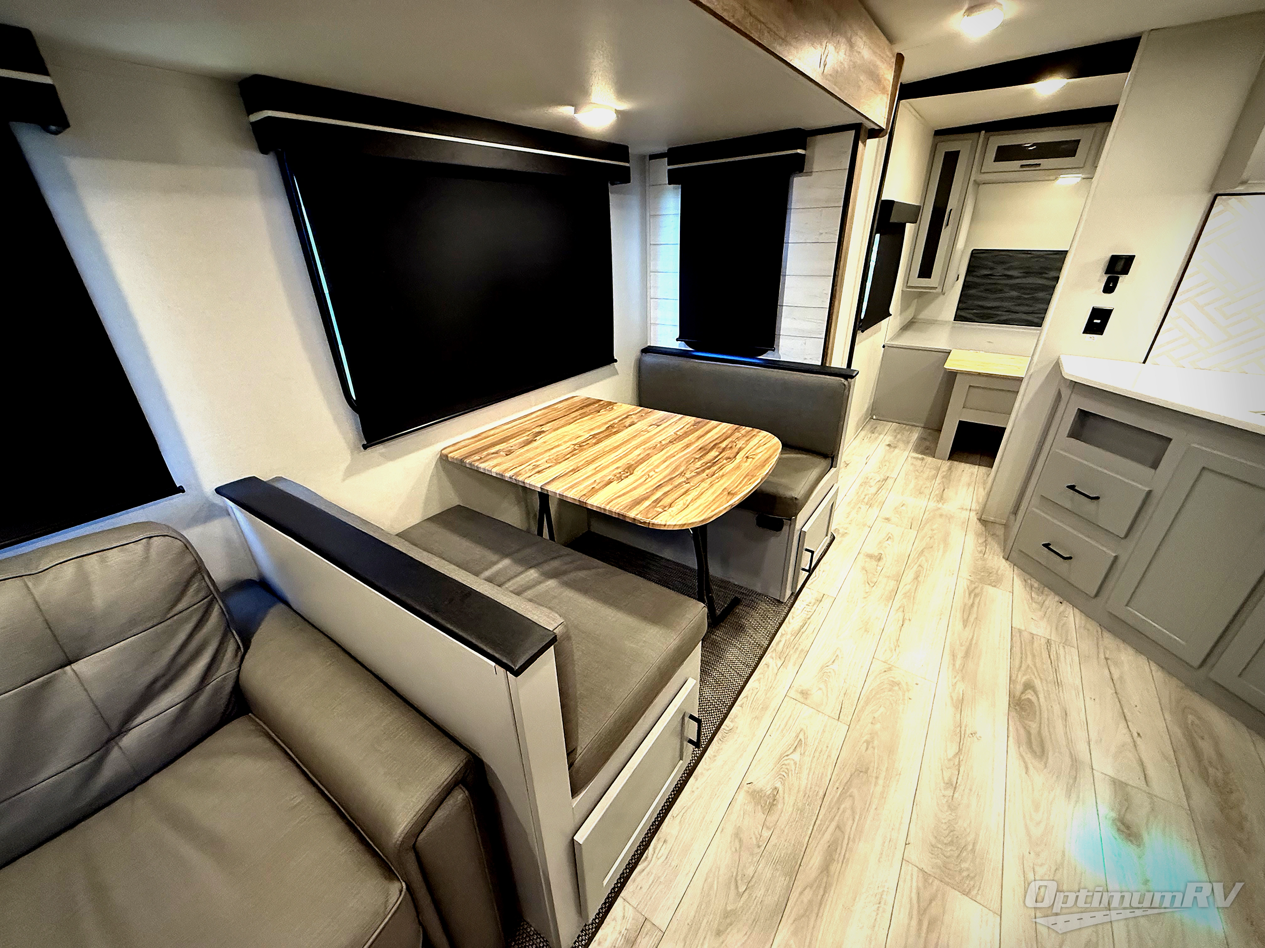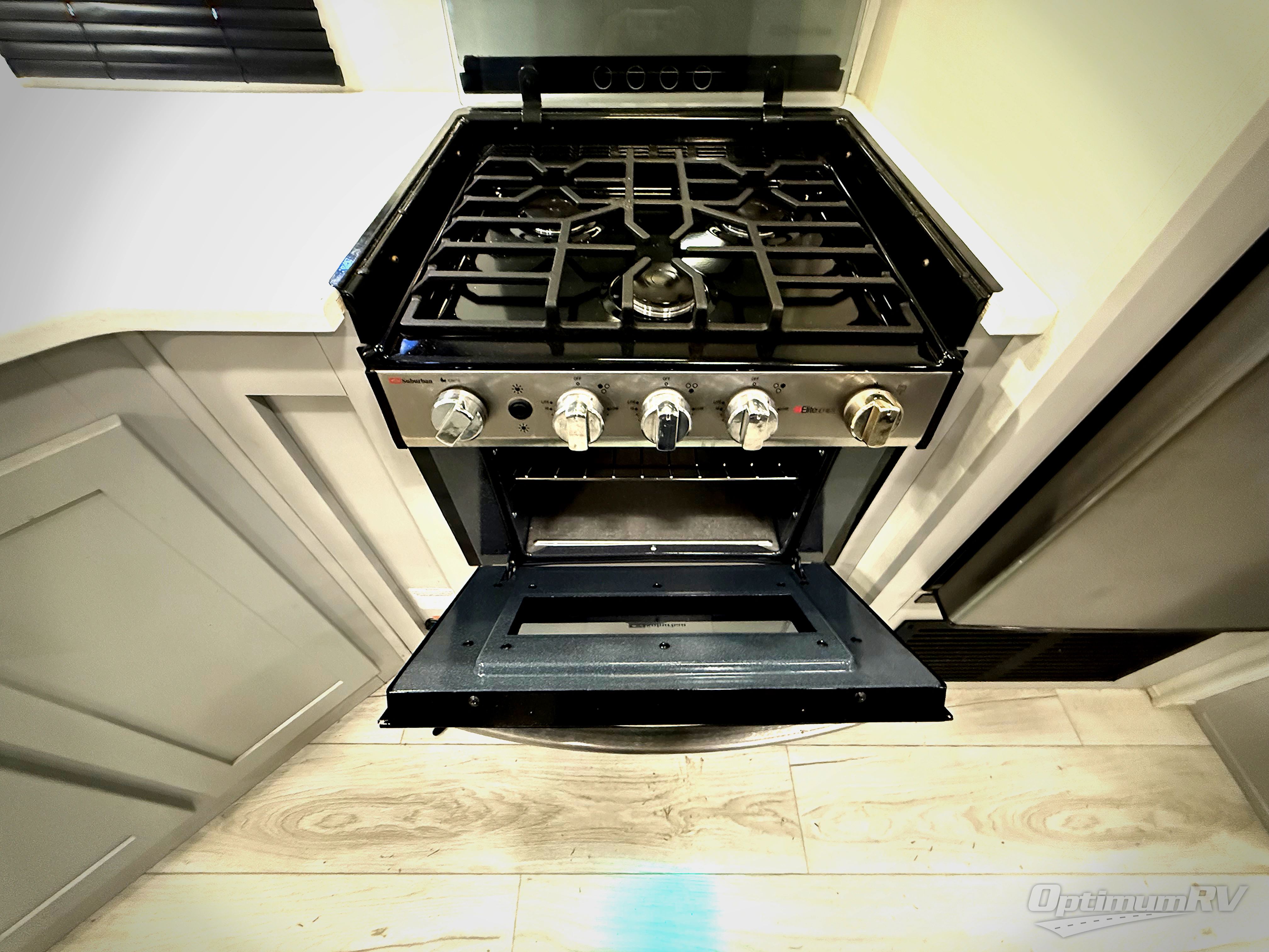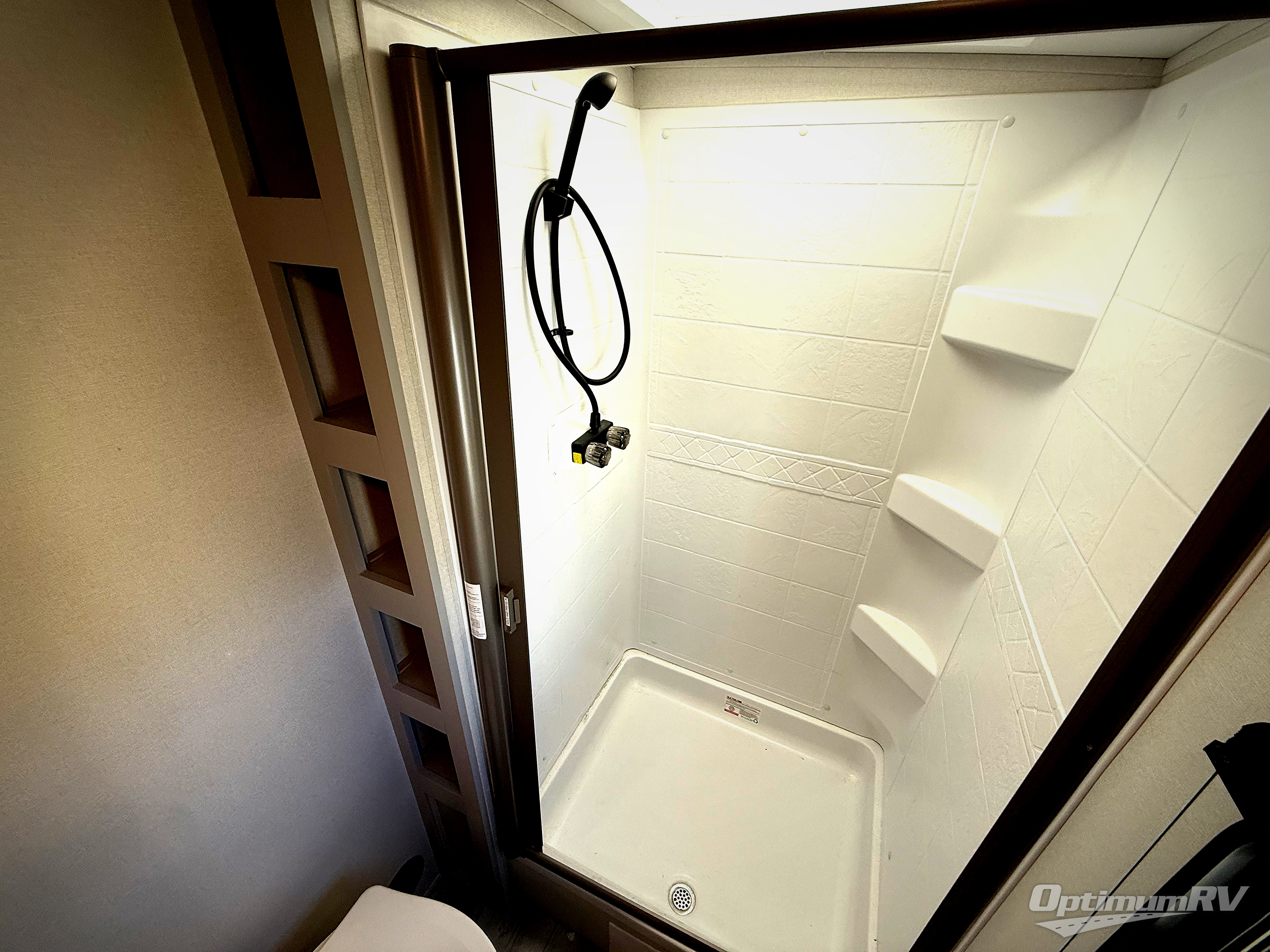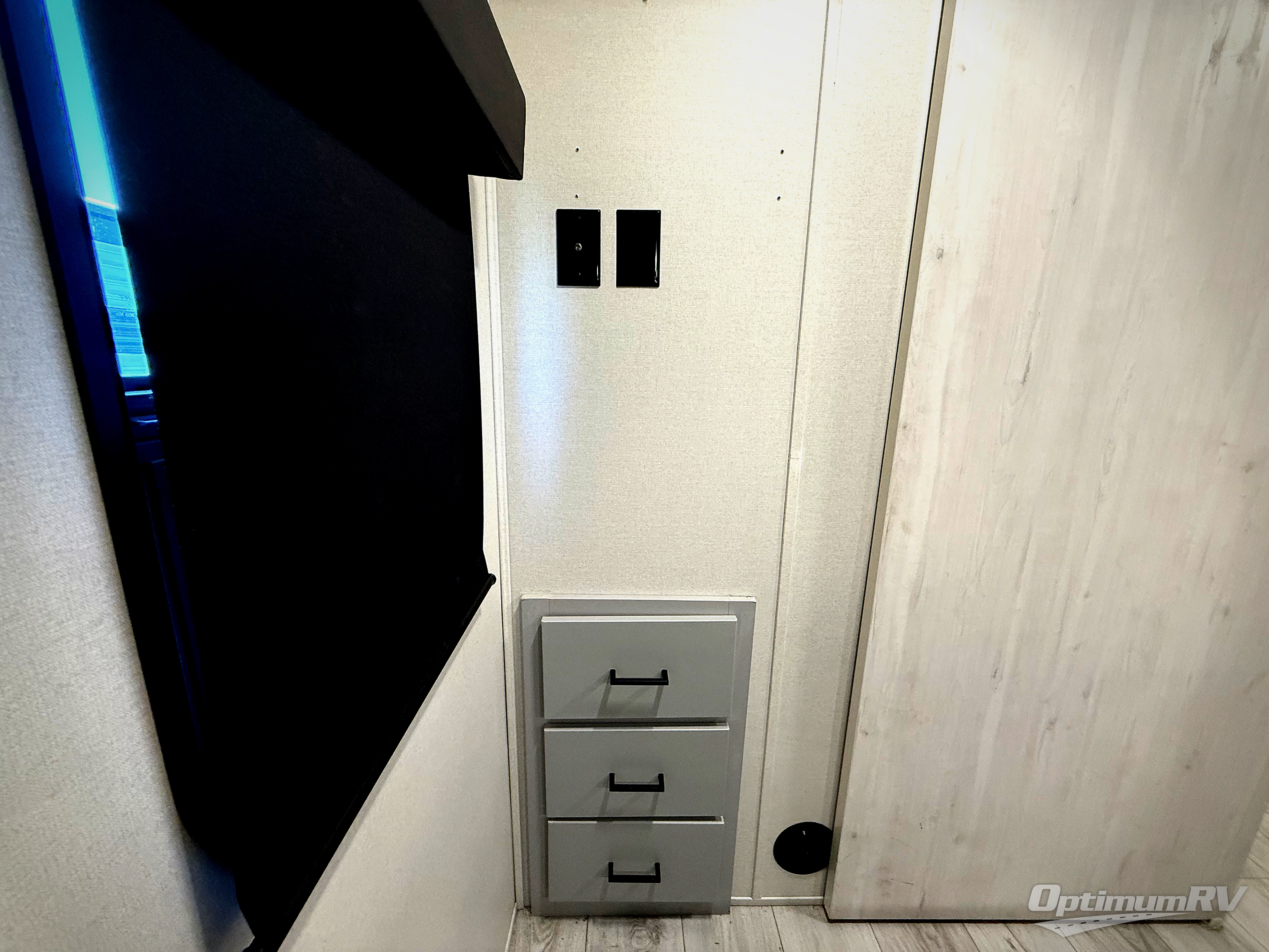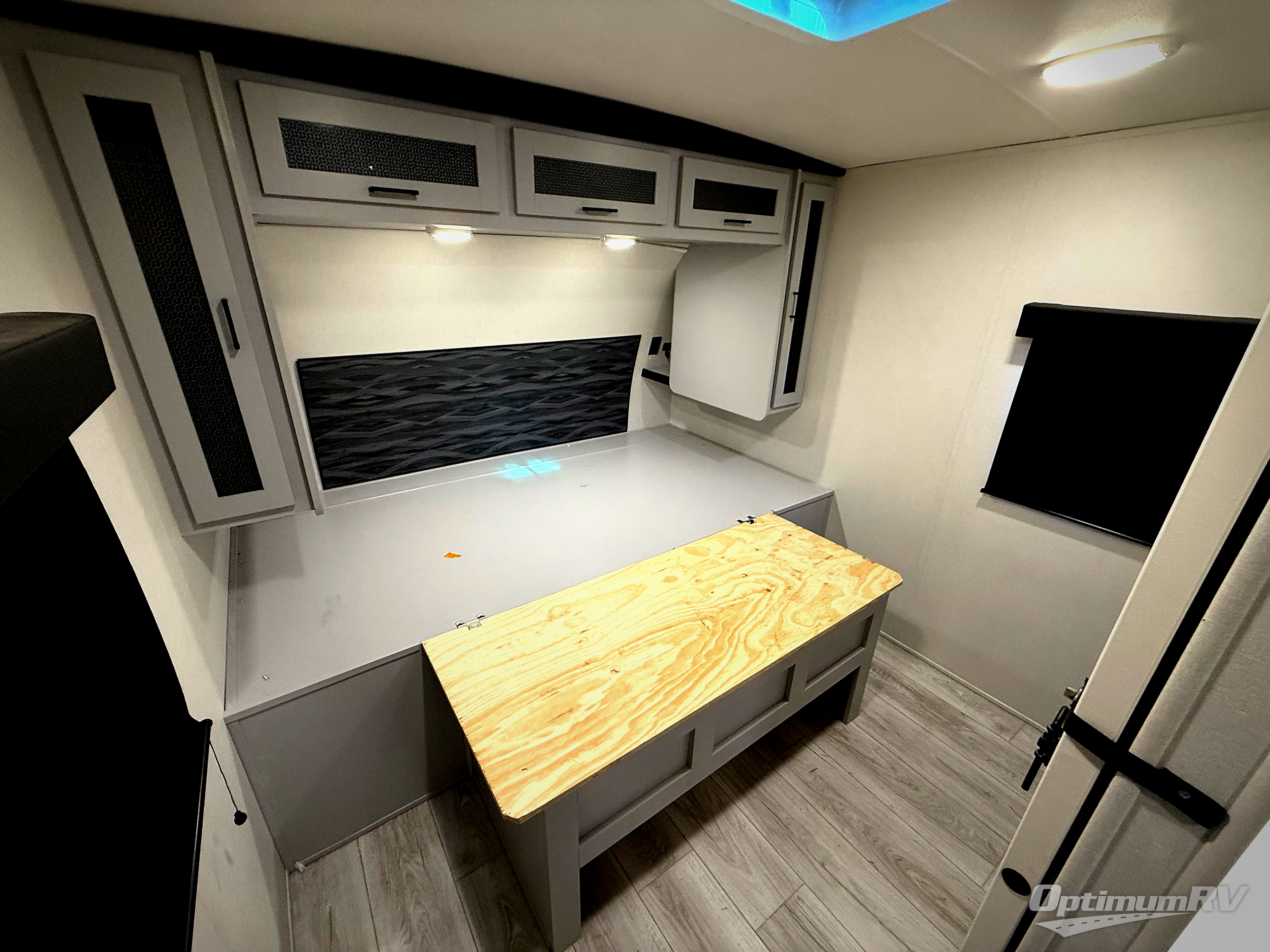 If you've been searching for a family-friendly travel trailer, your search is over with this model that can sleep eight to nine people each night. The double-size bunks are right beside the full bath for convenience, and the convertible sleeper sofa with a stowaway table are within the slide out, which will provide more floor space. Store your paper goods and snacks in the hidden pantry behind the entertainment center, and your valuables can go in the overhead compartments. This model features an exterior kitchen and a 19' power awning with LED lights for tons of outdoor fun!
