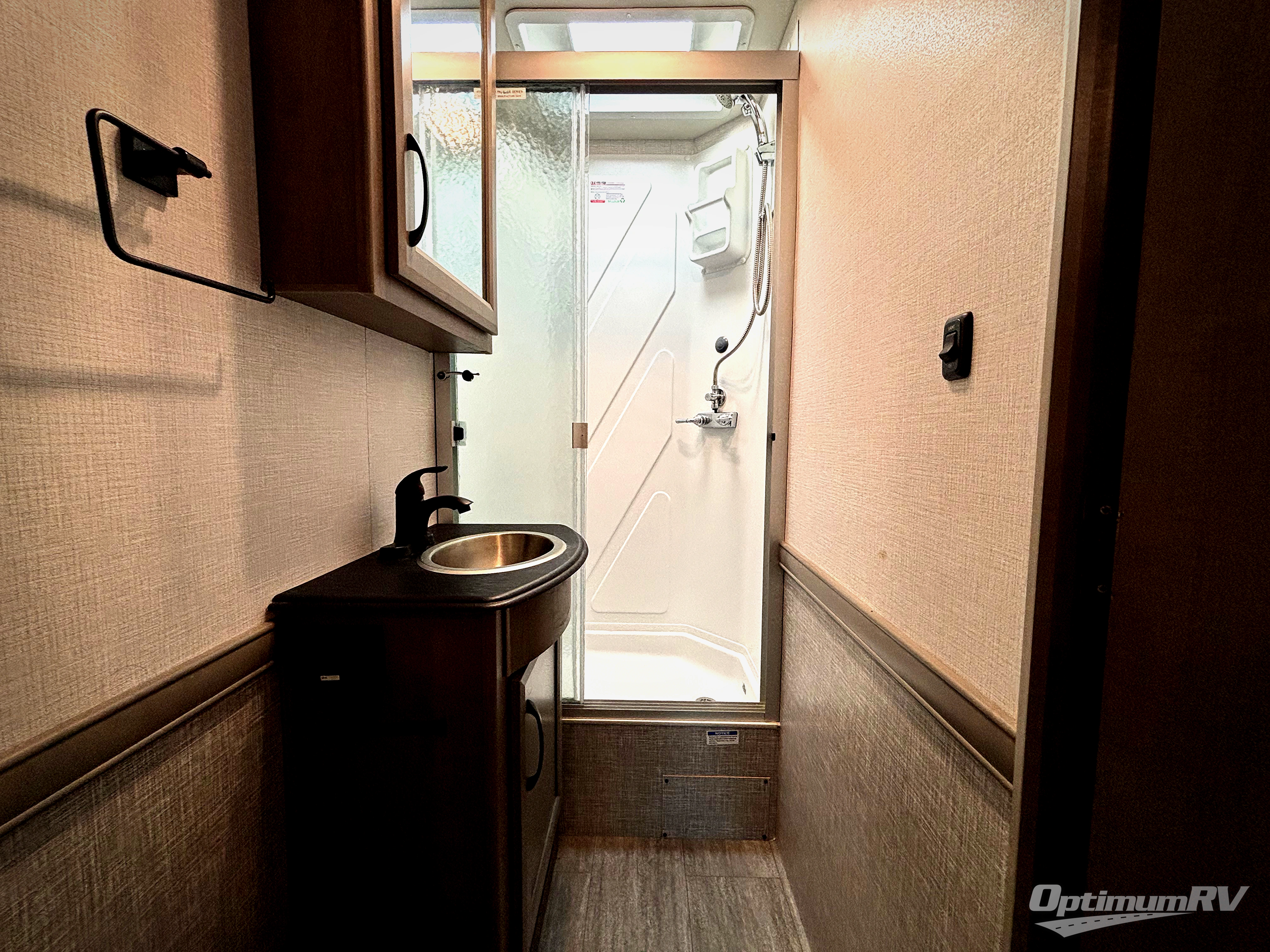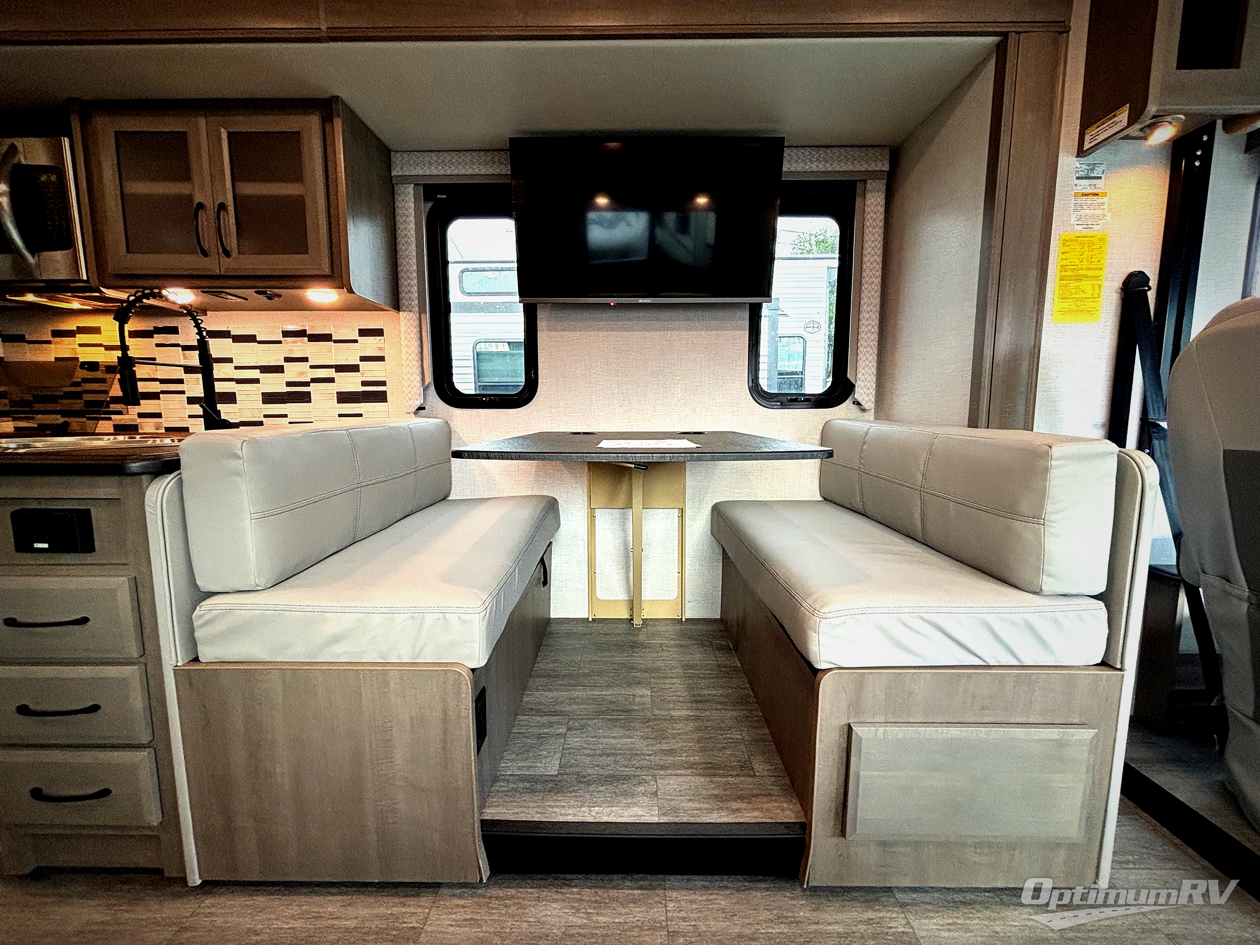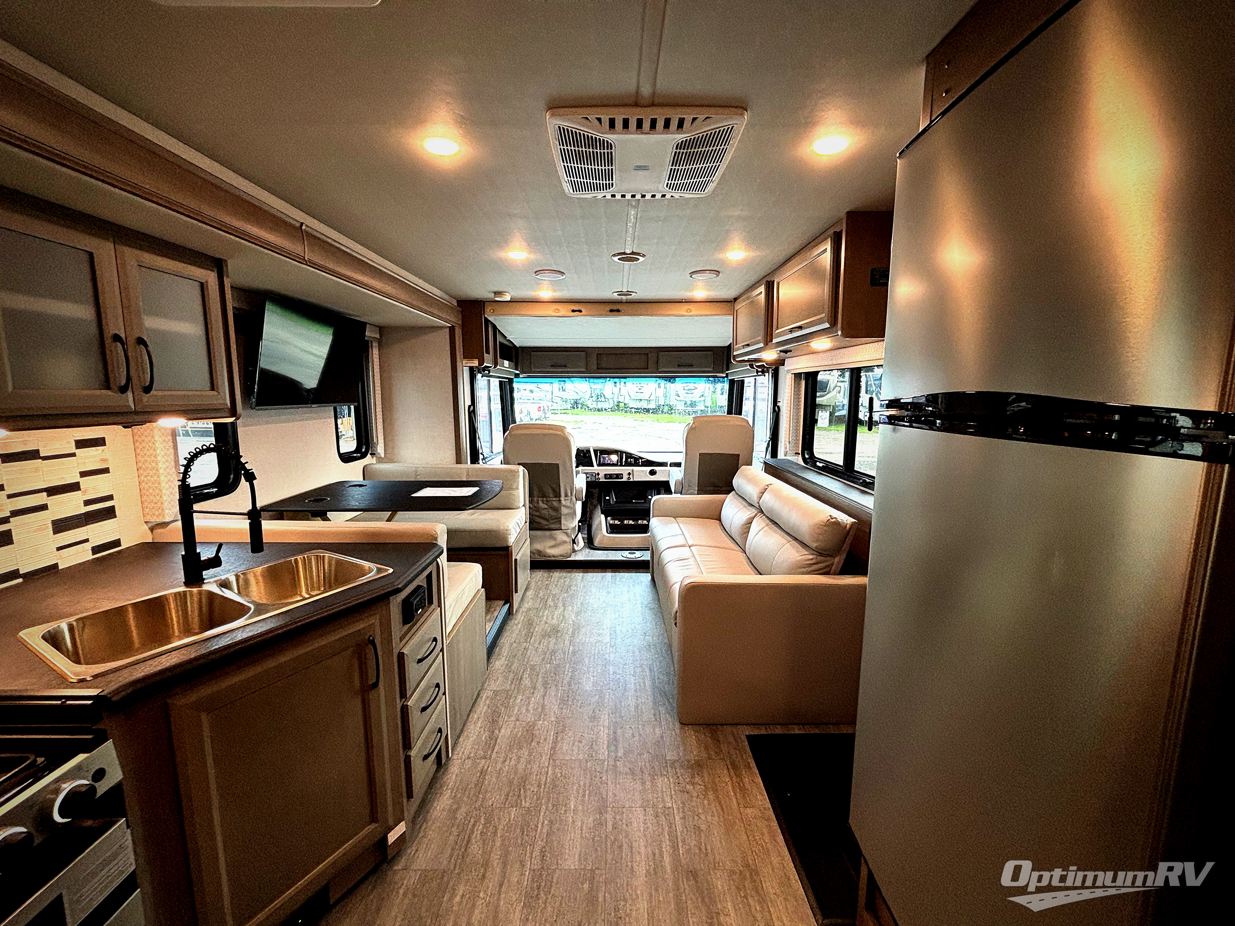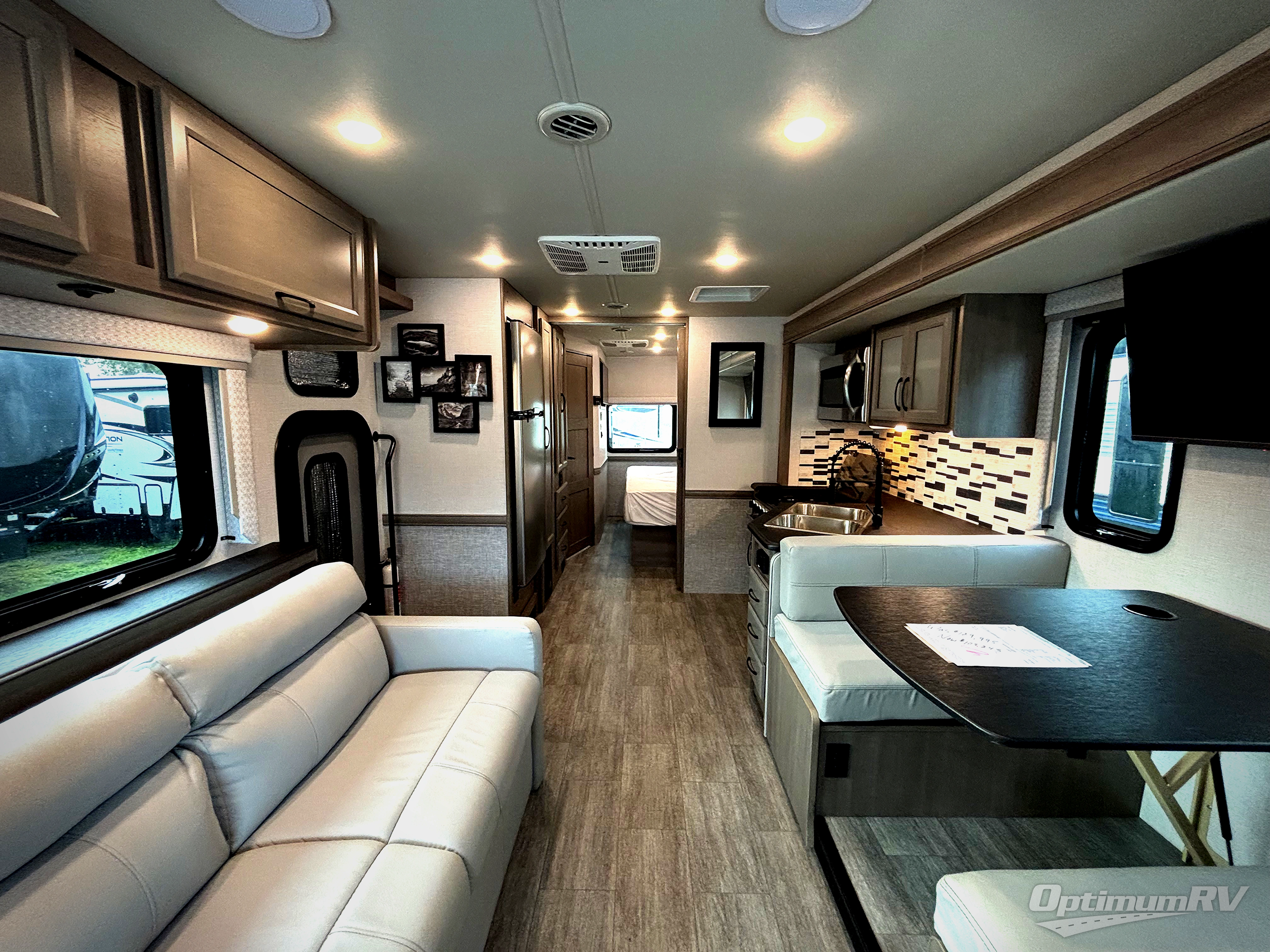 Enjoy a home on wheels with this motorhome! It features a rear corner private bedroom with a Serenity Series 72" x 74" king bed slide to lay your head at night and an LED TV for a comfortable movie night. The jackknife sofa offers a comfortable place to sleep once converted and the Hide-A-Loft drop down electric bed is another comfortable place to two others to sleep. You can even convert the Dream Dinette when you're not using it to enjoy a meal or play a card game. Everyone can freshen up in the rear corner bathroom with the 34" x 22" shower with a skylight above for natural lighting. A few cab conveniences that will make your traveling go smoother include an automotive style dash with work station, electronic cruise control, and a Sony stereo with AM/FM/Bluetooth and a backup camera screen!