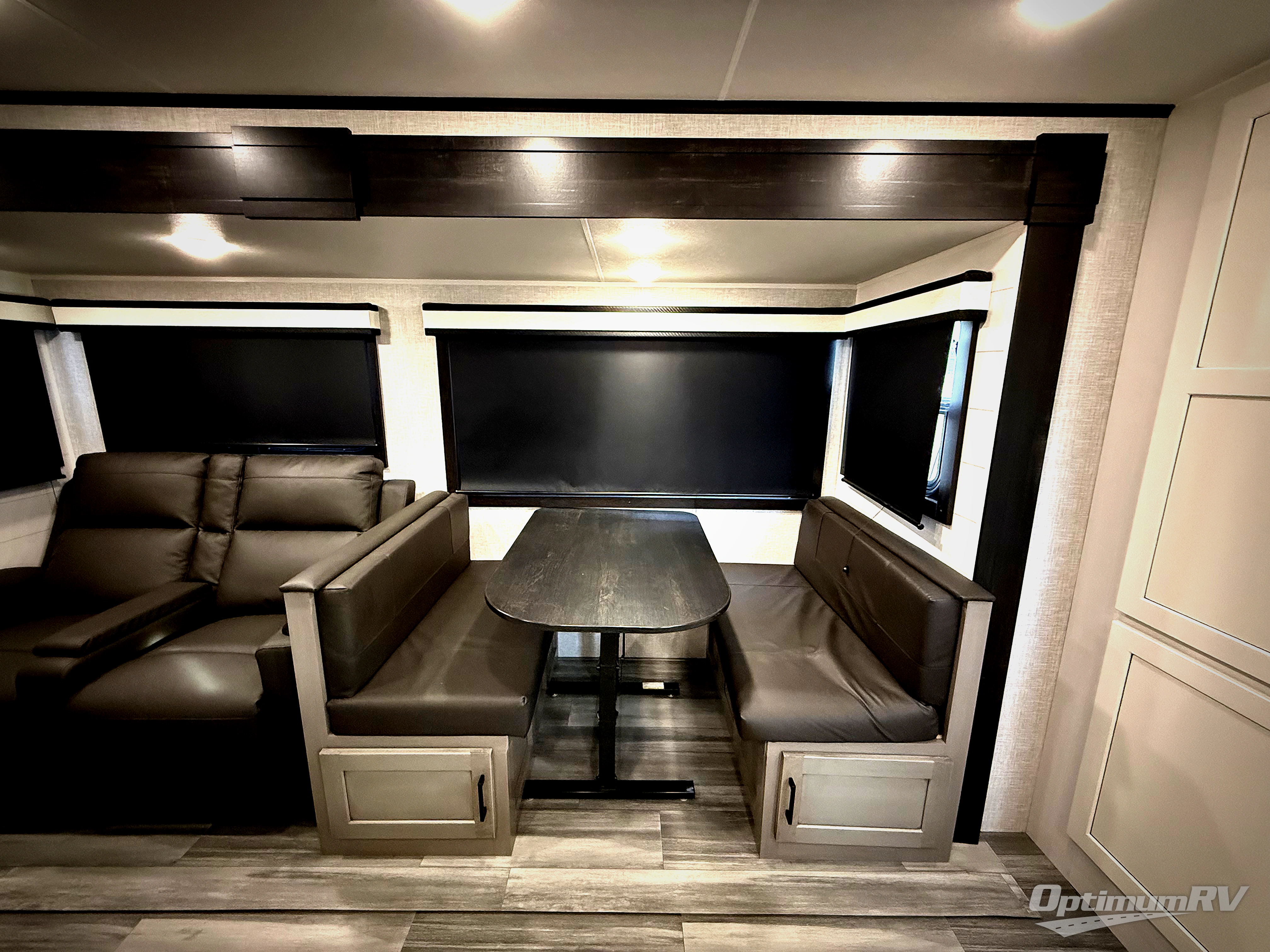 Get out and experience new campgrounds with this spacious trailer that offers a slide out jack knife sofa and booth dinette giving you dining, relaxing and sleeping space as well as more interior floor space to move from the front to the back. And having the second exterior entry/exit to the full bathroom is convenient for all. The cook will love the choice of making meals inside with full amenities or on the outside kitchen when relaxing under the 21' power awning with LED lights. And the front bedroom gives you a queen bed, dual wardrobes and windows for great views when inside.