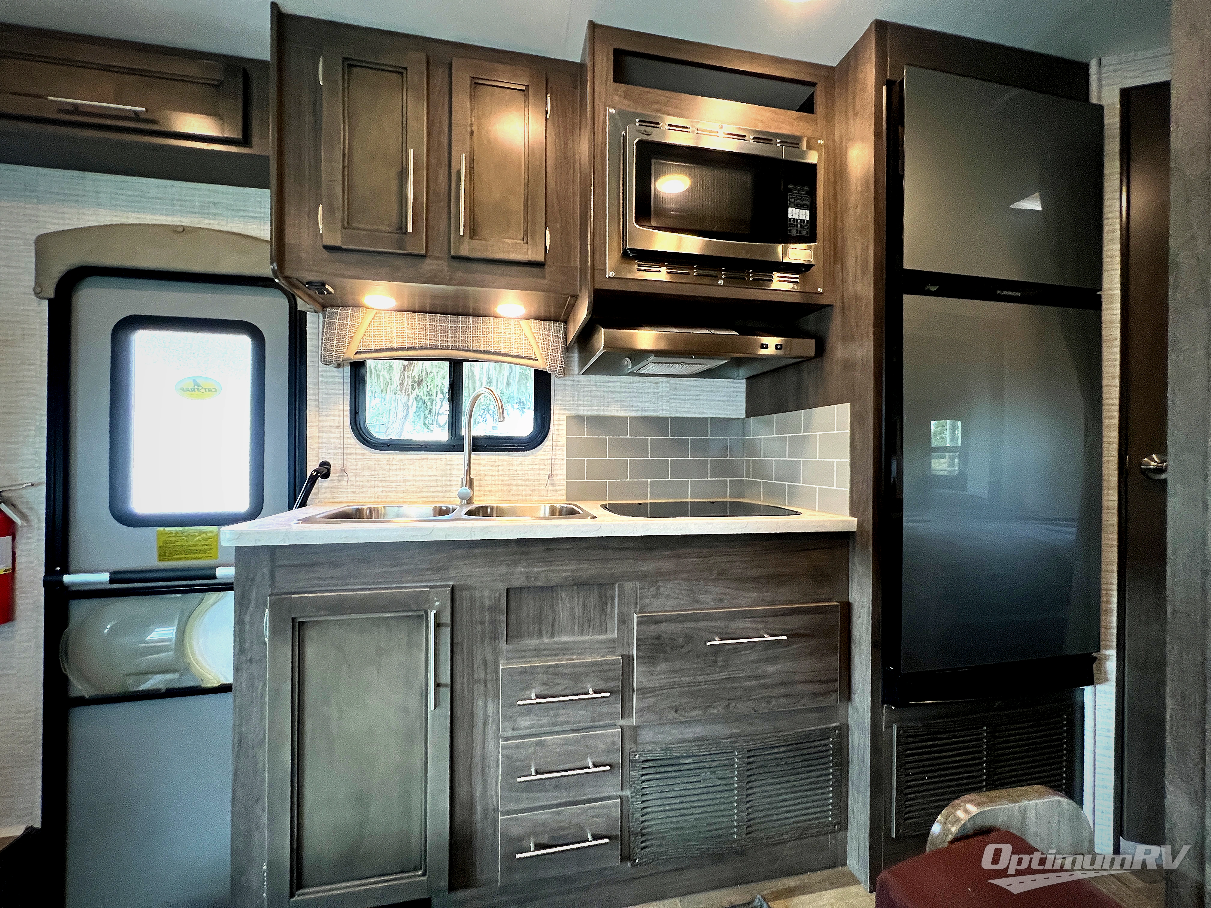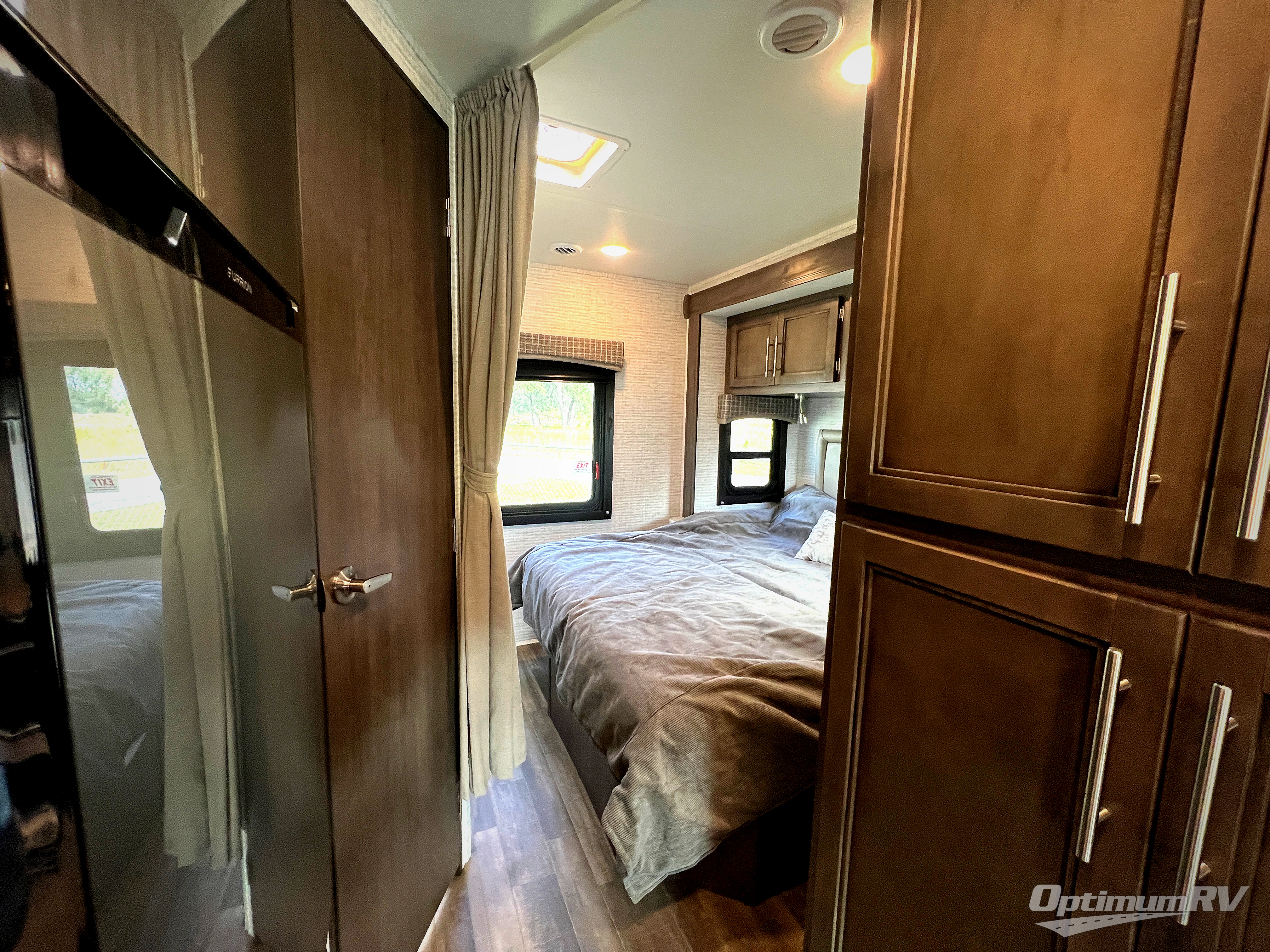 There's a comfortable place to sleep for everyone in this motorhome! From the corner 60" x 70" queen bed that slides out to the bunk over cab, and even the 42" x 70" booth dinette once converted. You can store your favorite snacks and hang up your clothes in the wardrobe/pantry. The chef can prepare delicious meals with the two burner cooktop and if there happens to be any leftovers then they can be stored in the 10 cu. ft. 12V refrigerator. The rear corner bathroom has a 24" x 36" shower that you are sure to enjoy after a long day of traveling!