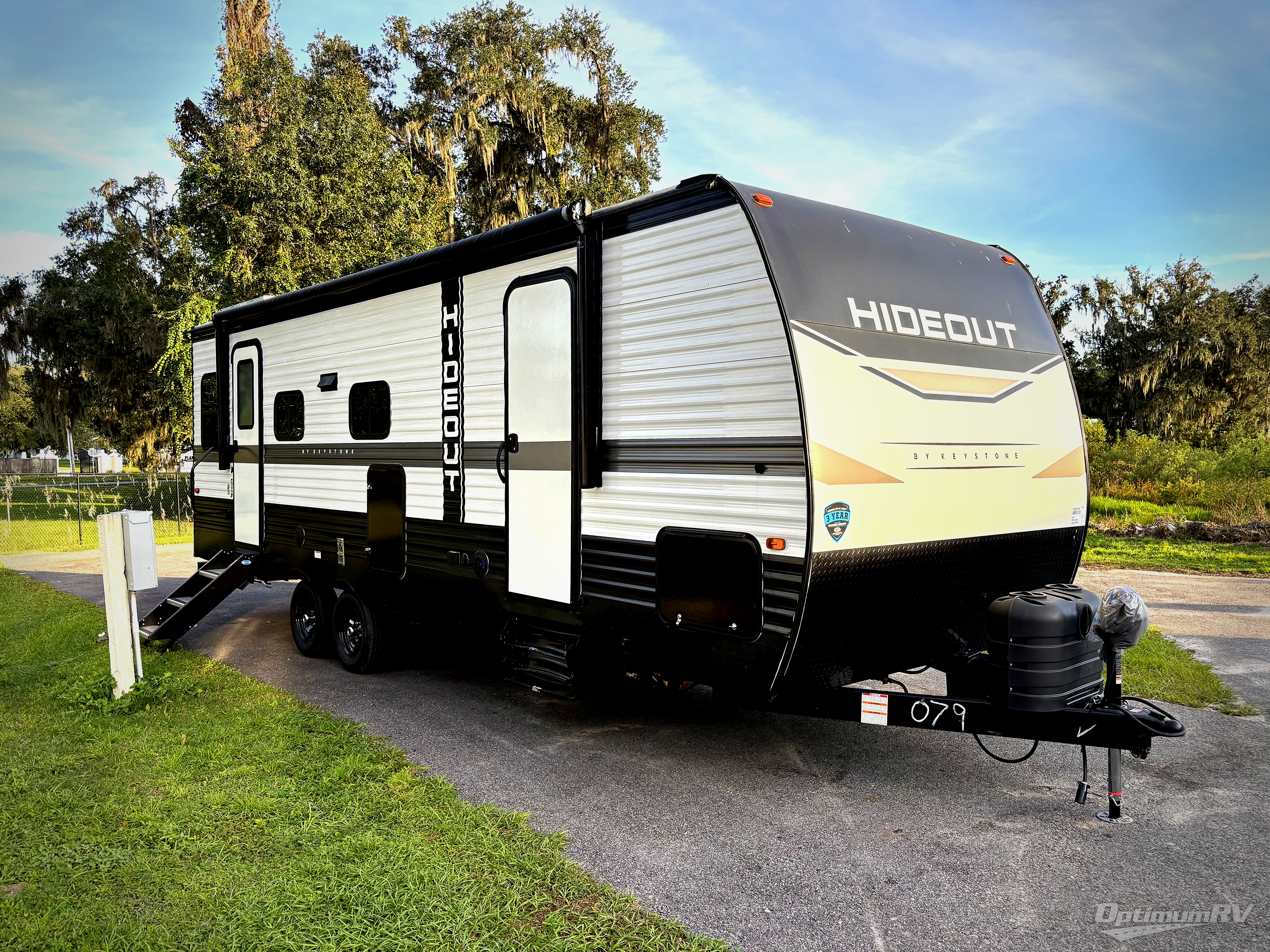 The Keystone Hideout travel trailers will be just what the doctor ordered for a stress-free holiday at your favorite campsite! There are a few exclusive features that you'll only find on a Keystone product, like the in-floor heating ducts and the Tru-fit™ slide construction. Each model has a power awning for some shade in the afternoon, and the tinted safety glass windows will prevent the harmful UV rays from getting inside. You'll also have blackout night shades that you can close when you want privacy and one-piece pressed countertops that are not only sleek looking, but easy to keep clean.