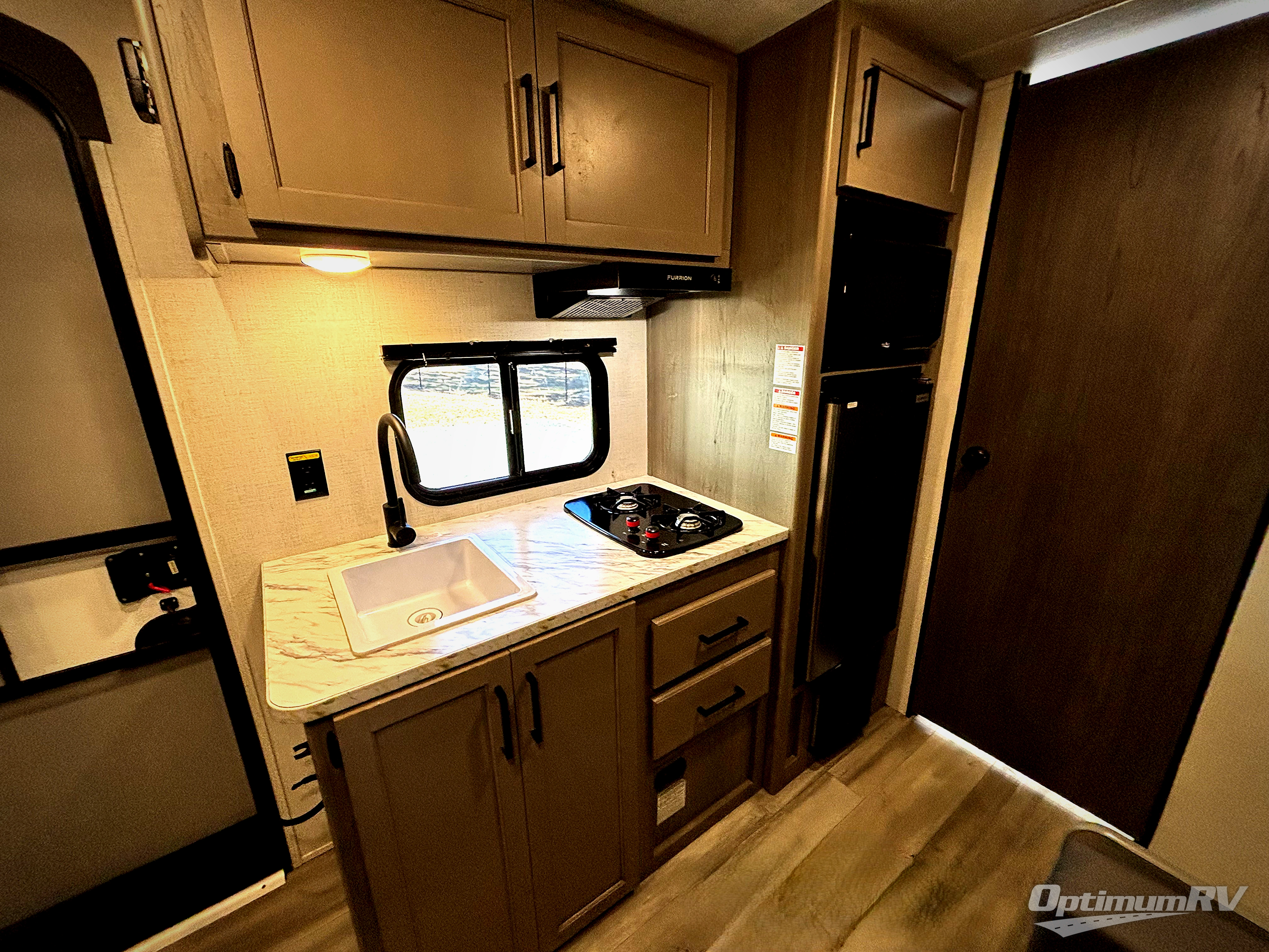 Open your horizons with the Hideout Sport Single Axle travel trailers by Keystone. They are compact, convenient, and lightweight; everything you're looking for in an RV! Each model features an aluminum exterior, tinted safety glass windows, and an I-beam frame with stamped steel cross-members and outriggers for added support. The interior includes blackout night shades for added privacy and real wood doors and drawers that will give a more at-home touch. The Girard tankless water heater is a feature you won't want to camp without, and the LED lighting will keep your space bright and open!