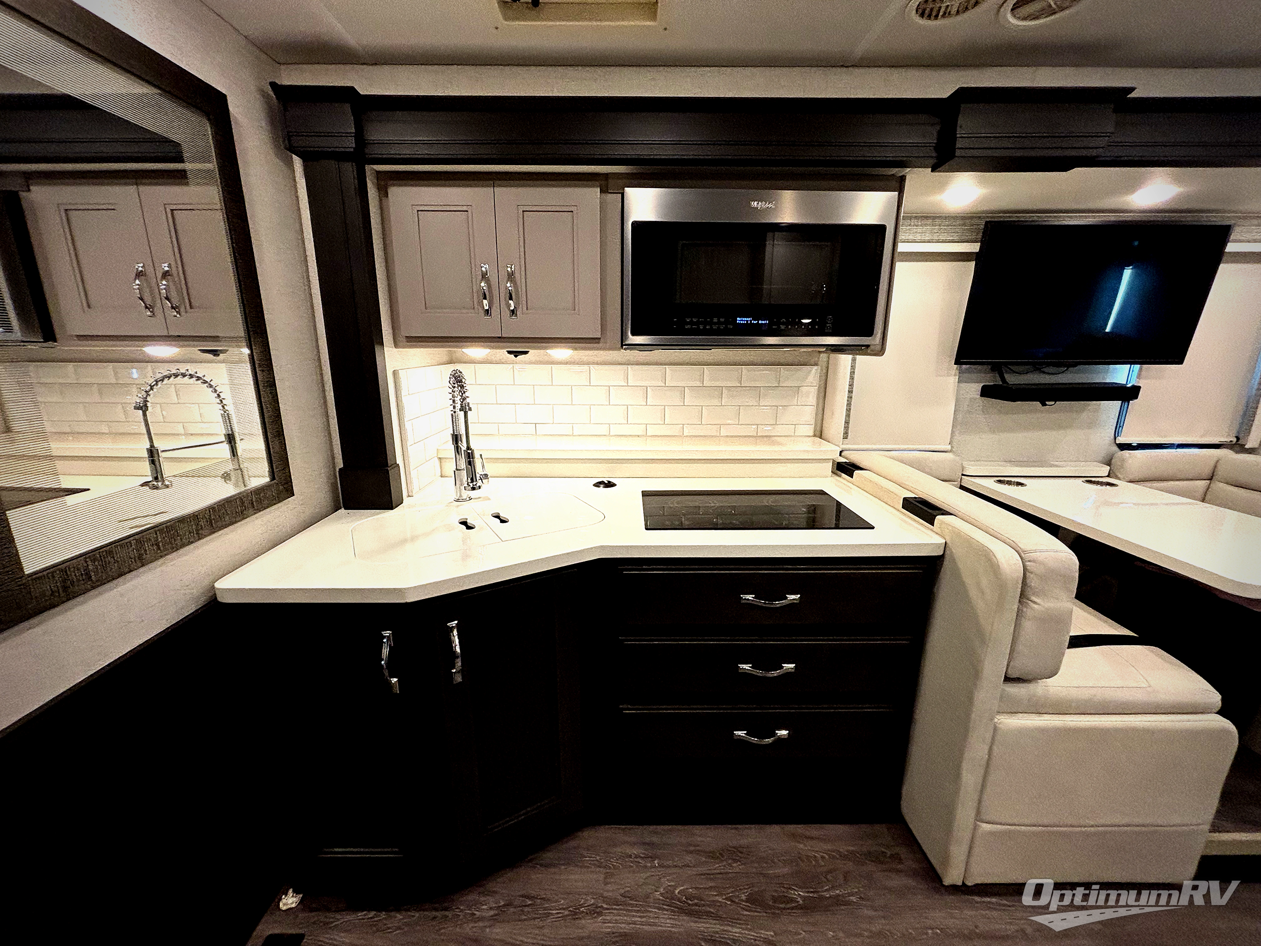 Each journey you take with a Palazzo Class A diesel motorhome by Thor Motor Coach is made smooth thanks to the Air-Ride suspension, the Sachs shock absorbers, and the Atlas foundation. You'll enjoy hassle-free set up thanks to the Rapid Camp + multiplex wiring control system, and there is a Winegard ConnecT 2.0 WiFi/4G/TV antenna to keep you connected to the outside world as you're away from home. The exterior of the Palazzo features lighted storage compartments and a basement pass-through, a 40" LED TV, and invisible front paint protection to withstand the elements. You will fall in love with the interior that includes Studio Collection cabinetry, luxury vinyl tile flooring, leatherette furniture, solid surface countertops, plus many more comforts!