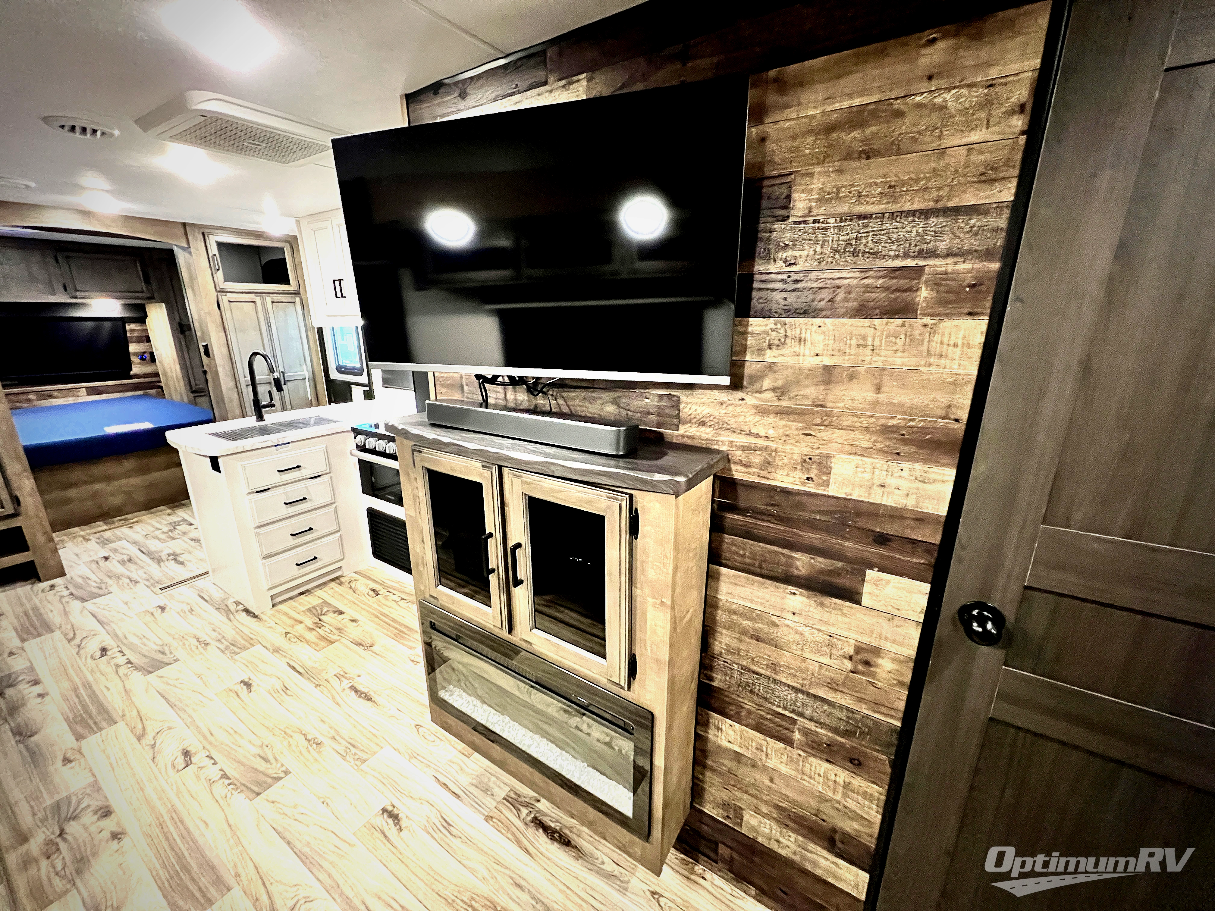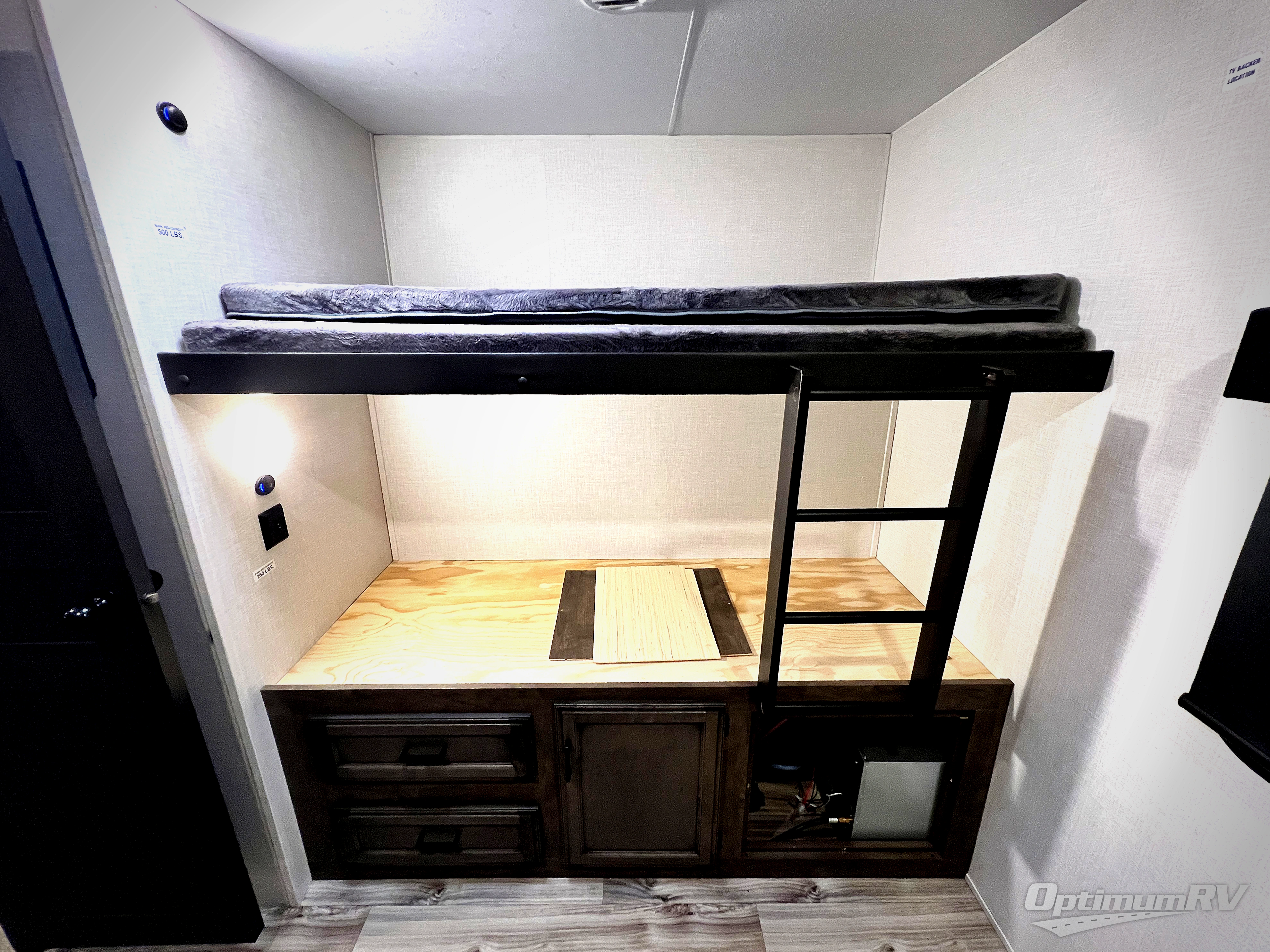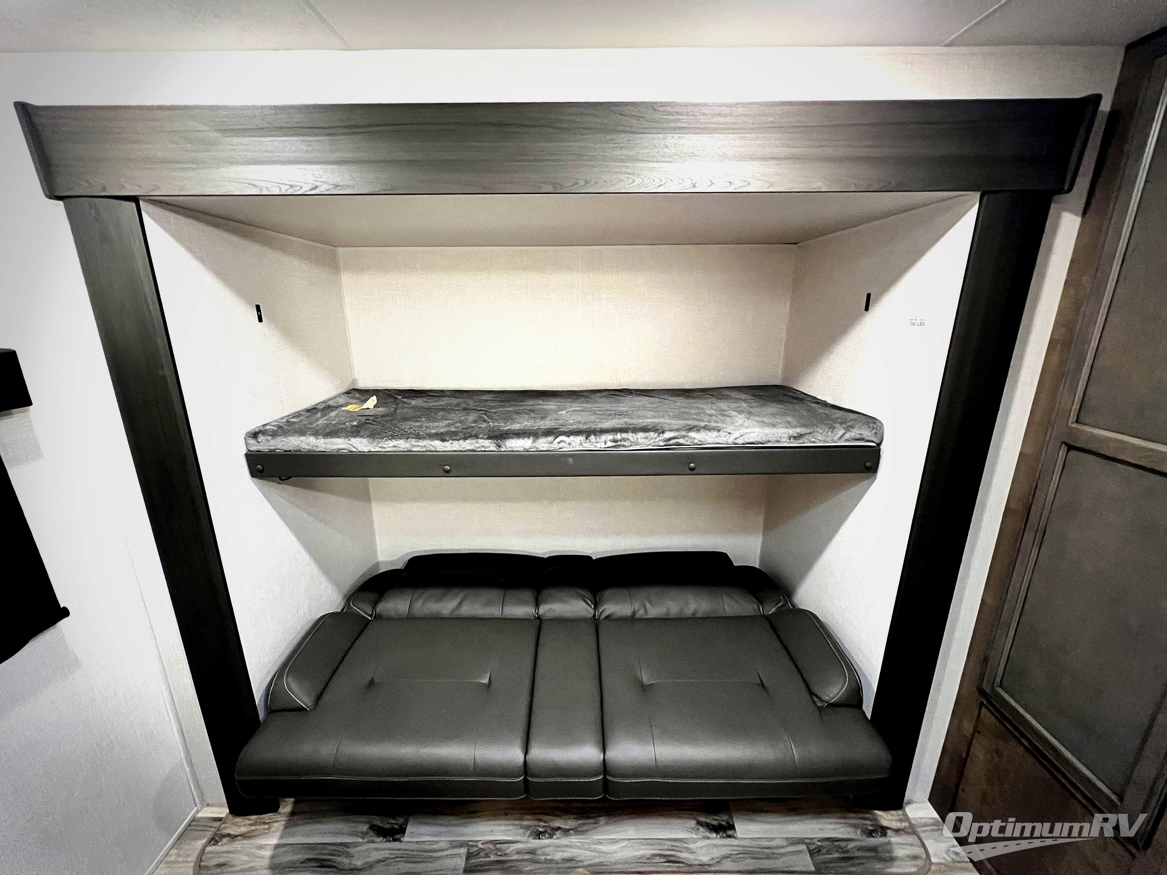 Pack your bags and load up for a great weekend getaway with the whole family in this travel trailer! The rear private bunkhouse is big enough for all of the kids or guests to stay with a set of bunk beds, a 28" x 73" top bunk above a 70" sofa with table slide, and a wardrobe to keep their clothes out of the way. The full bathroom not only has a 30" x 36" shower to freshen up in, but also a dresser, coat hooks, an entrance/exit door, plus washer and dryer prep. The chef can prepare meals either indoor with the three burner cooktop, or at the outside campfire café which even has an exterior 40" TV for you to watch the morning news while cooking pancakes on the griddle!