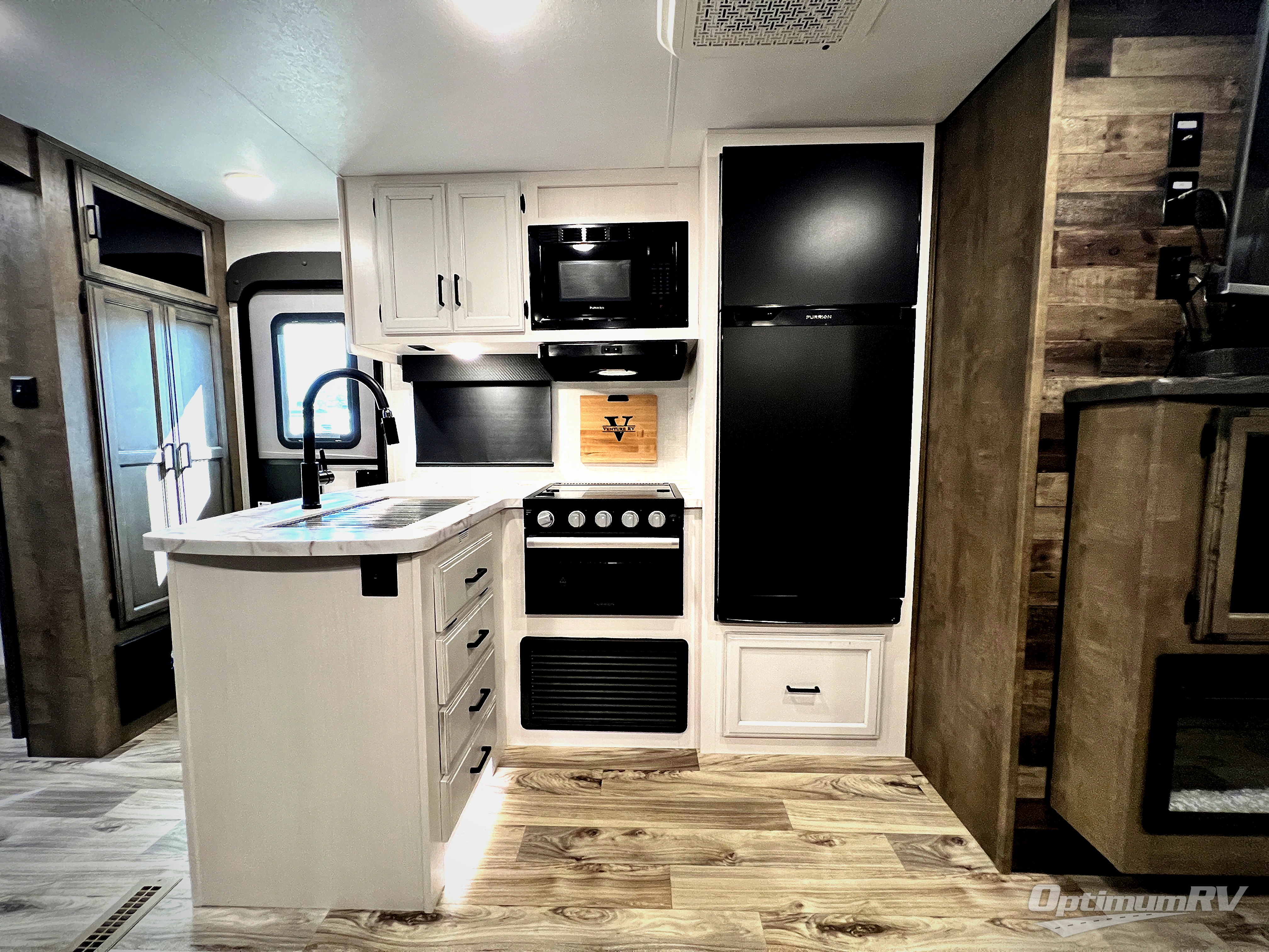 Every Venture RV SportTrek lightweight travel trailer is constructed to offer peace of mind and the comforts of home! Their purposeful residential kitchens are packed with handy features like a Furrion oven and three burner cooktop, a large stainless steel sink with a cover and dish drying rack, plus a 12V refrigerator. You will find plenty of storage throughout, including Safe-Tek hidden storage with a charging center and StorMore nightstands on either side of the bed behind the full-length closets. And the magnetic slam-latch baggage doors and spacious pass-through storage area will hold your outdoor gear in place. They even come with a hot and cold exterior shower and SporTrek's Weather Shield which includes a forced air heated and enclosed underbelly, high output A/C ducting, and more features that will let you extend your camping season. You will also love the new residential upgraded furniture, Serta memory foam mattress, barn style passage doors, and many more comforts!