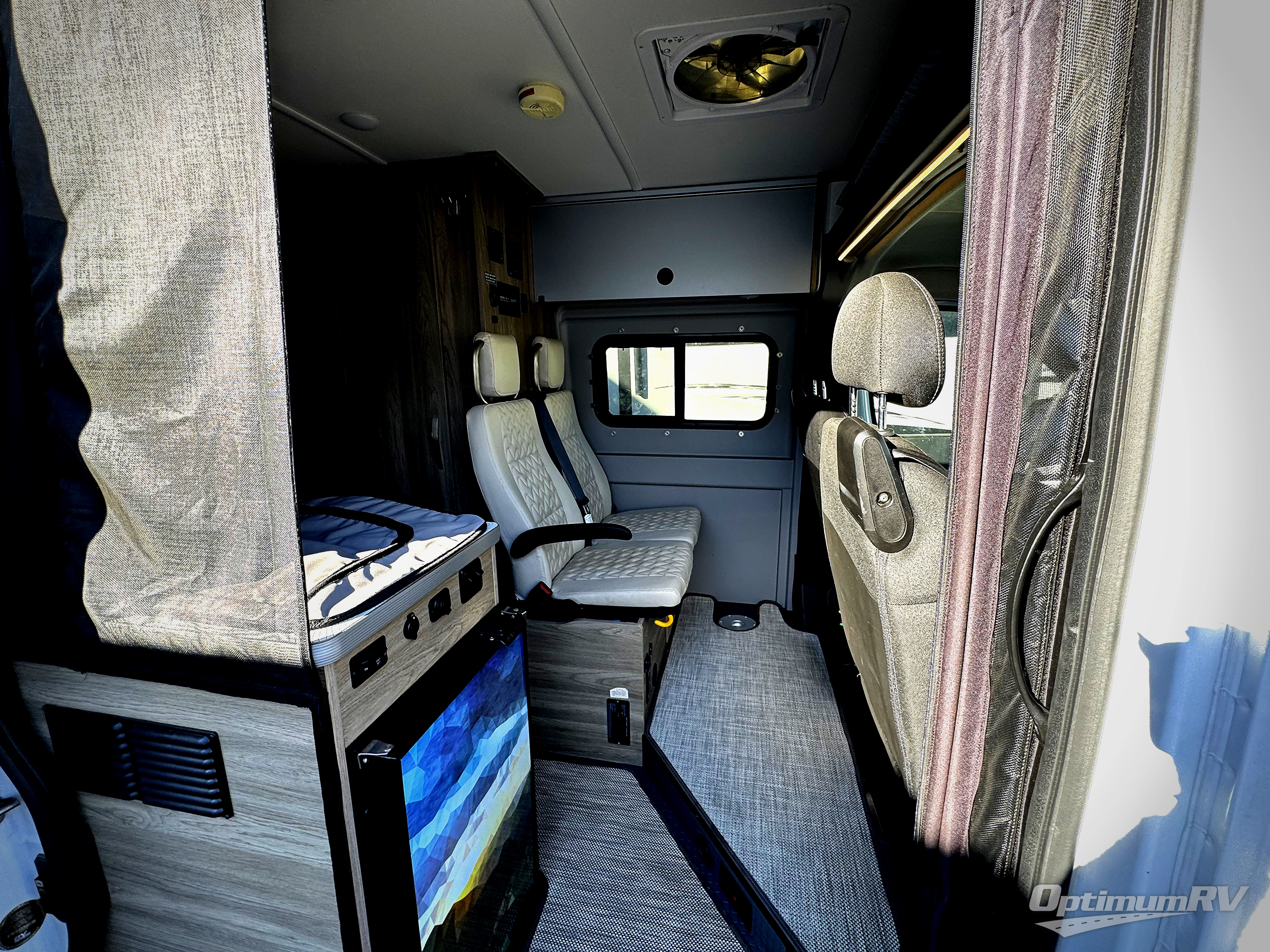 This camper van with an L-track storage system is perfect for those needing more storage space for their hiking and biking gear. You can stay powered up with the Cummins Onan QG 2800i gas generator, and there is a Coleman Mach 10NDQ A/C with directional vents that will allow you to come inside to cool off after a trail ride. A Murphy+ bed comes standard, and any guests that tag along can sleep in the pop-top sleeping area! If you choose to remove the pop-top, you'll enjoy the deluxe powered ventilator fan instead. You'll find the wet bath to come in handy when you want to clean up, and the dinette seating with a removable pedestal table will provide a place to enjoy your dinner at.