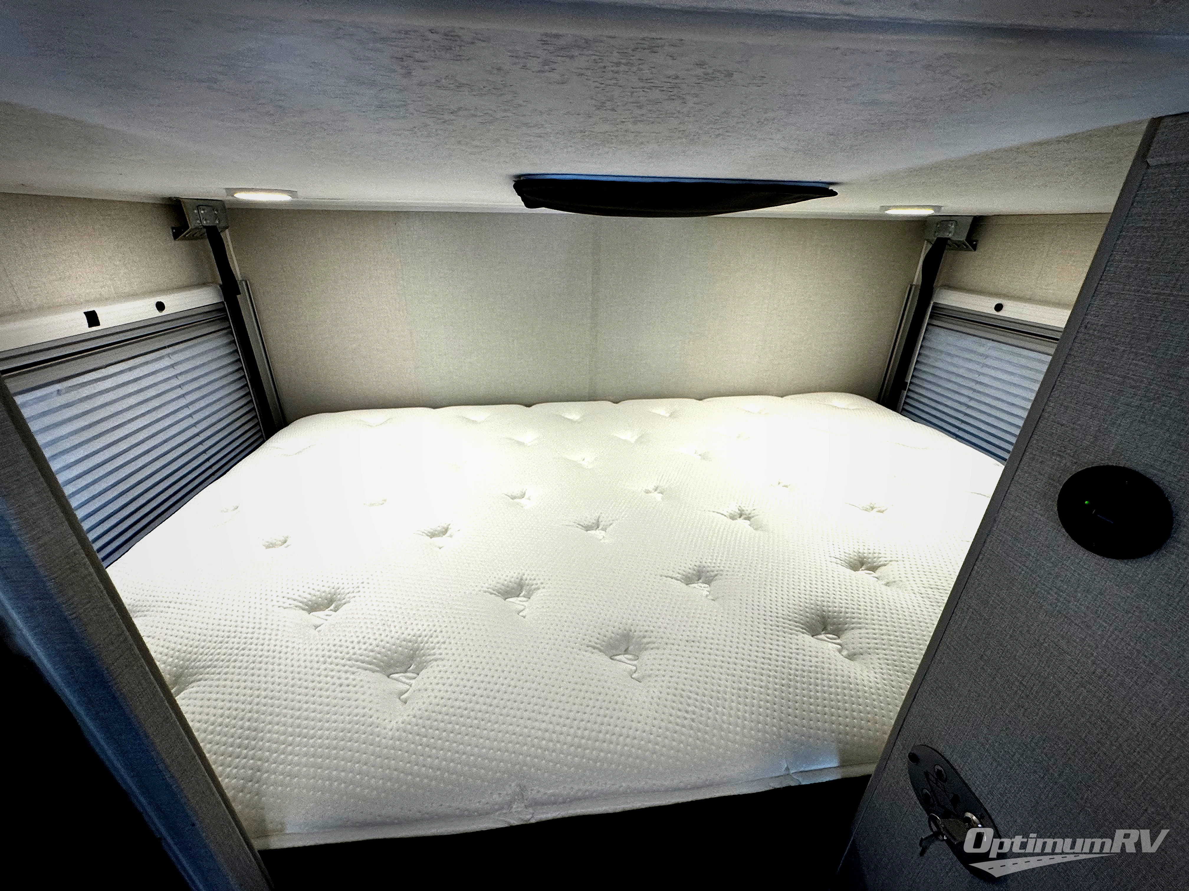 This coach is compact and full of features for you and your favorite person or family of three to enjoy road trips and camping in tighter spaces than most! The chef of your group can prepare a quick lunch on the two burner induction stovetop, and you can dine together on the dinette/sofa that offers sleeping for one at night. There is a large shower to clean up in, and the private toilet and sink is just across the hall so two people can freshen up at once. This coach also includes plenty of storage space in overhead compartments, within the pantry for snacks and paper goods, and even under the double-size bed where you might like to store your bike through the exterior cargo doors that open on both sides!