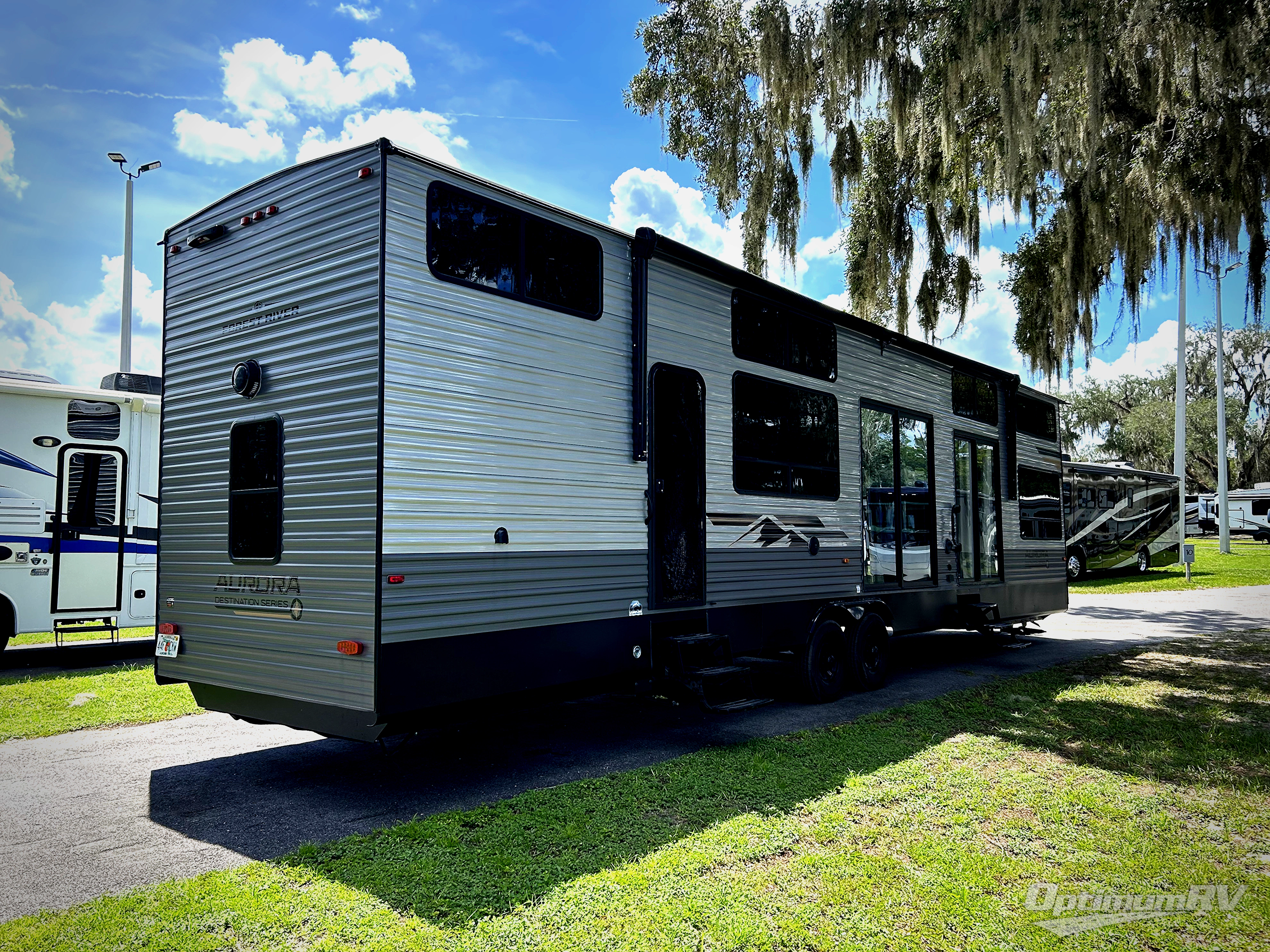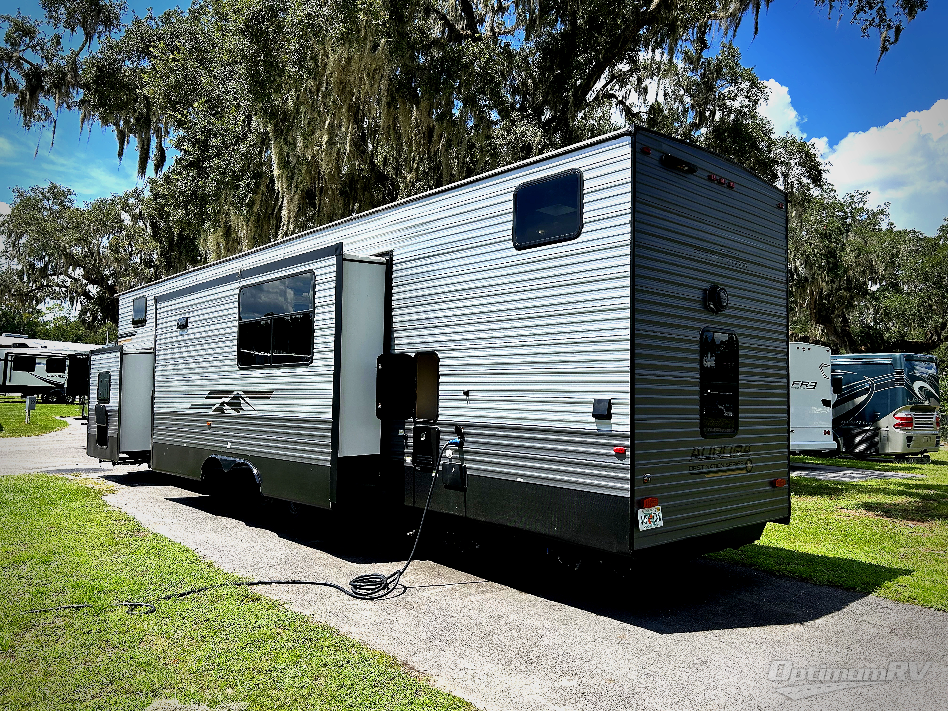 Comfortability, usability, and quality is what you will find in each one of these Forest River Aurora travel trailers, toy haulers or destination trailers! They are designed with a superior build and packed full with industry leading, functional, and distinctive standard features. SolidStep entrance steps and a Safe-T rail door assist on main entry door to help you safely enter and exit the unit. The diamond plate rock guard will protect your unit from road debris and the nitrogen filled radial tires, which keep their pressure longer, offer better fuel economy. You will also find upgraded JBL Elite exterior speakers outside, an electric awning with multicolor lights and remote, plus flush mount baggage doors for easy packing. The interiors are beautifully designed with a deep undermount farm style sink, stainless steel appliances, and linoleum flooring in the slide outs which will be easy to clean. Come find your favorite model today!