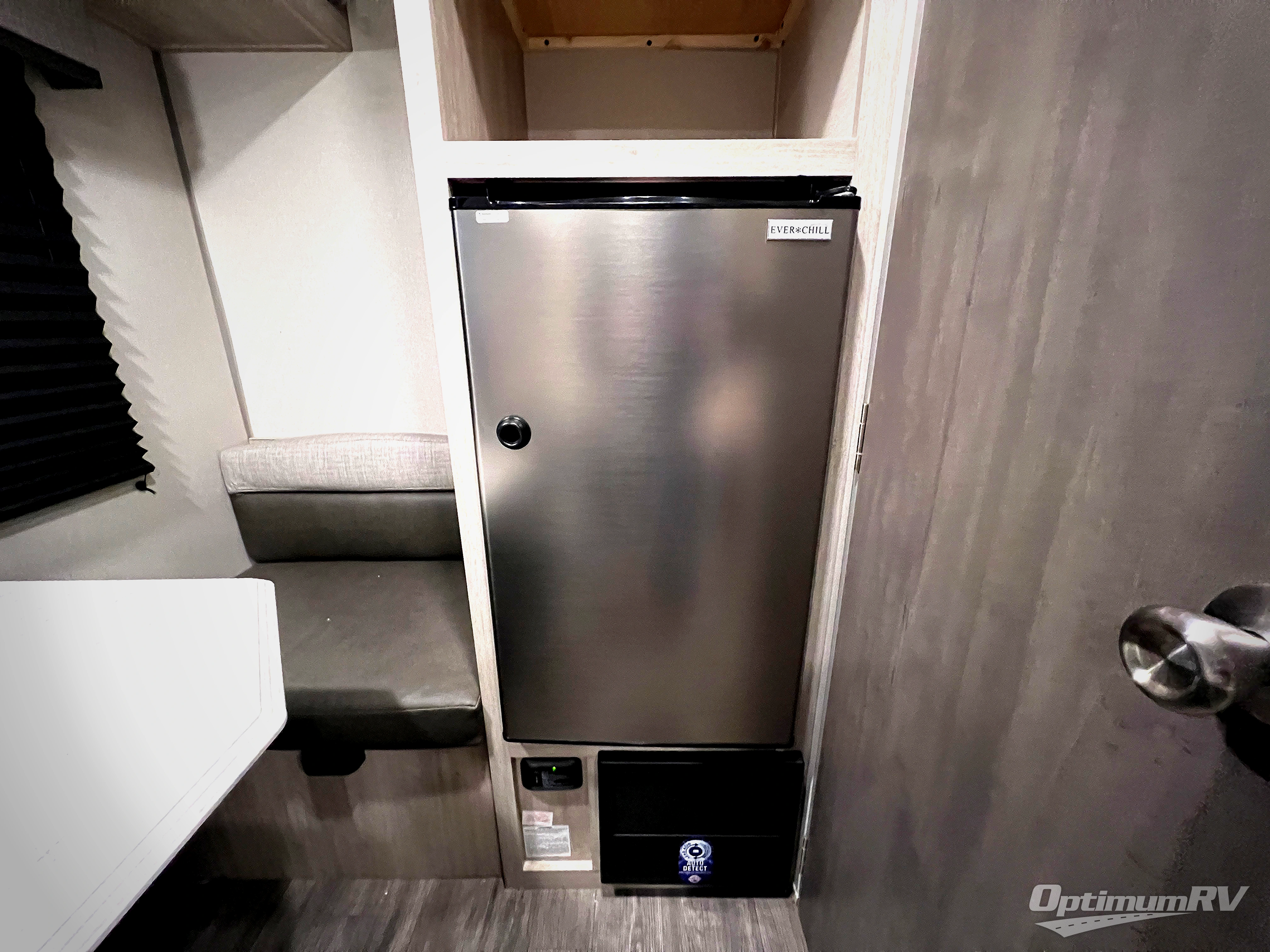This lightweight travel trailer includes everything you need for comfortable camping trips at the lake. You can make your meals on the two burner cooktop or in the stainless steel microwave, and a 3.3 cu. ft. 12V refrigerator will keep leftovers fresh. A front queen bed provides a great night's rest, and there is a 29" booth dinette that will double as both dining and additional sleeping space. And a private bath with a 24" x 32" shower and toilet will let you easily freshen up without having to use the camp's facilities!