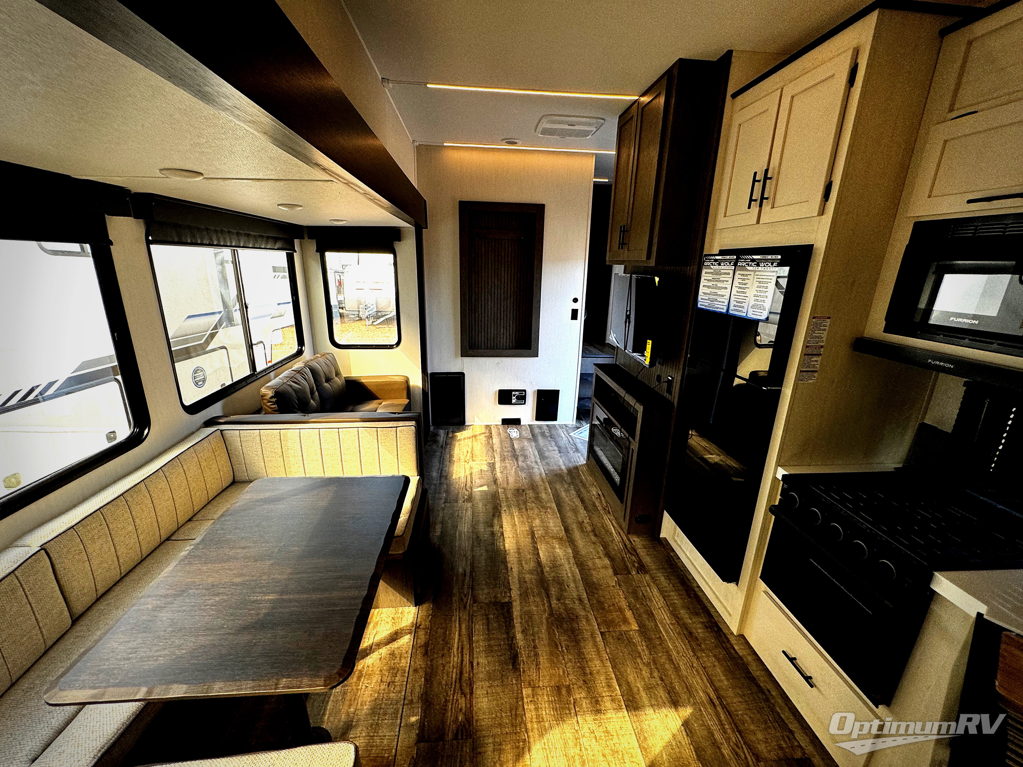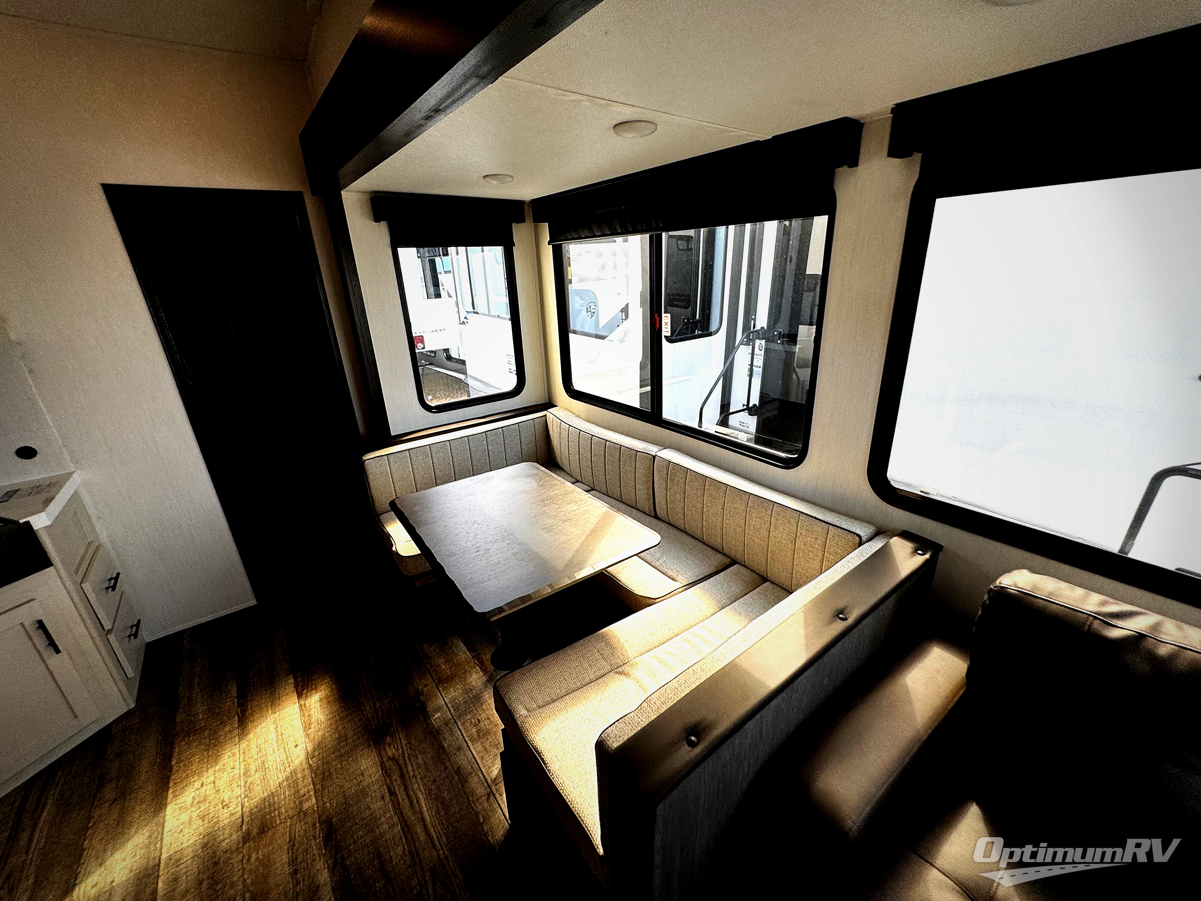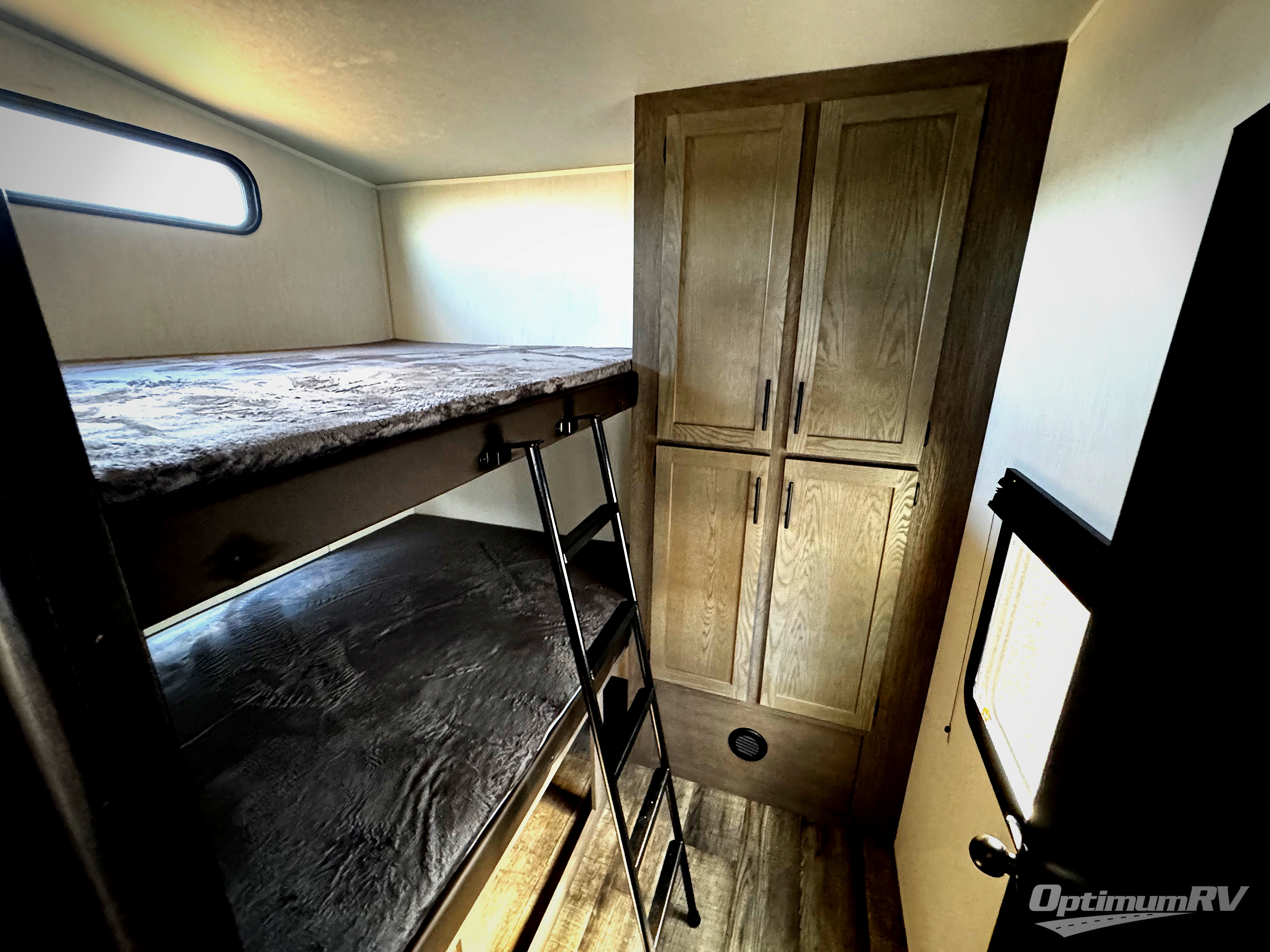Let the fun times begin with the purchase of this Cherokee Arctic Wolf fifth wheel! You'll have loads of sleeping space for ten tired travelers with the front private bedroom, rear private bunkhouse, U-shaped dinette, and tri-fold sofa. You'll also have excellent storage space with the bunkhouse wardrobe, large walk-in pantry next to the entry door, and the outside storage areas. The large slide in the main living area offers more living space, and the fireplace will make it feel more like home.