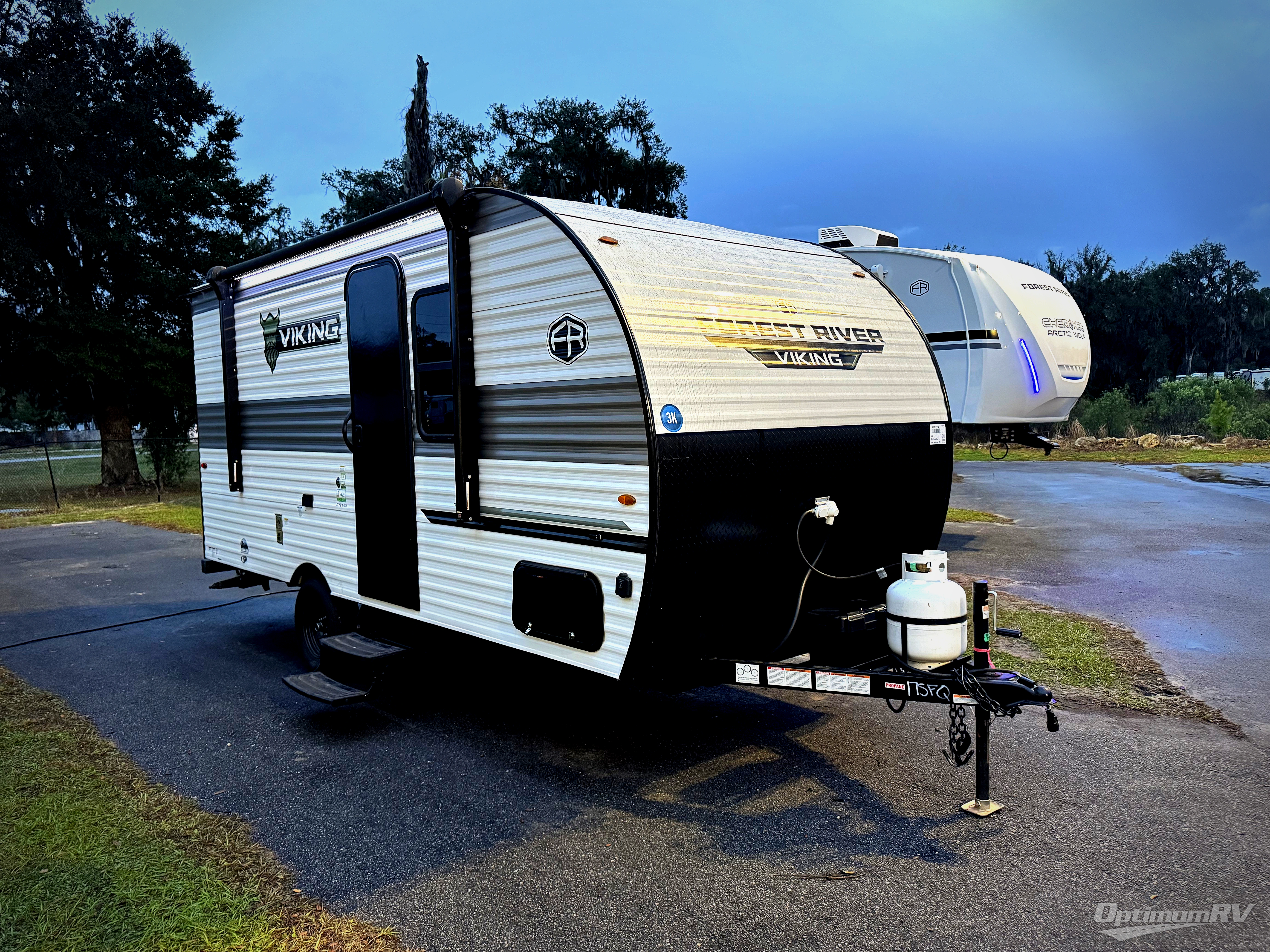 The budget-friendly Forest River Viking 3K Series travel trailers are for the newbie or seasoned RV user. Each model is constructed with a BAL NXG frame with Huck bolt assembly and front diamond plating so that your trailer will last. Towing and setup is made hassle-free with self-adjusting electric brakes, Easy Lube axles, and two rear stabilizing jacks. The Viking 3K Series travel trailers include a two burner cooktop, sink cover(s), and a foot flush toilet for added convenience. You will also find USB charging ports to keep your electronics charged, plus back up camera and solar prep for the option to add these features.