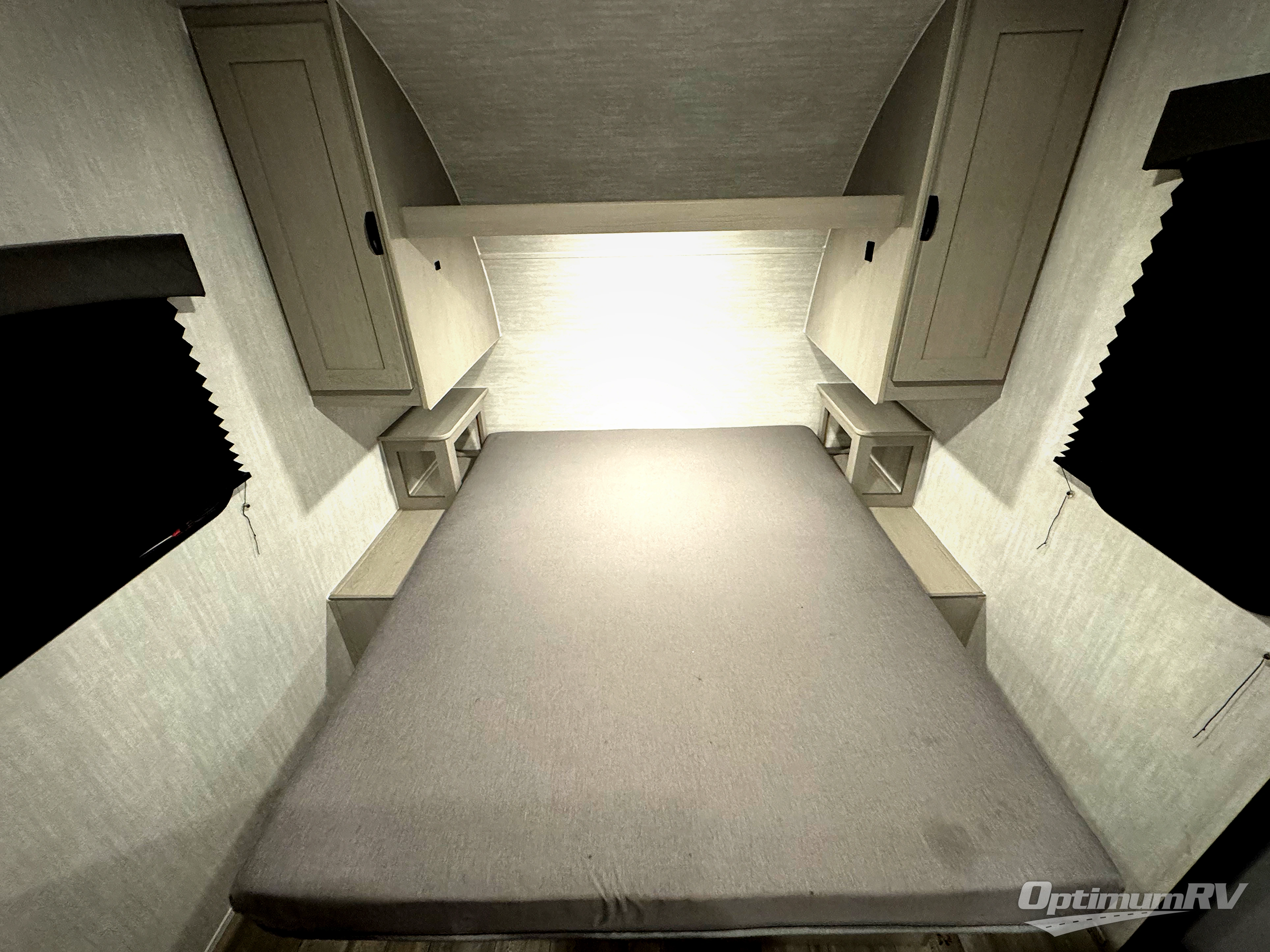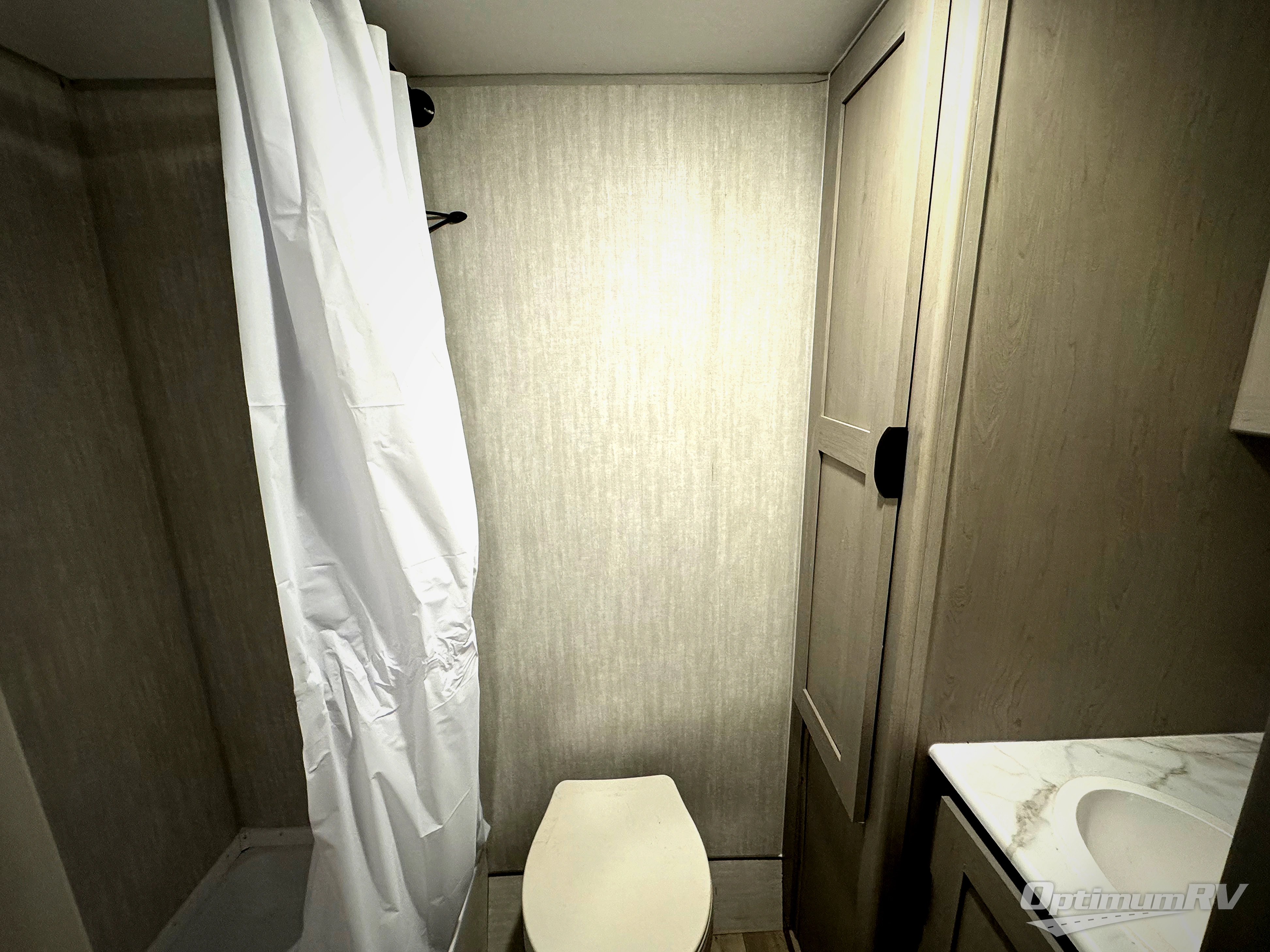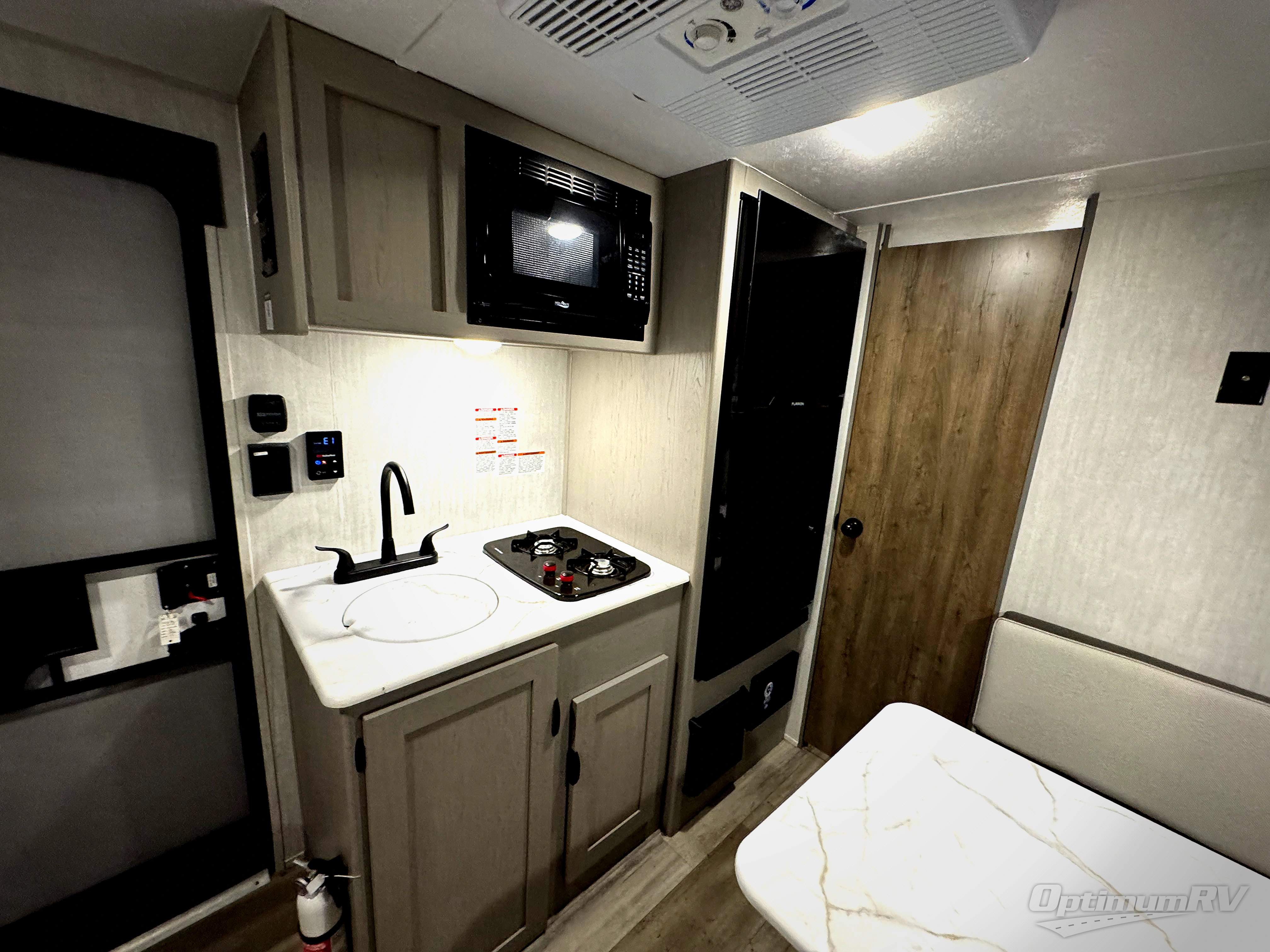 This Viking 3K Series is a cozy couples trailer or one perfect for a small family of three or four featuring a queen bed up front with overhead storage. The booth dinette also features additional storage and can be converted to sleeping space for one or two more depending on size. You will have an induction cooktop and sink with cover to provide a bit more counter space when the sink is not being used. A rear full bath including a 24" x 36" shower, toilet, and vanity with a sink, as well as an overhead medicine cabinet for your toothbrushes and other toiletries. On the outside, a 10' power patio awning will provide added protection from the sun and rain giving you added living space outside to enjoy with camp chairs. And, a front pass-through compartment for your outdoor camping gear, plus so much more!