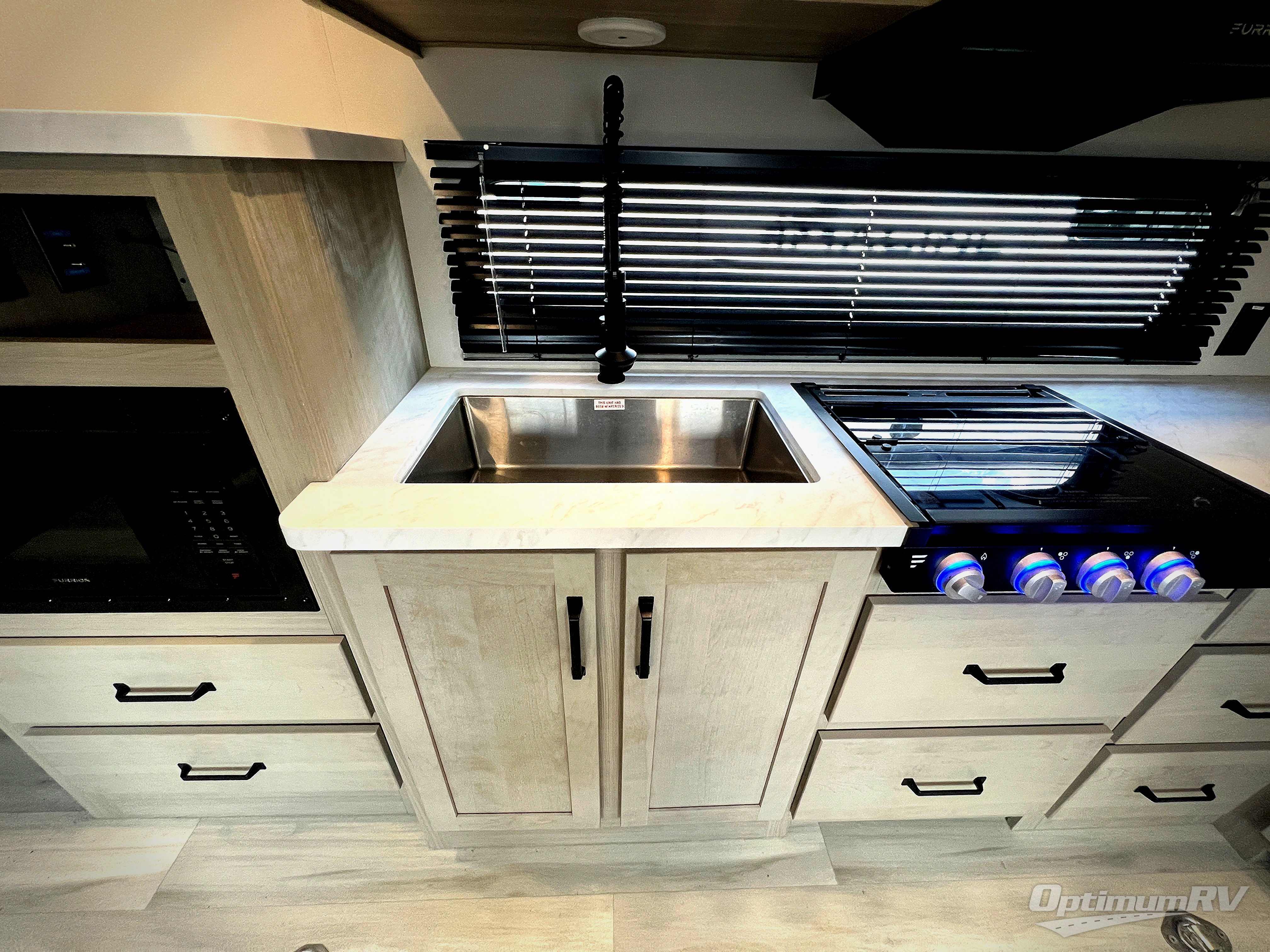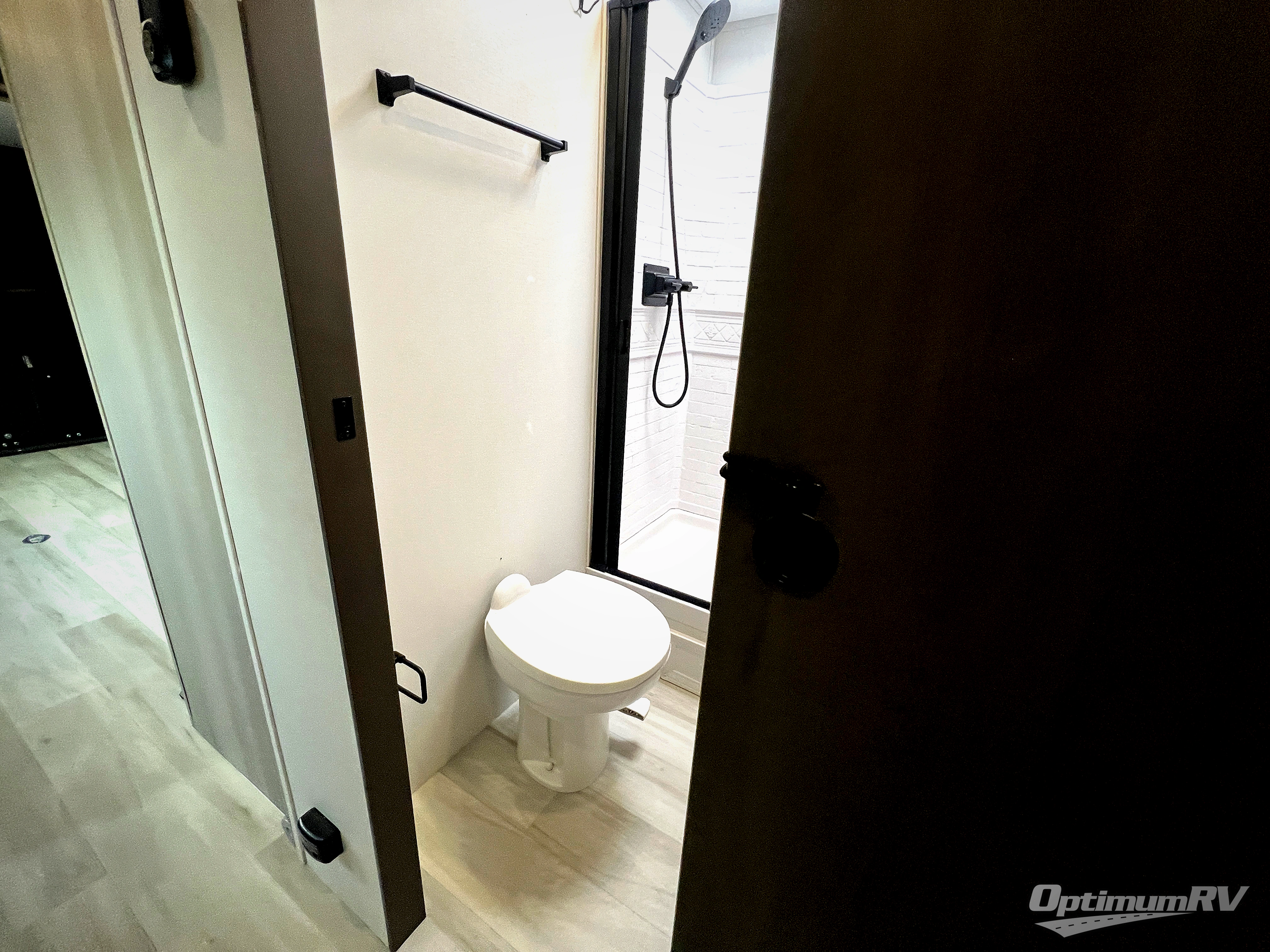 You will love this Momentum MAV toy hauler travel trailer! The front bedroom features a queen bed, and there is plenty of room to walk around. The sliding solid bedroom door helps with space. Overhead storage and a pair of nightstands are convenient storage, plus there is a wardrobe with both drawers and space to hang items. The kitchen offers a microwave, stainless steel sink, and an 8 cu. ft. 12V refrigerator. In the garage, you'll find rollover sofas with a table and a top bed for guests to sleep on. The ramp door/patio will provide additional living space once your toys are unloaded, and the pull down screen will keep bugs out!