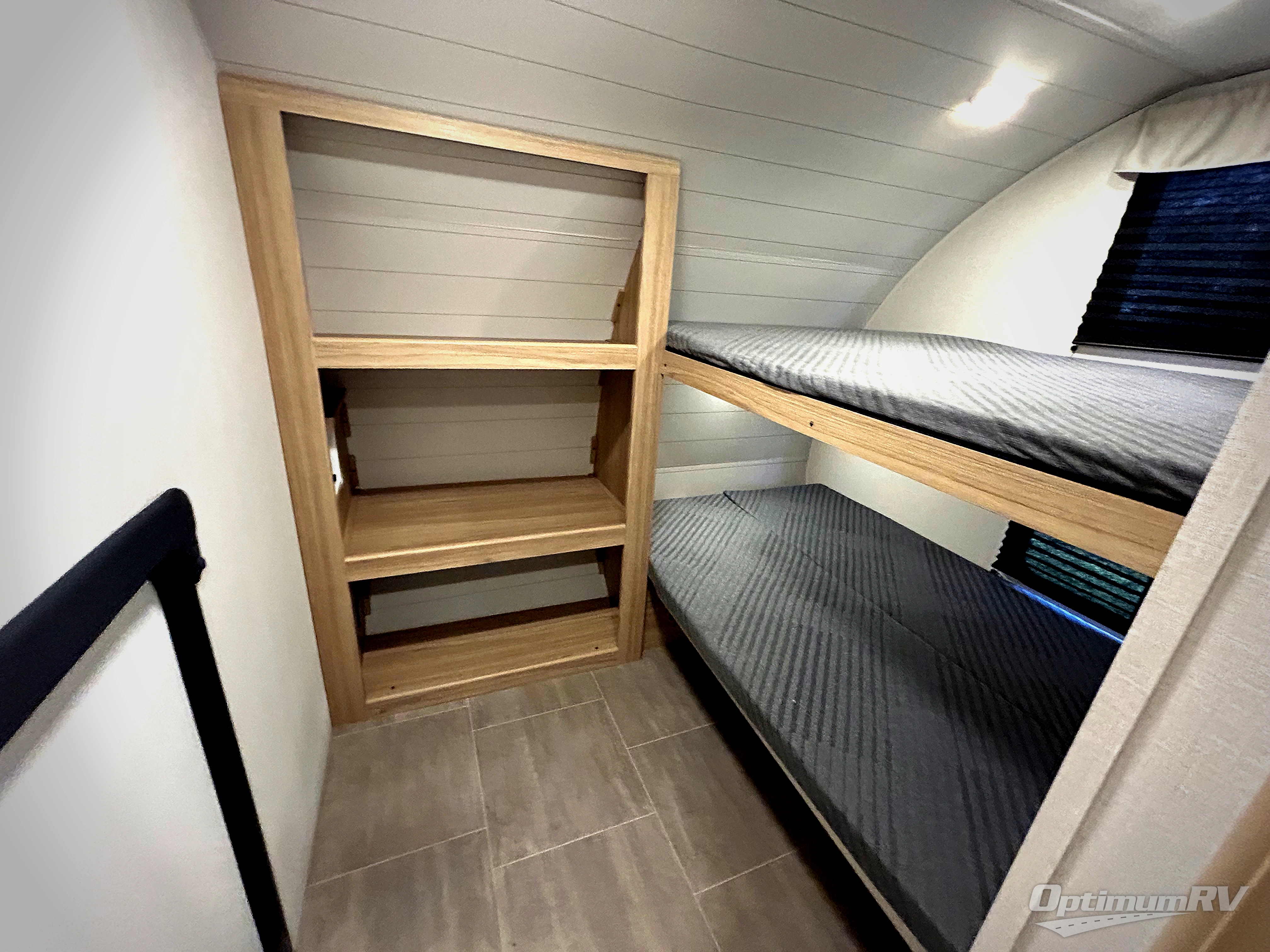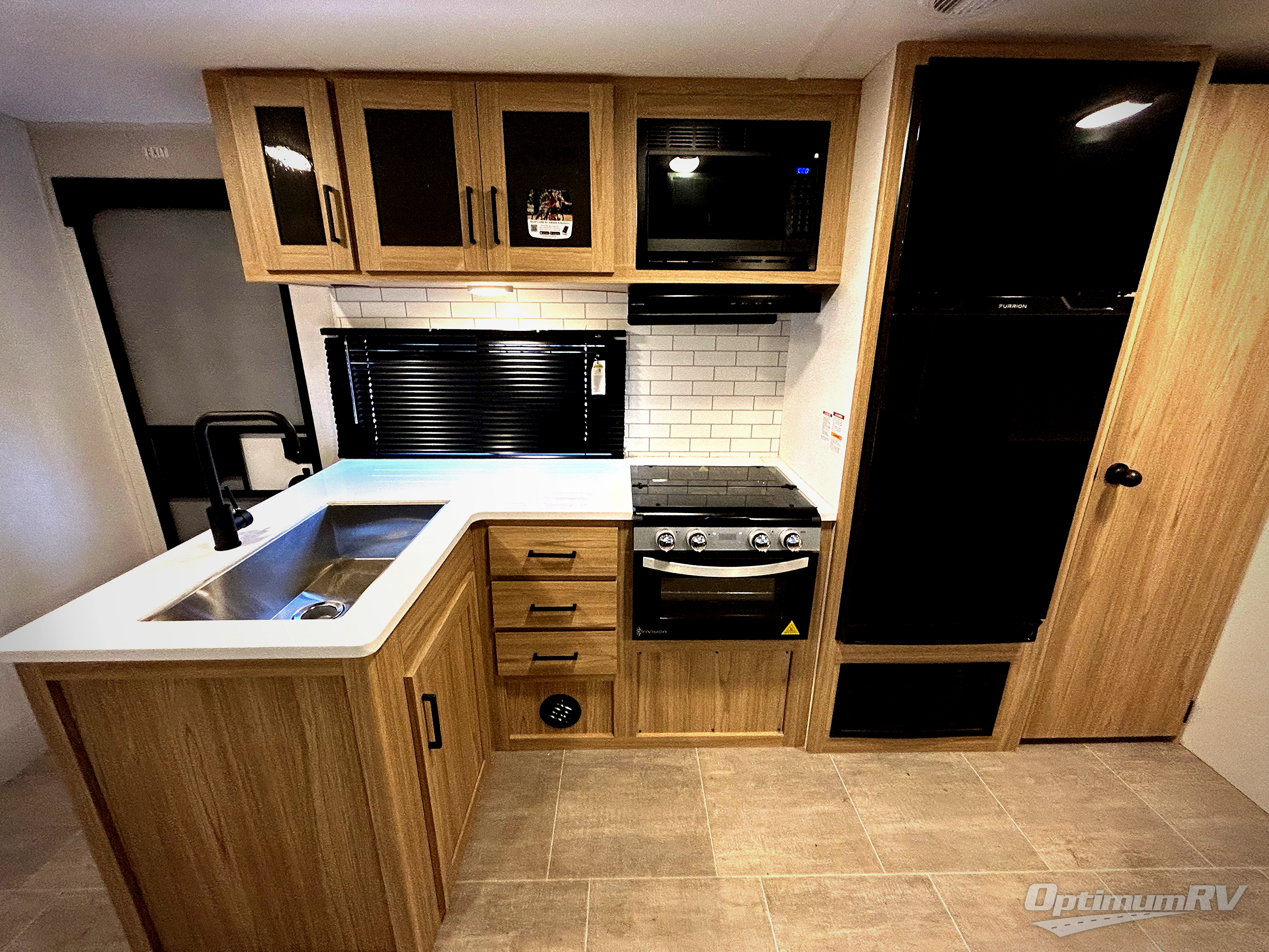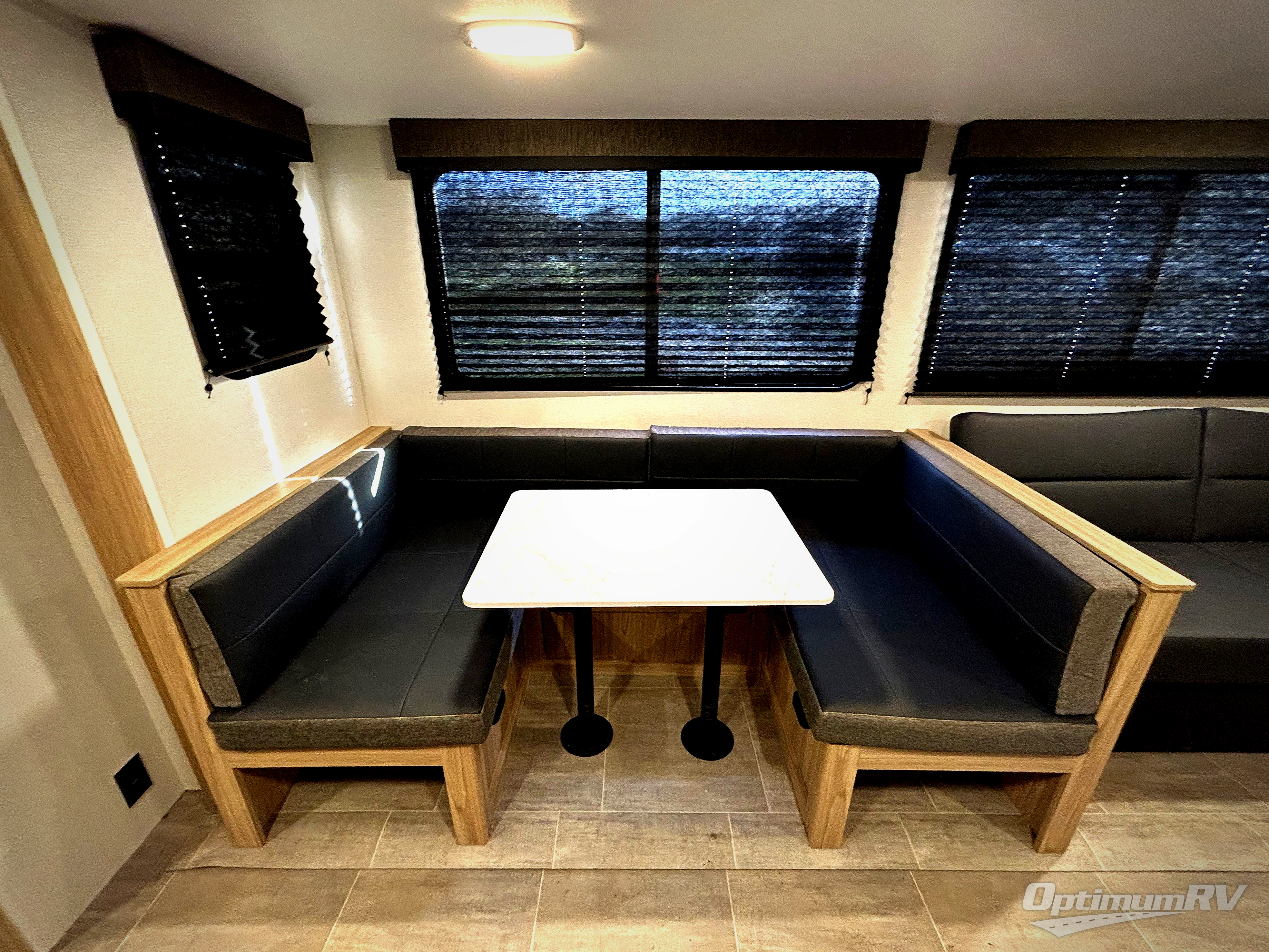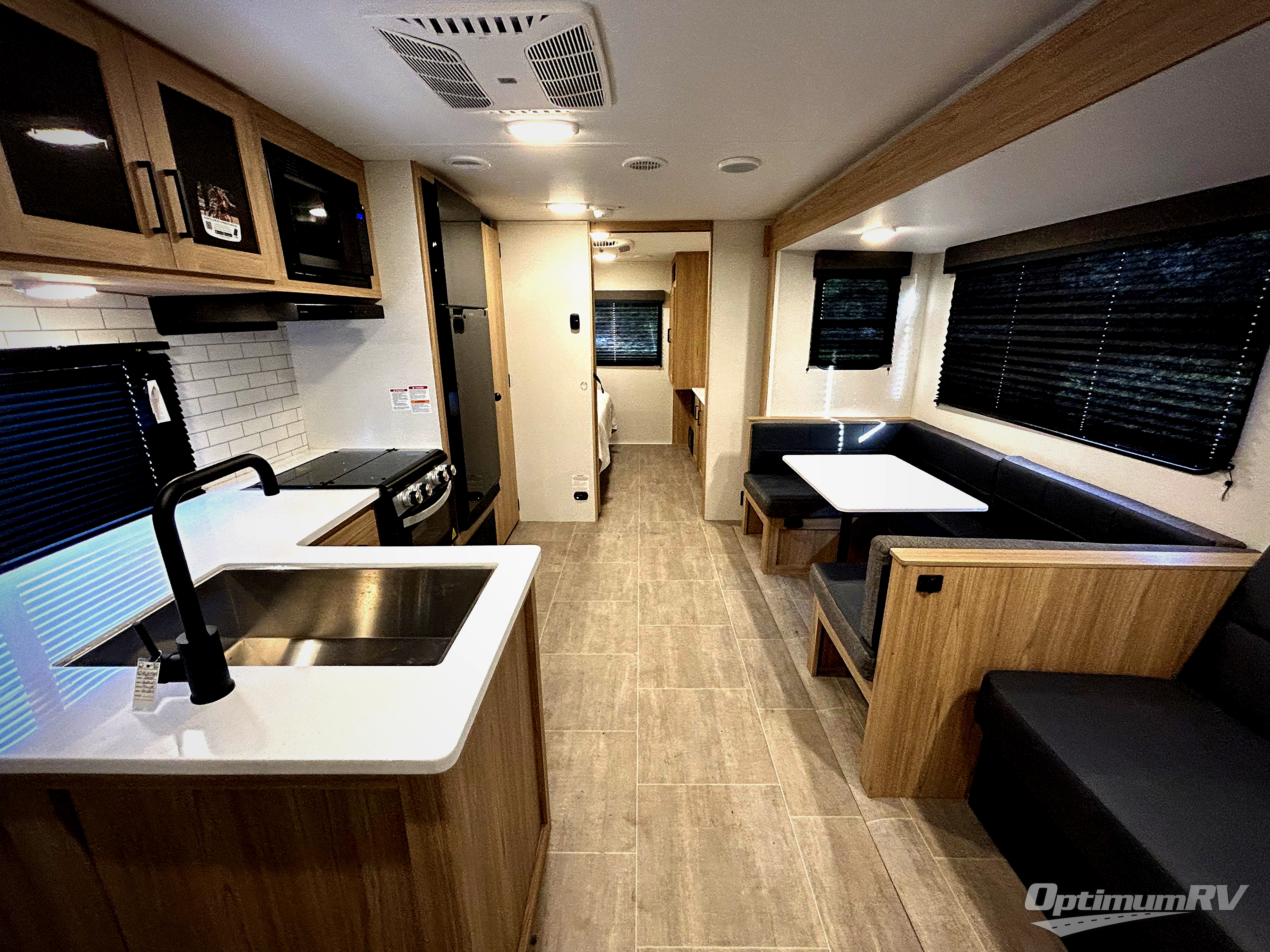 Camping just got a whole lot sweeter in this double slide out travel trailer for nine people. Your guests can stay in the front private bunkhouse that includes double-size bunks with removable lower bunks so you can easily pack in gear! You will enjoy the rear private bedroom with a queen bed slide out, a wardrobe, plus a dresser with TV prep. The main living area is spacious with its large slide out, and everyone can dine around the U-shaped dinette. There is also a sofa here and an entertainment center with a fireplace. Bring your own TV and you're ready for movie night! And check out the outdoor kitchen with a griddle for a pancake breakfast!