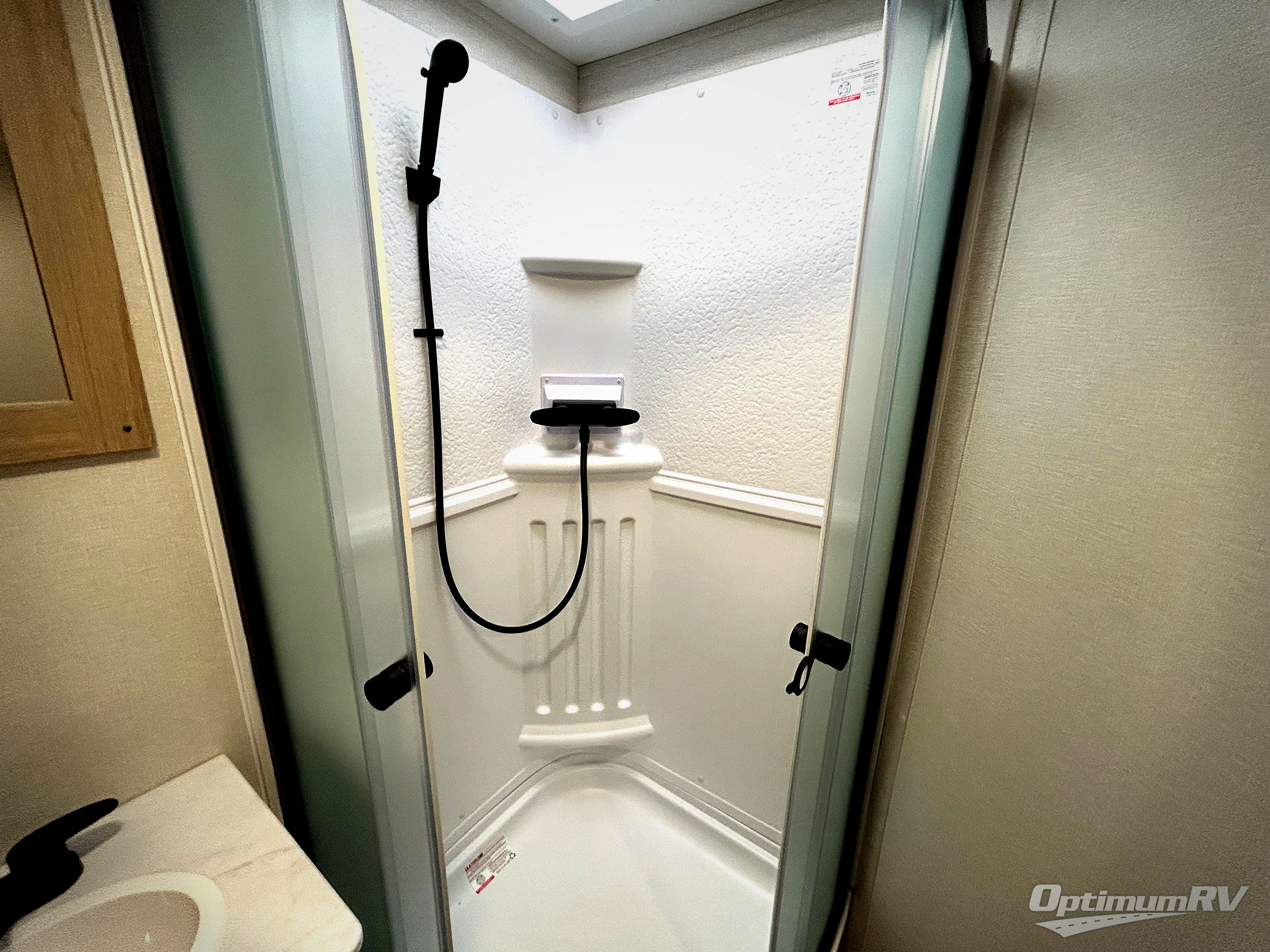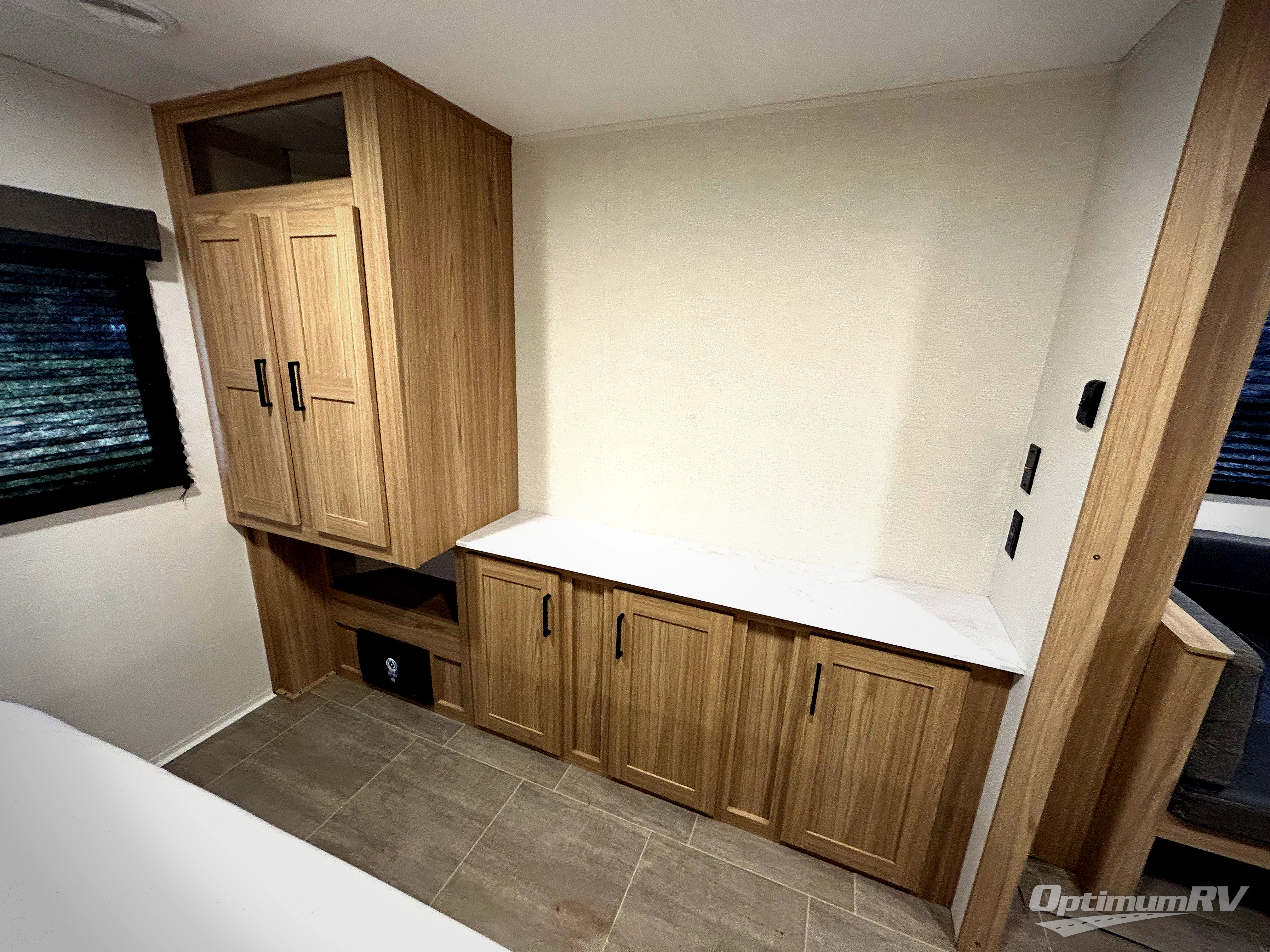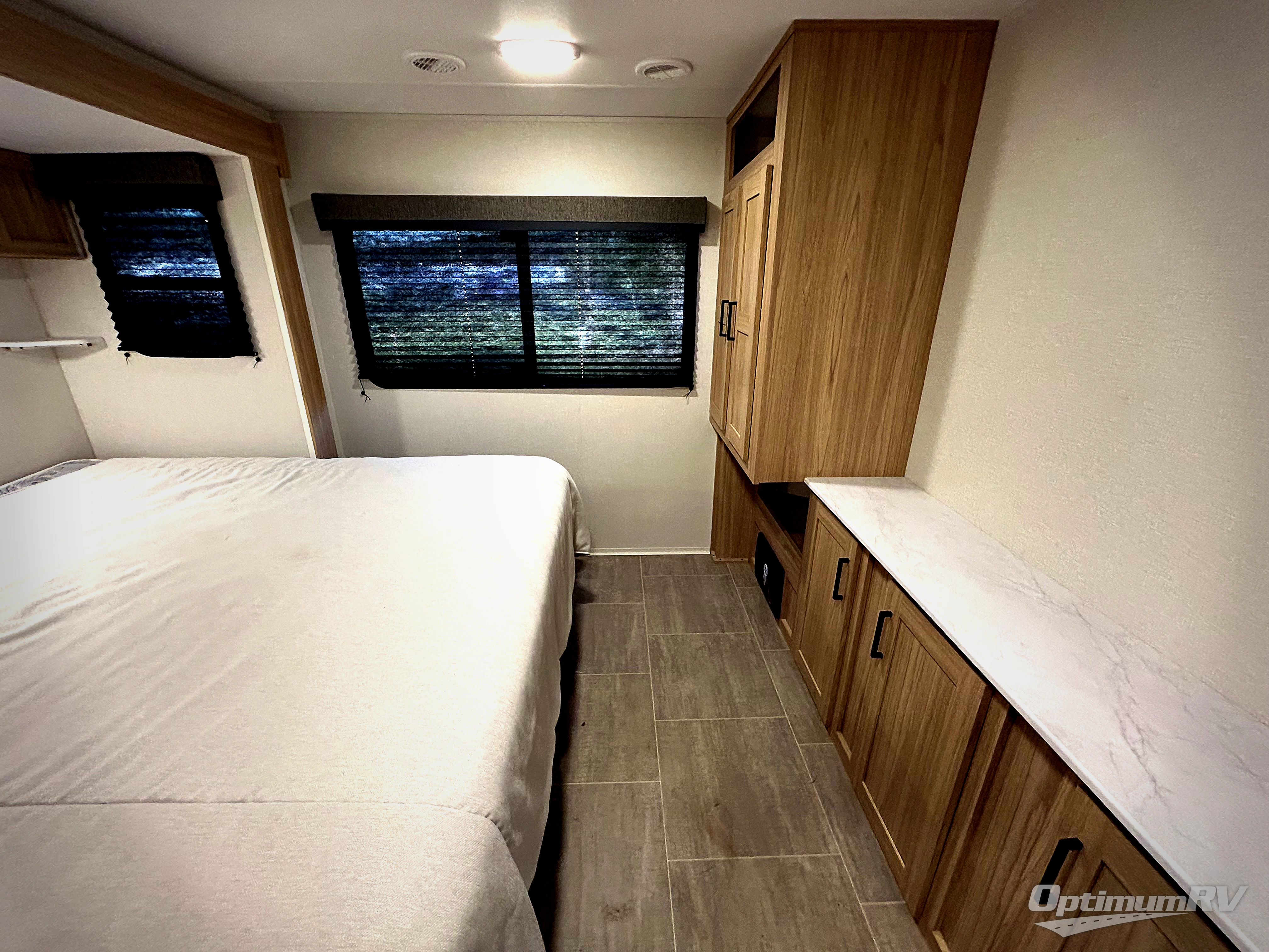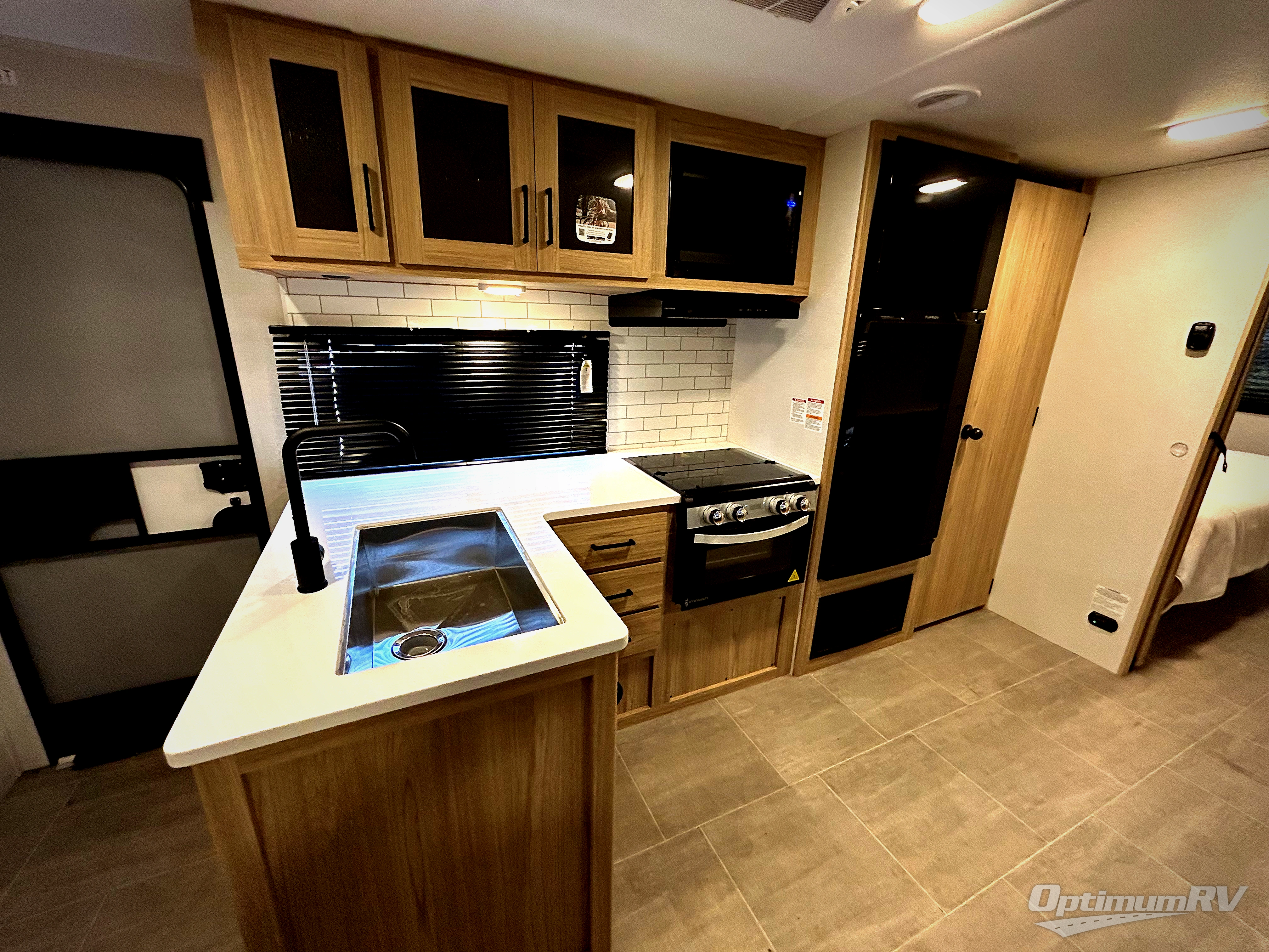 Camping just got a whole lot sweeter in this double slide out travel trailer for nine people. Your guests can stay in the front private bunkhouse that includes double-size bunks with removable lower bunks so you can easily pack in gear! You will enjoy the rear private bedroom with a queen bed slide out, a wardrobe, plus a dresser with TV prep. The main living area is spacious with its large slide out, and everyone can dine around the U-shaped dinette. There is also a sofa here and an entertainment center with a fireplace. Bring your own TV and you're ready for movie night! And check out the outdoor kitchen with a griddle for a pancake breakfast!