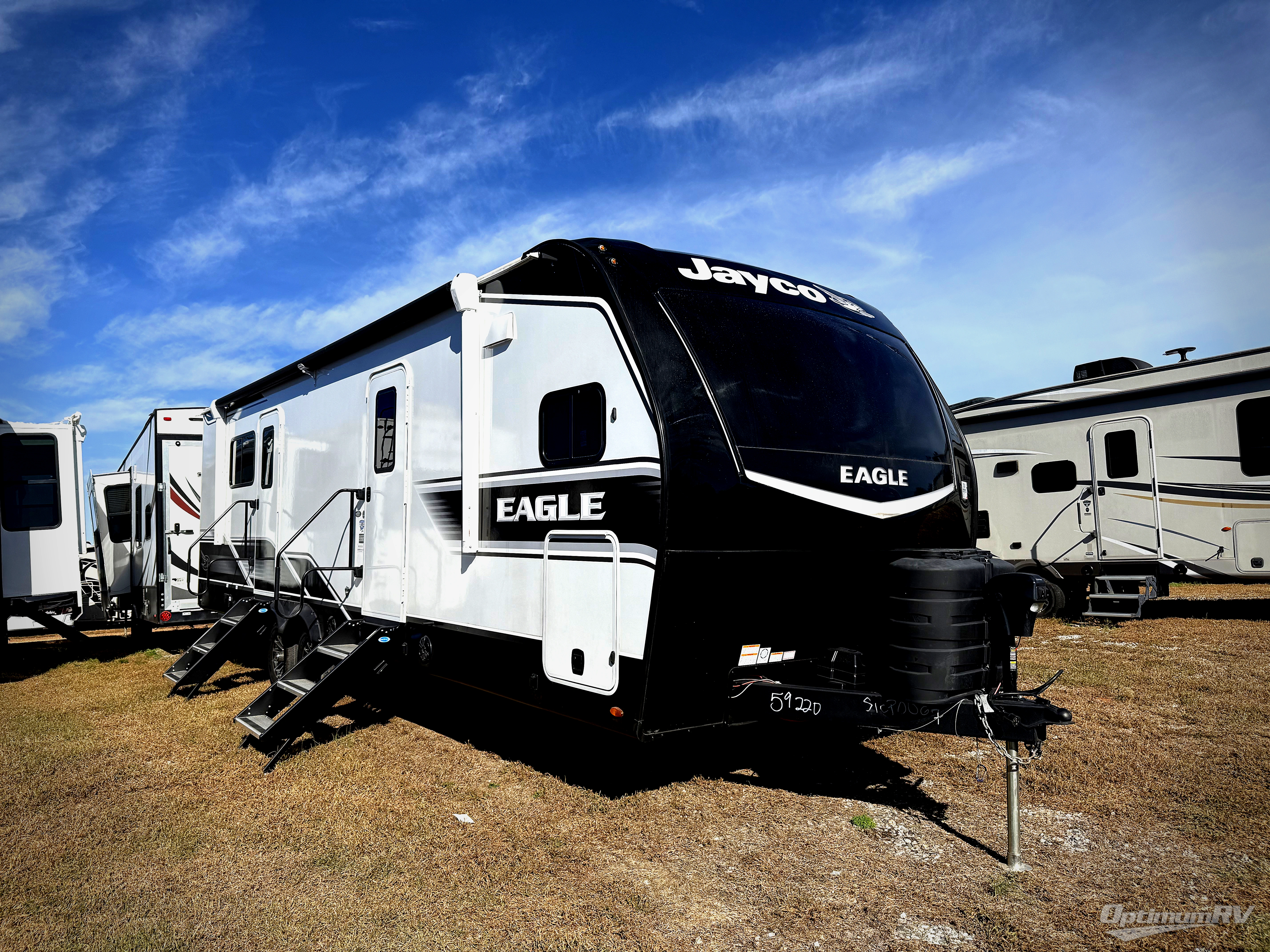 With any Eagle HT fifth wheel or travel trailer by Jayco you will enjoy a smooth drive thanks to the 4 Star Handling Package and MORryde CRE-3000 rubberized suspension. The Customer Value Package includes amenities that are sure to make camping easier than ever, like the 60K on-demand water heater, Keyed-Alike lock system, 15,000 BTU "Whisper Quiet" A/C, and more. Handcrafted and glazed door/drawer fronts will make your space feel more like home, along with residential vinyl flooring throughout, GE appliances, and blackout roller shades with reflective side throughout to keep the sun out when you want to sleep in. Each model also includes a NuVo H2O water treatment system with filters included, interior and exterior "Blue Sync" audio connect with MB Quart Sound for your TV and phone, and 100% no floor vents for added comfort and convenience!