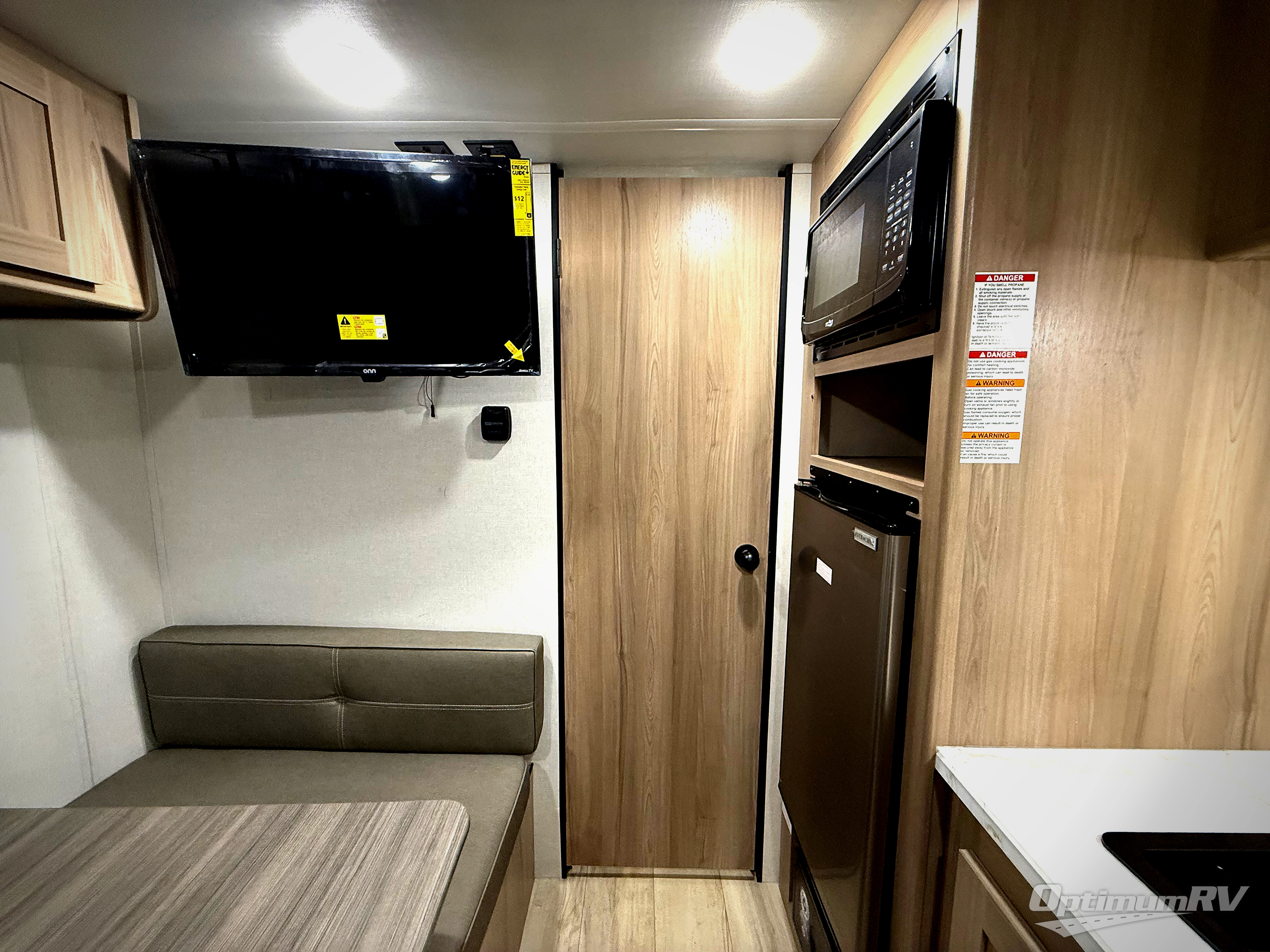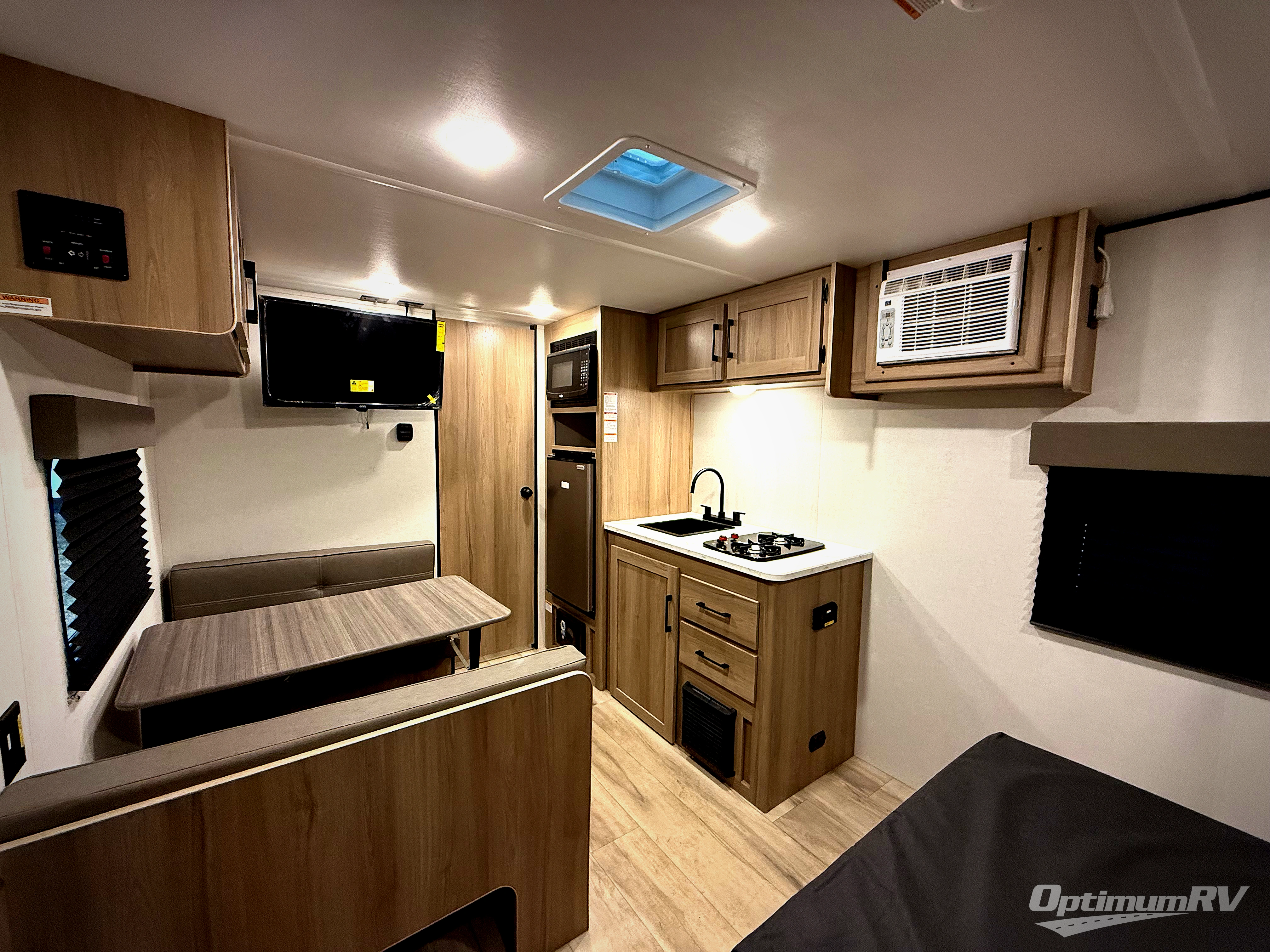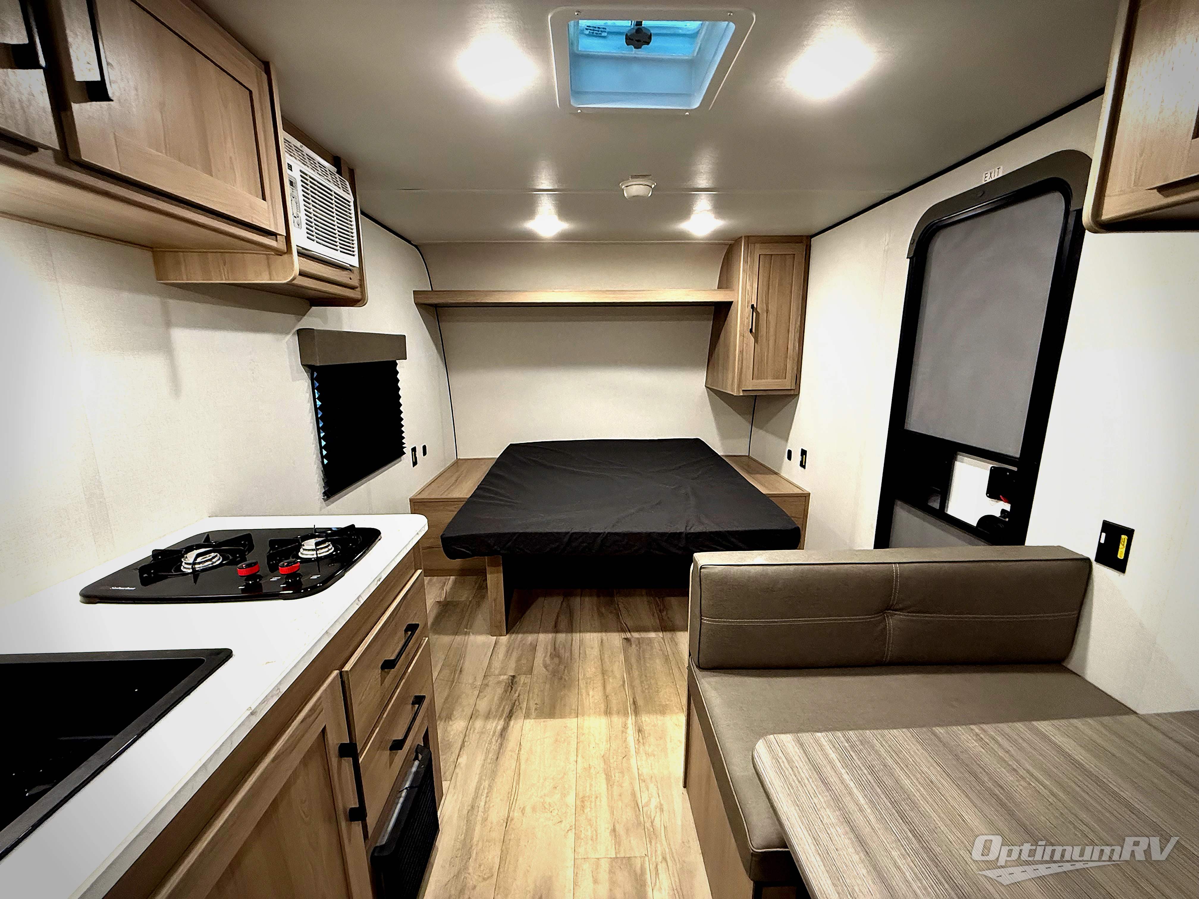 After making dinner on the two burner cooktop or microwave, you can dine at the booth dinette or outside under the 8' power awning if you brought along your camping chairs. Either way you will be comfortable and the dinette can even be converted to sleep one person if needed. After playing outdoors all day, everyone can return to get cleaned up in the full rear bath including a shower. There is even a linen closet and space for some clothes that hang. You may then fall asleep on the queen bed up front or the dinette once converted so you can start enjoying the outdoors again the next day.