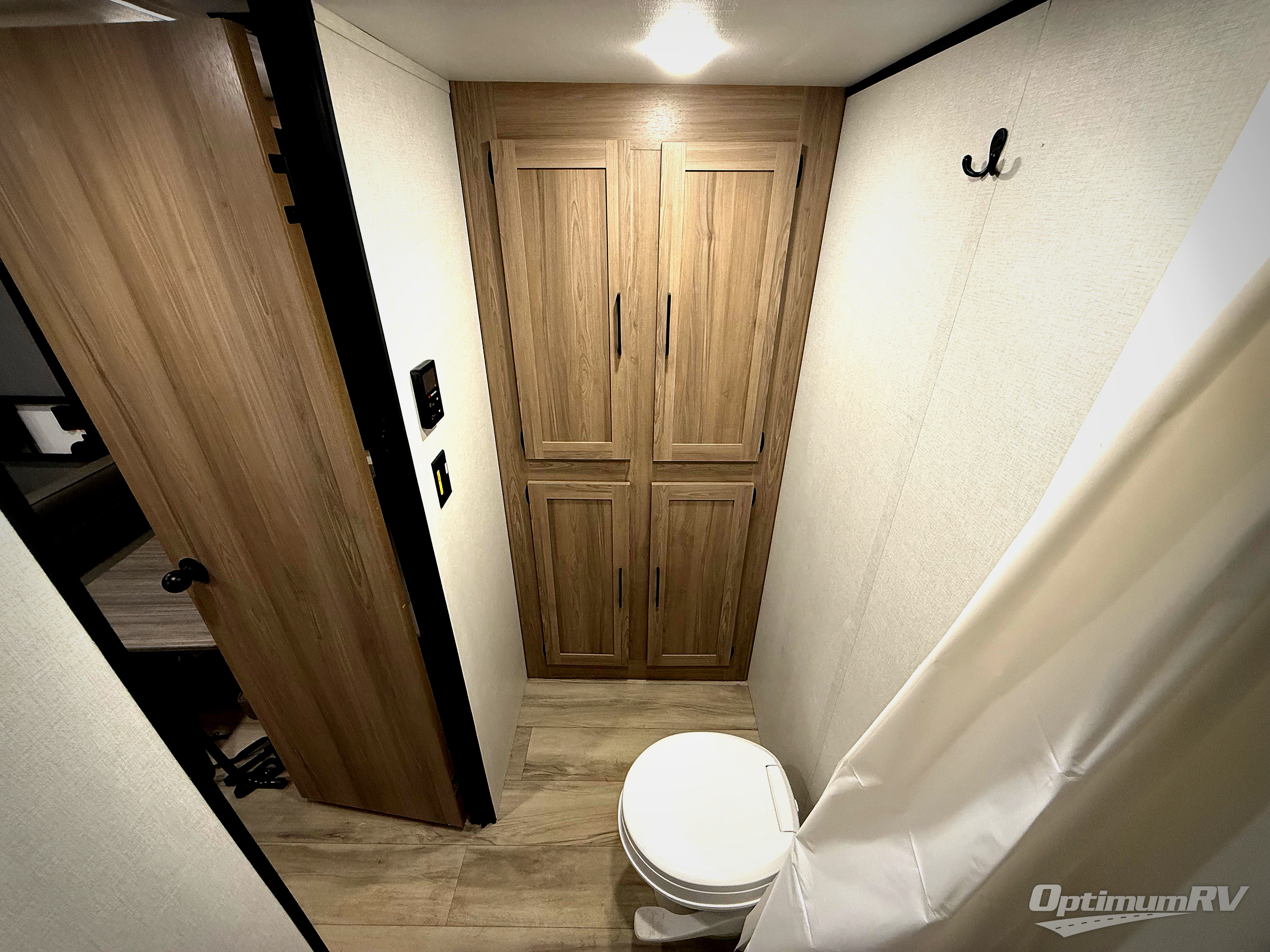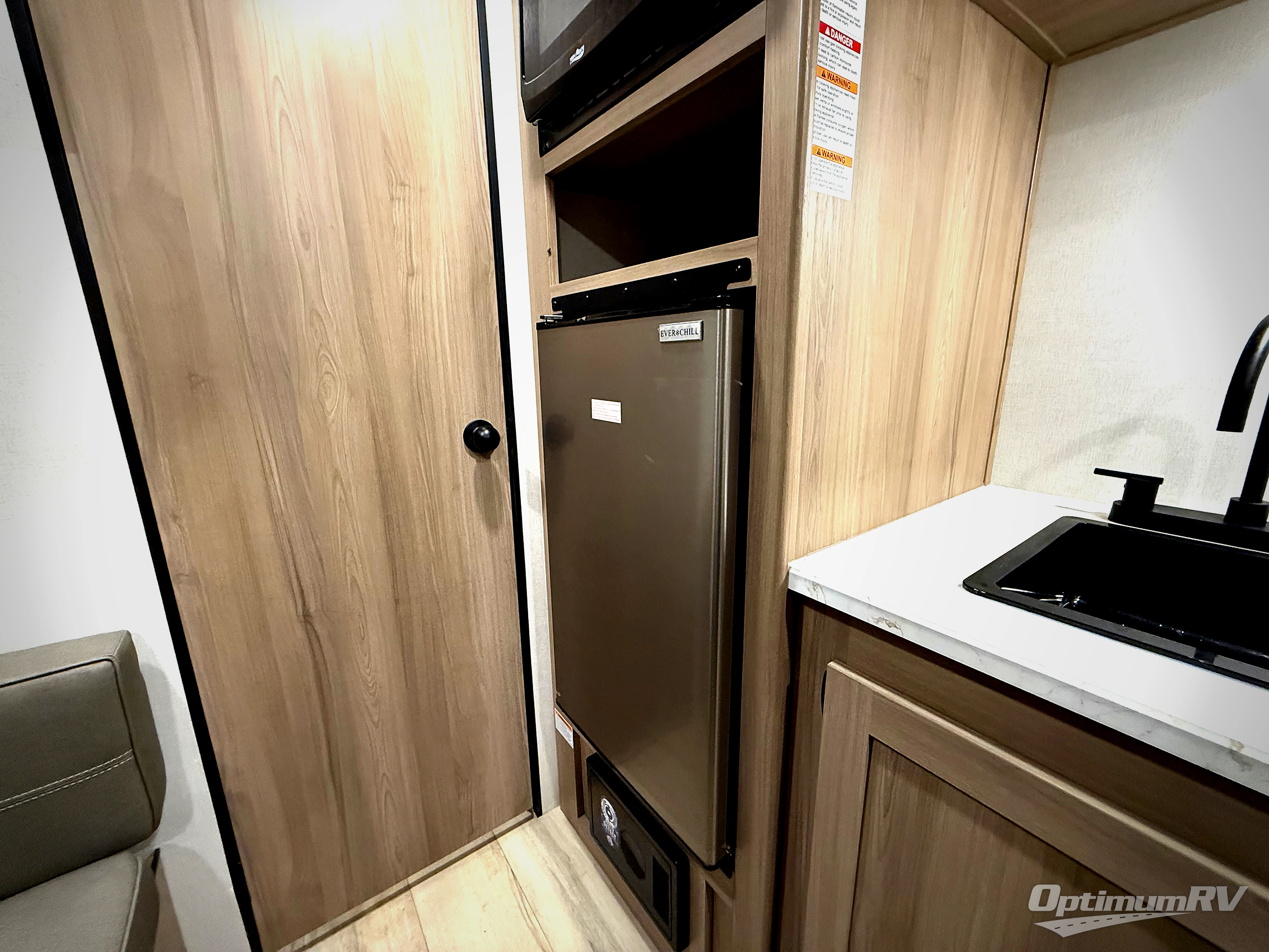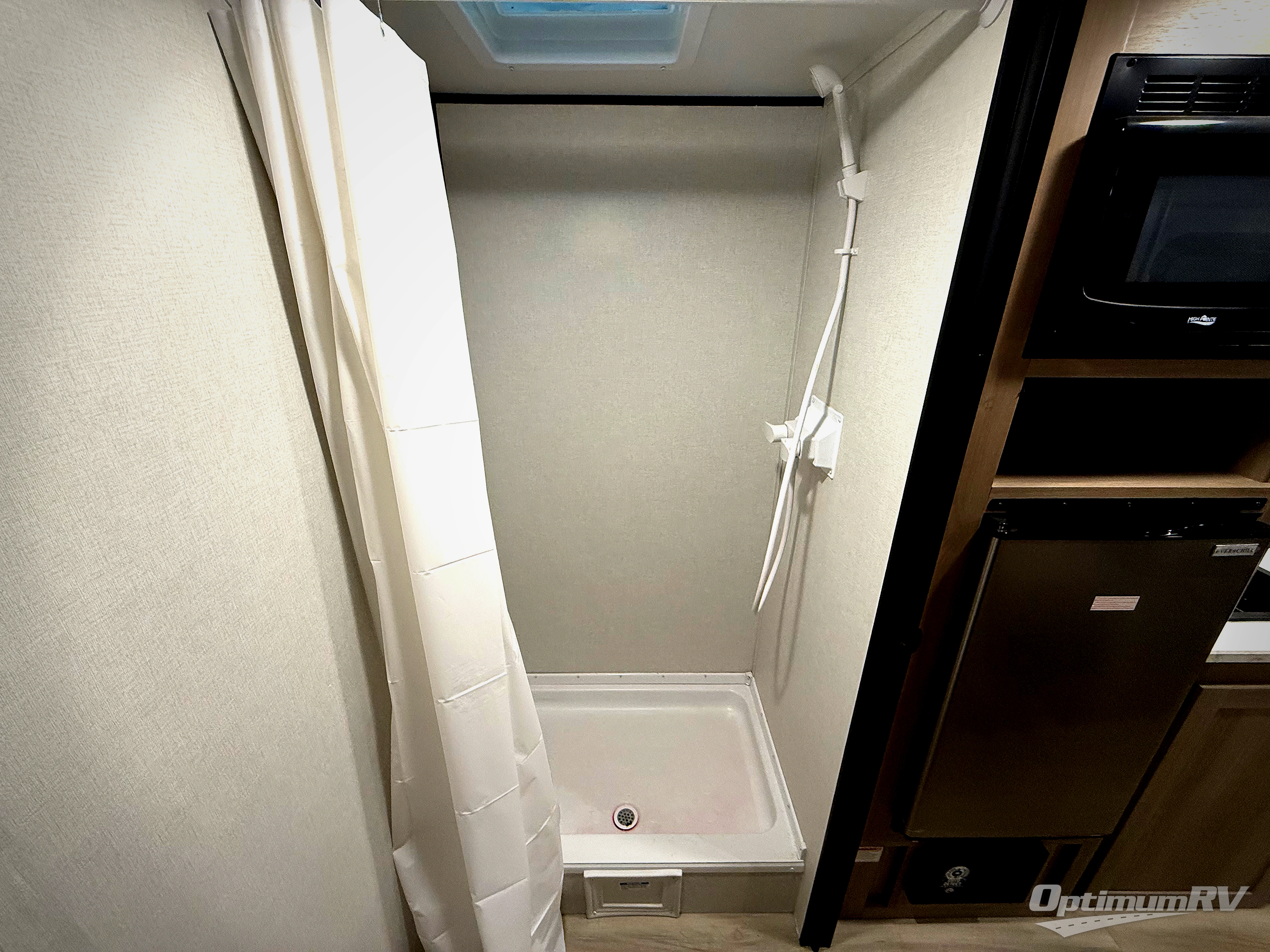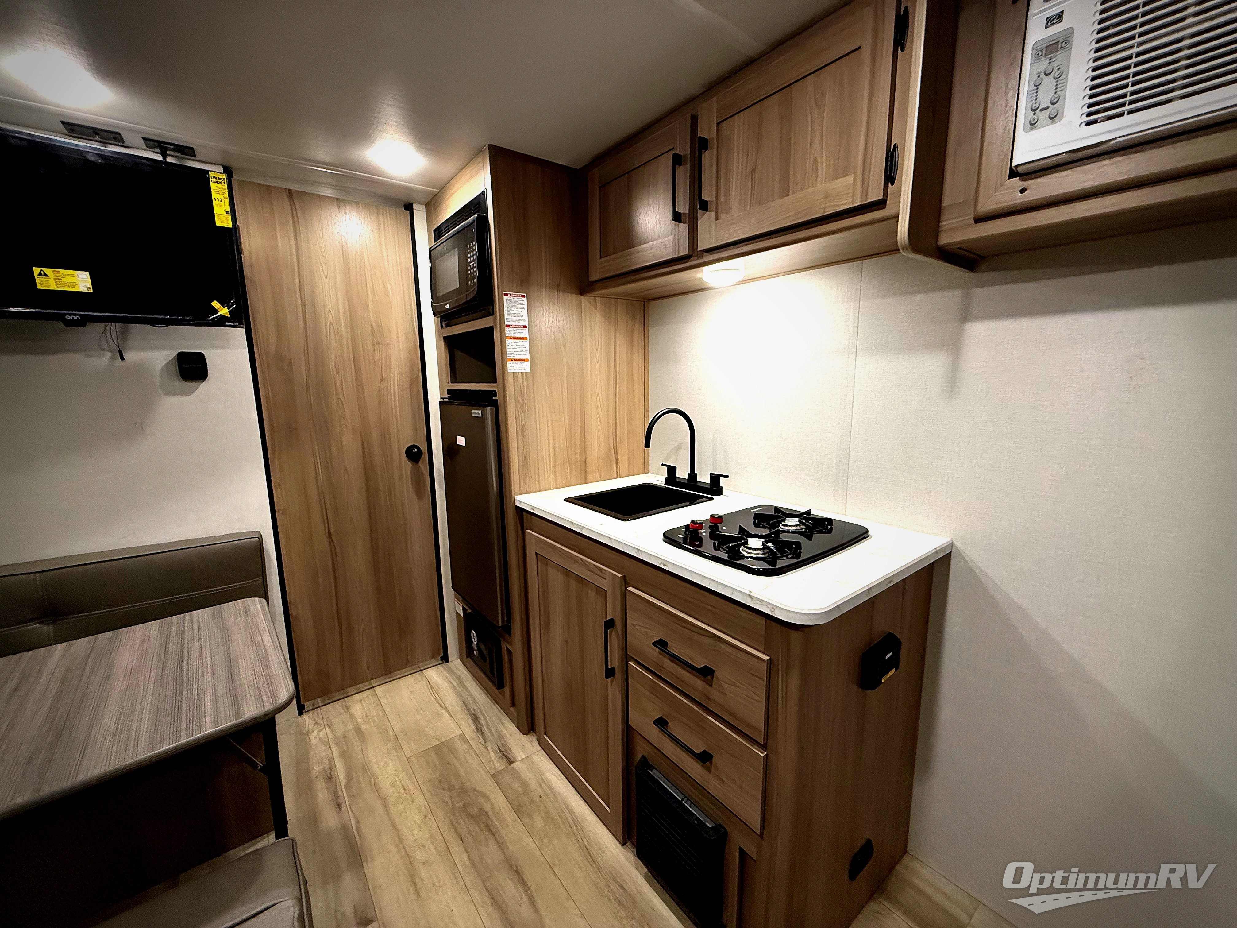 After making dinner on the two burner cooktop or microwave, you can dine at the booth dinette or outside under the 8' power awning if you brought along your camping chairs. Either way you will be comfortable and the dinette can even be converted to sleep one person if needed. After playing outdoors all day, everyone can return to get cleaned up in the full rear bath including a shower. There is even a linen closet and space for some clothes that hang. You may then fall asleep on the queen bed up front or the dinette once converted so you can start enjoying the outdoors again the next day.