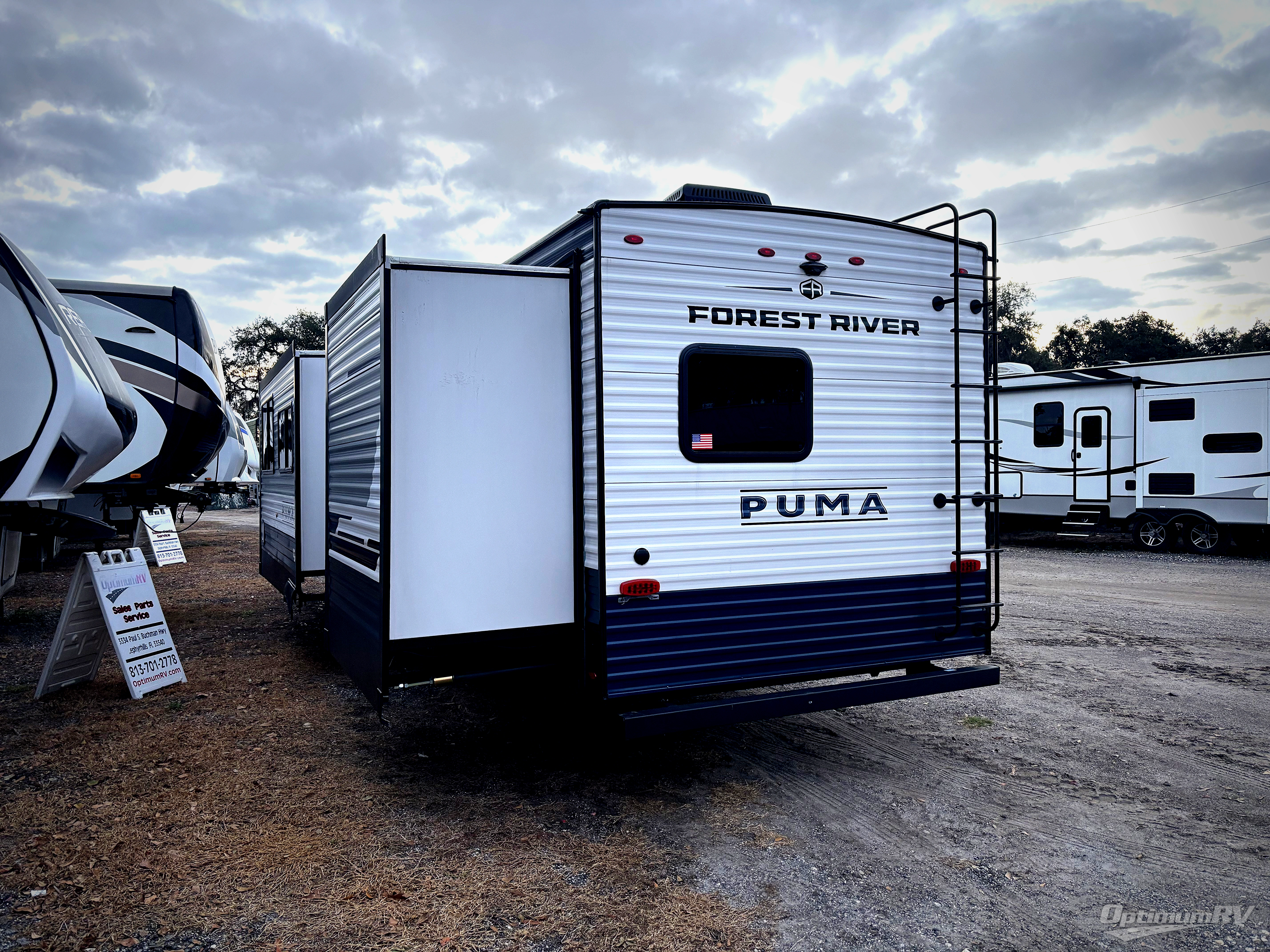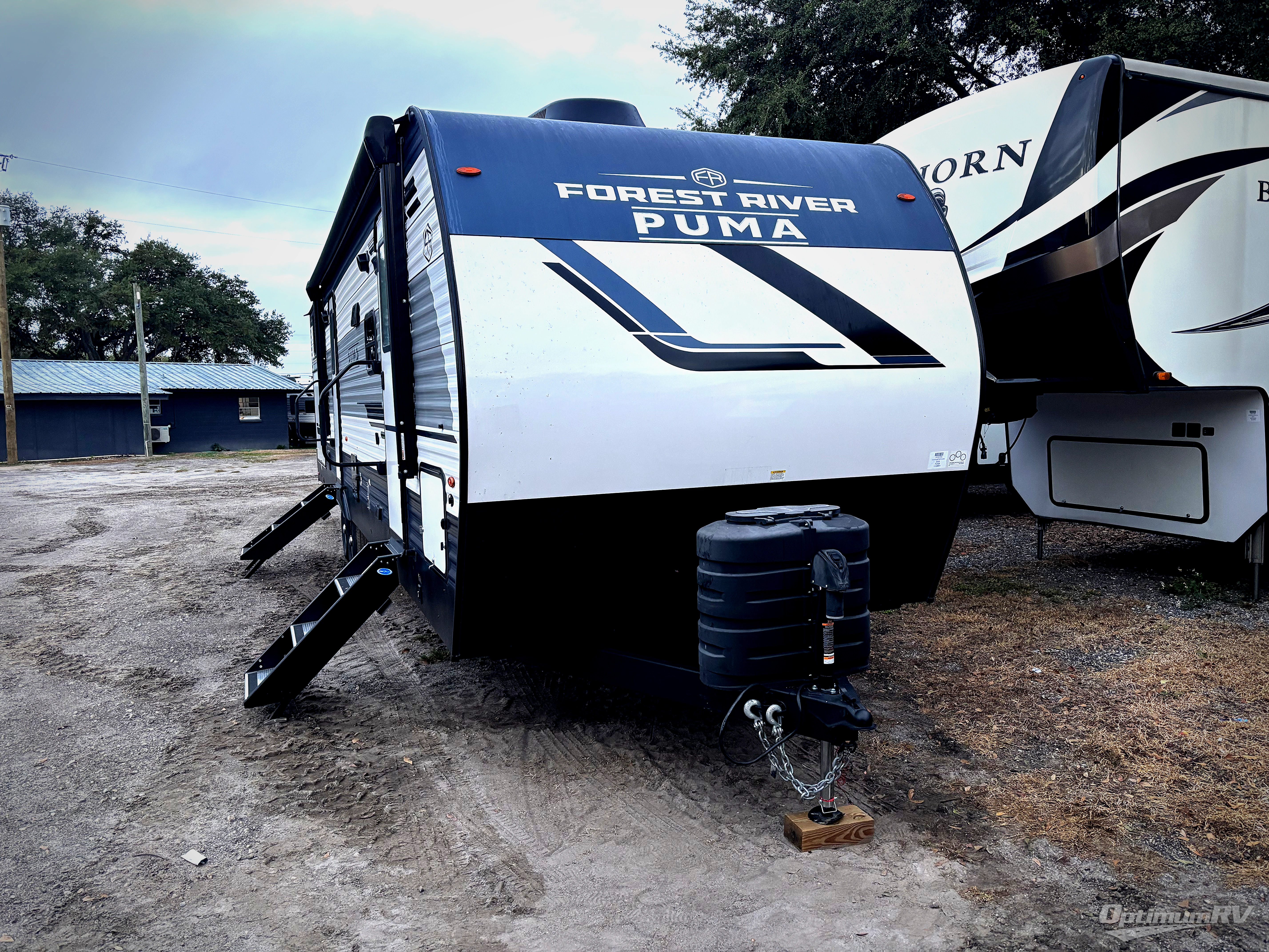 If you're looking for family-fun adventures then you need one of these Palomino Puma fifth wheels or travel trailers! They are built rugged, easy to tow, and jam packed with features. The Darco wrapped underbelly will protect your units vitals and the AlphaPly roofing membrane covers it. They also have new aluminum wheels and a powder coated steel I-beam frame. Inside, the Congoleum linoleum will be easy to keep clean, and the night roller shades will provide privacy when it's time to turn in. You'll also enjoy an electric awning with an LED light strip plus an AM/FM/Bluetooth stereo and two outside speakers to keep the party going!